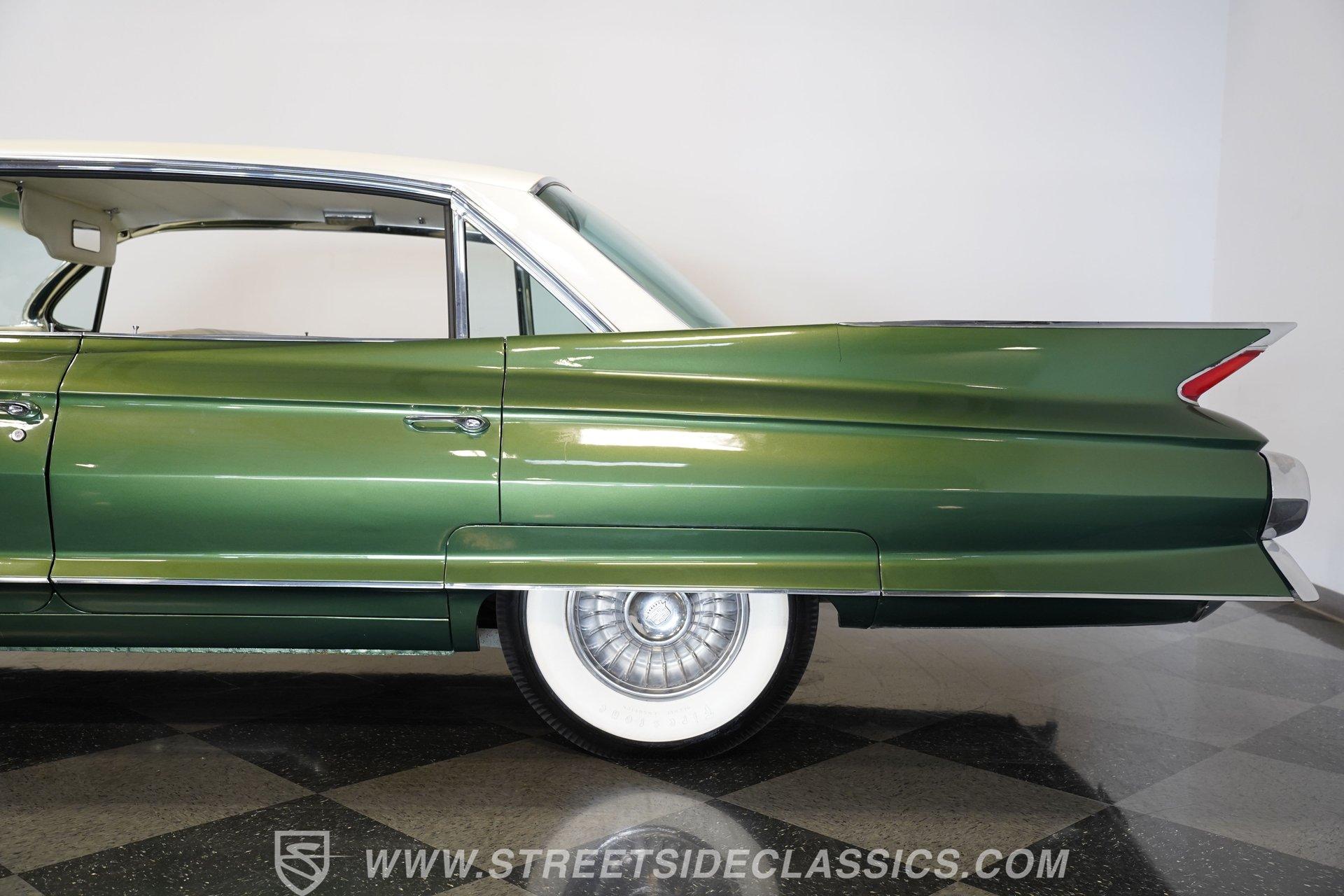 Step back in time with this iconic 1961 Cadillac DeVille, a true symbol of classic American luxury and style. Owning this vehicle means embracing a piece of automotive history that evokes memories of an era defined by elegance and powerful design. It's more than just a car; it's a statement on wheels that turns heads wherever it goes. With its timeless green exterior and striking whitewall tires, this Cadillac DeVille invites you to experience driving in a way that blends nostalgia with undeniable presence. This 1961 Cadillac DeVille is a rare opportunity to own a classic that still commands respect on the road. Step inside to find an interior that balances vintage charm with comfort. The cloth upholstery remains in good condition with only slight wear on the seats, preserving the authentic feel of the era. Aluminum trim accents the door handles, adding a subtle touch of sophistication, while the painted dashboard maintains its classic style, despite minor scratches. The cabin offers a roomy and inviting space, perfect for leisurely drives or showcasing at car events. Under the hood, this Cadillac boasts a robust 390 V8 engine equipped with an Edelbrock 4-barrel carburetor on the stock manifold, delivering smooth and reliable power. The Hydra-Matic 4-speed automatic transmission shifts effortlessly through all gears, enhancing the driving experience with seamless control. Power steering and power drum brakes provide confidence and ease behind the wheel, while the factory suspension offers a ride that stays true to the car's original character. This DeVille is built to impress both in performance and style. Highlights 1961 Cadillac DeVille Model 390 V8 Engine With Edelbrock Carburetor Hydra-Matic 4-Speed Automatic Transmission 80,348 Actual Mileage Full Repaint With Driver Quality Paint Cloth Interior Upholstery In Good Condition Power Steering And Power Drum Brakes Factory Style Suspension And Wheels Whitewall Tires Included AM/FM Radio With Aux Input Air Conditioning (Non-Functional) Heat And Defrost Functional Seatbelts Included Some Rust Underbody, Frame OK Financing Available Vehicle Protection Plans Available Worldwide Shipping This 1961 Cadillac DeVille offers a fantastic blend of classic style, dependable mechanics, and a comfortable interior. It's a great choice for collectors or anyone looking to own a genuine piece of automotive heritage. Don't miss your chance to make this classic yours. Call, email, or come visit our showroom today!