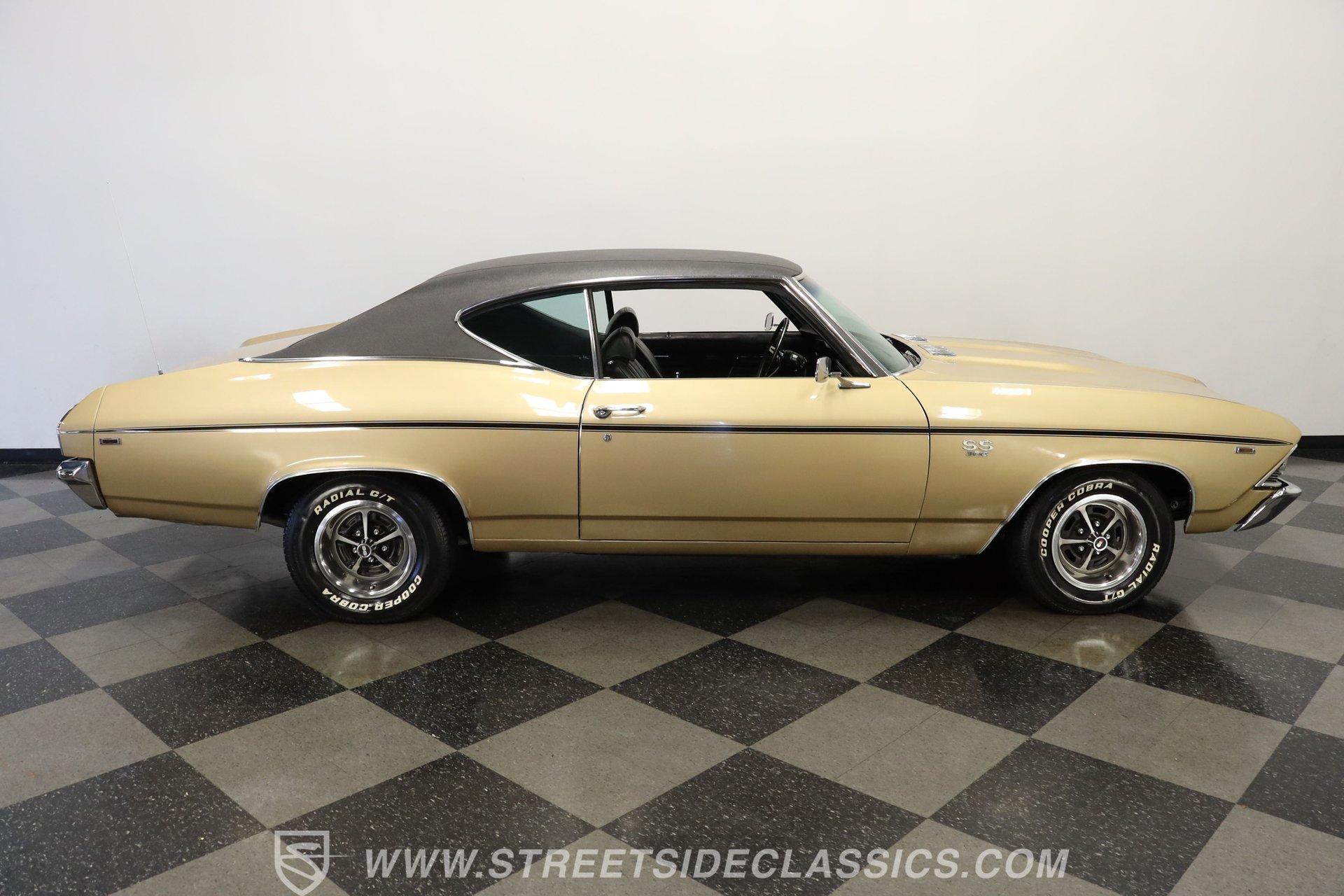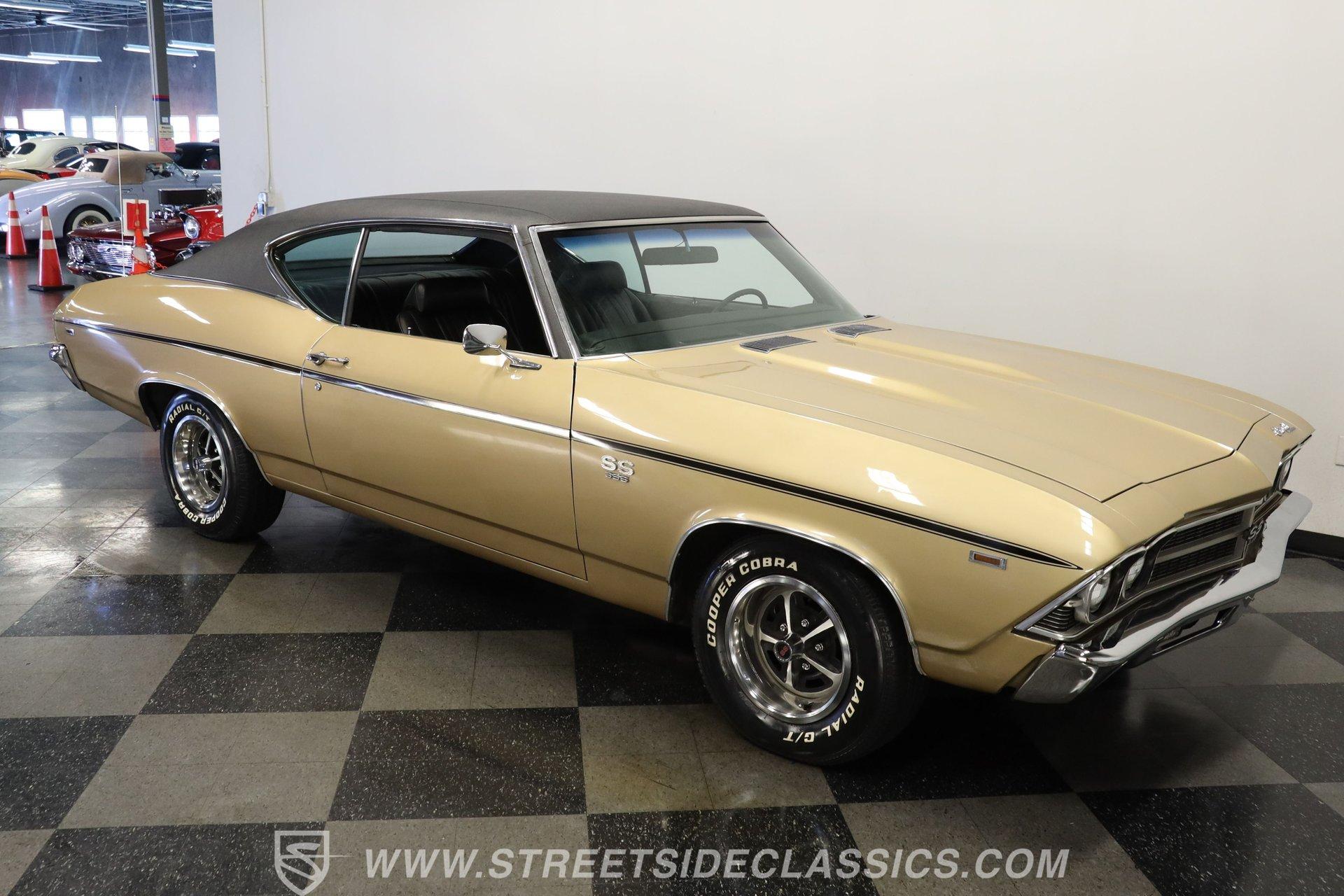 It is amazing how, when it comes to classic cars, two letters and three numbers can instantly open up a floodgate of memories and a rush of adrenaline. Fully repainted in its original Olympic Gold, this 1969 Chevrolet Chevelle SS 396 Tribute looks every bit the boulevard bruiser as it would have half a century ago. Inside, we find a nicely redone black vinyl interior. A center console separates dual bucket seats, while a three-spoke power-assisted wheel proudly displays the Chevy logo. A three-pod gauge cluster features a big 120 mph speedometer, while a trio of Sunpro auxiliary gauges are situated under the dash. This SS Tribute has opted for a radio delete, but don't worry, because that big Hurst T-bar shifter provides more entertainment than speakers ever could. Under that expansive hood, we find a clean engine bay with a big 396-cubic-inch V-8. A chrome air cleaner and matching valve covers contrast the old-school primer-orange block and intake manifold. Fed by a single four-barrel carburetor, this big block does away with spent gases through a set of long tube headers and dual exhaust capped off with a pair of sweet-sounding FlowMaster mufflers to give this Chevelle its muscle car rumble. That power is routed through a tried-and-true Muncie M20 four-speed manual transmission before heading out to the 12-bolt rear end that transfers those ponies to the pavement via a set of 14-inch SS wheels shod in 225/70R-14 Cooper Cobra rubber. HIGHLIGHTS: Full Olympic Gold Repaint SS Badging Year Correct 396 CID V8 Single 4 Barrel Carb Long Tubes FlowMaster Dual Exhaust Muncie M20 Four Speed Manual Hurst Shifter 12 Bolt Rear Hotchkis Sway Bars Power Brakes Front Disc Brakes Power Steering Redone Black Vinyl Interior Bucket Seats Sunpro Aux Gauges This 1969 Chevrolet Chevelle SS 396 Tribute rides on a stock-style suspension upgraded with Hotchkis sway bars. Power brakes feature front discs that stand ready to scrub off speed without drama, allowing you to simply enjoy cruising to anywhere -or nowhere -anytime you want. If you are one of the many whose heart begins beating just a little faster whenever you see the 'SS 396', then maybe it's time you are the one behind the wheel, bringing alphanumeric joy to onlookers everywhere. But don't wait, call today! We can assist you with getting an Extended Vehicle Service Plan from Freedom Warranty, which provides comprehensive coverage that can save thousands of dollars on unexpected repairs. Inquire for more details and pricing!