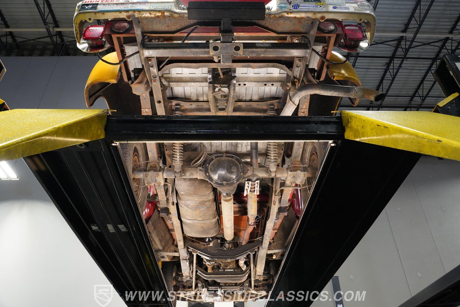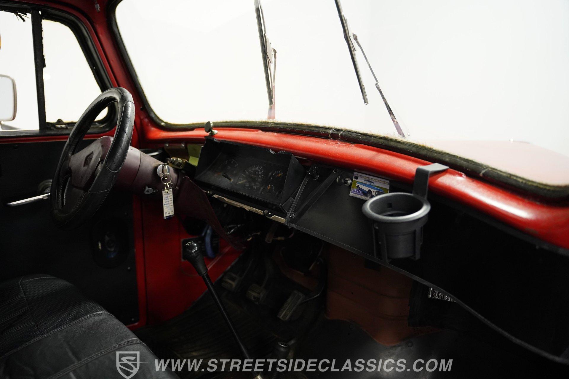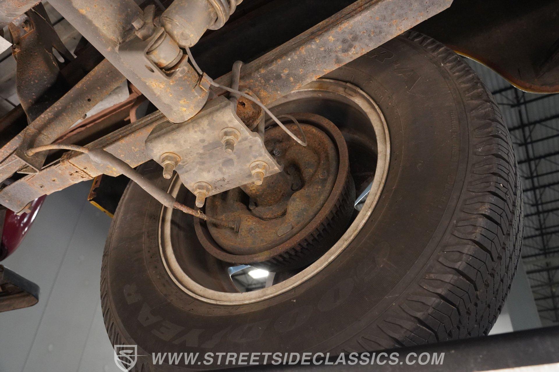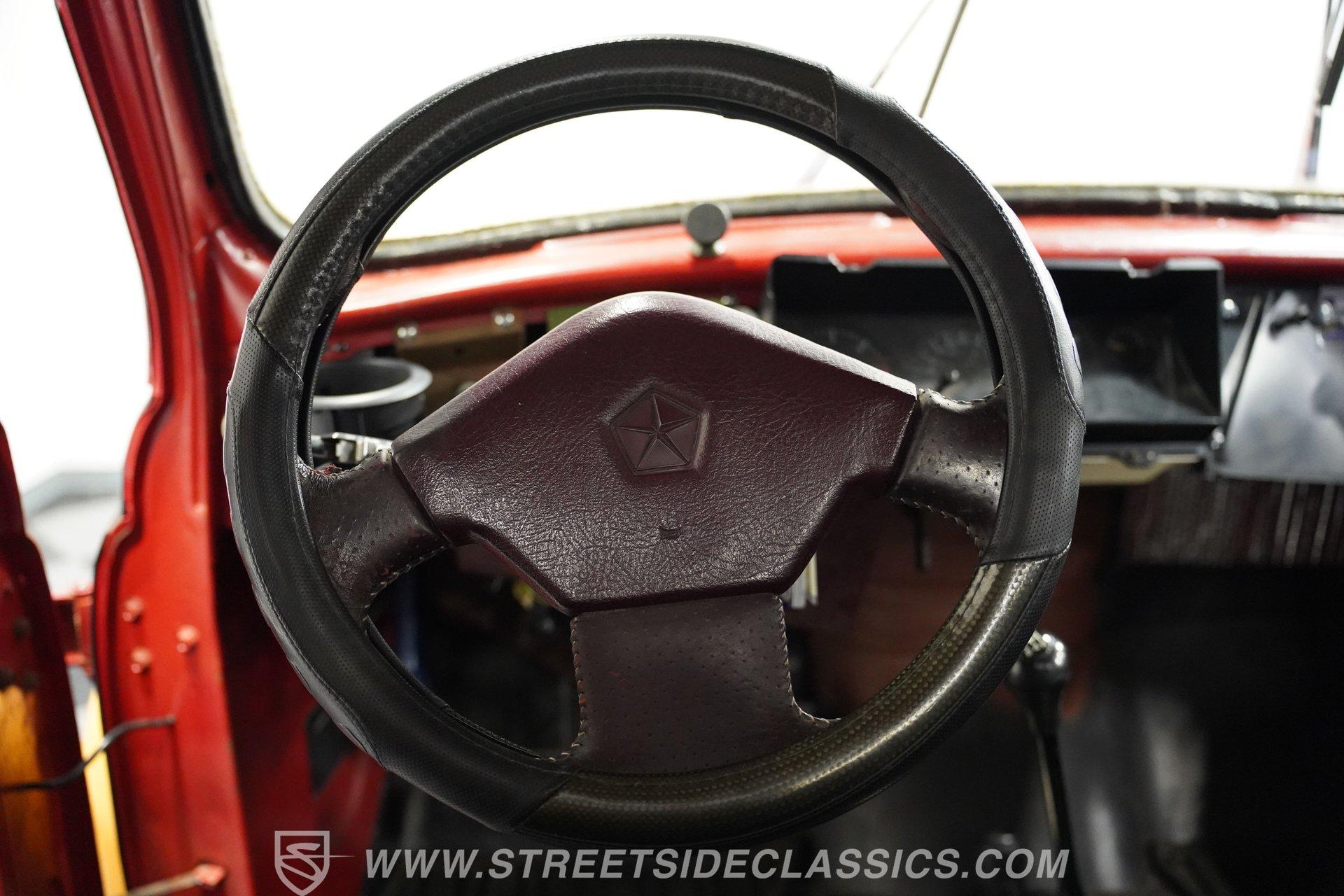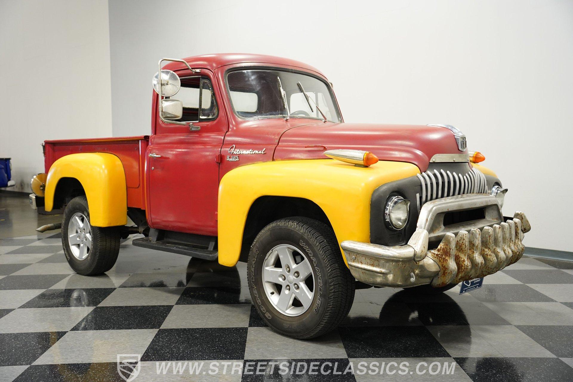 Looking for a classic that's sure to stand out in any setting? Then you'll want to check out this 1952 International Harvest Pickup 4x4. It's got an awesome, post-apocalyptic "Beyond Thunderdome" sensibility that pairs with its unexpectedly good road manners, and with its distinctive appearance and attention-grabbing paint scheme, you won't have much concern that someone else will pull up behind the wheel of anything like it. Some of the modifications made to this '50s workhorse could use a little further attention, but a significant amount of the heavy lifting has already been done, and in the right hands, this could be a seriously compelling project that will yield a stellar result. And just look at that front end! With its bulldog-like underbite, this classic pickup appears like it's about to tear into anything foolish enough to venture in front of it. Inside the doors is an interior that represents a nearly blank slate for your future restoration ambitions, but is also serviceable in its present state. The vinyl-covered bench seat is surprisingly comfortable, and you'll find no jutting springs to hamper your driving experience. The door panels to each side are well-fitted and harbor a pair of added speakers to bring tunes from the added Bluetooth receiver into the cabin. Just in front of the steering wheel that - like several other components - began life on a mid-'80s Dodge Dakota, a collection of accompanying gauges from the same era is in place, and while their fit could use a bit of refinement, both the speedometer and tachometer work as intended, the heater blower is functional and the windows roll up and down with no issue. The rear bed looks straight and solid, as well. Climb inside, fire up the engine, and you'll likely be pleasantly surprised by the result. There's a 3.9-liter Magnum V6 now residing beneath the hood, and it's running nicely, fed by electronic fuel injection and pairing with a 5-speed manual transmission to make up a drivetrain that provides a good driving experience, even at freeway speeds. This singular-classic pickup is built on a 1980s Dodge Dakota 4x4 platform, and while the adaptation work could use a closer inspection, and possibly even a bit of additional work, the upgrade pays real-life dividends in the form of a more refined ride, fully functional 4-wheel drive, power steering and power brakes that position discs up front. HIGHLIGHTS 3.9-LITER MAGNUM V6 ENGINE ELECTRONIC FUEL INJECTION 5-SPEED MANUAL TRANSMISSION POWER STEERING POWER BRAKES, WITH DISCS IN FRONT 4-WHEEL DRIVE UPDATED CHASSIS FROM AN '80s DODGE DAKOTA 17" WRANGLER WHEELS STANDOUT RED AND YELLOW EXTERIOR BLUETOOTH RADIO TILT COLUMN SPARE DOOR AND 2 SPARE TIRES INCLUDED So, if you're searching for a ruggedly distinctive ride that's visually off the beaten track and is fully capable of navigating the same, this 1952 International Harvester Pickup 4x4 may be just what you're looking for. Call today!