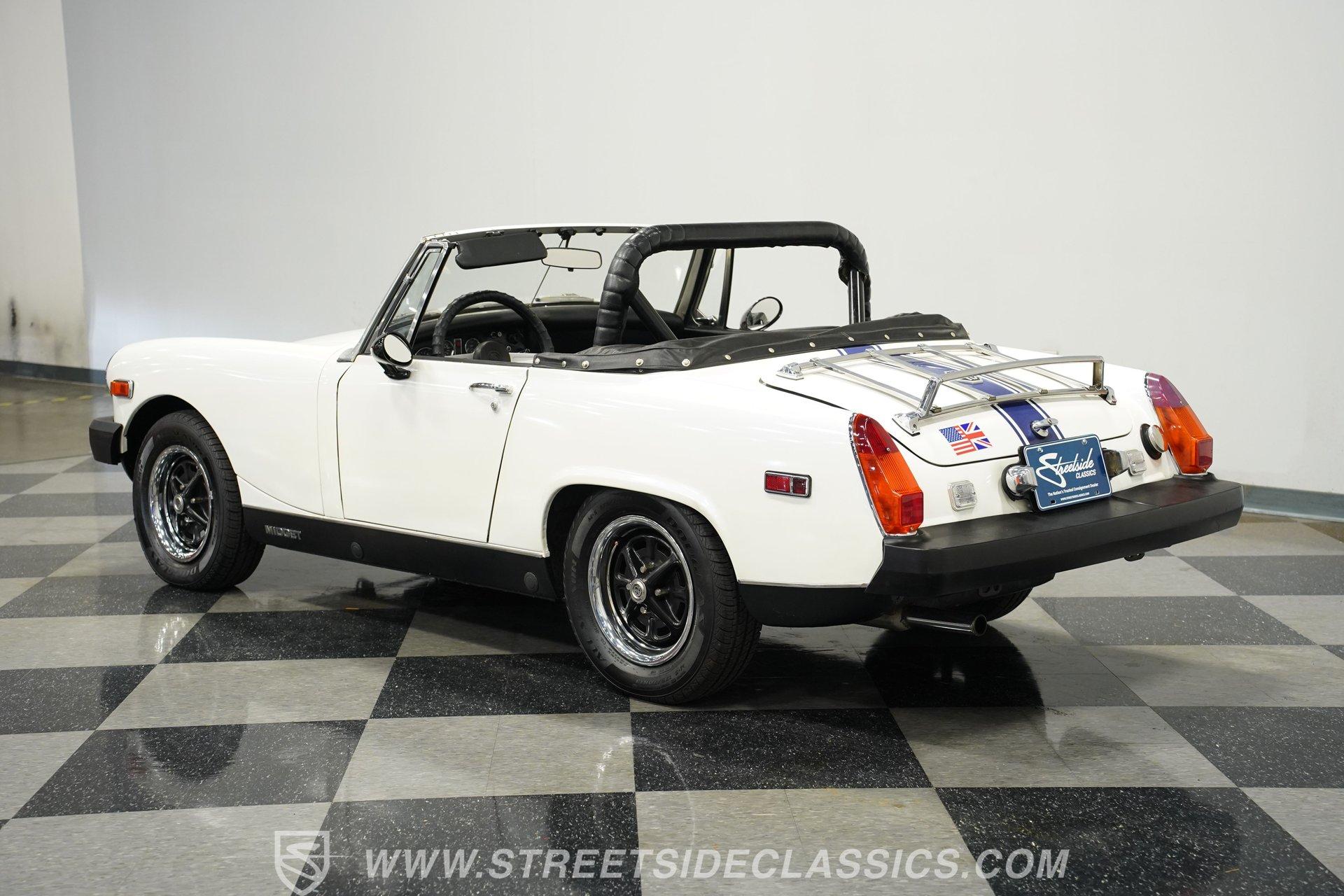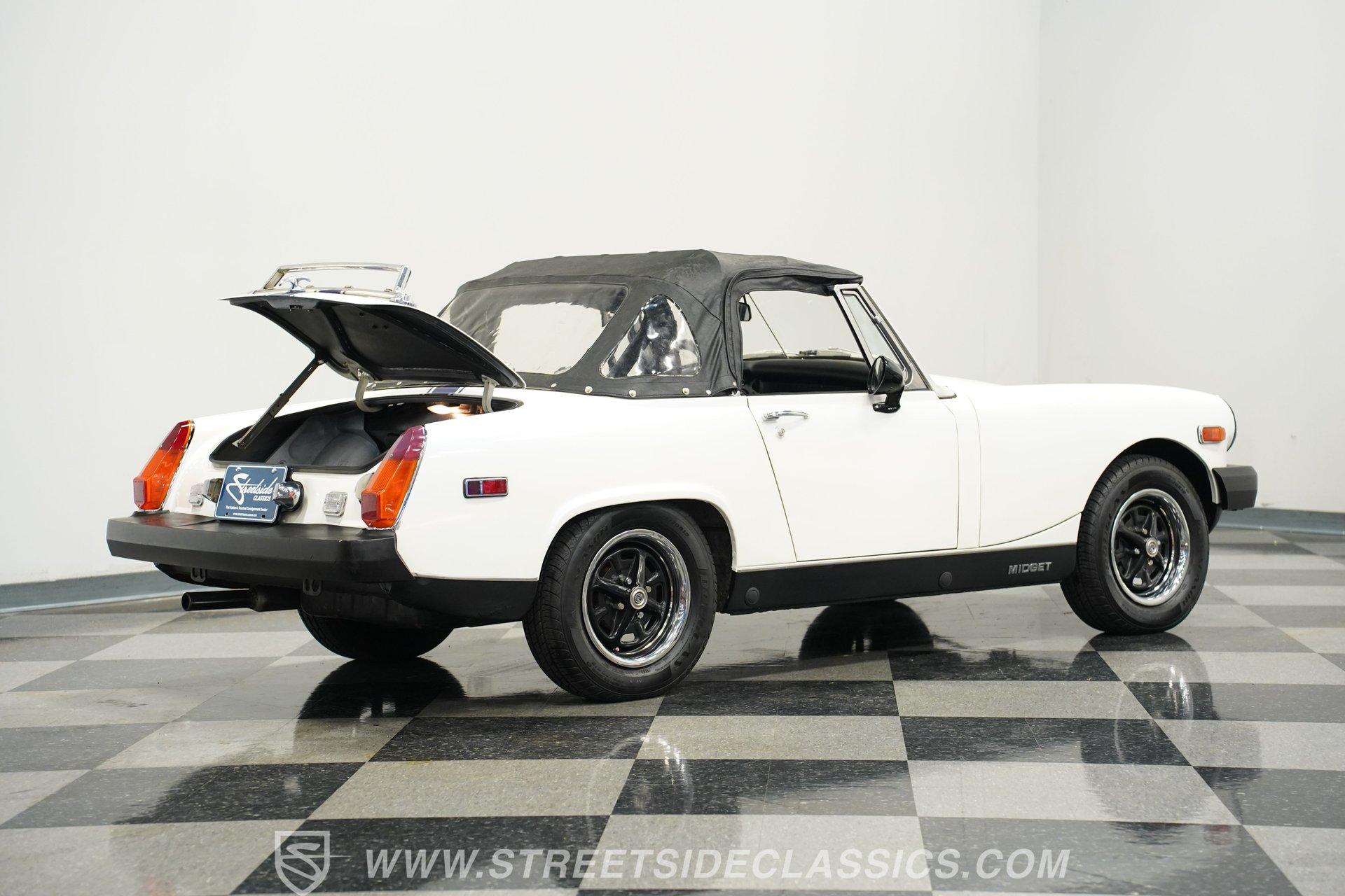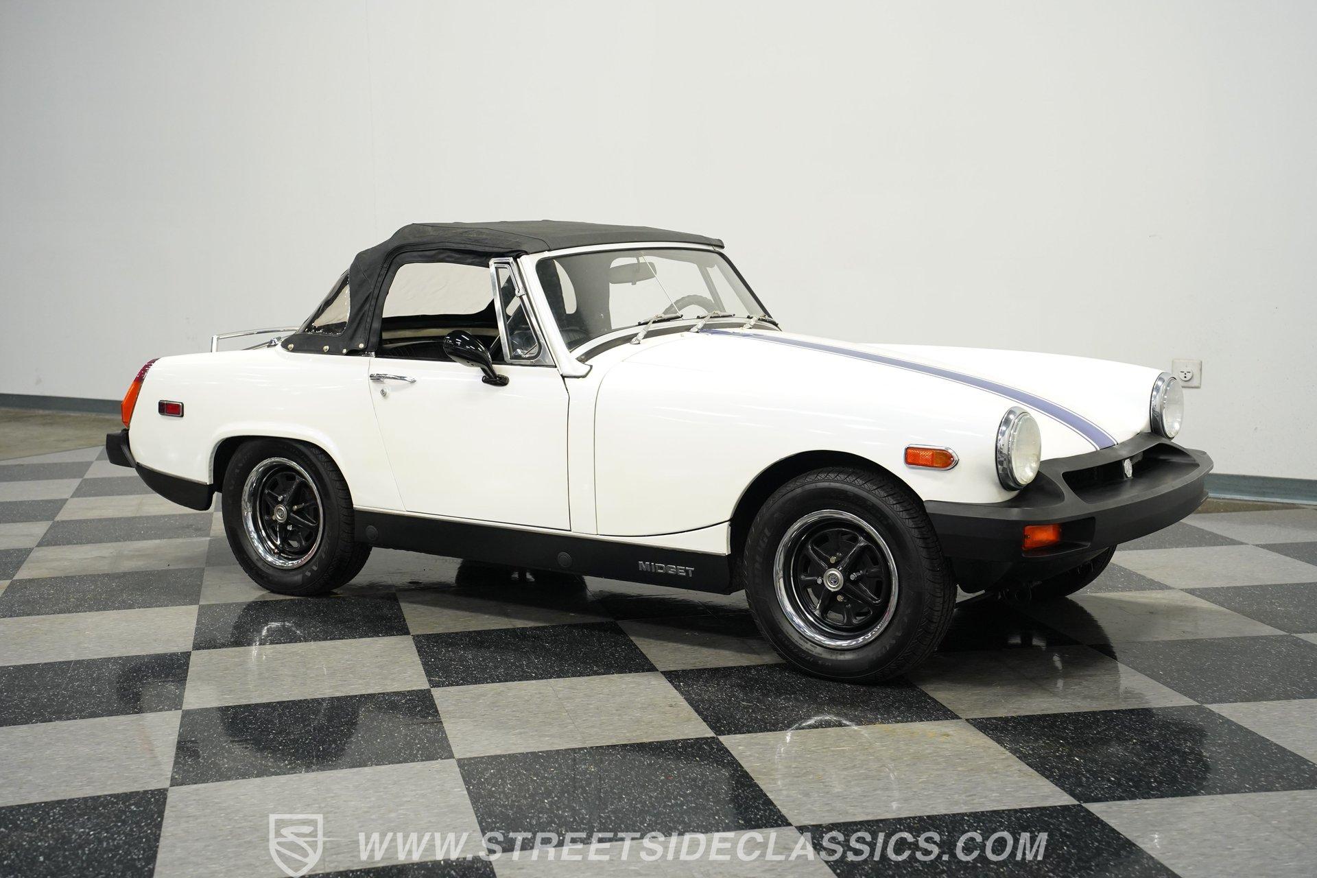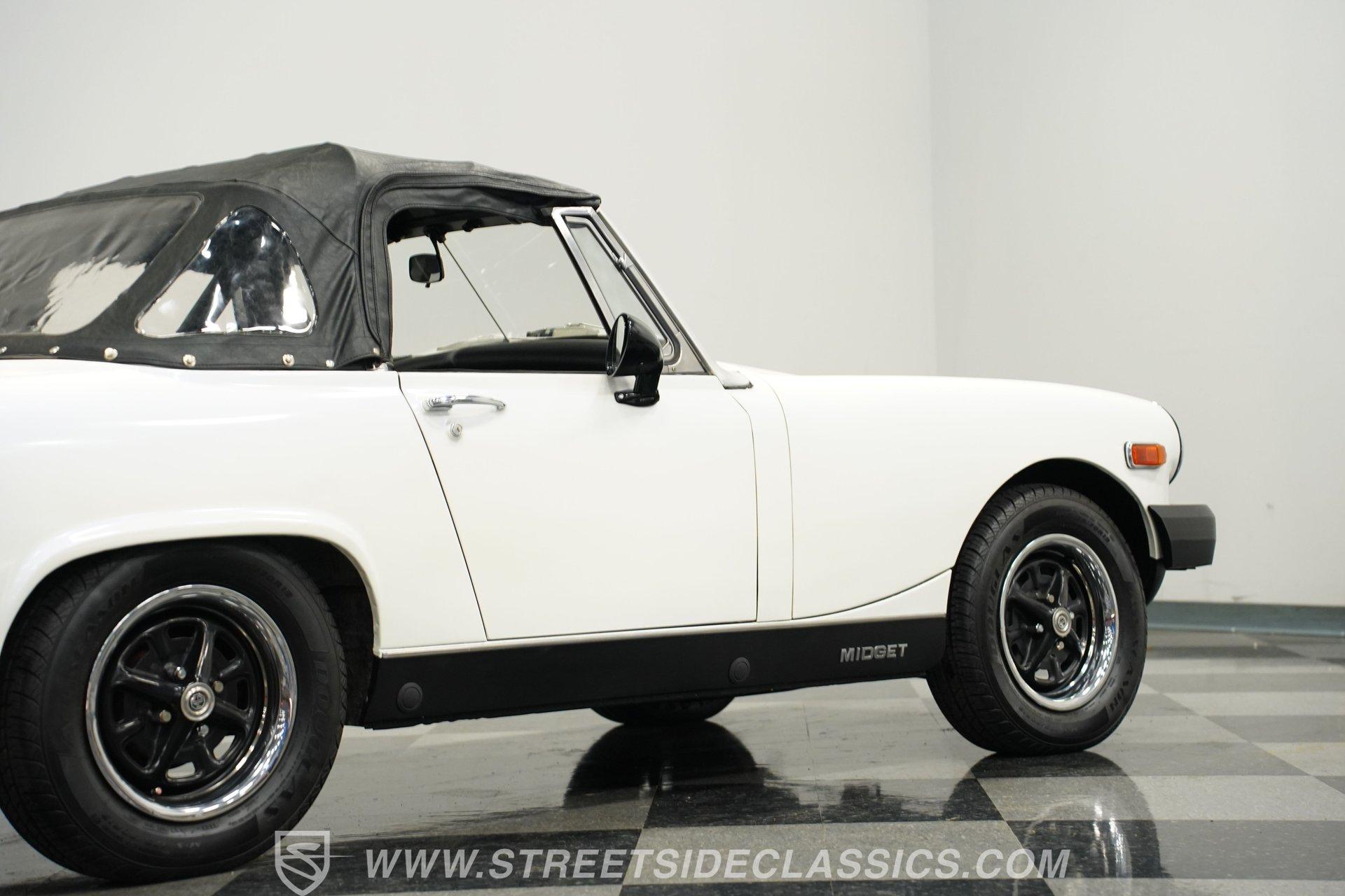 Step back in time and experience the pure joy of driving with this charming 1975 MG Midget. This classic British roadster is more than just a car; it's a symbol of freedom, nostalgia, and spirited motoring. Whether cruising along coastal highways or navigating winding country roads, the MG Midget offers an engaging connection between driver and machine that few modern cars can match. Its timeless design and lively personality make it a standout in any collection or weekend garage. If you're seeking a vintage sports car that promises fun and style, this 1975 MG Midget is ready to deliver. Inside, the MG Midget offers a cozy yet stylish cabin, featuring black vinyl bucket seats that have been fully replaced for comfort and durability. The interior boasts a clean look with minimal wear on the usual touch points, complemented by newer carpeting and a crack-free dash. Modern updates include a Pioneer head unit for your entertainment and the relocated key cylinder to the center stack, blending classic charm with practical enhancements. Under the hood, you'll find a spirited 1493 CC engine paired with a smooth-shifting 4-speed manual transmission. The engine bay is notably clean, featuring a Stormberg 1-barrel carburetor and a freshly painted valve cover. The front suspension has been somewhat refreshed to enhance handling, while the exhaust system delivers a pleasing note that adds to the driving experience. This MG Midget embraces its pure driving roots with no power steering or air conditioning, making every drive a rewarding and connected experience. Highlights: 1975 MG Midget Model 1493 CC Engine 4-Speed Manual Transmission Stormberg 1-Barrel Carburetor Full Repaint With Blue Stripe Black Vinyl Bucket Seats Newer Carpet, Crack-Free Dash Clean Engine Bay Refreshed Front Suspension Front Disc Brakes, Rear Drum Brakes Stock MG Wheels With 175/70R13 Tires Added Roll Bar And Sport Side Mirrors Manual Convertible Top No Power Steering Or Air Conditioning Financing Available Vehicle Protection Plans Available Worldwide Shipping This 1975 MG Midget is a fantastic opportunity for anyone looking to own a classic British roadster that is ready to drive and enjoy. Its blend of vintage appeal, solid mechanical condition, and tasteful updates make it a great buy for both collectors and enthusiasts. Call, email, or come visit our showroom today!
