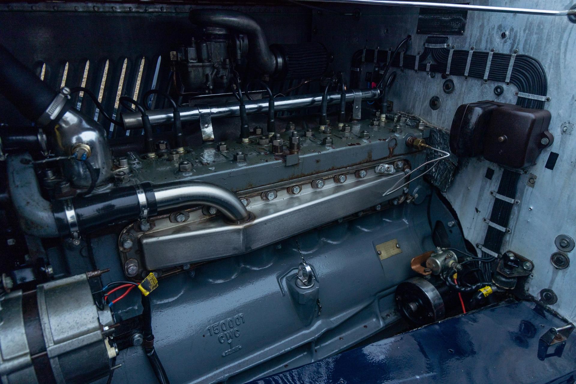 This Fairmile II delivers all of that—and more. It has been fully restored, yet without sacrificing its authenticity. The restoration and mechanical refurbishment were carried out with care and attention to detail, and the car now presents in very fine, well-kept condition. The proportions are elegant, the finish is of high quality, and the level of luxury is deliberately understated—perfectly in keeping with the character this Railton conveys. Power comes from a 4.2-liter straight-eight side-valve engine that runs beautifully and remains a genuine pleasure to drive. Torque is available from low revs, and the engine is impressively smooth.