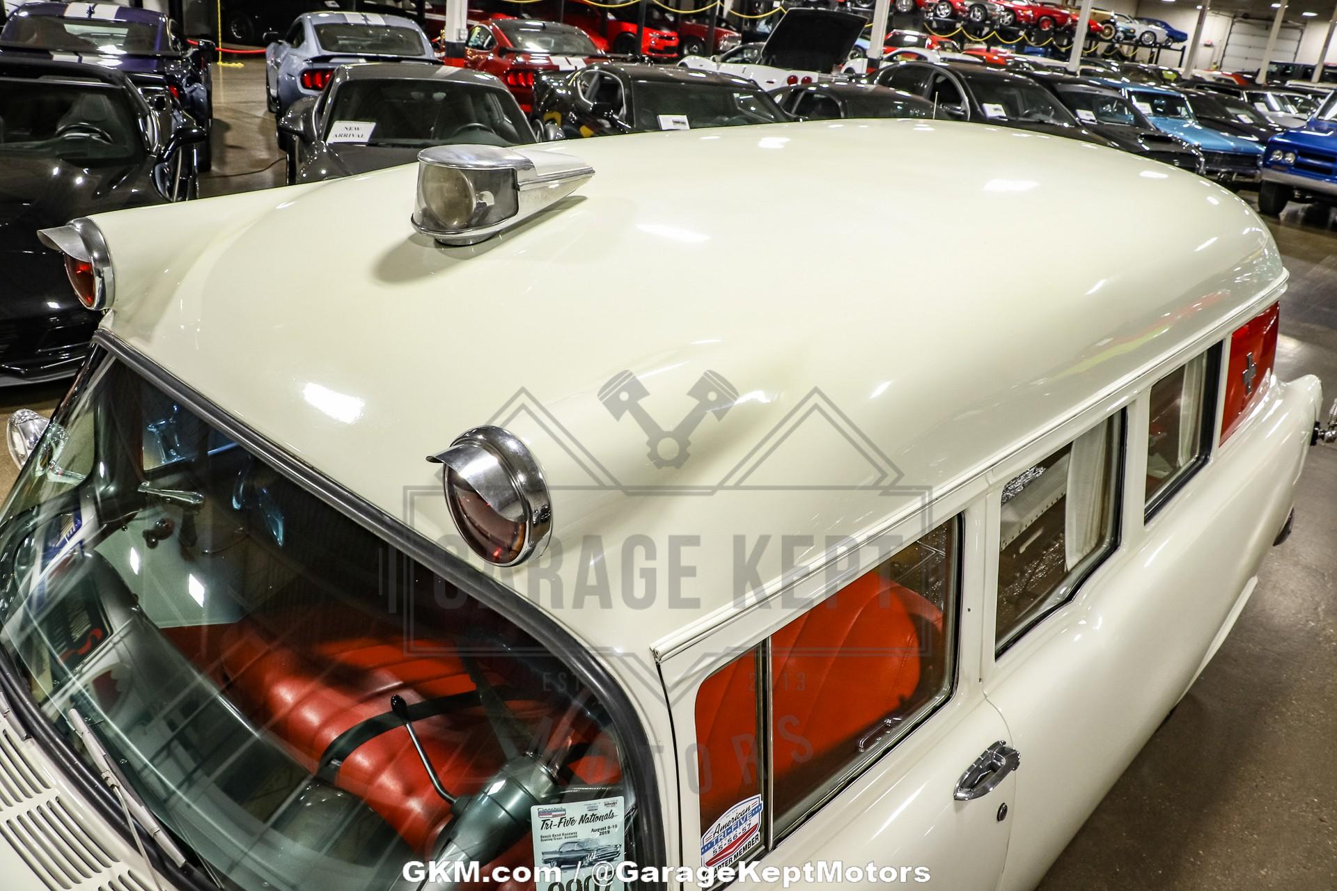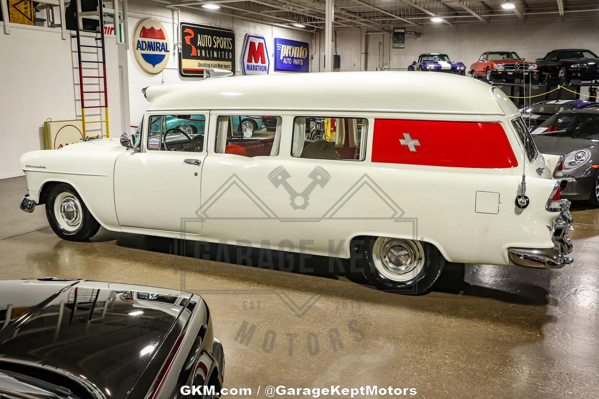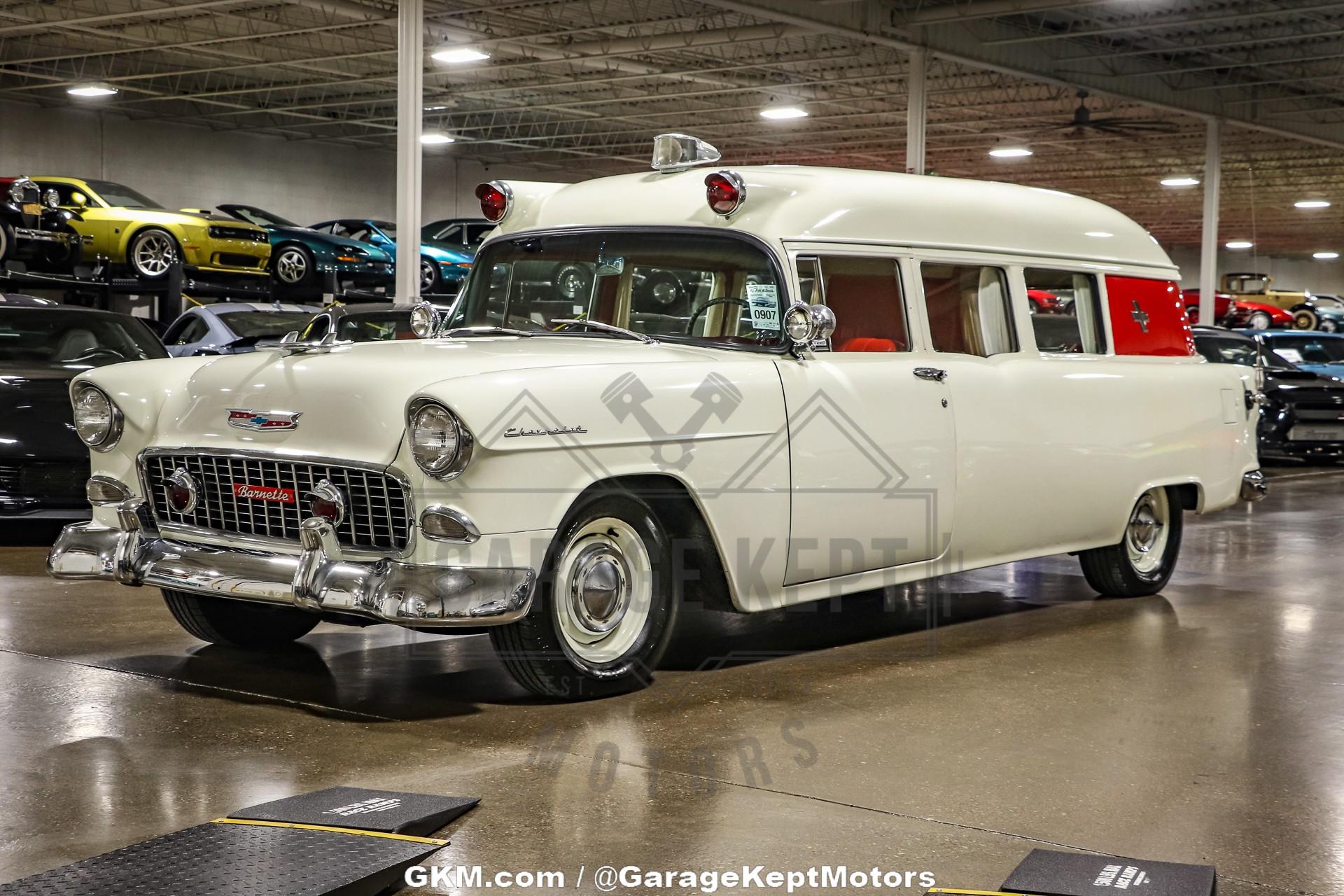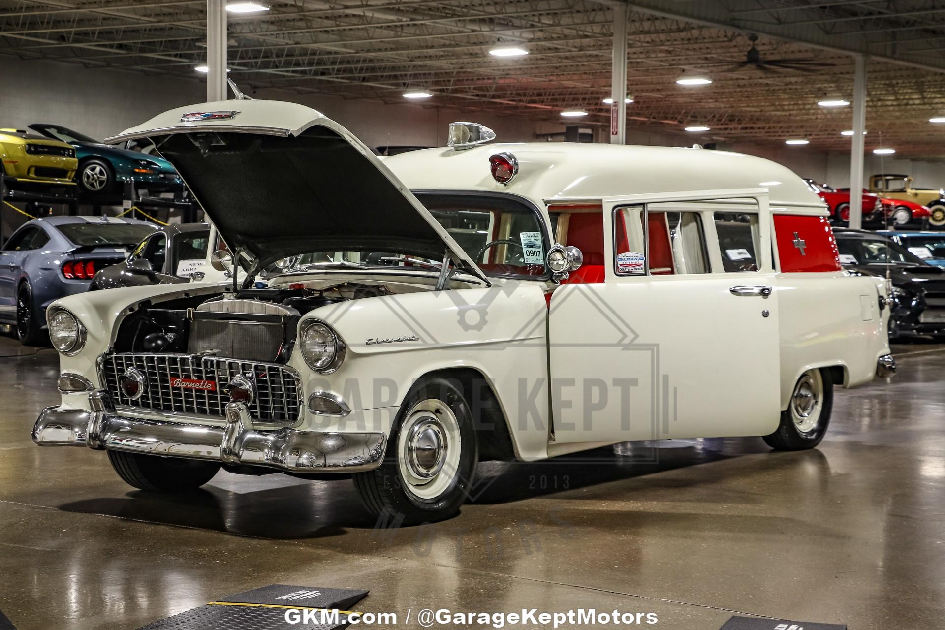 1955 Chevrolet 150 Ambulance - Same Owner Since 1989 - Replacement 350ci V8- 3 Speed Manual Transmission With Overdrive- White Exterior- Red InteriorThis 1955 Chevrolet 150 Ambulance is a rare and fascinating piece of American automotive and emergency service history. Based on Chevrolet?s entry-level 150 series, this unique vehicle blends classic mid-century styling with the specialized craftsmanship of a coach-built ambulance conversion. With its timeless two-door wagon body and long roofline, it represents a period when utility vehicles were built with both durability and distinctive character.Under the hood sits a replacement 350ci V8 paired with a 3-speed manual transmission with overdrive, giving this vintage rig more power and usability than it likely had when new. It?s a smooth-running and engaging setup, ideal for weekend cruises or local shows where its rarity will undoubtedly draw a crowd. The 150 Ambulance retains its period-correct simplicity but benefits from the reliability and serviceability of Chevrolet?s legendary small-block V8.Finished in white over a red interior, the color combination captures the classic look of 1950s service vehicles, while maintaining a clean and honest appearance. The interior still carries a sense of its utilitarian past, yet offers a nostalgic charm that only a vehicle of this era can provide.Owned by the same caretaker since 1989, this 1955 Chevrolet 150 Ambulance has clearly been cherished for decades. Whether you?re a collector of vintage Chevrolets, emergency vehicles, or simply a fan of rare Americana, this unique piece offers a blend of history, originality, and classic style that?s impossible to replicate.