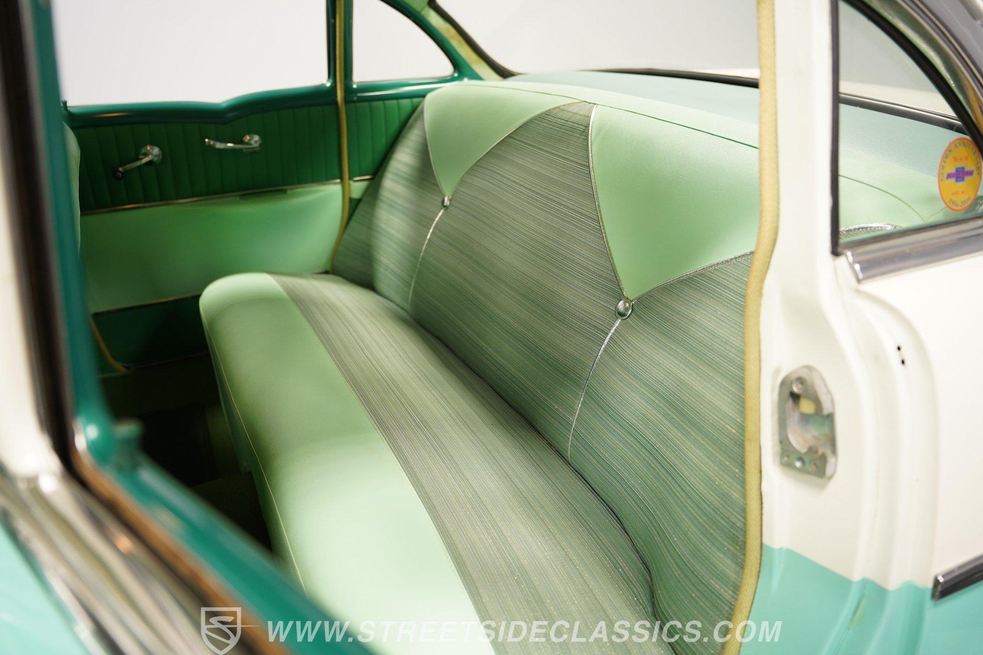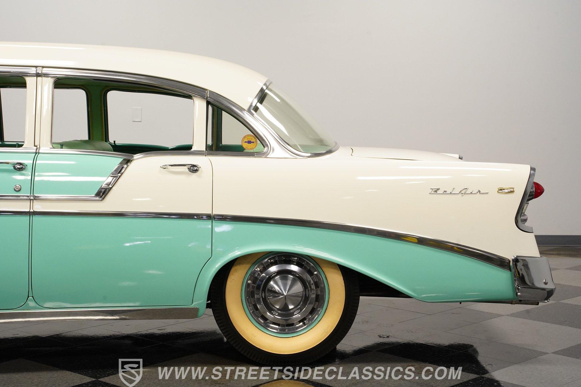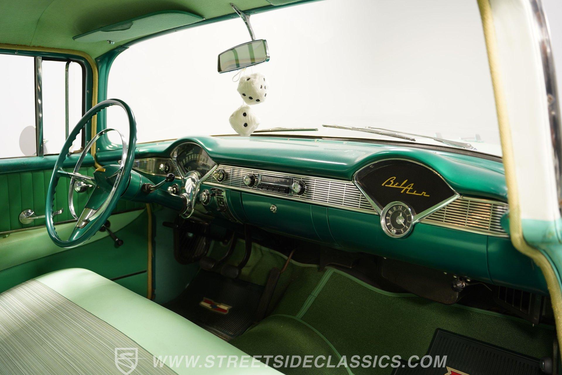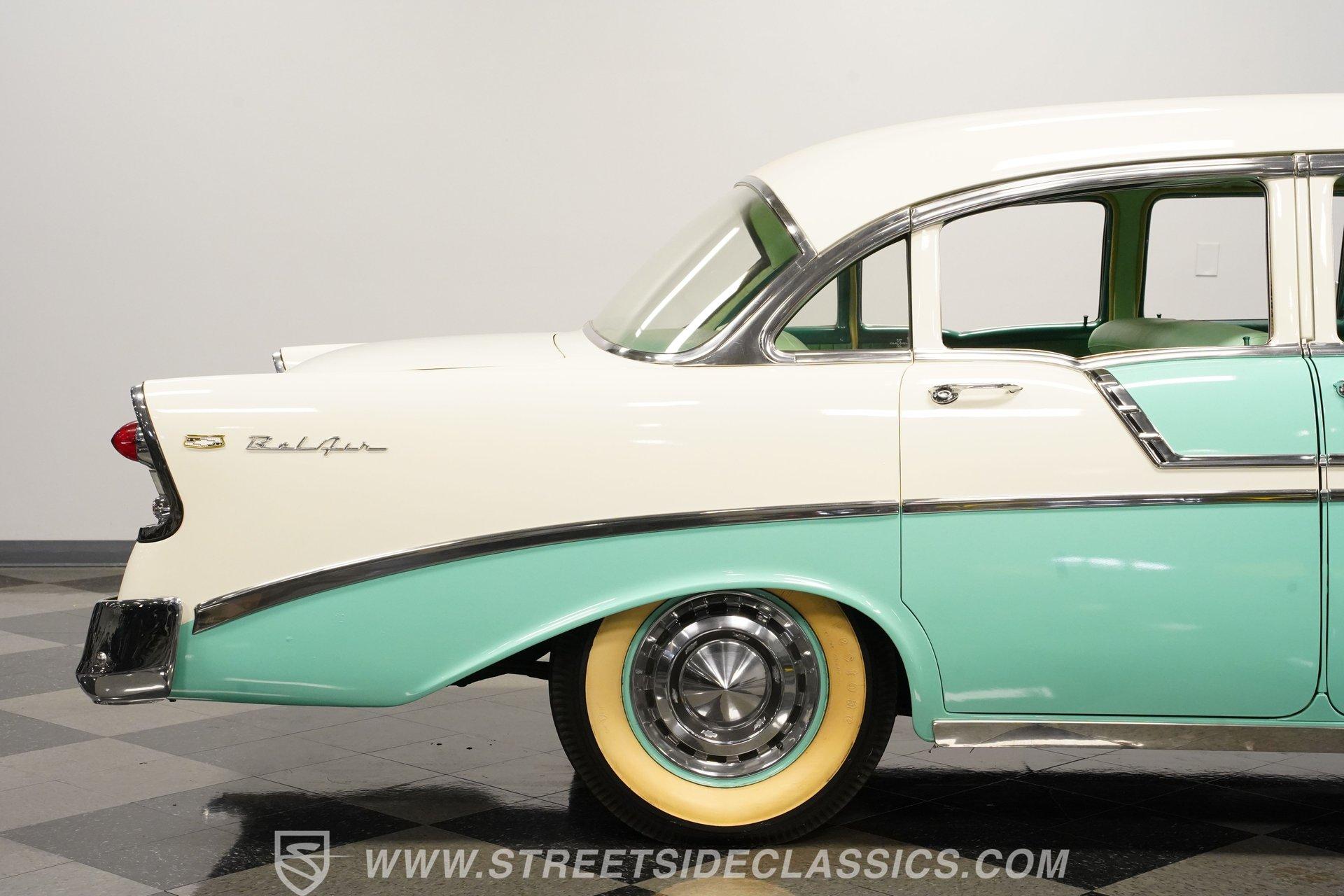 Owning a classic car is more than just transportation – it's about embracing a piece of history and reliving the golden era of automotive design. The 1956 Chevrolet Bel Air is a shining example of mid-century American style and craftsmanship, representing an era when cars were built to turn heads and ignite passion. This timeless icon combines nostalgic charm with a sturdy feel on the road, offering a unique driving experience that few modern vehicles can match. If you're looking to add a genuine classic to your collection or simply want to cruise in style, the 1956 Chevrolet Bel Air is an opportunity worth considering. Step inside this beautifully maintained interior where the front and rear seats look nearly new, boasting very minor wear that speaks to careful use over the years. The carpet fits well and remains in good shape, while the factory dash retains its original appearance with clear, readable gauges. The steering wheel complements the vintage aesthetic, and the glass is in good condition. Overall, the interior is nicely preserved with a classic vinyl finish that enhances its authentic appeal. Under the hood, the Bel Air is powered by a 235 cubic inch inline-six engine, delivering a smooth and solid cruising power that is true to its era. Paired with a 3-speed manual transmission, this setup offers a classic driving engagement, allowing you to connect with the road in a way that modern automatics rarely provide. Steering is smooth and responsive, contributing to the car's enjoyable handling. The engine bay presents nicely, maintaining its factory appearance and showcasing the car's original mechanical character. Highlights 1956 Chevrolet Bel Air Model 235 Inline 6 Engine 3-Speed Manual Transmission Factory Two-Tone Paint White Wall Tires Chrome Exhaust Tip Hidden Gas Cap Vinyl Interior Front And Rear Seats Look New Build Receipts Available Financing Available Vehicle Protection Plans Available Worldwide Shipping This 1956 Chevrolet Bel Air makes a fantastic classic cruiser or show car, combining vintage style with dependable mechanical components. It's a solid choice for anyone looking to enjoy the nostalgia and driving pleasure that only a true classic can offer. Don't miss your chance to own this iconic piece of automotive history. Call, email, or come visit our showroom today!