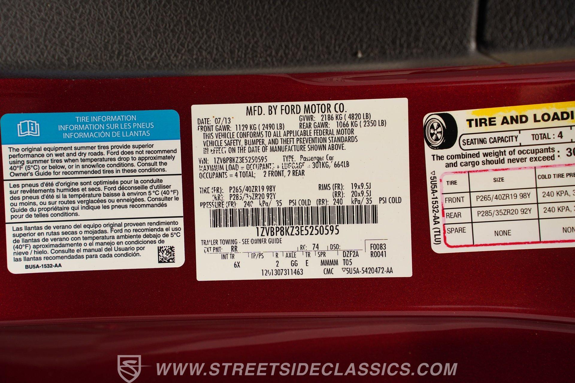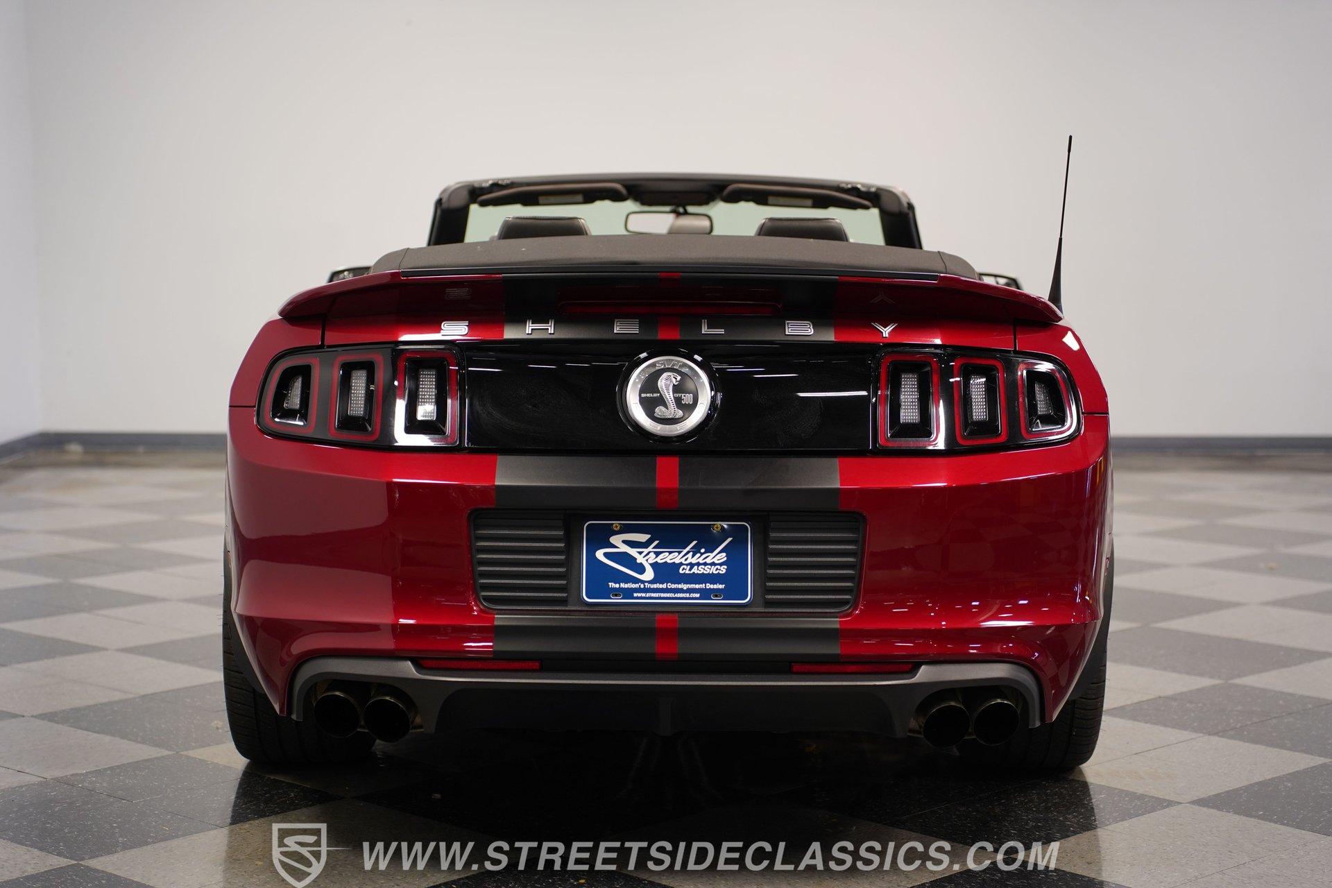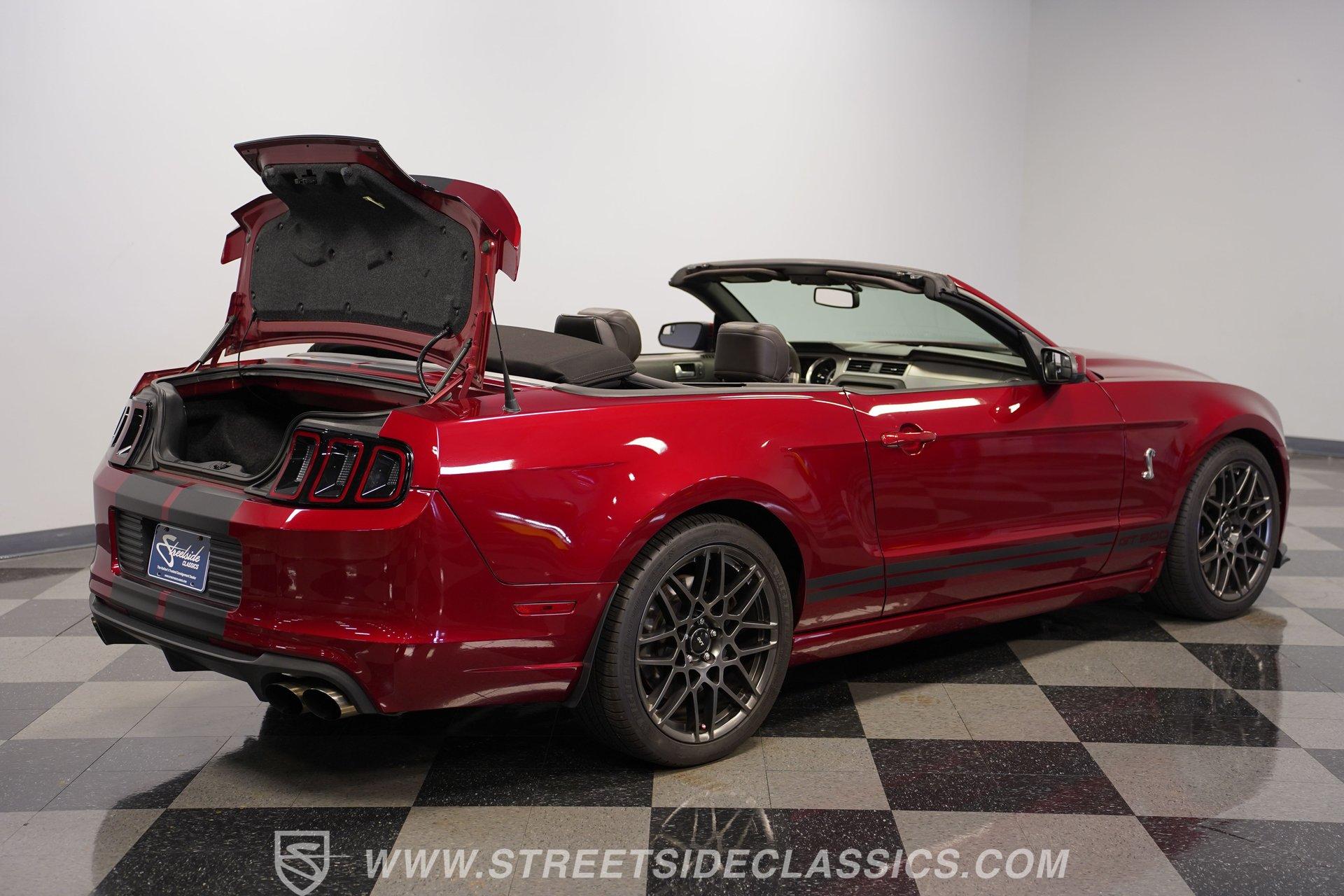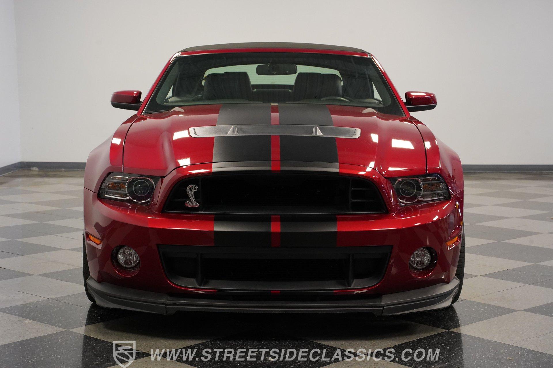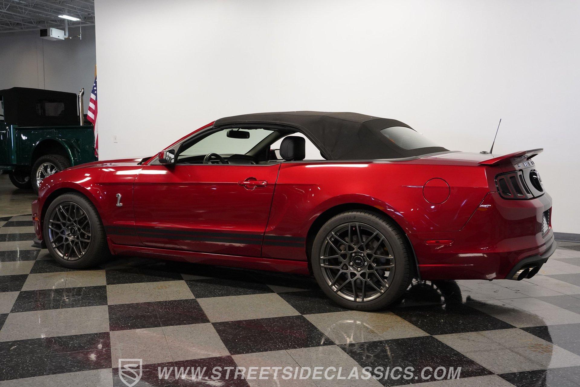 This Ruby Red 2014 Ford Mustang Shelby GT500 Convertible is a force to be reckoned with, packing a supercharged punch beneath its sleek exterior. With only 35,640 miles on the odometer, this drop-top Shelby is ready to unleash its fury on the open road. The black stripes slicing through the Ruby Red paint job add an extra dose of attitude, while the 19" front and 20" rear wheels wrapped in high-performance tires provide the grip to match the Shelby's immense power. And when the sun's out, just drop the well-maintained black convertible top and let the wind rush through your hair as you unleash all 662 horsepower. Inside, the black Recaro seats with matching inserts invite you to settle in for a thrilling ride. These performance-oriented buckets hold you snugly in place as you push this Shelby to its limits. The leather-wrapped interior is in excellent condition and comes fully loaded with amenities like air conditioning and an upgraded Kenwood touchscreen infotainment center is equipped with Bluetooth, Sirius XM, Apple CarPlay and Andriod Auto to keep you comfortable and entertained on your high-speed adventures. Unleash the power of the 5.8L V8 engine, topped with a Gen 3 VMP blower and a host of other Shelby performance upgrades. This powerplant is built to impress, with power channeled through a slick-shifting Tremec TR-6060 6-speed manual transmission. With Ford Performance mufflers, this Shelby produces a spine-tingling soundtrack to match its jaw-dropping acceleration. And when it's time to rein in all those horses, the Brembo brakes are up to the task. HIGHLIGHTS: 5.8L V8 Supercharged Engine Gen 3 VMP Blower Tremec TR-6060 6 Speed Manual Transmission 3.31 Gears SVT Performance Adaptive Suspension with Different modes 36,640 Miles from New Brembo Power Disc Brakes Ruby Red Paint with Black Stripes 19" Front Wheels / 20" Rear Wheels 265/40ZR19 Front Tires / 285/35ZR20 Rear Tires Black Convertible Top Glass Rear Window and Defroster Black Recaro Seats with Black Inserts Leather Interior Air Conditioning Kenwood Touchscreen Infotainment System Owner's Manual With its potent supercharged V8, track-tuned suspension, and head-turning style, this 2014 Ford Mustang Shelby GT500 Convertible is the total package. Whether you're carving up back roads or cruising the strip, this Shelby delivers thrills like few other cars can. Don't miss your chance to put this low-mileage, high-horsepower convertible in your garage. Call today!