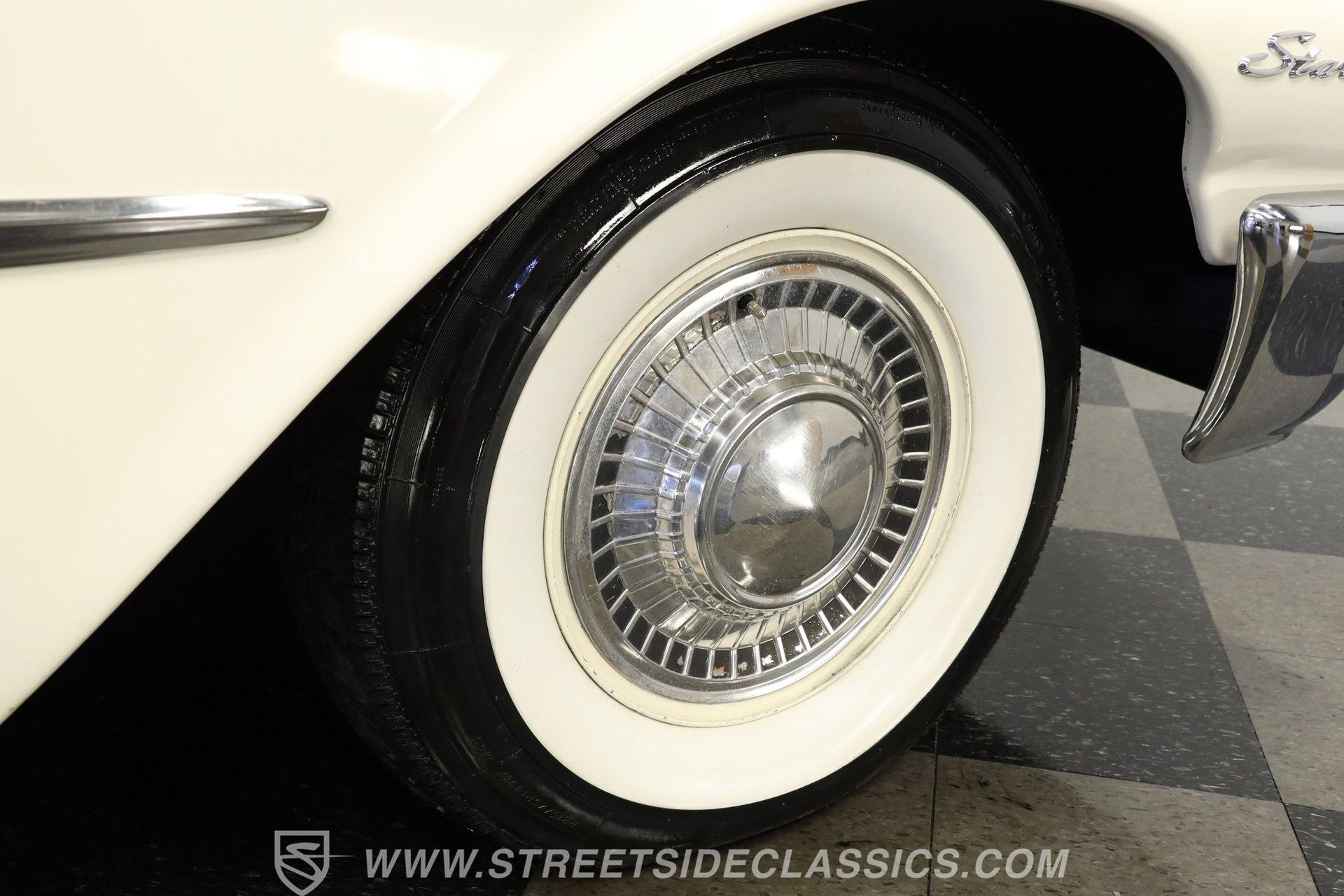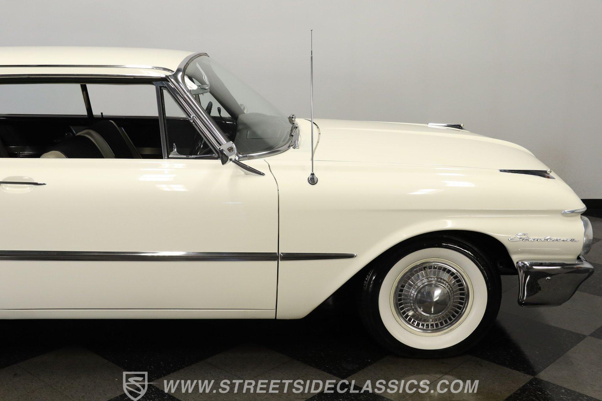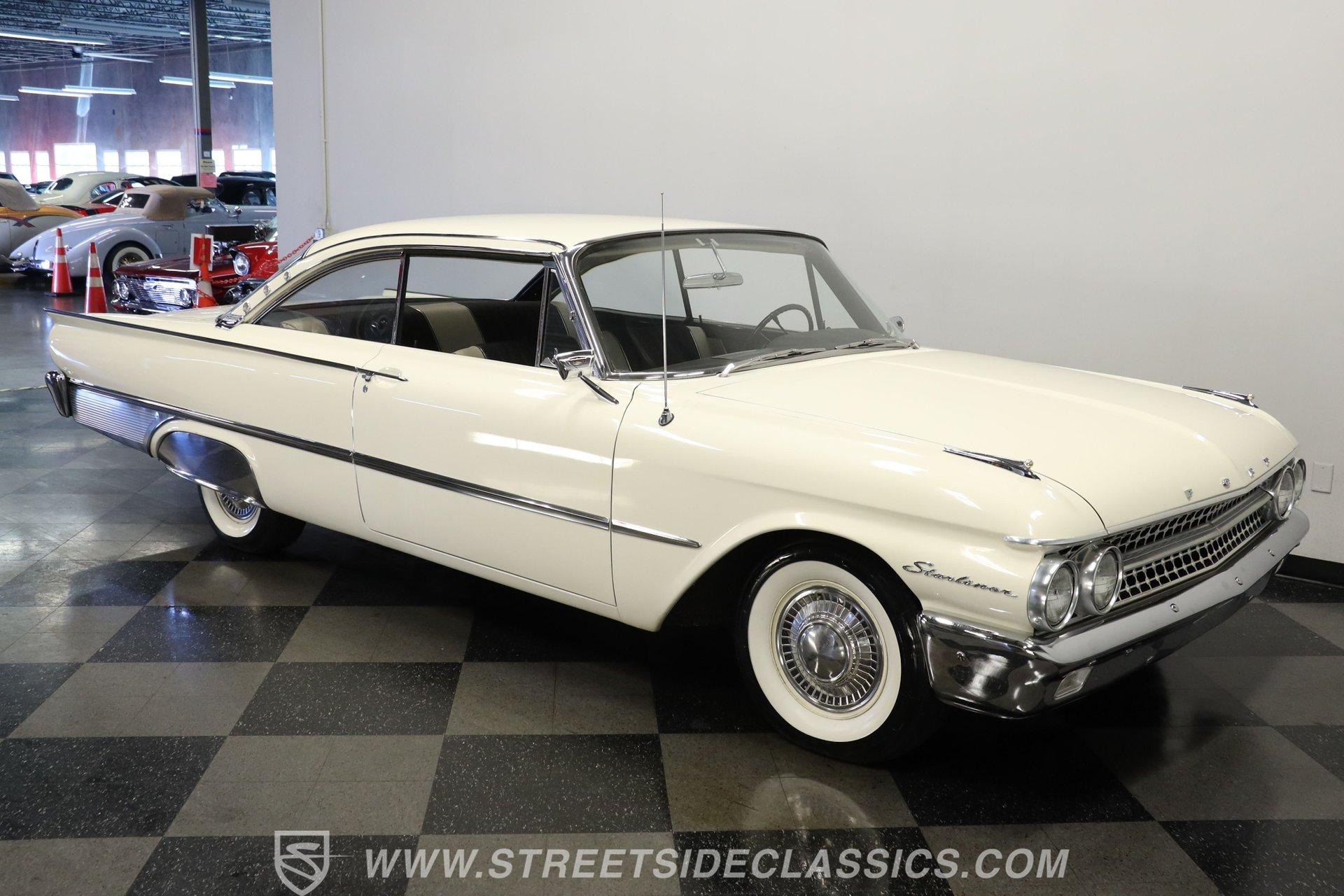 Experience the timeless elegance and rare charm of a classic American icon with this 1961 Ford Galaxie Starliner. This top-trim Galaxie coupe boasts an exclusive bubble-back hardtop design that sets it apart from any other Ford of its era. Its distinctive silhouette and limited production make it a coveted collector's piece that embodies the spirit of early 1960s automotive style and innovation. Owning this Starliner means embracing a piece of history that turns heads and sparks conversations wherever it goes. Don't miss your chance to own this beautifully preserved 1961 Ford Galaxie Starliner. Step inside to discover an interior that blends factory-correct two-tone styling with comfort and classic appeal. The cabin features a split front bench seat upholstered in original white and black vinyl and cloth, complemented by clean door panels and a well-maintained black dash pad with clear gauges. A vintage Sanyo cassette receiver sits under the dash, adding a nostalgic touch to your driving soundtrack. The interior's overall condition is very good, with only light age and wear, making it a welcoming space for cruising in style. Under the hood, this Starliner is powered by a rebuilt 352 V8 engine paired with a smooth-shifting 3-speed automatic transmission. The engine bay is well maintained with appropriate light age and wear, featuring a 2-barrel carburetor, power brakes with a single master cylinder, and dual exhaust for that classic V8 growl. The suspension and brakes remain factory style with power drum brakes front and rear, while the 14-inch wheels are wrapped in deep-tread Coker Classic WWW tires, ensuring a confident and comfortable ride. This combination delivers an authentic driving experience that honors the car's heritage. Highlights: 1961 Ford Galaxie Starliner Coupe Exclusive Bubble-Back Hardtop Design 352 V8 Engine, Rebuilt 3-Speed Automatic Transmission Power Brakes With Single Master Cylinder Dual Exhaust System Factory Style Suspension Front And Rear Power Drum Brakes Front And Rear 14" Factory Style Wheels Coker Classic WWW Tires, Deep Tread Factory Correct Two-Tone Vinyl And Cloth Interior Sanyo Cassette Receiver Under Dash Factory Correct Corinthian White Exterior Paint Financing Available Vehicle Protection Plans Available Worldwide Shipping This 1961 Ford Galaxie Starliner is a beautifully preserved classic that offers a unique blend of style, performance, and historical significance. Whether you're a seasoned collector or an enthusiast looking to own a true piece of automotive art, this Starliner is a fantastic choice. Call, email, or come visit our showroom today! We can assist you with getting an Extended Vehicle Service Plan from Freedom Warranty, which provides comprehensive coverage that can save thousands of dollars on unexpected repairs. Inquire for more details and pricing!