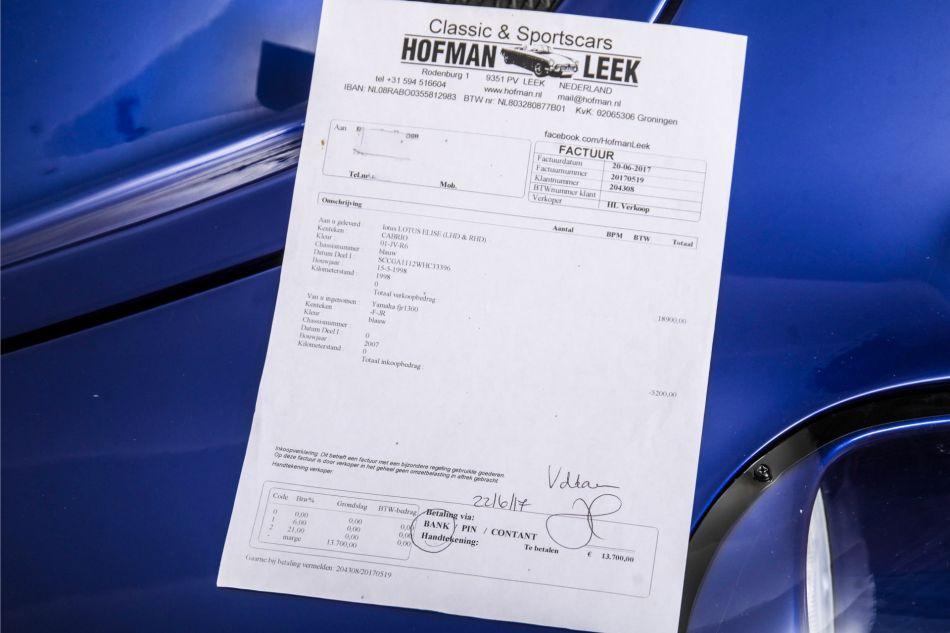 A beautiful Lotus Elise S1 finished in azure blue! This example is in neatly maintained condition both optically and technically. The plastic body is painted in brilliant Azure blue metallic paint, both body and paintwork are sleek and the whole is a feast for the eyes. Only the essentials were given a place in the interior, obviously to keep the overall weight as low as possible. The beige leather-upholstered seats offer a great seat, even taller drivers can do just fine in the Lotus Elise. This is a left-hand drive example. The Elise was converted to left-hand drive by us in 2009. The odometer shows just 38,200 miles. A Lotus Elise is also an interesting investment. The Lotus Elise is a lightweight open sports car built by Lotus. This innovative sports car was presented at the September 1995 Frankfurt Motor Show (initially under project name M1-11) and was the salvation for Lotus. The car has a bonded aluminium chassis, which is very rigid. The bodywork consists of polyester. The car's low weight (initially around 700 kg) ensures high agility and fast acceleration. With maintenance history. Read the article on autovisie highlighting this car with photos here https://www.autovisie.nl/occasions/lichtgewicht-sport-occasion-geeft-bakken-plezier-lotus-elise/.
