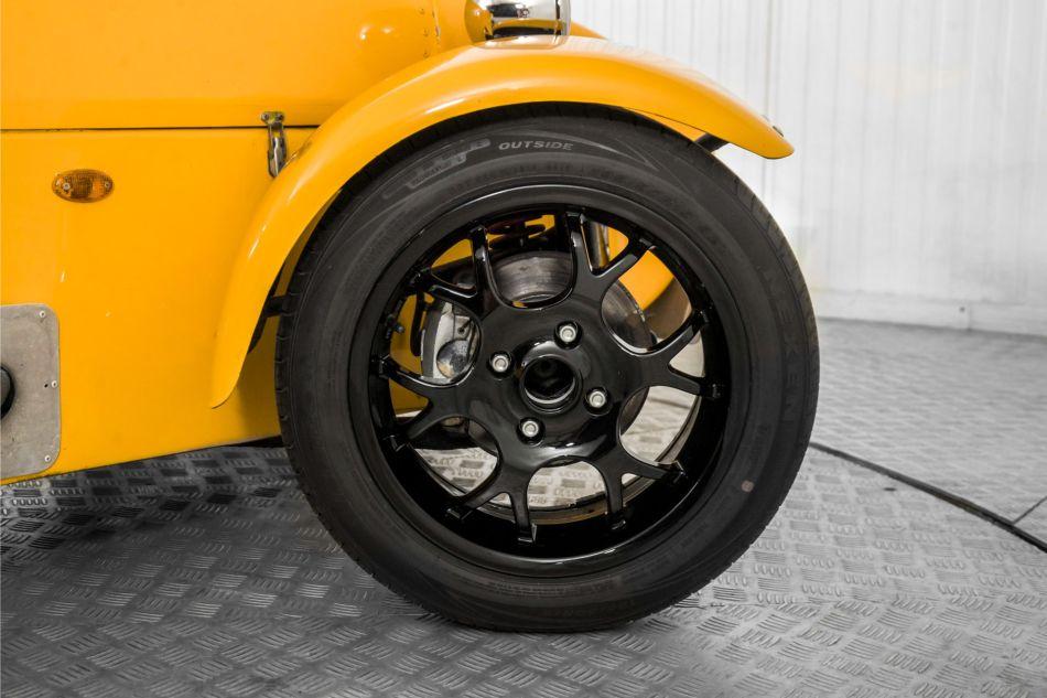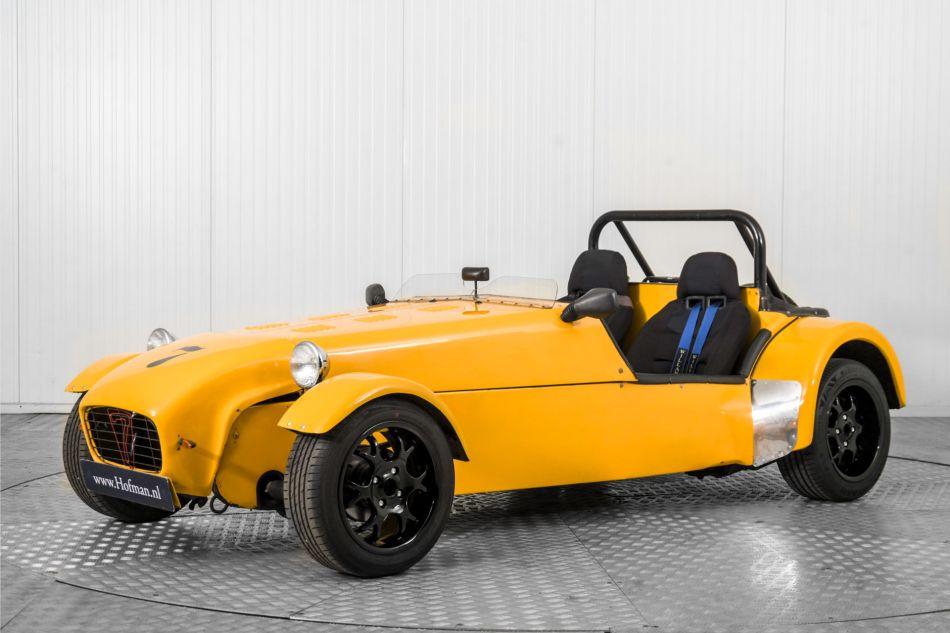 This Robin Hood Super Seven is a striking and sporty classic with its sunny yellow paint and gloss black wheels. Combining playful looks with timeless British charm, this car offers pure driving experience for enthusiasts seeking a truly unique appearance. Equipped with a Ford 2000cc engine with a 5-speed gearbox mated to it. The engine breathes through 2 twin webers, providing enough power for this 730 kg lightweight. it is a copy that builds on Lotus Seven, the icon of lightweight sports cars. With its minimalist design, low weight and direct steering feel, it delivers unparalleled driving pleasure. The reliable four-cylinder engine, rear-wheel drive and open body make every drive an intense, pure experience.