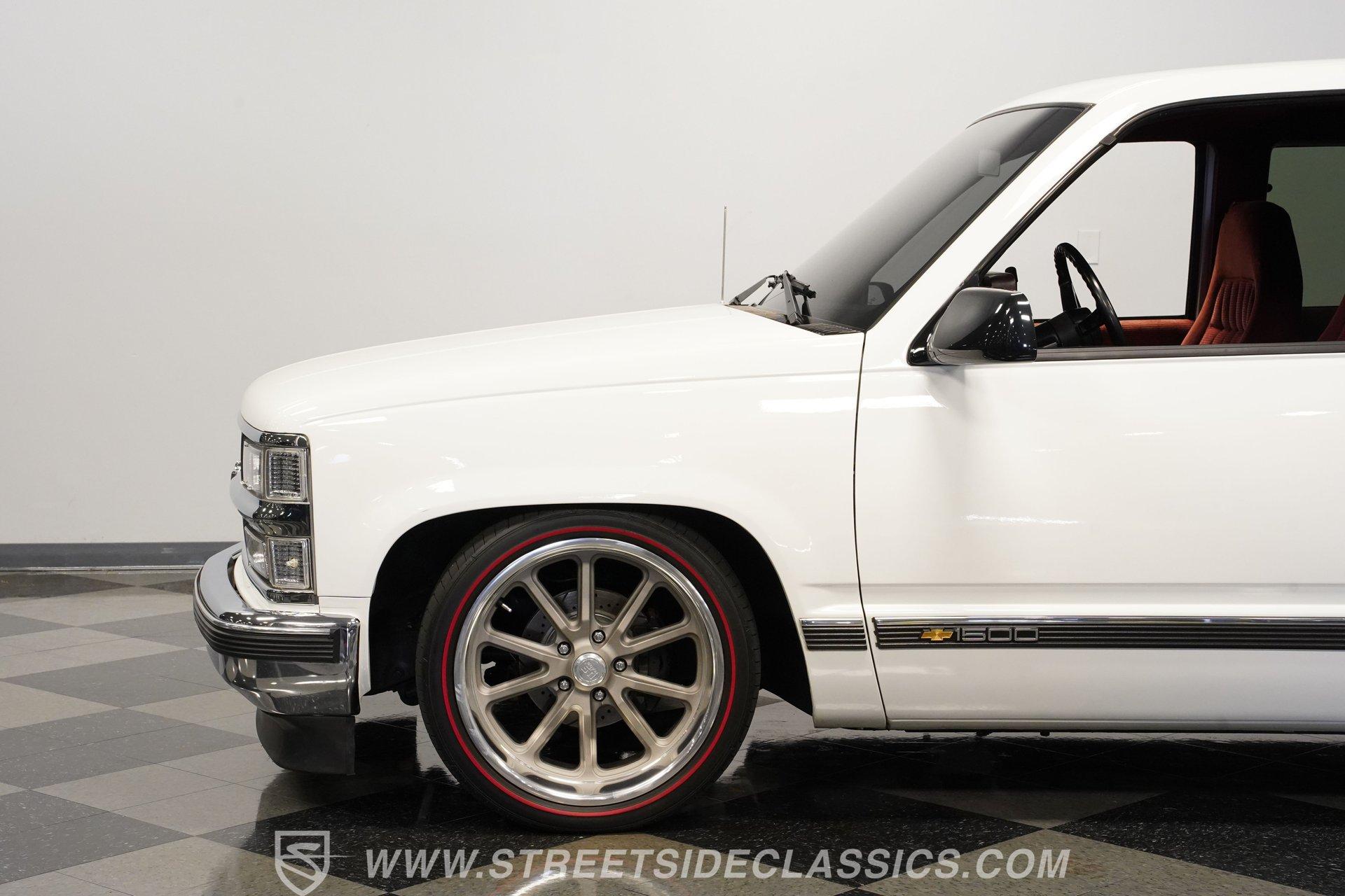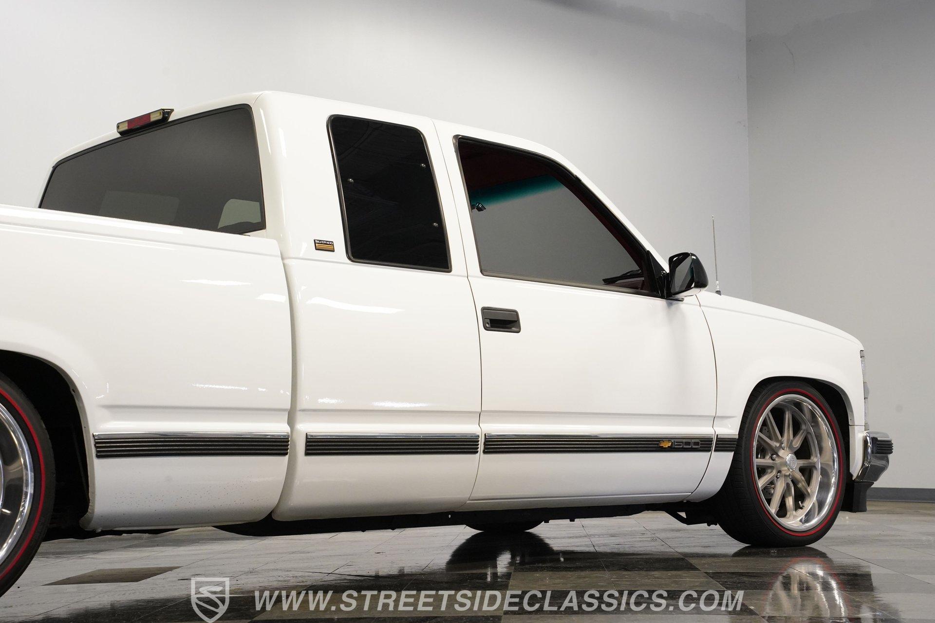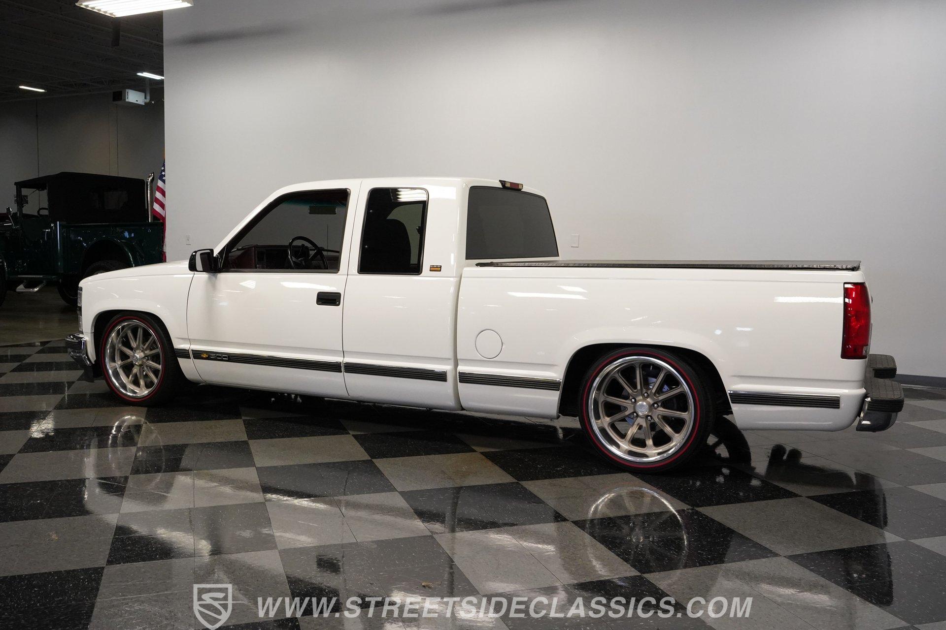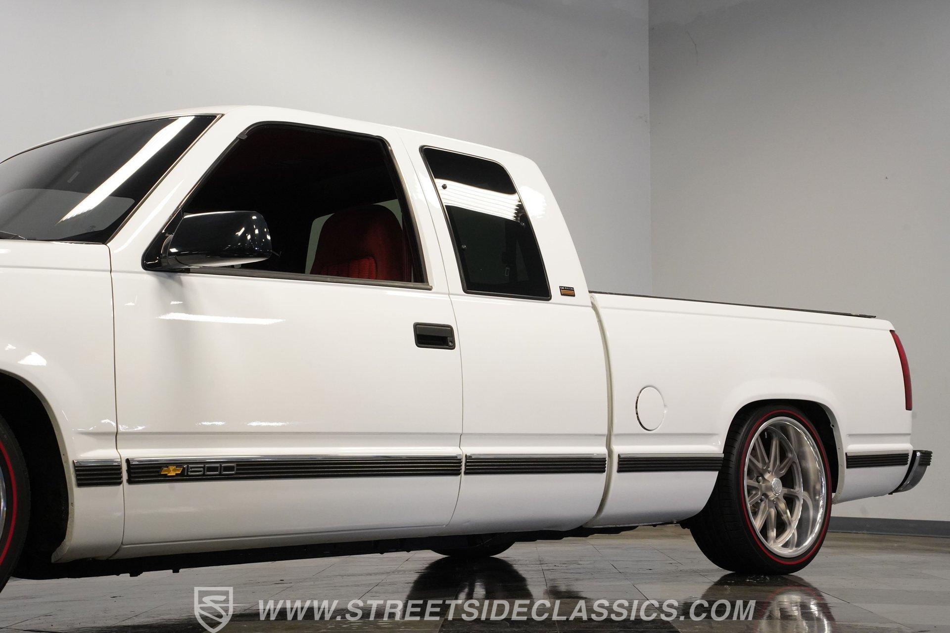 Owning a classic truck is more than just a mode of transportation; it's a statement of style, heritage, and passion for the open road. This 1994 Chevrolet Silverado 1500 Extended Cab captures the spirit of American craftsmanship and rugged utility, blending nostalgia with modern refinements. Whether you're cruising through town or showing off at local car events, this Silverado offers a perfect balance of form and function. Its lowered stance and well-maintained presence invite admiration and promise countless memories behind the wheel. Step inside to experience a very nice, clean interior that combines comfort and functionality. The cloth seats and door cards are in excellent condition, with a quality that suggests careful upkeep or tasteful upgrades. The dash features factory gauges in great shape, complemented by an Alpine stereo head unit seamlessly integrated in place of the original. Carpets have been replaced and fit nicely, while the headliner remains tight and pristine. Controls like power windows, tilt wheel, and cruise control add convenience to this classic cabin. Under the hood, this Silverado is powered by a robust 5.7L TBI V8 engine paired with a smooth-shifting 4-speed automatic transmission. The drivetrain drives out very well, with power steering and power brakes enhancing control and safety. The suspension has been lowered with coil-overs and sway bars, and bushings upgraded for a confident ride. A newer AC compressor keeps the cabin cool, while the factory presentation under the hood remains very tidy. The rear features a 10-bolt axle and power disc brakes ensure reliable stopping power. Highlights 1994 Chevrolet Silverado 1500 Extended Cab 5.7L TBI V8 Engine 4 Speed Automatic Transmission Actual Mileage 99,314 Lowered Suspension With Coil-Overs Power Steering And Power Brakes Four Wheel Disc Brakes Newer Air Conditioning Compressor Factory Style 20" U.S. Mags Wheels 245/40ZR20 Front Tires 275/35ZR20 Rear Tires Cloth Interior With Cruise Control Alpine Stereo With Bluetooth And Aux Well Maintained And Clean Interior Financing Available Vehicle Protection Plans Available Worldwide Shipping This 1994 Chevrolet Silverado 1500 Extended Cab is a fantastic blend of classic style and modern upgrades, making it a great buy for collectors and enthusiasts alike. Its clean presentation, solid performance, and thoughtful enhancements ensure it's ready to enjoy right away. Call, email, or come visit our showroom today!