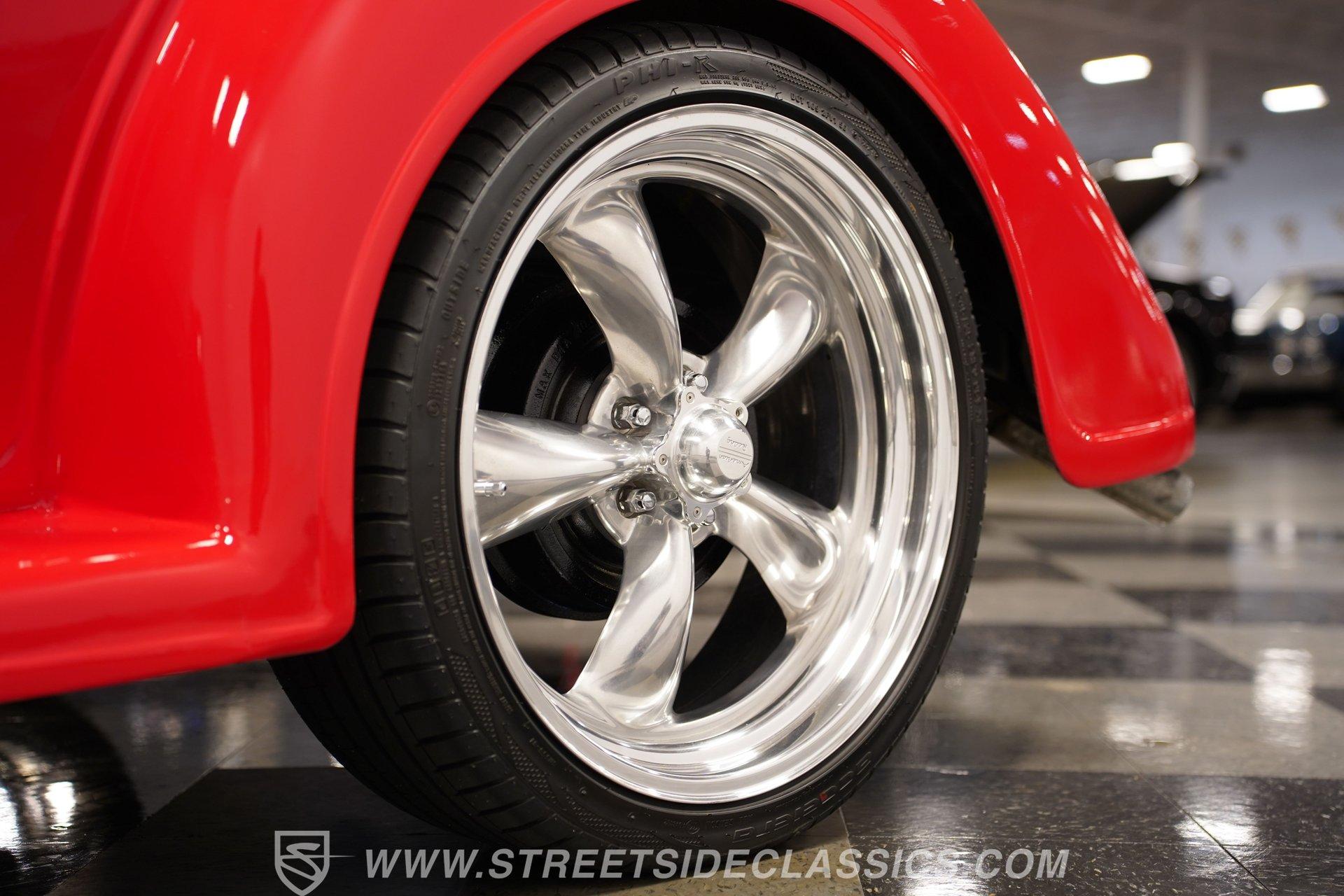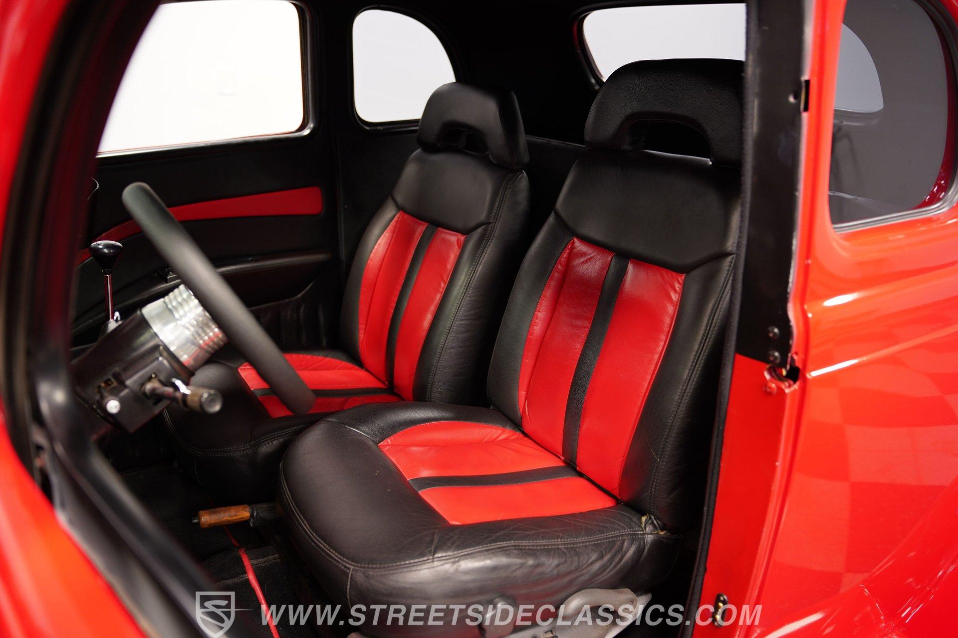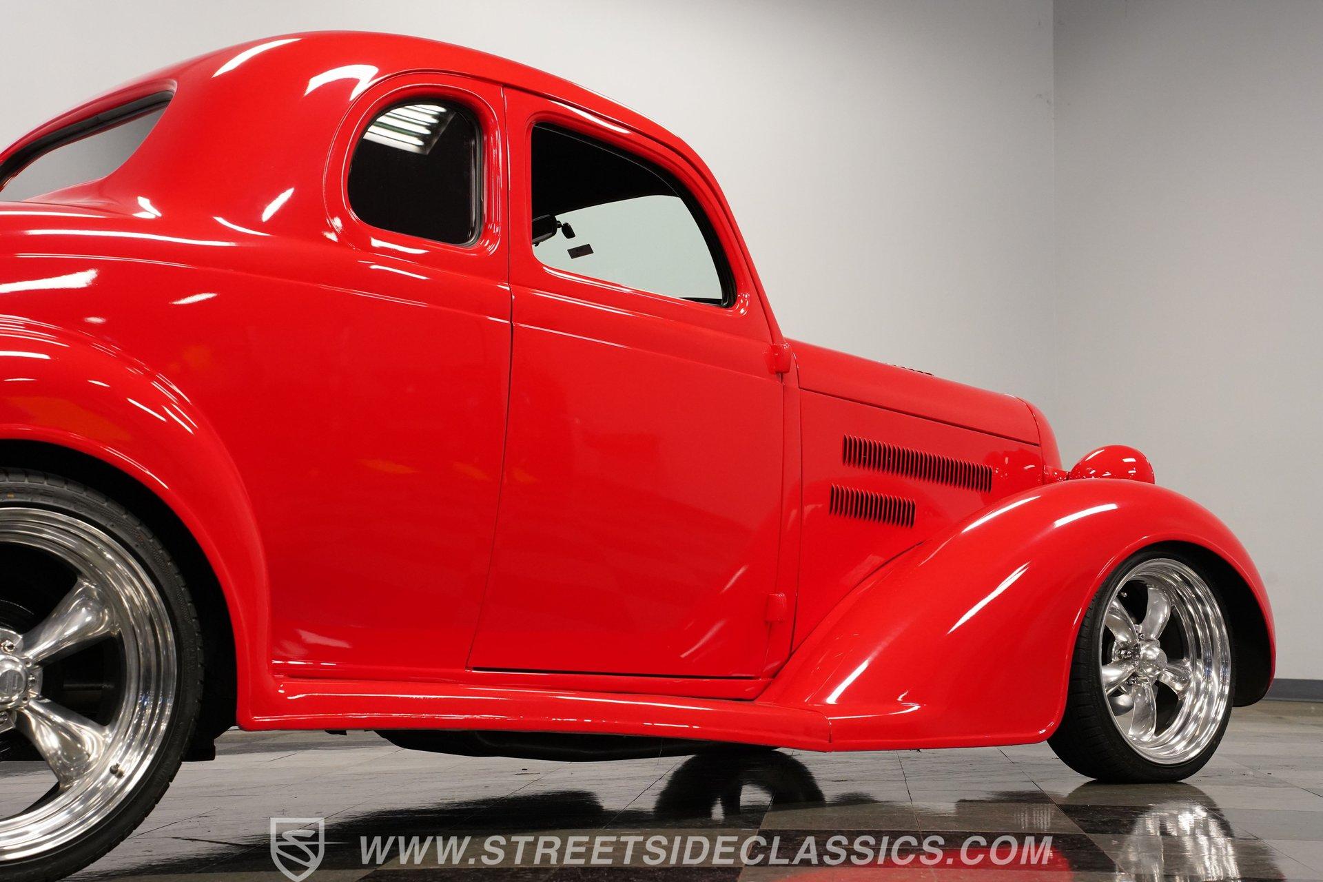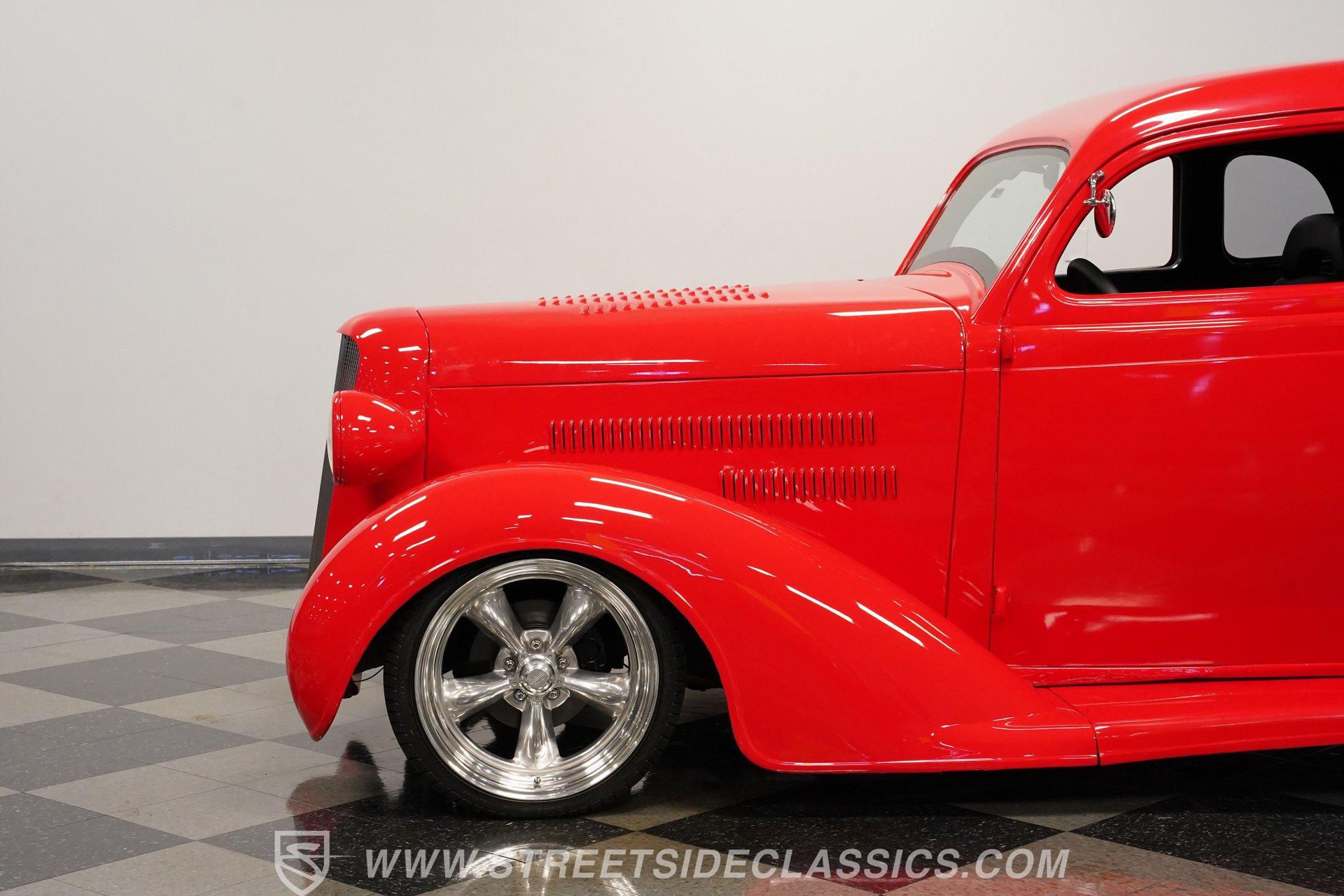 With its vibrant Viper Red paint and a set of staggered 18"/20" American Racing wheels enhancing its low-slung, slightly inclined stance, this 1936 Plymouth Coupe Restomod represents the epitome of street rod aesthetics. Vintage Plymouths from this era have inspired hot-rodders for decades and it takes only a quick glance to see why. It's a great-looking ride that's endlessly stylish with its compact roofline, prominent fenders, and detailed hood louvres. Turn signals seamlessly recessed into the front bumper and flush-mounted taillights add some aftermarket flair to its already considerable curb appeal. The red and black leather interior shows a lot of attention to detail, with a pair of bucket seat covers that match the door panels on each side, and a very cleanly painted dash area that harbors an array of white-faced gauges that really pop against their striking background. This restomodded classic has been outfitted with some comfort and convenience features that will increase your enjoyment during more frequent driving, including air-conditioning, power door locks and windows, and an AM/FM/CD stereo that also includes an auxiliary port to connect additional audio inputs. Some restomods just convey the sense that they've been built mechanically right, and this Plymouth certainly qualifies. Its electronically fuel-injected 5.7-liter LT1 V8 engine starts up easily and pulls with plenty of conviction, sending a commanding exhaust note out of its shorty headers leading to a pair of FlowMaster mufflers. The accompanying 4-speed 4L60E transmission has been the favored component for legions of aftermarket enthusiasts due to its rock-solid dependability and, true to form, it shifts with slip-free precision in this setting. Power steering makes this boulevard cruiser easy to navigate, while power brakes that position discs up front bring prompt, fade-resistant stopping ability. And, with a coilover suspension up front and a four-link suspension in back, it has a surprisingly refined ride, with nimble handling for its segment. HIGHLIGHTS 5.7-LITER LT1 V8 ELECTRONIC FUEL INJECTION 4-SPEED AUTOMATIC 4L60E TRANSMISSION WITH OVERDRIVE SHORTY HEADERS DUAL EXHAUST, WITH FLOWMASTER MUFFLERS COILOVER SUSPENSION AT BOTH ENDS POWER STEERING POWER BRAKES, WITH DISCS UP FRONT STRIKING VIPER RED PAINT STAGGERED 18"/20" AMERICAN RACING WHEELS BLACK AND RED LEATHER UPHOLSTERY BUCKET SEATS POWER WINDOWS AND DOOR LOCKS TILT COLUMN AM/FM/CD STEREO AIR CONDITIONING Guaranteed to turn heads wherever it may roam, and a lot of fun to drive to boot, this 1936 Plymouth Coupe Restomod would be a great fit for the enthusiast who looks forward to exhilarating weekend cruises, and it could also be transformed into a bona fide contender on the local car show circuit. Call today!