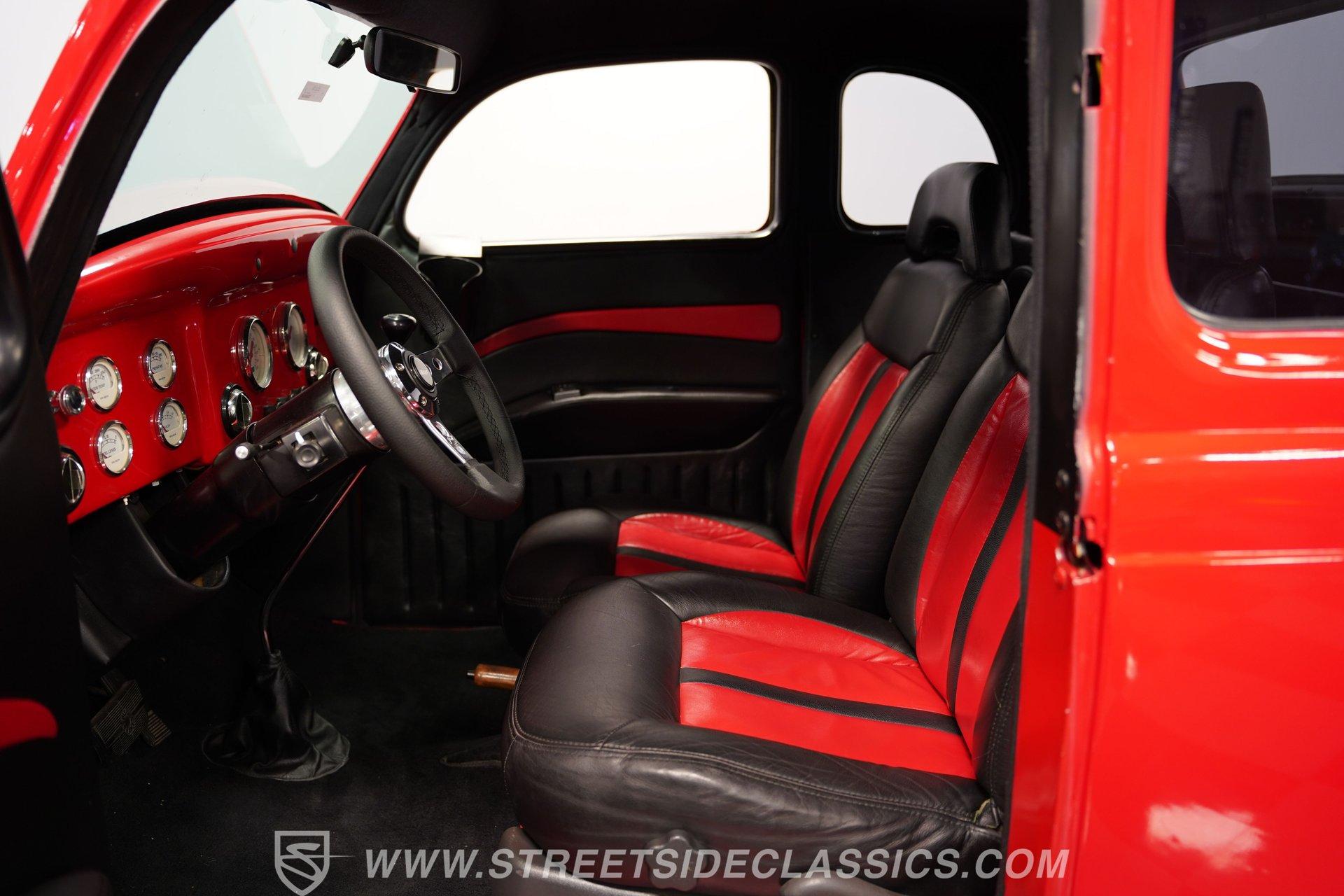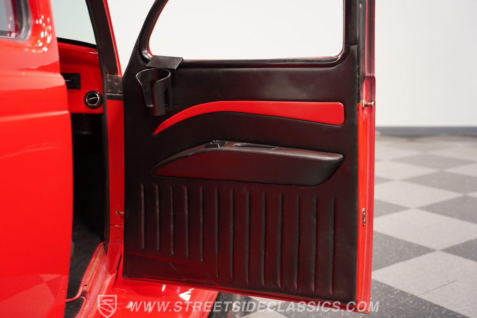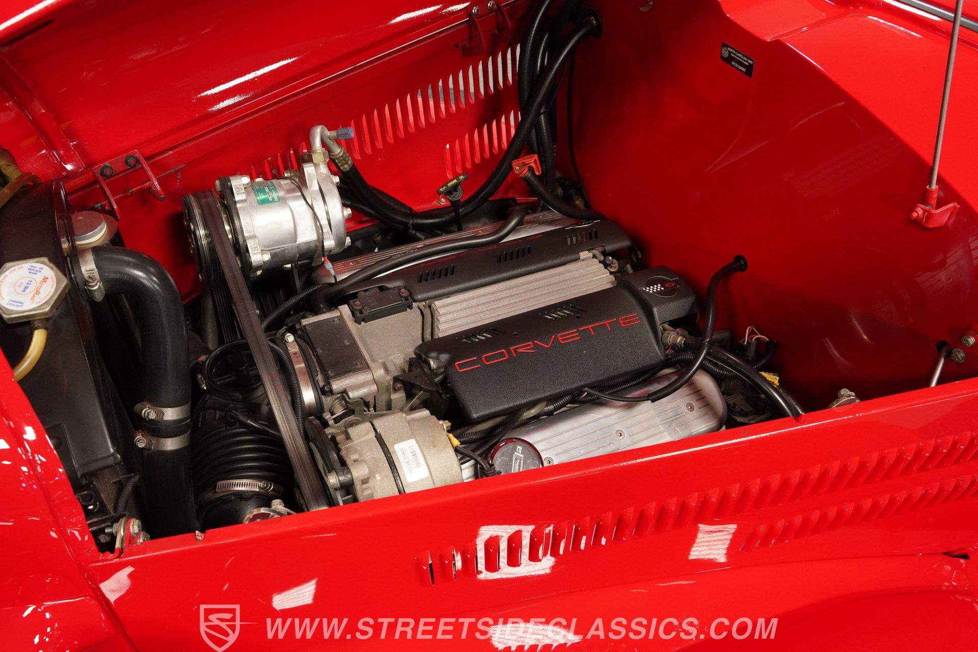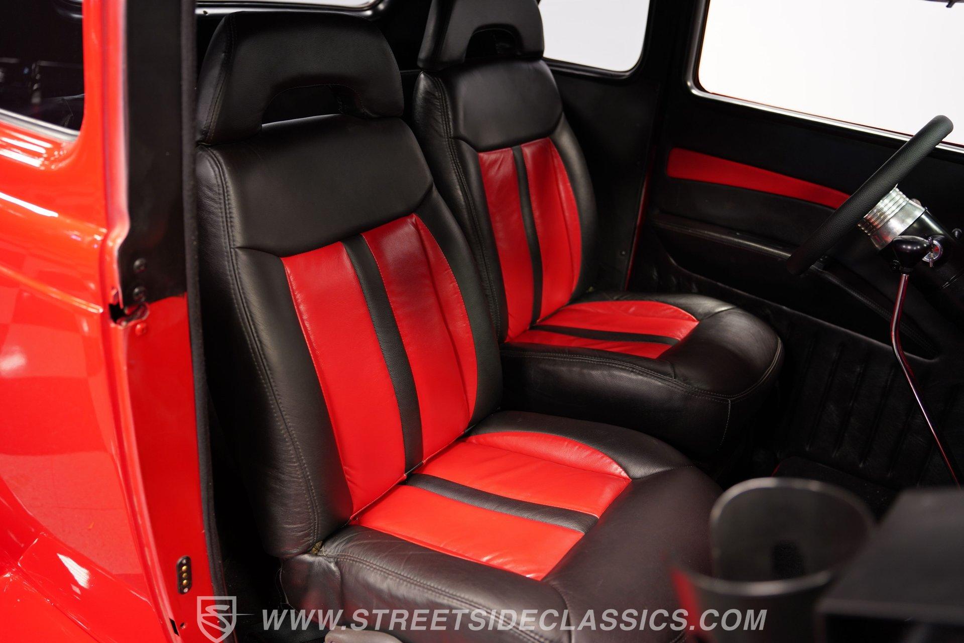 With its vibrant Viper Red paint and a set of staggered 18"/20" American Racing wheels enhancing its low-slung, slightly inclined stance, this 1936 Plymouth Coupe Restomod represents the epitome of street rod aesthetics. Vintage Plymouths from this era have inspired hot-rodders for decades and it takes only a quick glance to see why. It's a great-looking ride that's endlessly stylish with its compact roofline, prominent fenders, and detailed hood louvres. Turn signals seamlessly recessed into the front bumper and flush-mounted taillights add some aftermarket flair to its already considerable curb appeal. The red and black leather interior shows a lot of attention to detail, with a pair of bucket seat covers that match the door panels on each side, and a very cleanly painted dash area that harbors an array of white-faced gauges that really pop against their striking background. This restomodded classic has been outfitted with some comfort and convenience features that will increase your enjoyment during more frequent driving, including air-conditioning, power door locks and windows, and an AM/FM/CD stereo that also includes an auxiliary port to connect additional audio inputs. Some restomods just convey the sense that they've been built mechanically right, and this Plymouth certainly qualifies. Its electronically fuel-injected 5.7-liter LT1 V8 engine starts up easily and pulls with plenty of conviction, sending a commanding exhaust note out of its shorty headers leading to a pair of FlowMaster mufflers. The accompanying 4-speed 4L60E transmission has been the favored component for legions of aftermarket enthusiasts due to its rock-solid dependability and, true to form, it shifts with slip-free precision in this setting. Power steering makes this boulevard cruiser easy to navigate, while power brakes that position discs up front bring prompt, fade-resistant stopping ability. And, with a coilover suspension up front and a four-link suspension in back, it has a surprisingly refined ride, with nimble handling for its segment. HIGHLIGHTS 5.7-LITER LT1 V8 ELECTRONIC FUEL INJECTION 4-SPEED AUTOMATIC 4L60E TRANSMISSION WITH OVERDRIVE SHORTY HEADERS DUAL EXHAUST, WITH FLOWMASTER MUFFLERS COILOVER SUSPENSION AT BOTH ENDS POWER STEERING POWER BRAKES, WITH DISCS UP FRONT STRIKING VIPER RED PAINT STAGGERED 18"/20" AMERICAN RACING WHEELS BLACK AND RED LEATHER UPHOLSTERY BUCKET SEATS POWER WINDOWS AND DOOR LOCKS TILT COLUMN AM/FM/CD STEREO AIR CONDITIONING Guaranteed to turn heads wherever it may roam, and a lot of fun to drive to boot, this 1936 Plymouth Coupe Restomod would be a great fit for the enthusiast who looks forward to exhilarating weekend cruises, and it could also be transformed into a bona fide contender on the local car show circuit. Call today!