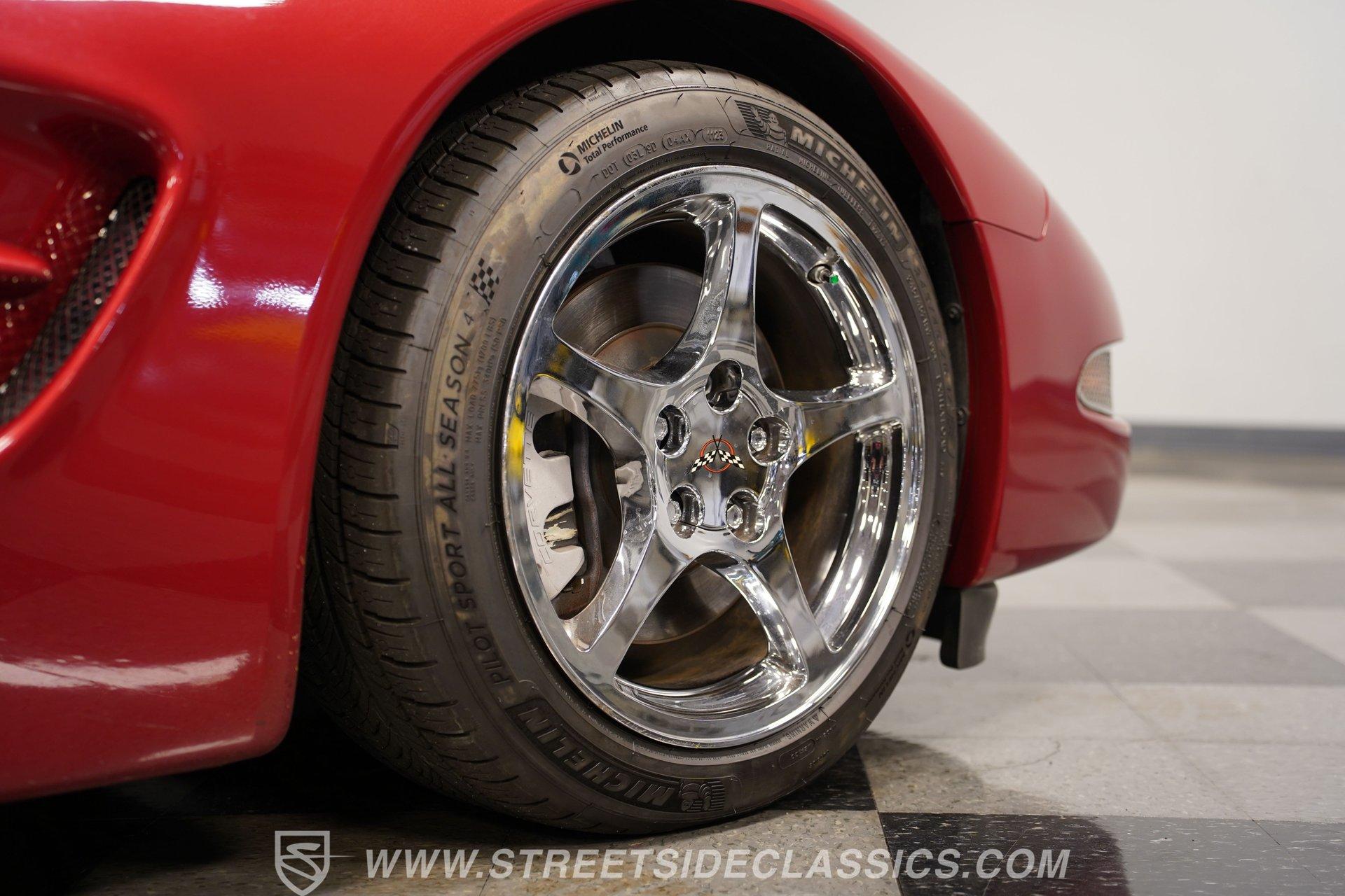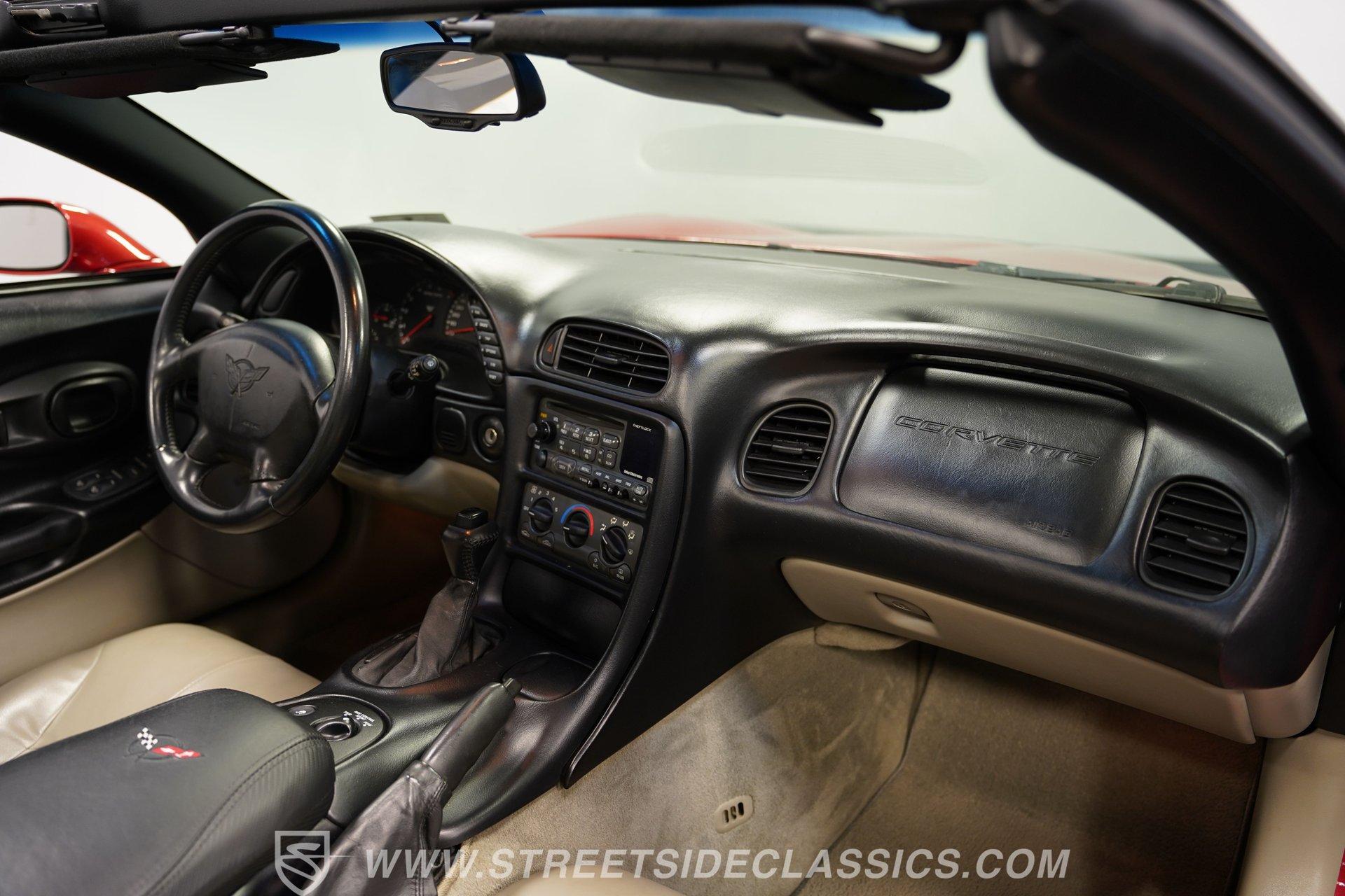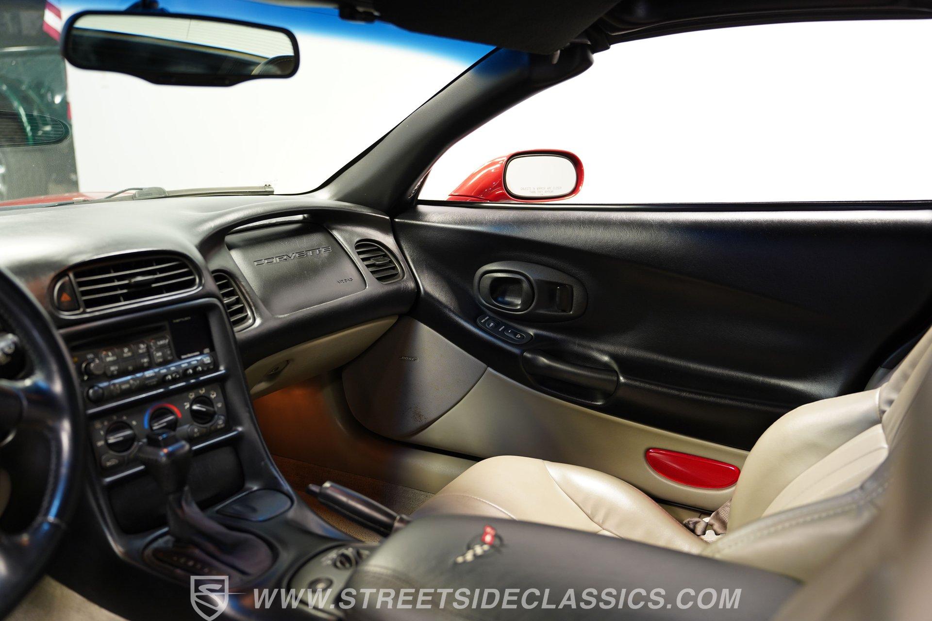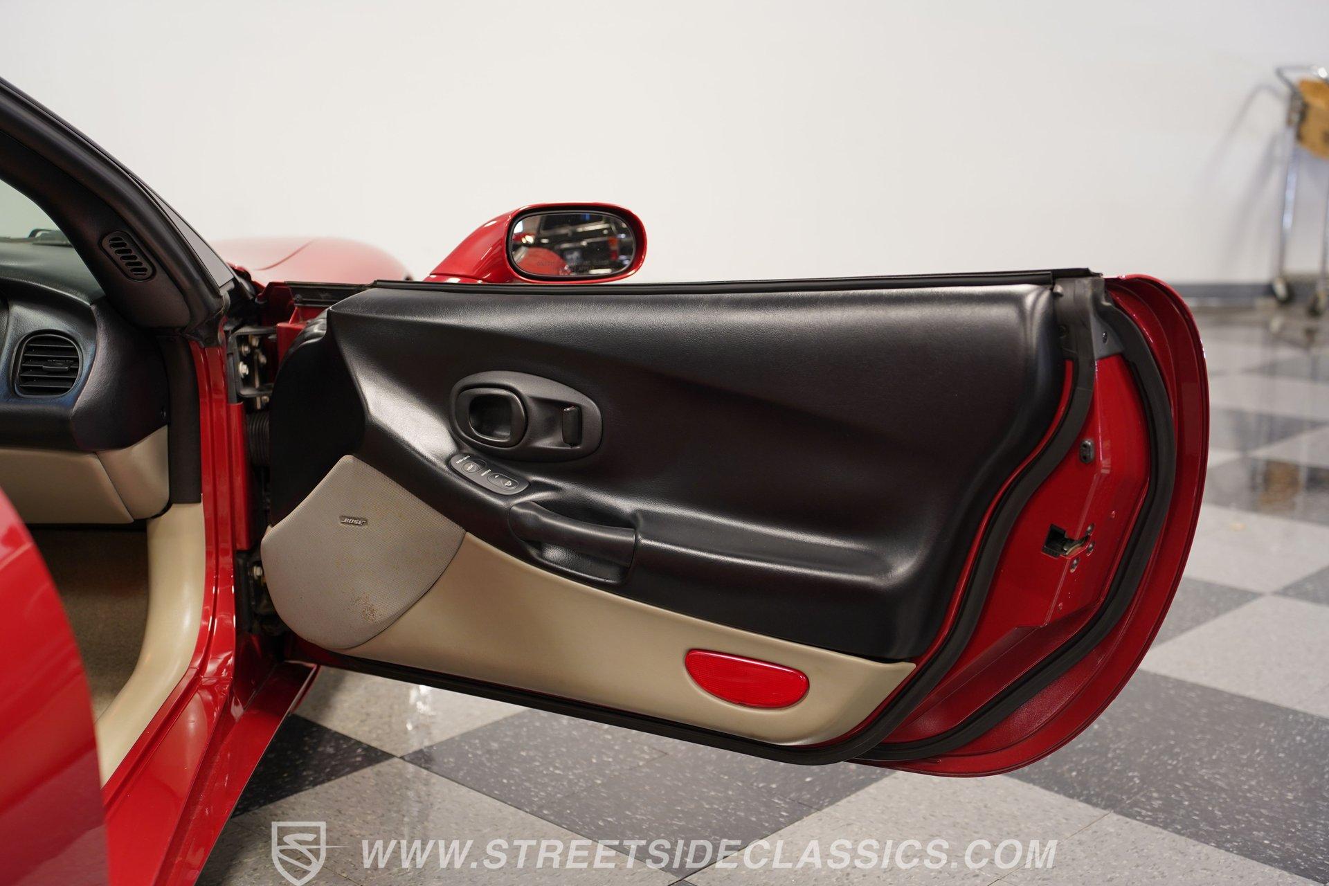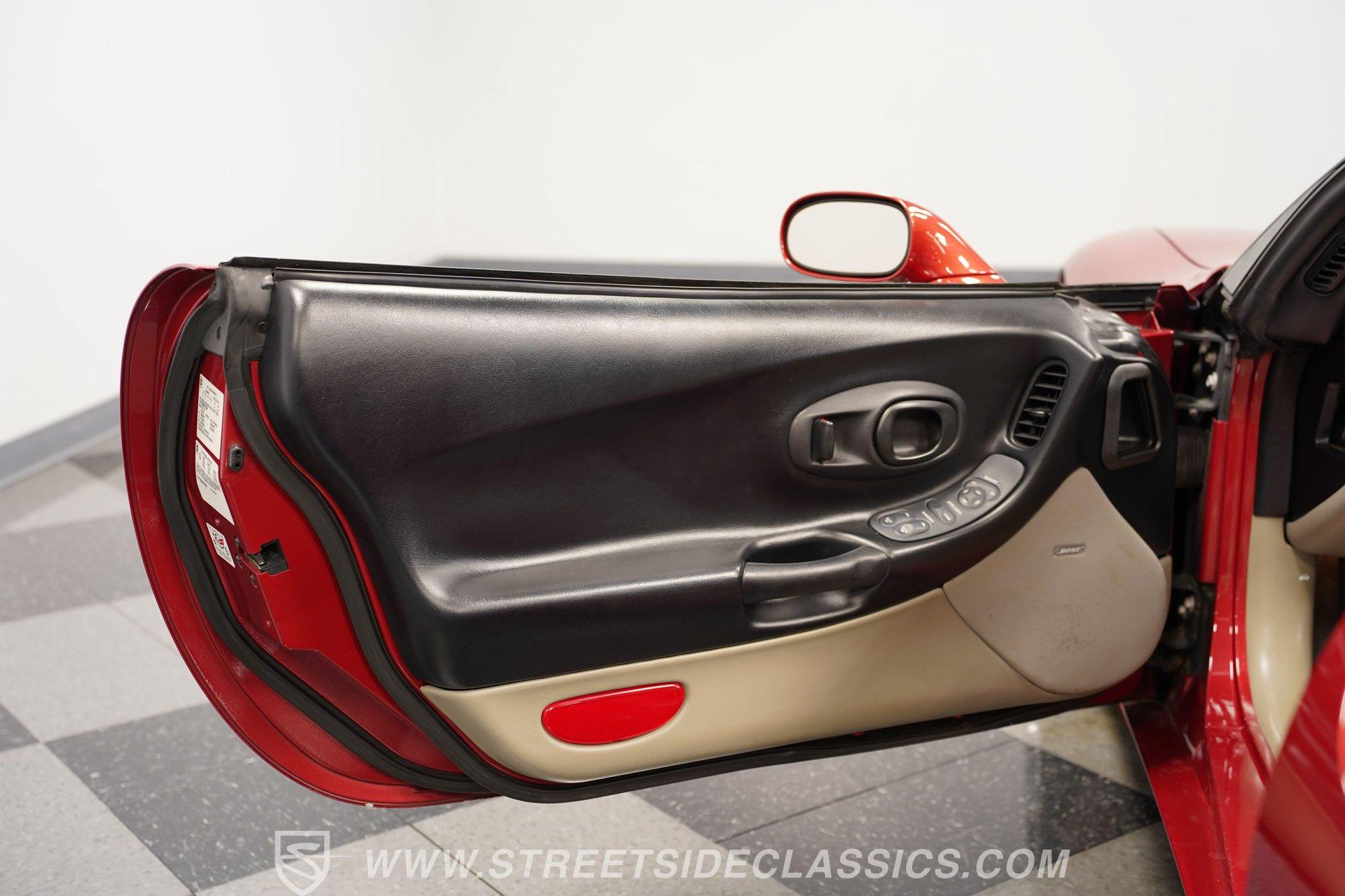 Scorching the asphalt with its brilliant Carmine Red Metallic finish, this 1998 Chevrolet Corvette announces its arrival with unmistakable American muscle car authority. Corvette engineers crafted this fifth-generation coupe with flowing curves and aggressive angles that still look spectacular today. The targa top removes, transforming this sports machine from coupe to an open-air experience in seconds. Upgraded chrome C5-style wheels provide the perfect visual anchor, while the meaty 245/45R18 front and 275/40R18 rear tires offer substantial contact patches for maximum grip during spirited driving maneuvers. Slip inside to discover the pewter leather interior that perfectly complements the exterior's vibrant color scheme. The supportive bucket seats hold occupants firmly in place during aggressive cornering, while providing long-distance comfort for extended cruising sessions. The instrument panel displays vital information with classic Corvette clarity, putting critical data directly in the driver's field of vision. Luxury touches abound with power windows, power locks, and a climate control system that maintains perfect cabin temperatures. The factory AM/FM/CD stereo stands ready to provide the soundtrack for your next road adventure. Motivating this American sports car legend is Chevrolet's revolutionary 5.7-liter LS1 V8 aluminum engine, a technological masterpiece of performance engineering. The fuel-injected powerplant connects to a rebuilt 4-speed automatic 4L60E transmission that delivers smooth upshifts and responsive downshifts. When it's time to slow down, 4-wheel power disc brakes provide abundant stopping capability. The legendary Corvette leaf spring suspension system maintains excellent wheel contact with the road surface while the optional 3.15 performance rear axle ratio balances acceleration with highway cruising efficiency. Attentionally, this Corvette was optioned with the very desirable continuously variable real time damping suspension system for extra control. HIGHLIGHTS: 5.7 Liter LS1 V8 Engine 4 Speed Automatic 4L60E Transmission Fuel Injection 4 Wheel Power Disc Brakes Optional Continuously Variable Real Time Damping Suspension Leaf Spring Suspension Optional 3.15 Performance Rear Axle Ratio Dual Exhaust Carmine Red Paint Targa Top 17" Front & 18" Rear C5 Z06-Style Chrome Wheels 245/45R18 Front, 275/40R18 Rear Tires Leather Bucket Seats Air Conditioning Factory AM/FM/CD Stereo Console Shifter Center Console Power Windows Power Locks Owner's Manual Window Sticker Experience pure American performance engineered for driving excitement with this clean 1998 Chevrolet Corvette Coupe. From its thunderous V8 to its wind-in-your-hair targa-top configuration, this red rocket delivers performance thrills on demand. Call today!