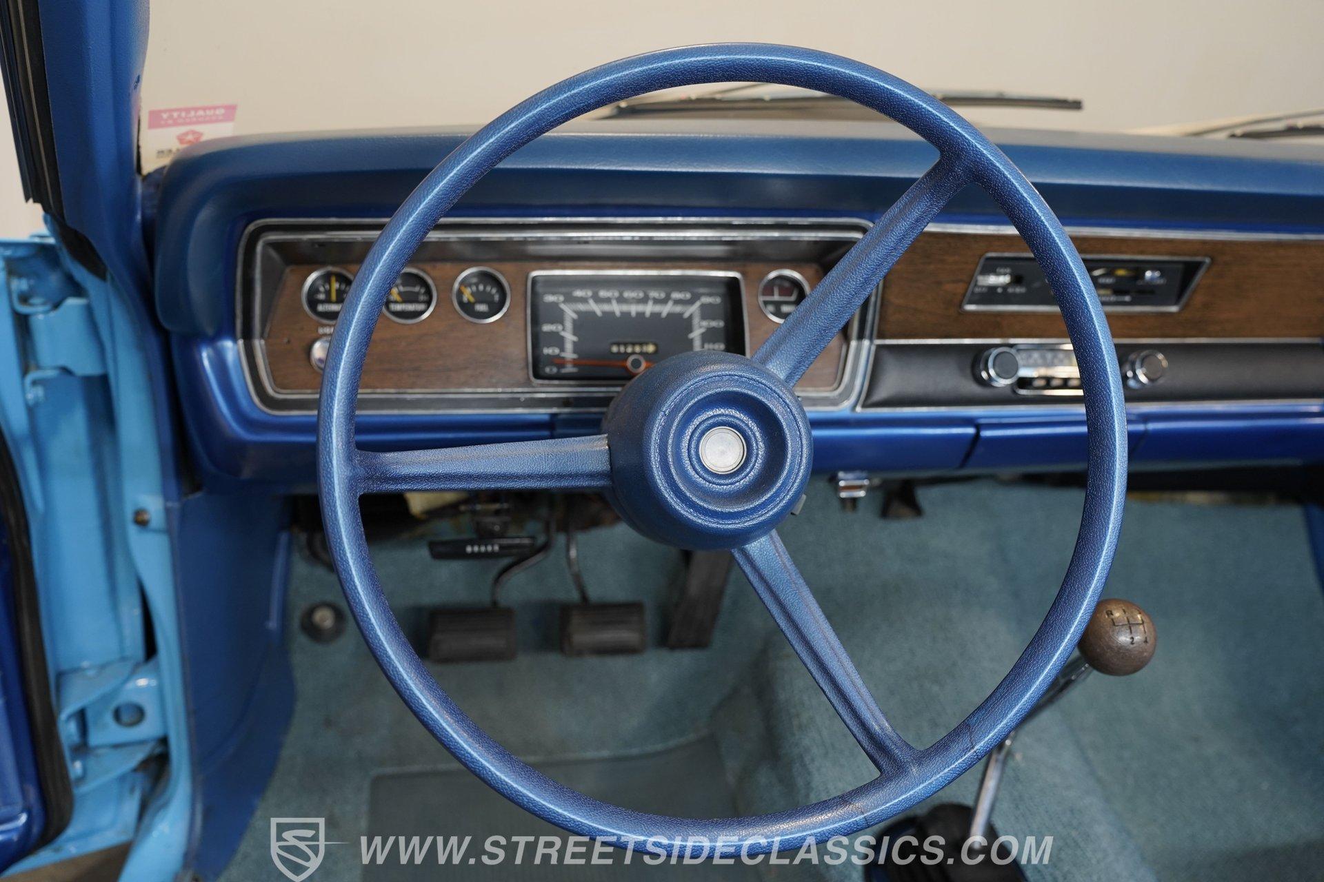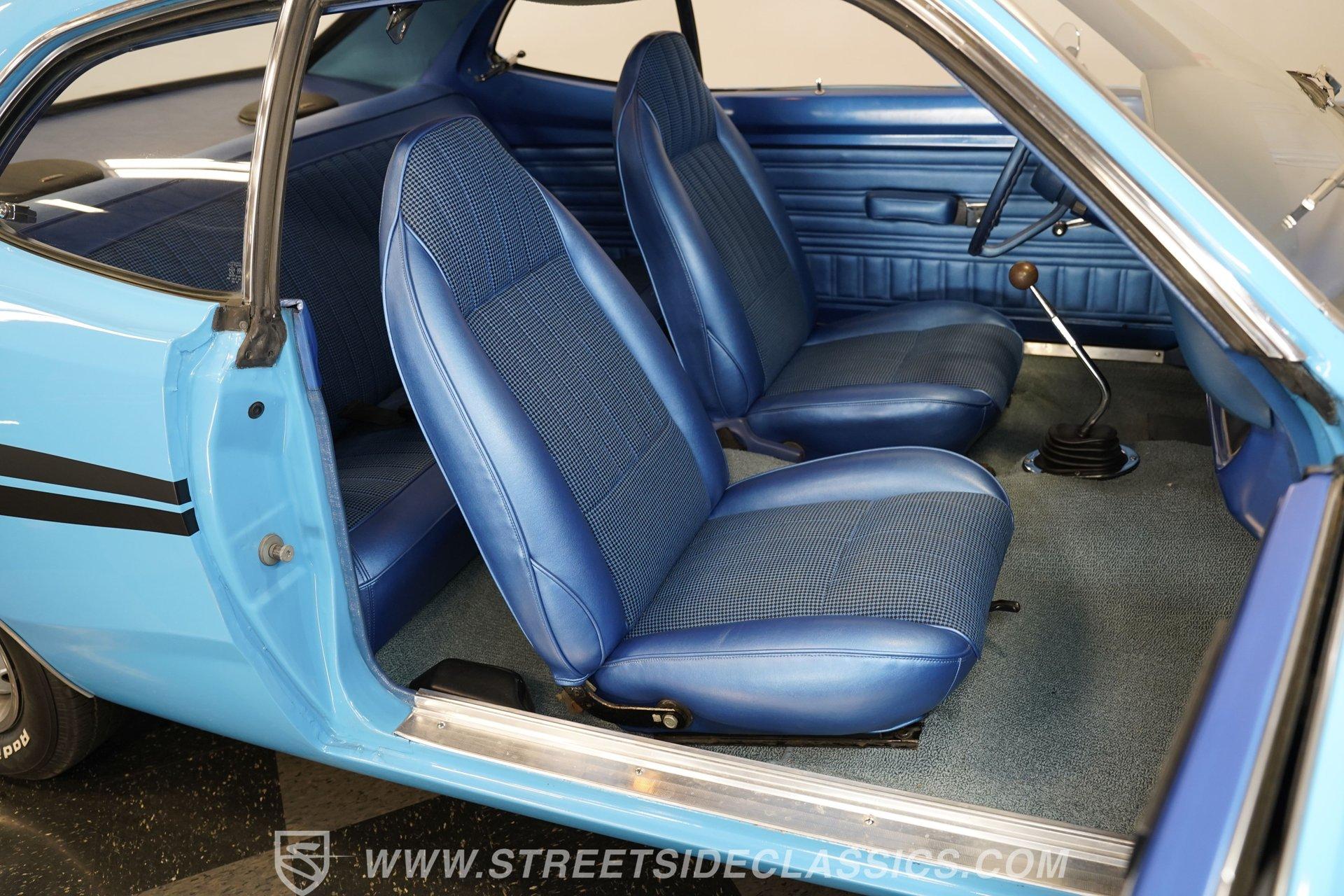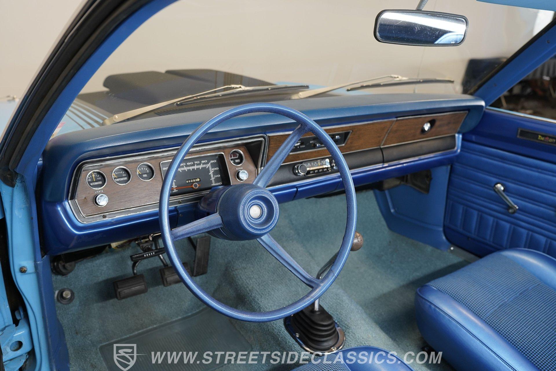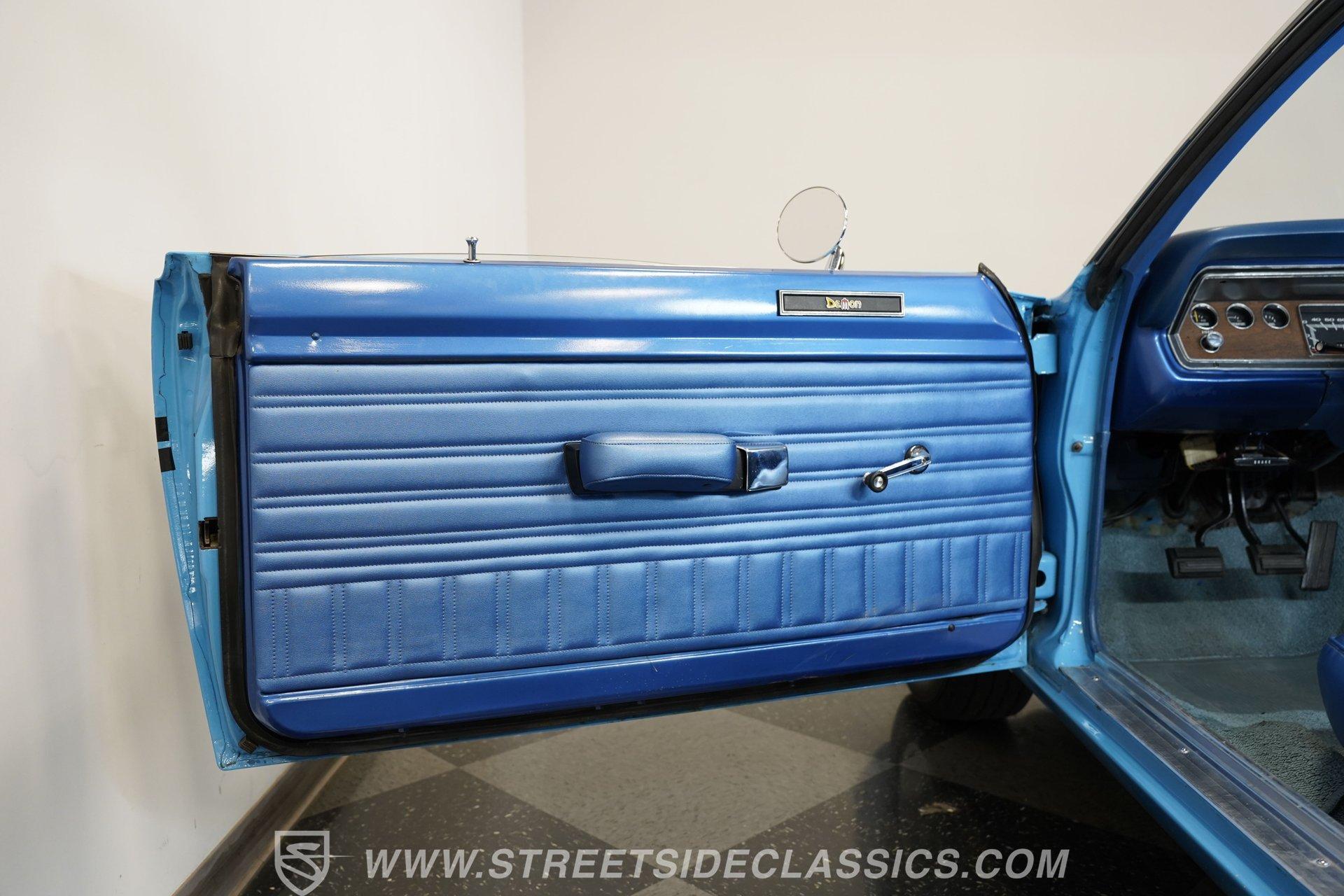 If you've ever wanted to own a true classic car, here's your chance. This 1972 Dodge Dart Demon 340 is an excellent example of a real muscle car. It's in great condition inside and out and has been restored to its original muscle car appearance. The emblems, decals, wheels, and hood are all correct. Both bumpers shine along with all the other shiny accents. Its stance is just the way it's supposed to be, and the blue paint job is an original Dodge color. The hood pins are correct, and the headlights and taillights are clear. This is a great restoration. The interior continues the blue theme. The door panels, front bucket seats, rear seats, and carpet are all in great shape. There's the correct 4-speed shifter in the center of the floor, making this muscle car real fun to drive. The steering wheel, dashboard, gauges, radio, and heat controls have all been restored properly. The gauges are clear and easy to read. The trunk is very clean with plenty of space. This interior has been restored just as nicely as the exterior. There's more blue under the hood, aside from the famous orange air cleaner. The engine bay is clean and looks just the way it should. Between the fenders is what's believed to be a numbers-matching 340 cubic-inch V8. Also believed to be numbers-matching is the 4-speed manual transmission that connects to an 8 ¾ rear axle. The front suspension is simple, equipped with torsion bars and a sway bar attached to a K-frame. The rear suspension is equally straightforward, with leaf springs and shocks. The Dart rides on OEM 14-inch wheels wrapped in 205/70R14 BFG Radial T/A tires. Behind those are drum brakes at all four corners. The Dart also has stock-style dual exhaust with chambered mufflers. Highlights: 340 Cubic-Inch V8 (Believed To Be Numbers-Matching) 4-Speed Transmission (Believed To Be Numbers-Matching) 8-3/4 Rear Axle Front Torsion Bars And A Sway Bar Attached To The K-frame Rear Leaf Springs With Shocks Four Wheel Drum Brakes 14-Inch OEM Wheels 205/70R14 BFG Radial T/A Tires Original Exhaust With Chamber Mufflers Power Steering AM/FM Radio Heat Owner's Manual Here is a beautiful 1972 Dodge Dart Demon 340 that has been restored to its fully classic muscle car potential. It looks great, runs great, and is simply a fun car to drive. The original blue color is eye-catching, and the attention to detail in the restoration is amazing. Call today!