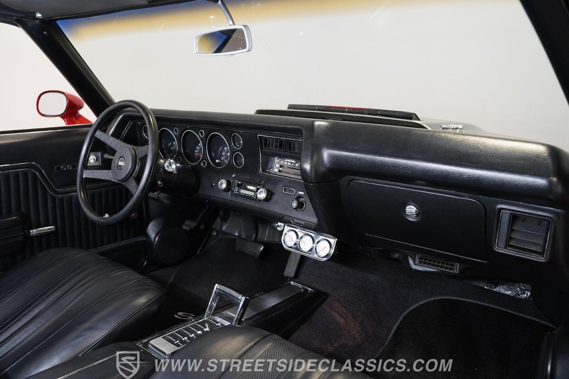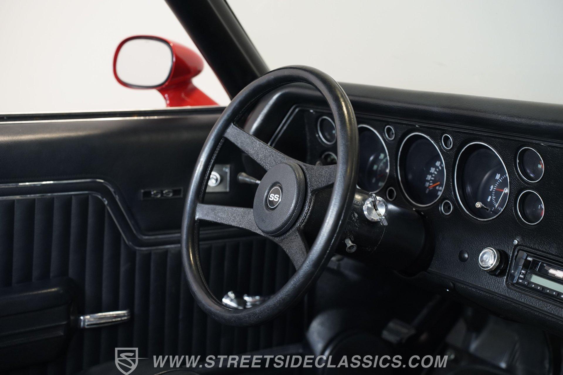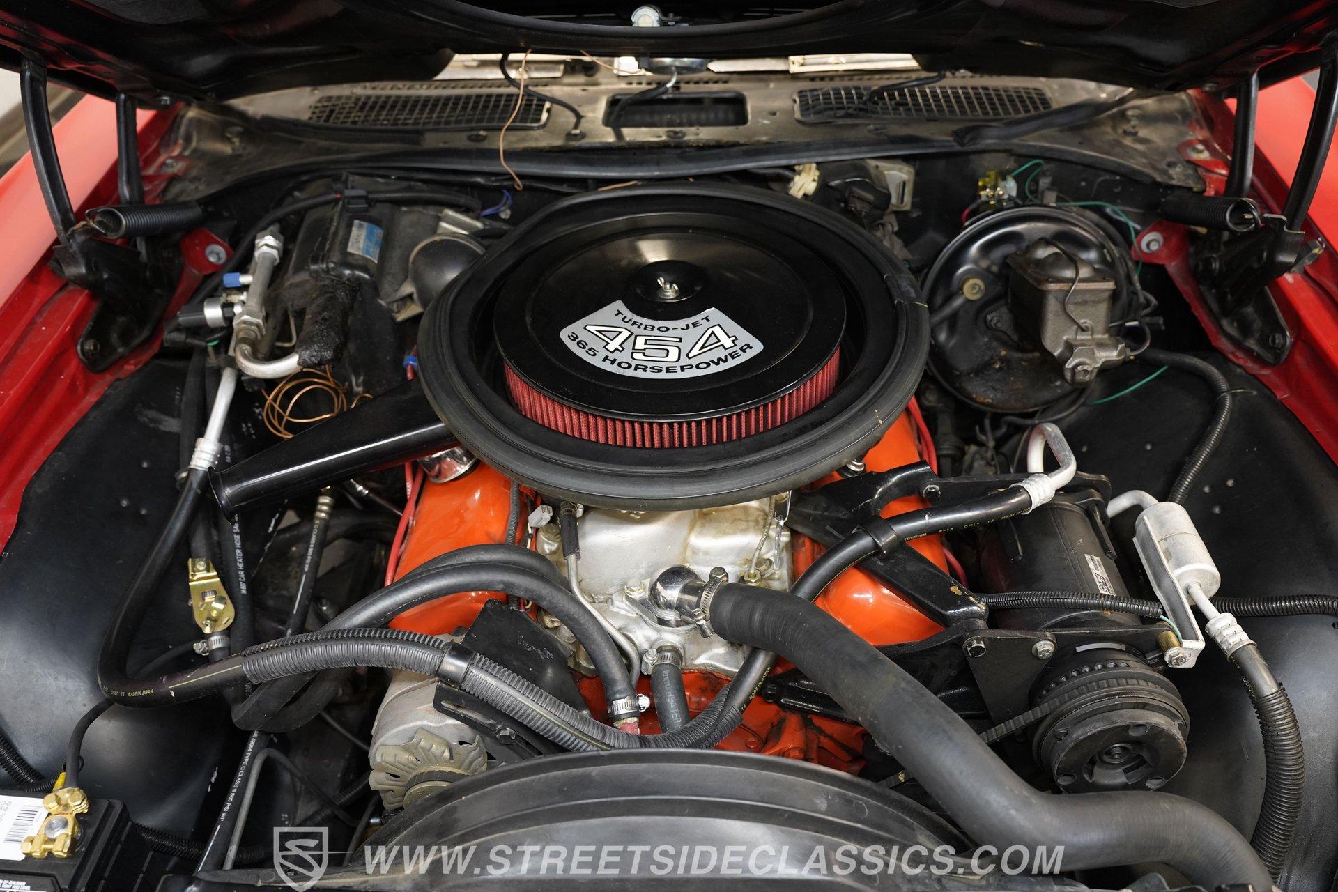 This 1972 Chevrolet Chevelle SS 454 Tribute delivers the unmistakable look, sound, and attitude of true American muscle. Finished in a vivid red accented with bold black racing stripes and a black vinyl roof, this Chevelle commands attention the moment it comes into view. Classic Super Sport badging, a functional cowl-induction hood, blackout grille, hood pins, and period-correct mag wheels complete the aggressive factory-style muscle car presentation. Inside, you'll find a well-kept interior that blends classic style with functional upgrades. The black vinyl seating shows light wear but retains its authentic character, while the door panels and brightwork remain clean and presentable. Additional under-dash auxiliary gauges provide clear readings for temperature, voltage, and oil pressure-ideal for a big-block driver. The center console is in good condition, and although the headliner shows some sag above the rear seat, the cabin overall reflects a comfortable, driver-quality environment. Under the hood sits a 454 cubic-inch V8 topped with an Edelbrock 4-barrel carburetor and Edelbrock intake manifold. Paired with a reliable TH400 3-speed automatic transmission, this combination delivers strong low-end torque and the unmistakable tone of classic big-block Chevelle power. The upgraded SS-style rear suspension features boxed control arms and a rear sway bar, giving the car improved stability and road manners. Power steering and front power disc brakes make this Chevelle an easy and enjoyable driver, whether you're cruising the boulevard or hitting a weekend car show. Highlights 1972 Chevrolet Chevelle SS 454 Tribute 68,009 Actual Miles 454 Big-Block V8 w/ Edelbrock Carb & Intake TH400 3-Speed Automatic Upgraded SS Rear Suspension (Boxed Arms / Sway Bar) Cowl-Induction Hood w/ Painted Stripes Blackout Grille & Hood Pins Super Sport Badging Five-Spoke Aluminum Wheels BFGoodrich Radial T/A Tires Power Steering & Front Disc Brakes Air Conditioning – R134A Refrigerant Driver-Quality Undercarriage Financing & Vehicle Protection Plans Available Worldwide Shipping Available This 1972 Chevelle SS 454 Tribute captures everything enthusiasts love about early-70s muscle-iconic styling, big-block power, and a commanding street presence. It's a solid driver with desirable upgrades, great curb appeal, and the right look from every angle. Whether you're a collector adding to your stable or someone finally stepping into their dream muscle car, this Chevelle makes a compelling candidate. Call, email, or visit our Phoenix showroom today to experience it for yourself.