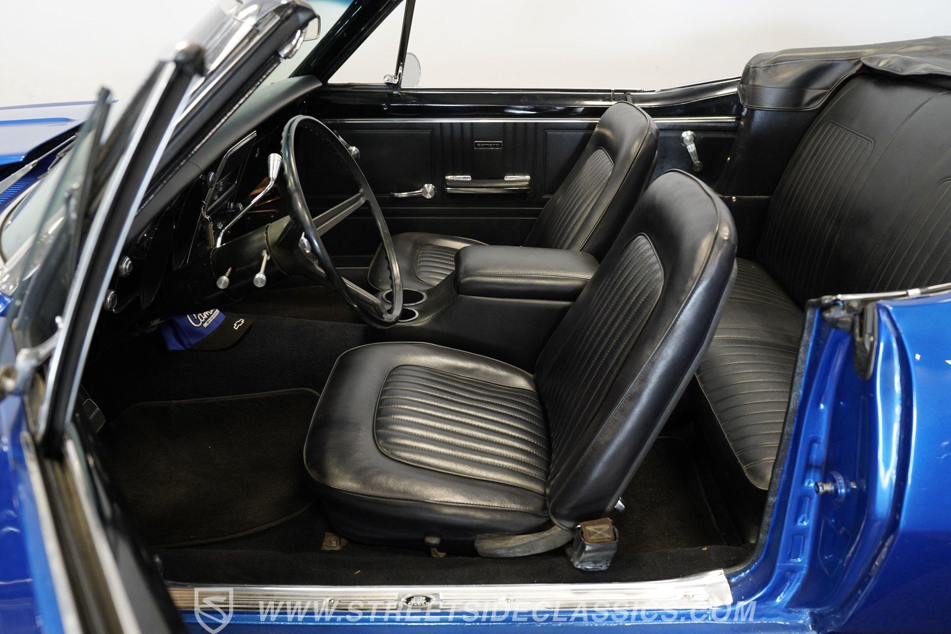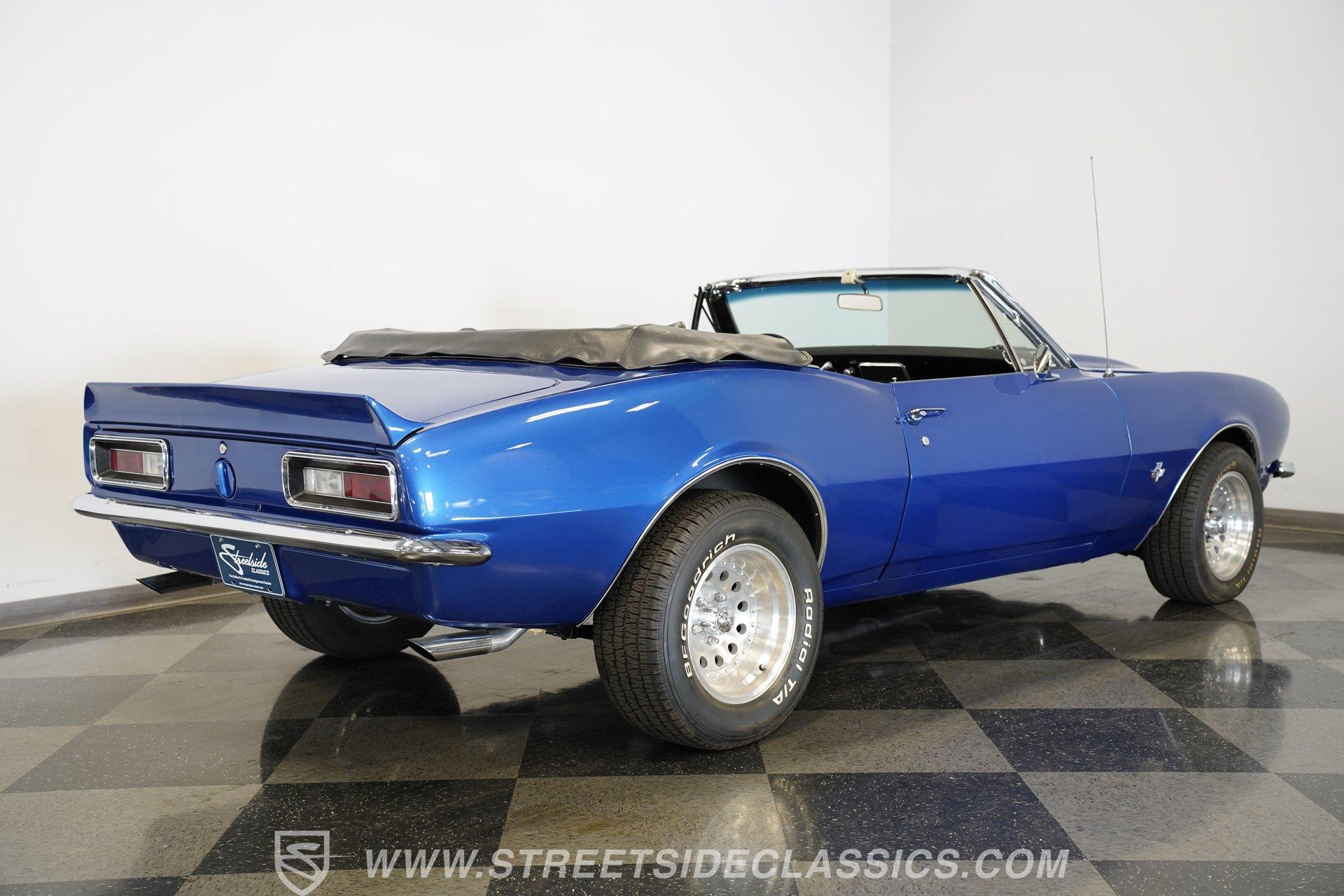 Step into a world where classic muscle meets timeless style, and every drive becomes a statement. This 1967 Chevrolet Camaro Convertible isn't just a car, it's a glimpse into an era where power and design ruled the roads. With its sleek lines, aggressive stance, and open-air freedom, this Camaro captures the spirit of American performance and the thrill of cruising with the wind in your hair. Whether it's a weekend getaway or a show-stopping arrival, this car promises memories and admiration wherever it goes. Experience the legacy of the first-generation Camaro in this beautifully restored 1967 model. Inside, the Camaro welcomes you with vinyl low back bucket seats and matching door panels that complement its retro vibe. The interior has been recently redone, featuring a stylish retro sounds-style radio with component speakers in the back seat for a rich audio experience. Aftermarket AutoGauge oil pressure and water temperature gauges add a practical yet classic touch. The original style steering wheel sits on a tilt column, while an aftermarket center console enhances convenience. The dash pad shows a single crack, adding character to this well-preserved cabin. Under the hood, this Camaro roars to life with a 350 small block engine paired to a smooth-shifting 4-speed automatic 700R4 transmission. Performance is enhanced with Summit aluminum heads, an Edelbrock Performer EPS intake manifold, and a four-barrel Edelbrock carburetor. Long tube headers and Flowmaster mufflers deliver a powerful exhaust note. The serpentine system, chromed alternator, and aluminum radiator with an electric fan ensure reliability and efficient cooling. Power brakes and power steering provide responsive control, while the rear 10-bolt axle with factory-style suspension and new rear leaf springs balance comfort with muscle car handling. Highlights 1967 Chevrolet Camaro Convertible 350 Small Block Engine 4-Speed Automatic 700R4 Transmission Summit Aluminum Heads Edelbrock Performer EPS Intake Manifold Edelbrock 4-Barrel Carburetor Long Tube Headers Flowmaster Mufflers Power Brakes and Power Steering Aluminum Radiator with Electric Fan 15" Eagle Alloy Wheels Staggered BFGoodrich Radial T/A Tires (2020) Soft Top Convertible with Newer Top Dual Chrome Side Mirrors and Exit Exhaust Financing Available Vehicle Protection Plans Available Worldwide Shipping This 1967 Chevrolet Camaro Convertible is an excellent choice for enthusiasts seeking a blend of classic style and modern drivability. Its tasteful upgrades and well-maintained features make it a standout on the road. Don't miss the chance to own a piece of muscle car history. Call, email, or come visit our showroom today!