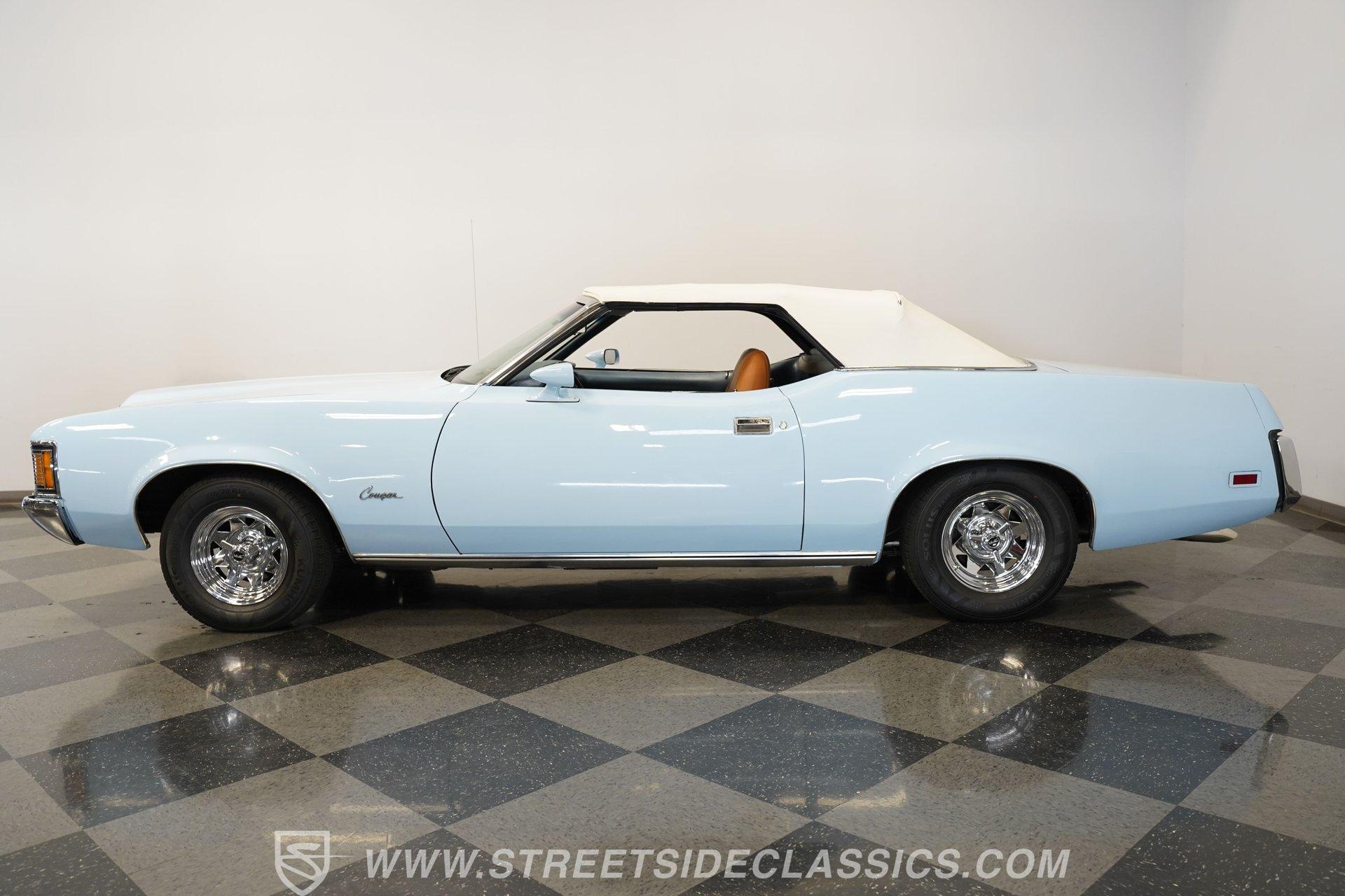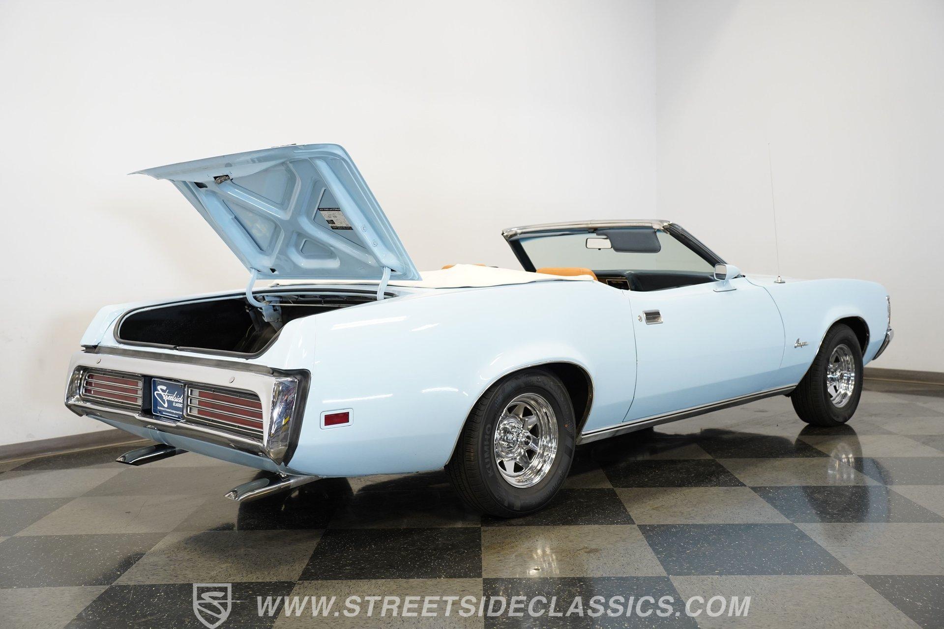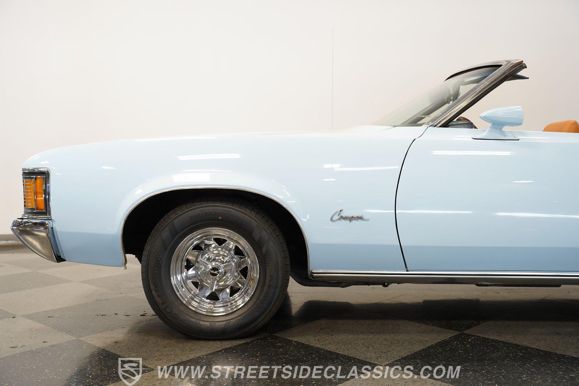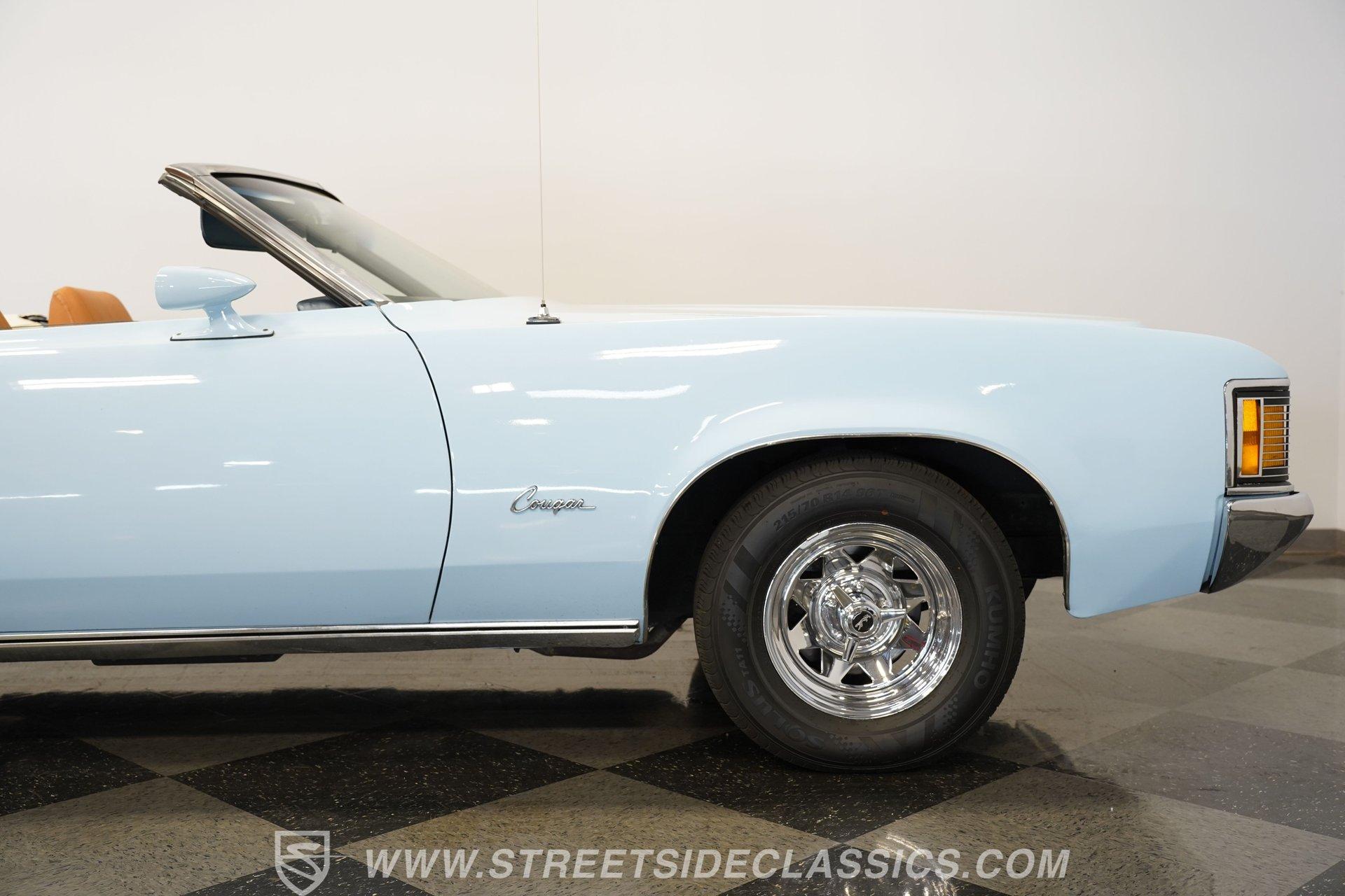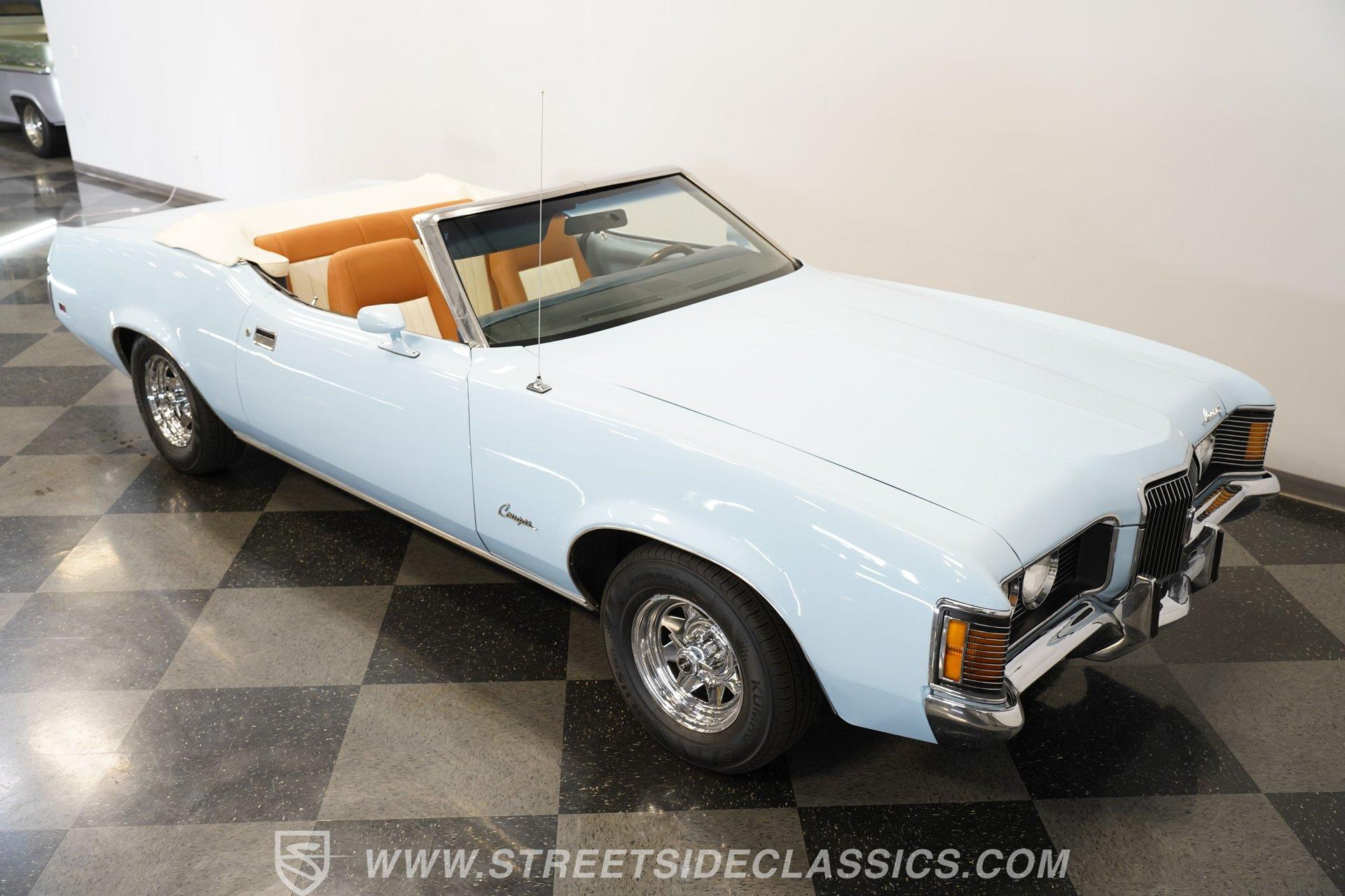 Imagine cruising down an open road in a timeless symbol of American muscle and style, where every turn of the wheel evokes memories of classic car culture and endless summer days. This 1971 Mercury Cougar convertible captures that spirit perfectly, blending vintage charm with thoughtful upgrades that honor its legacy. Its light blue high-gloss finish and distinctive design make a statement wherever it goes, inviting you to create your own stories behind the wheel. If you've been searching for a classic that balances heritage and performance, this Cougar might just be the perfect match. Step inside to experience a beautifully reupholstered interior, featuring tan and cream seats that blend comfort with classic style. The front bucket seats and rear bench are in great condition, complemented by door panels and a center console that show only slight signs of use. The carpet is well-maintained, and the convertible top's interior remains clean and intact. Modern touches like an AM/FM/Aux stereo ensure you enjoy your favorite tunes as you drive, while the overall cabin invites you to relax and enjoy the ride. Under the hood, this Cougar houses a robust 351 Cleveland V8 engine equipped with Edelbrock single 4-barrel carburetor and intake, promising a thrilling yet smooth driving experience. Paired with a C6 3-speed automatic transmission, the drivetrain shifts seamlessly through all gears, delivering power with ease. The vehicle's mechanical components, including power steering, front disc brakes, and power brakes, contribute to confident handling and control. Long tube headers and an aluminum radiator enhance performance and reliability, making every drive a memorable one. Highlights 1971 Mercury Cougar Convertible 351 Cleveland V8 Engine With Upgrades Edelbrock Single 4 Barrel Carburetor C6 3-Speed Automatic Transmission Power Convertible Top Front Disc Brakes, Rear Drum Brakes Power Steering Air Conditioning With R-134A Refrigerant AM/FM/Aux Stereo Reupholstered Tan And Cream Seats Chrome Steel Wheels 215/70R14 Kumho Solus TA11 Tires No Rust, Normal Frame Condition Documentation Available Financing Available Vehicle Protection Plans Available Worldwide Shipping This 1971 Mercury Cougar convertible offers a fantastic blend of classic muscle car allure and practical upgrades, making it an excellent choice for enthusiasts and collectors alike. Its well-maintained condition and smooth performance invite you to enjoy the open road with confidence. Don't miss your chance to own a piece of automotive history. Call, email, or come visit our showroom today!