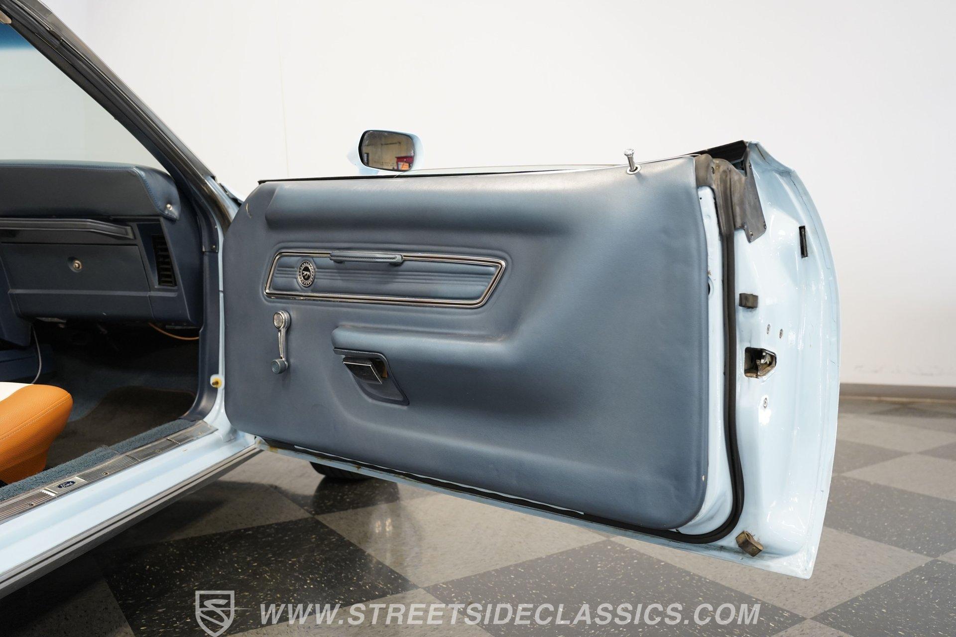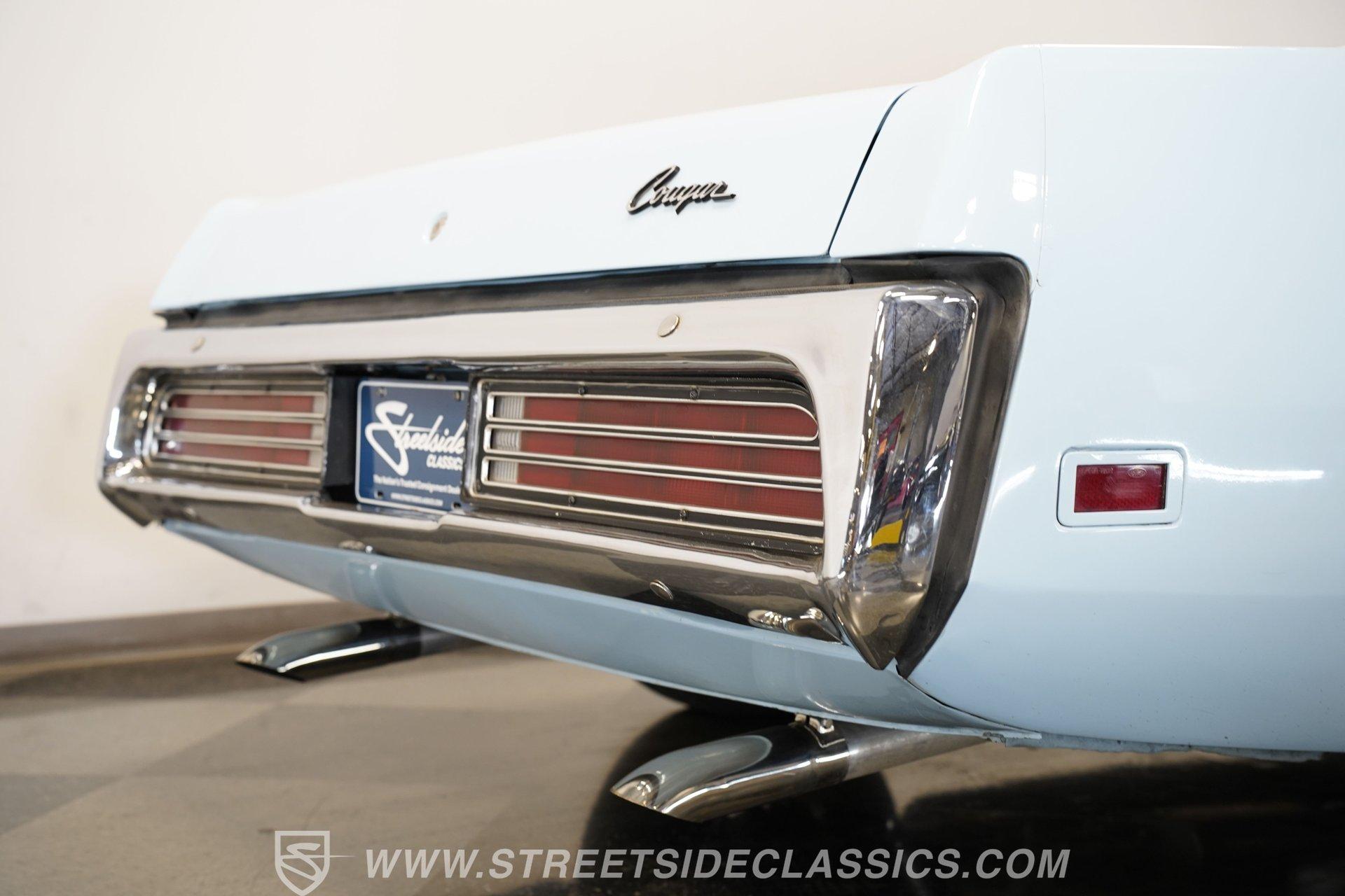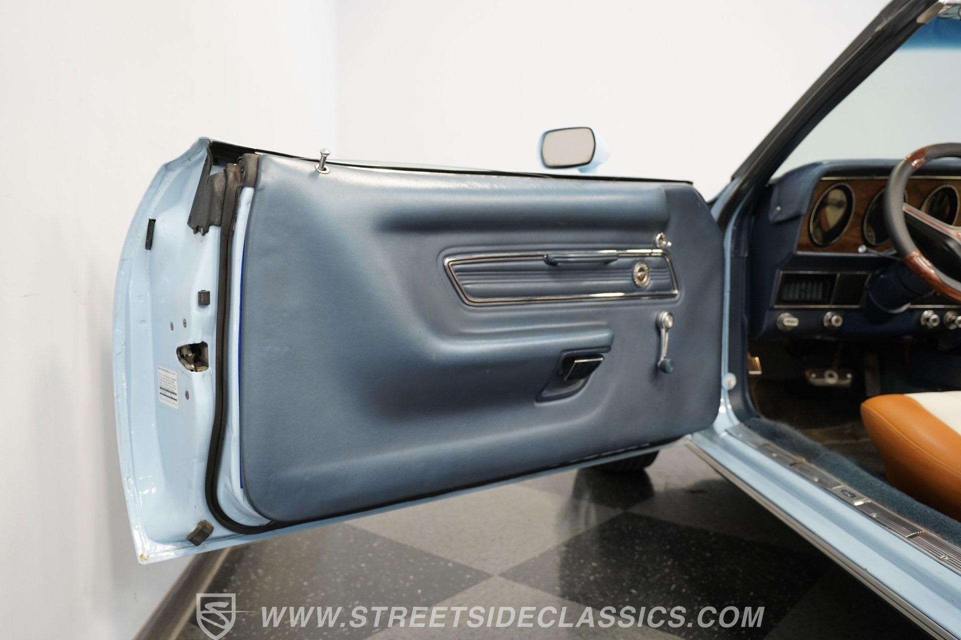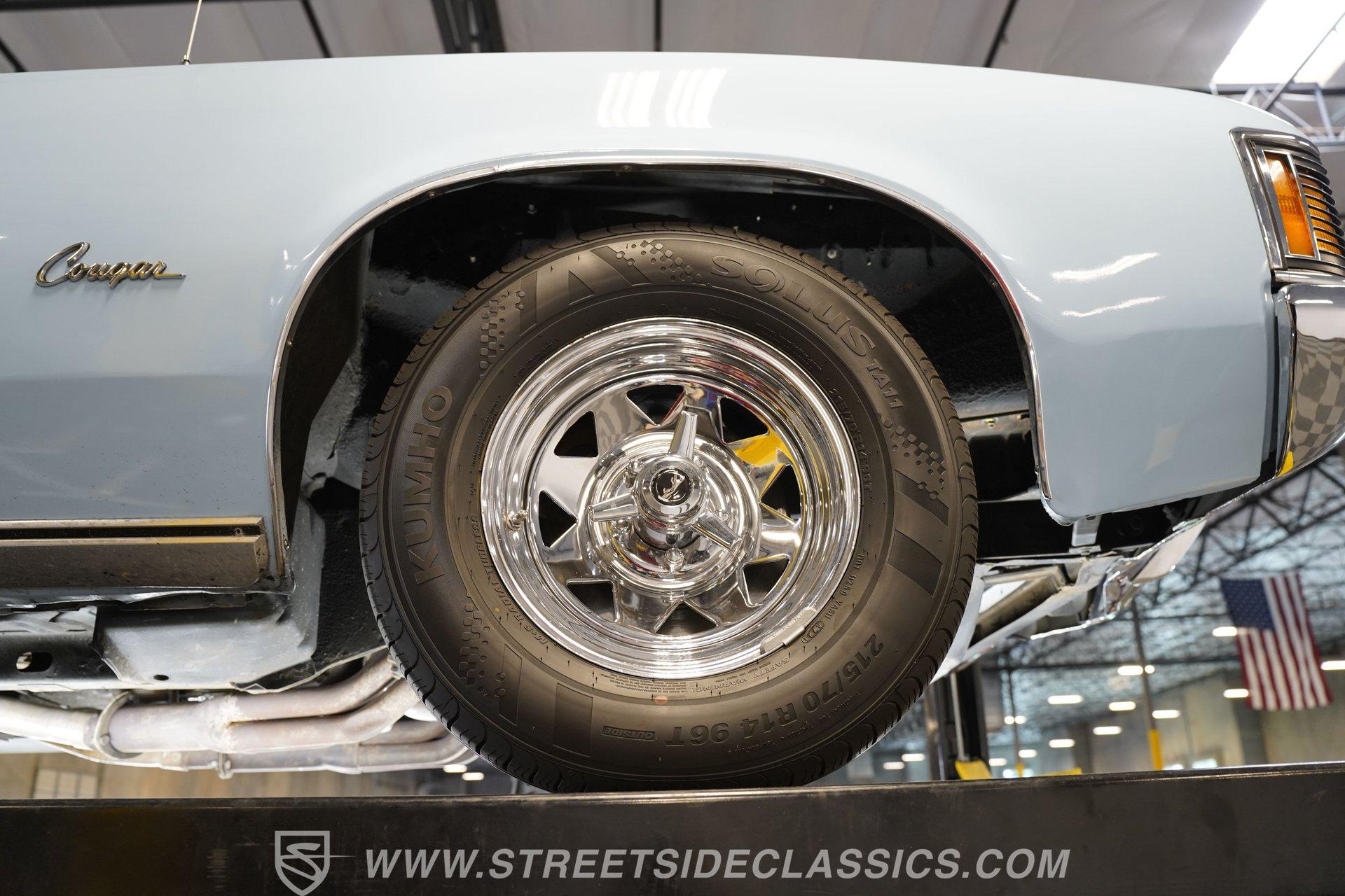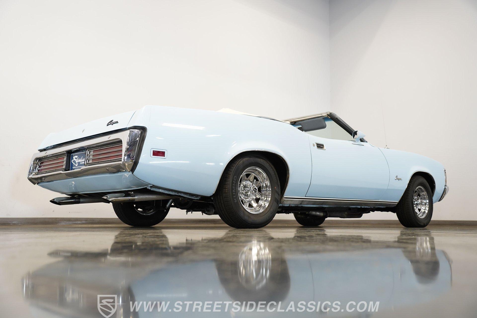 Imagine cruising down an open road in a timeless symbol of American muscle and style, where every turn of the wheel evokes memories of classic car culture and endless summer days. This 1971 Mercury Cougar convertible captures that spirit perfectly, blending vintage charm with thoughtful upgrades that honor its legacy. Its light blue high-gloss finish and distinctive design make a statement wherever it goes, inviting you to create your own stories behind the wheel. If you've been searching for a classic that balances heritage and performance, this Cougar might just be the perfect match. Step inside to experience a beautifully reupholstered interior, featuring tan and cream seats that blend comfort with classic style. The front bucket seats and rear bench are in great condition, complemented by door panels and a center console that show only slight signs of use. The carpet is well-maintained, and the convertible top's interior remains clean and intact. Modern touches like an AM/FM/Aux stereo ensure you enjoy your favorite tunes as you drive, while the overall cabin invites you to relax and enjoy the ride. Under the hood, this Cougar houses a robust 351 Cleveland V8 engine equipped with Edelbrock single 4-barrel carburetor and intake, promising a thrilling yet smooth driving experience. Paired with a C6 3-speed automatic transmission, the drivetrain shifts seamlessly through all gears, delivering power with ease. The vehicle's mechanical components, including power steering, front disc brakes, and power brakes, contribute to confident handling and control. Long tube headers and an aluminum radiator enhance performance and reliability, making every drive a memorable one. Highlights 1971 Mercury Cougar Convertible 351 Cleveland V8 Engine With Upgrades Edelbrock Single 4 Barrel Carburetor C6 3-Speed Automatic Transmission Power Convertible Top Front Disc Brakes, Rear Drum Brakes Power Steering Air Conditioning With R-134A Refrigerant AM/FM/Aux Stereo Reupholstered Tan And Cream Seats Chrome Steel Wheels 215/70R14 Kumho Solus TA11 Tires No Rust, Normal Frame Condition Documentation Available Financing Available Vehicle Protection Plans Available Worldwide Shipping This 1971 Mercury Cougar convertible offers a fantastic blend of classic muscle car allure and practical upgrades, making it an excellent choice for enthusiasts and collectors alike. Its well-maintained condition and smooth performance invite you to enjoy the open road with confidence. Don't miss your chance to own a piece of automotive history. Call, email, or come visit our showroom today!