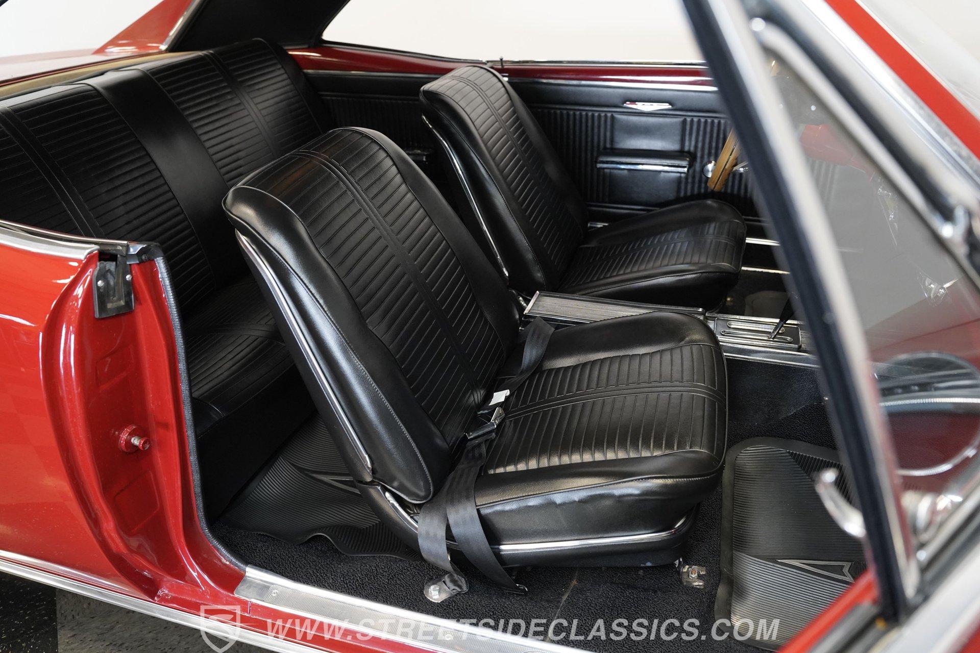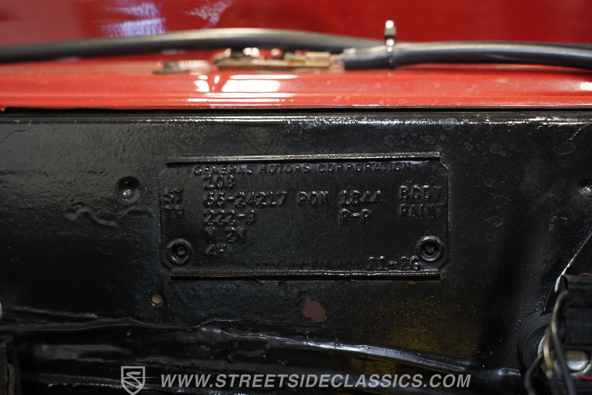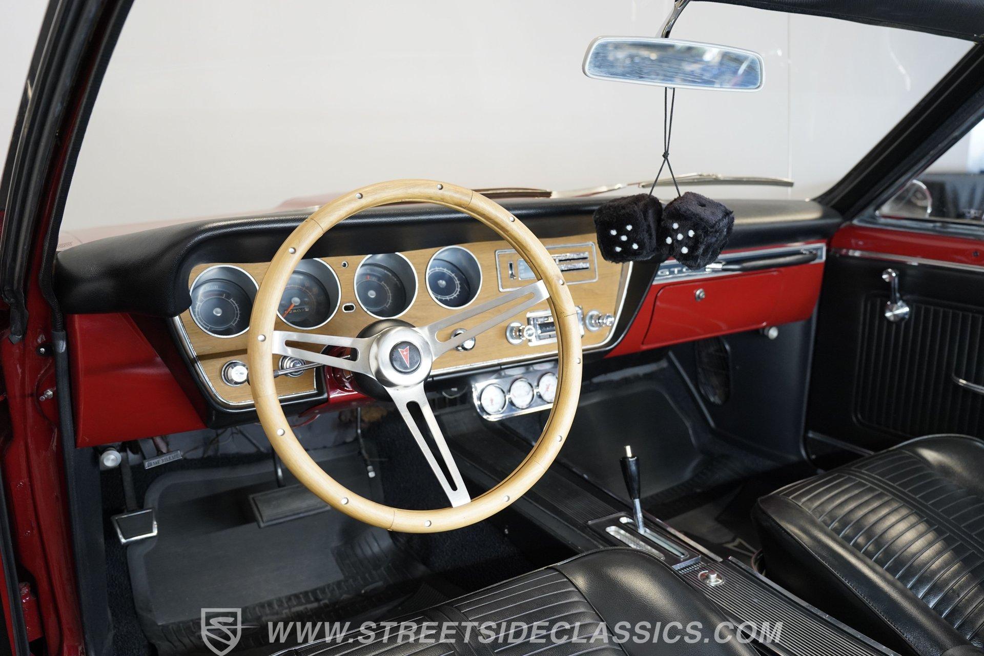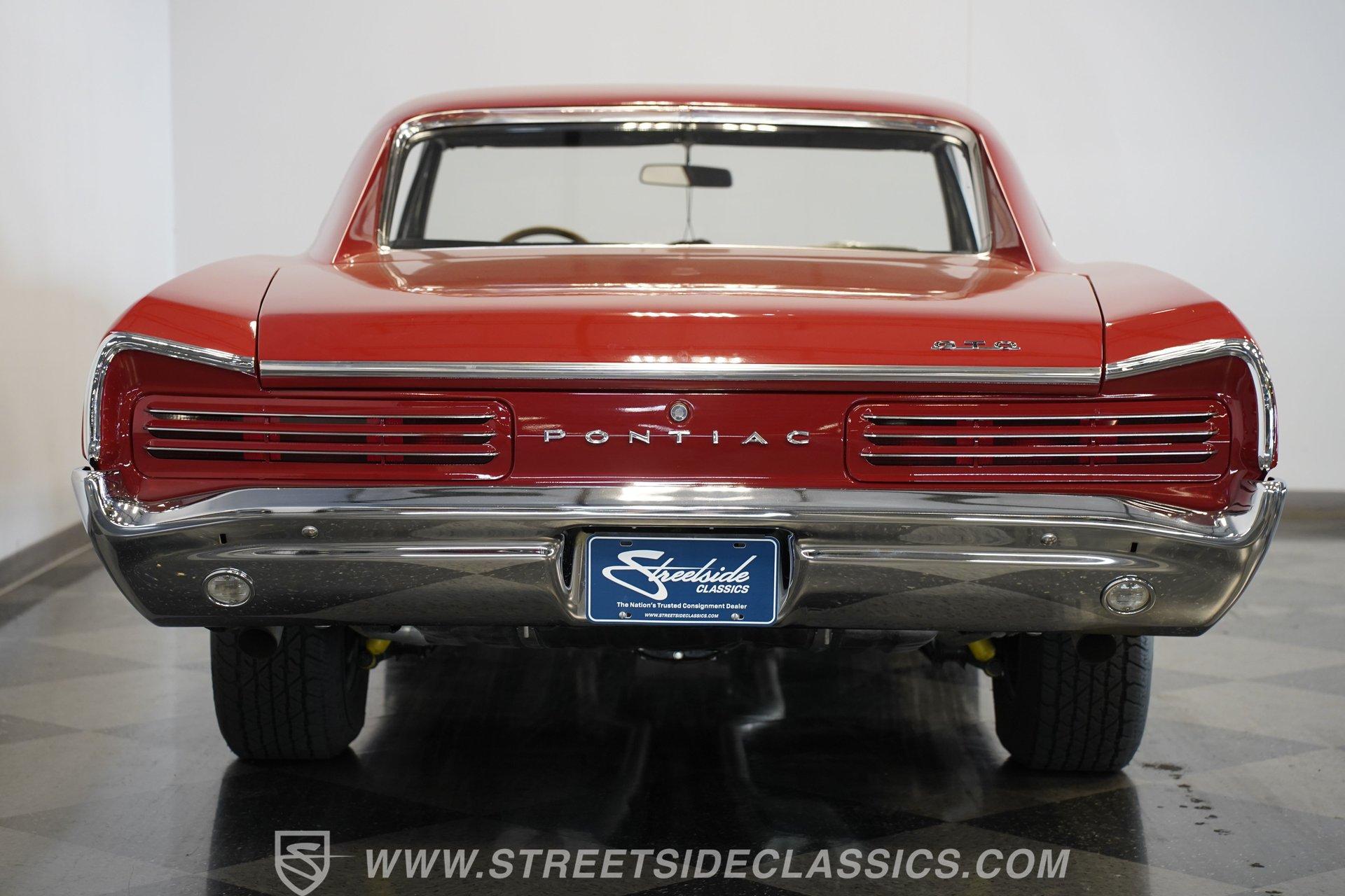 This 1966 Pontiac GTO showcases a Montero Red exterior, highlighting its muscular body. The iconic split grille and stacked headlights define its aggressive front end, while the hardtop profile emphasizes the GTO's sleek lines. Chrome bumpers add a touch of brilliance to both ends, and dual exhaust tips peek out from beneath the rear. Rolling on 15-inch black steel wheels with "dog dish" hubcaps and BF Goodrich radial redline tires staggered 215/70R15 front and 235/70R15 rear, this Pontiac exemplifies classic muscle car design. Black vinyl bucket seats anchor the performance-oriented interior. The factory console houses the shifter for the TH400 4-speed automatic transmission. A modern retro AM/FM/AUX radio provides audio, while under-dash mounted Bosh instrumentation monitors engine vitals. Power steering allows for easy maneuvering, complementing the car's performance setup. A Pontiac 400 cubic inch V8 dominates the engine compartment, topped with an Edelbrock Intake and Edelbrock 4-barrel carburetor. Chrome valve covers and air cleaner add visual appeal to the powerful motor. A set of long-tube headers flow back through a dual exhaust system with rumbling Thrush mufflers producing the signature GTO sound. Power front disc brakes provide confidant stopping power. HIGHLIGHTS: 400 V8 Engine TH400 3-Speed Automatic Transmission Edelbrock 4-Barrel carburetor Edelbrock Intake Manifold Power Front Disc Brakes Steel Wheels with "Dog Dish" Hubcaps 10-Bolt Rear Axle Montero Red Paint Bosh Instrumentation BF Goodrich Radial 15" Redline Tires Chrome Bumpers Wood-Rimed Steering Wheel Black Vinyl Interior Bucket Seats Factory Console Modern Retro AM/FM Radio Power Steering Build Photos Restoration and Maintenance Receipts Owner's Manual This 1966 Pontiac GTO represents the peak of muscle car engineering with its powerful 400 V8, distinctive Montero Red exterior, and driver-focused black interior. Build photos and receipts are included with the car. From the iconic split grille to the rumbling exhaust, this GTO delivers authentic performance. Call today!