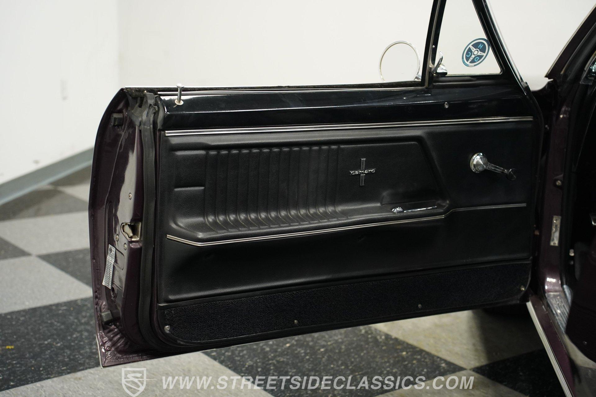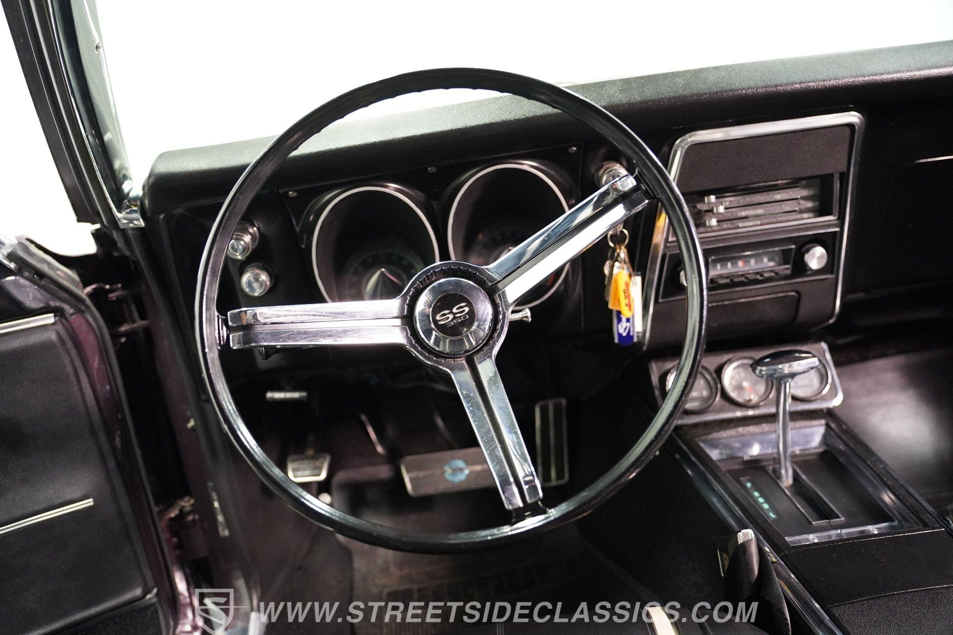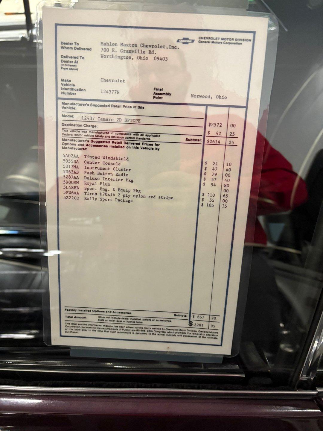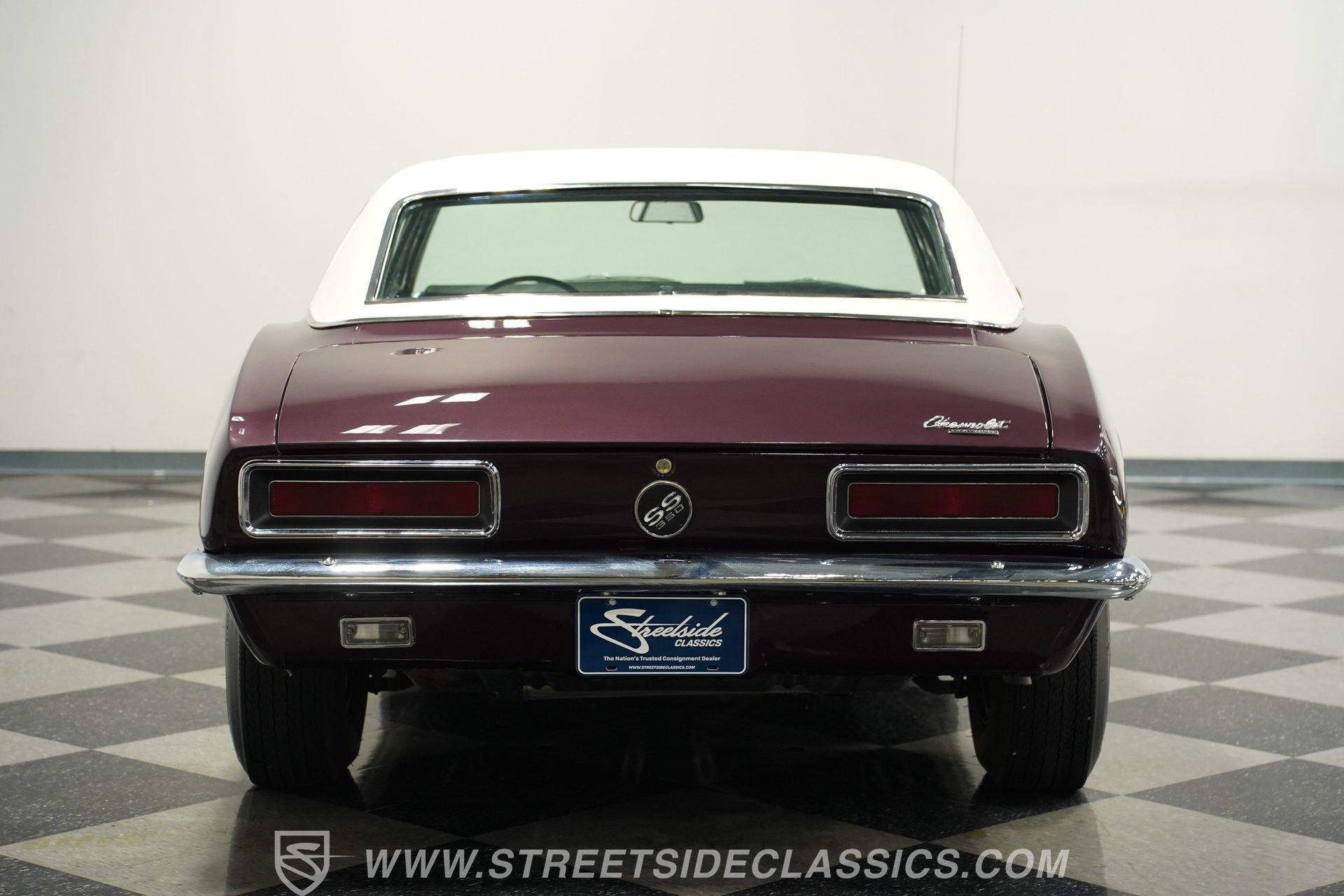 Not all that many classic Camaros rolled off the assembly line bearing the dual distinctions worn by this 1967 Chevrolet Camaro RS/SS 350, and most of them have long since fallen by the wayside. And, not only does this vintage Chevy combine the hidden headlights, a special front grille, and other appearance upgrades with enhanced power and a more action-oriented suspension that come via its elevated status, but it also features a level of factory-correctness that's truly hard to come by. As if this didn't set it apart enough, its Royal Plum paint represents an original Chevy color offering that was only available the year it rolled out, so this is one singular ride we have right here. It arrives at the present looking thoroughly refreshed, with its paint holding a deep shine, accented by razor-sharp accent stripes and vibrant bright work, with a contrasting white vinyl top that's in matching condition. The interior has undergone a full restoration while keeping its factory configuration well intact, with black, vinyl-clad front bucket seats that are in impressive shape, wearing white accenting stripes that still look as fresh as they did when the covers were first installed. The buckets straddle a very clean center console that features a T-handle shifter and the trio of gauges that came to be a coveted factory design element when this Camaro first rolled out. The overall functionality inside the doors is impressive. The instrument gauges work as intended, the interior lighting illuminates on cue, and the windows roll up and down without incident. As you raise the hood, don't let the stock configuration of the engine compartment lead you to the conclusion that this Chevy hasn't seen the attention needed to keep it running in top mechanical form. Its 350-cubic-inch V8 is fed by a 4-barrel Quadrajet carburetor and is running smooth and strong, sending a nice, rich note out of the dual exhaust and combining with a 2-speed automatic Powerglide transmission to provide an outstanding experience behind the wheel. Power steering makes this vintage muscle car easy to maneuver, and the upgraded suspension that comes via its elevated Super Sport status yields strong cornering ability. HIGHLIGHTS A RARE COMBO OF THE RS APPEARANCE AND SS PERFORMANCE PACKAGES ORIGINAL 350-CUBIC-INCH V8 4-BARREL QUADRAJET CARBURETOR 2-SPEED AUTOMATIC POWERGLIDE TRANSMISSION DUAL EXHAUST POWER STEERING FACTORY-CORRECT ROYAL PLUM EXTERIOR WITH WHITE ACCENT STRIPES WHITE VINYL TOP FACTORY-CORRECT BLACK VINYL UPHOLSTER BUCKET SEATS CENTER CONSOLE OWNER'S MANUAL AND REPRODUCTION WINDOW STICKER INCLUDED Cruising on a set of 14" factory wheels with dog dish hub caps, this 1967 Chevrolet Camaro RS/SS 350 would be a great fit for the collector who is looking for an exceedingly high level of factory originality but doesn't want to sacrifice drivability in the process. Call today!