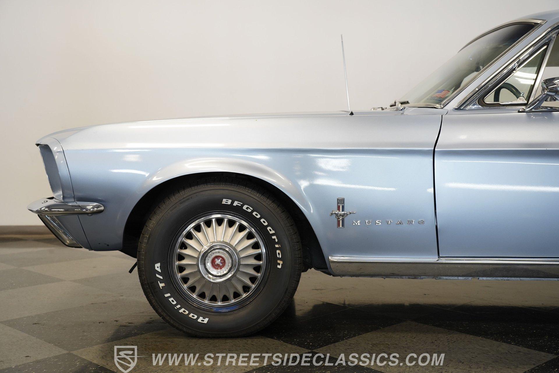 Step back in time with a 1967 Ford Mustang that captures the spirit of classic American muscle. This iconic car is more than just a vehicle; it's a symbol of freedom, style, and the open road, evoking memories of cruising under the sun and making a statement wherever it goes. With its timeless design and rich heritage, this Mustang invites you to own a piece of automotive history while enjoying the thrill of vintage performance. If you're ready to embrace the nostalgia and excitement, this 1967 Ford Mustang is waiting for you. Inside, the Mustang offers a vintage cabin with a vinyl interior that maintains its classic charm. The seats show natural wear with some scuff marks and minor tears, reflecting years of enjoyment. Both bucket seats and the rear bench provide comfortable seating, complemented by a center console with normal use marks. The dashboard and door panels feature authentic scratches and cracks, adding character to the interior. Functional air conditioning, heating, and defrost systems ensure a comfortable ride, making the driving experience as pleasant as it is stylish. Under the hood, this Mustang boasts a robust 302 V8 engine, recently replaced in September 2024, paired with a Weber single 4-barrel carburetor on a stock manifold. The 3-speed automatic transmission shifts smoothly through all gears, delivering a driving experience that balances classic power with reliable mechanics. The suspension and frame are in normal condition, supporting responsive handling with power steering and power brakes. Upgraded front disc brakes and factory-style wheels with BFG Radial T/A tires enhance safety and road presence, making this Mustang a true driver's car. Highlights 1967 Ford Mustang 302 V8 Engine, Replacement Installed 9/2024 3 Speed Automatic Transmission Weber Single 4 Barrel Carburetor Power Steering Power Disc Front Brakes Power Drum Rear Brakes Coil-Over Suspension Vinyl Interior Air Conditioning And Heat Defrost System BFG Radial T/A Tires Driver-Quality Full Repaint Functional Speedometer And Tachometer Financing Available Vehicle Protection Plans Available Worldwide Shipping This 1967 Ford Mustang offers a fantastic blend of classic aesthetics, reliable performance, and authentic character, making it a great buy for enthusiasts and collectors alike. Don't miss your chance to own a car that embodies the muscle car era with modern reliability. Call, email, or come visit our showroom today!