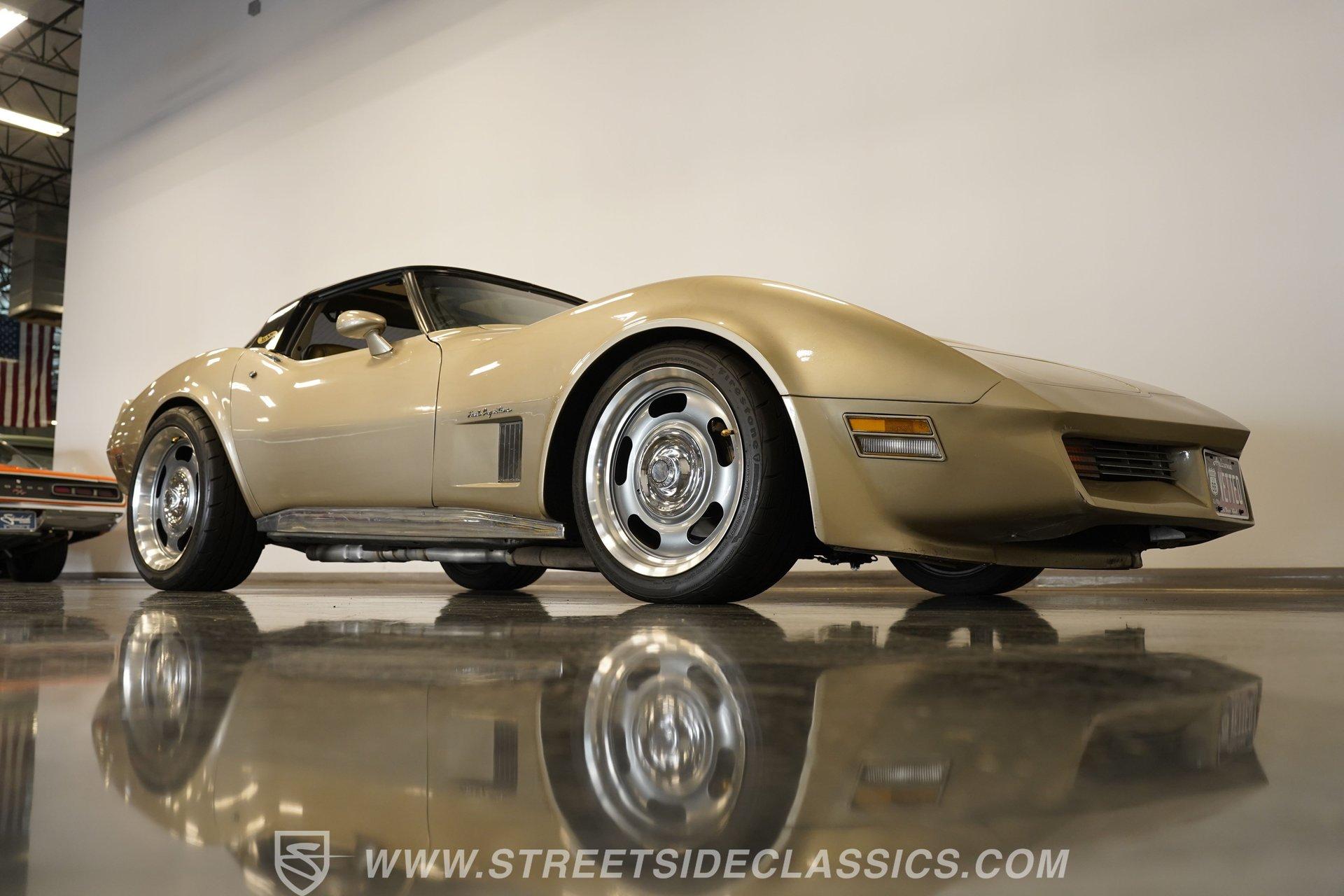 In the long and illustrious lineage of the Corvette, the C3 generation still stands as the longest-running iteration of Chevy's halo car. This 1982 Chevrolet Corvette Collector Edition represents the final year of the C3 and holds a special place in the hearts and minds of enthusiasts everywhere. With its fully repainted Silver Beige Metallic PPF-protected front fenders, bumper, and custom functionally vented hood, this multi-award-winning Corvette is truly a Collector Edition. Pop off this car's T-tops, and you'll be treated to an inviting and all-original Silver Beige leather interior featuring supportive and plush bucket seats separated by a center console armrest, giving this car a true cockpit feel. A three-spoke wood-rimmed power-assisted steering wheel sits in front of a matching set of big analog gauges, including an 85 mph speedometer and a 7,000 rpm tachometer. In typical C3 fashion, a five-pod cluster of gauges sits atop the custom AM/FM/AUX stereo head unit, which also offers Bluetooth connectivity through four brand-new speakers. Power locks, mirrors, seats, windows, air conditioning, and cruise control offer all the modern amenities anyone could hope for in an early 1980s sports car. Under that custom-vented, front-hinged hood, we find a 383-cubic-inch stroker V-8 from West Coast Engines. With its block, intake, and valve covers painted in the same Silver Beige Metallic as the exterior, this potent small block pumps out an impressive 405 horsepower through a custom true-dual exhaust and trick side-exit exhaust. That power is routed through a new Hughes Performance 700R4 four-speed overdrive automatic transmission, complete with all-new trans lines. HIGHLIGHTS: Final Year C3 Multiple Award Winner T-Tops Full Silver Beige Metallic Repaint PPF Applied to Front End Custom Functional Vented Hood 383 Stroker V8 405 HP Edelbrock AVS2 Carb Weiland Street Warrior Intake Engine Painted Silver Beige Metallic New Aluminum Radiator New AC Condenser Serpentine Belt System Shorty Headers Custom Dual Exhaust Side Exit Exhaust New 700R4 Transmission Staggered Aluminum Rallye Wheels Firehawk Indy 500 Tires Four Wheel Power Disc Brakes Power Steering Original Interior AC Power Windows Power Locks Power Mirrors Power Seats AM/FM/AUX Head Unit Four New Speakers Bluetooth Receipts This 1982 Chevrolet Corvette Collector Edition rides on a factory-style suspension and staggered one-piece aluminum Rallye wheels measuring 18 inches in front and 20 inches in the rear, all shod in high-performance Firestone Firehawk Indy 500 tires. The Corvette's third generation spanned fifteen model years from 1968 until 1982. This car stands as a beautiful testament to the evolution of this long-loved sports car, and for good reason. If you've been looking for an award-winning, meticulously cared-for, and head-turning C3, then this is the car you've been waiting for. Don'