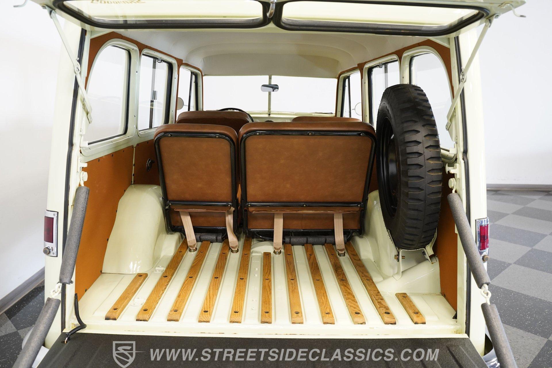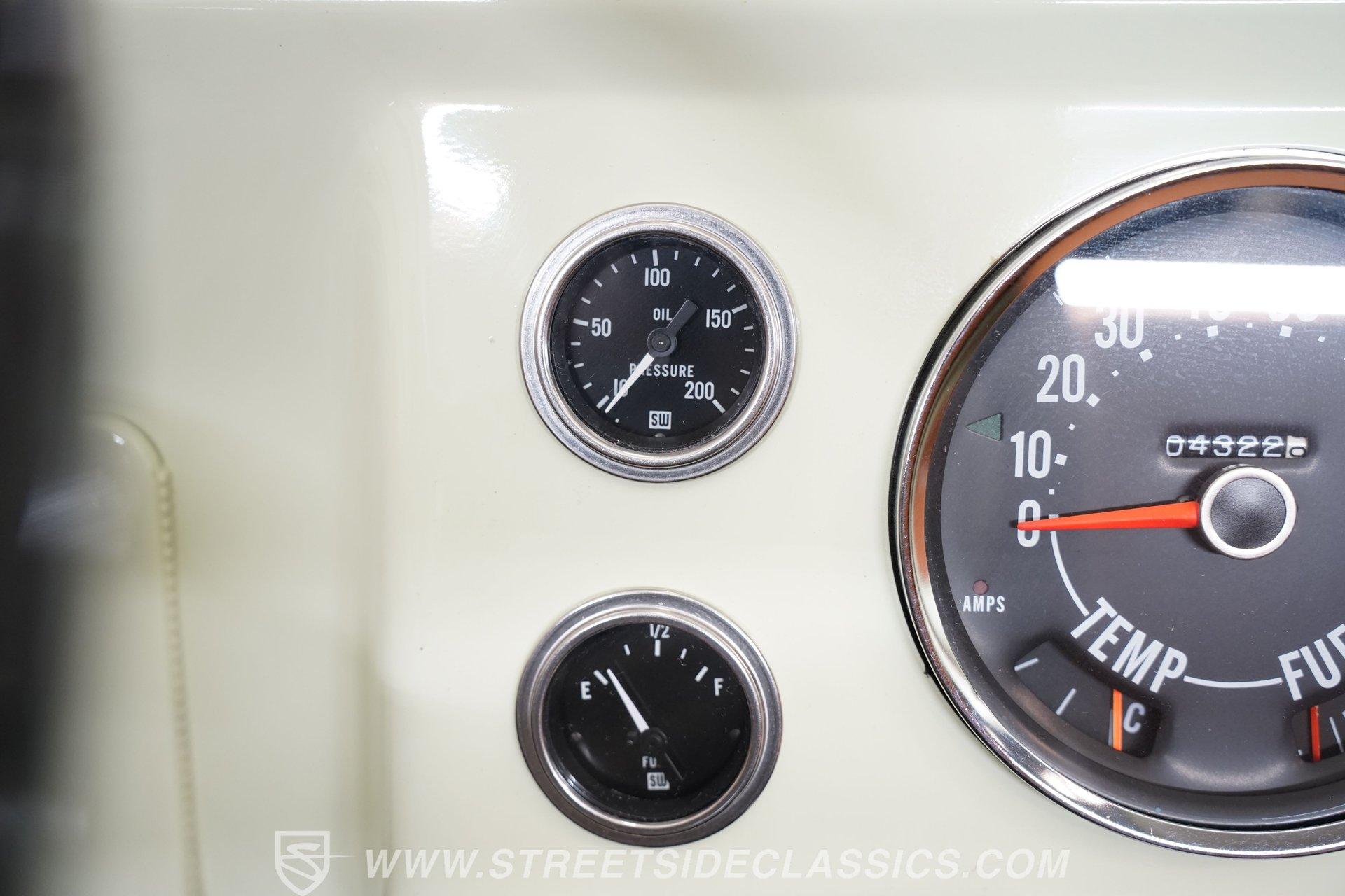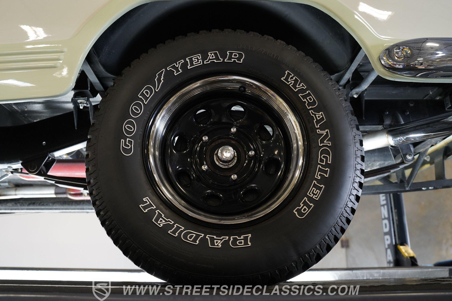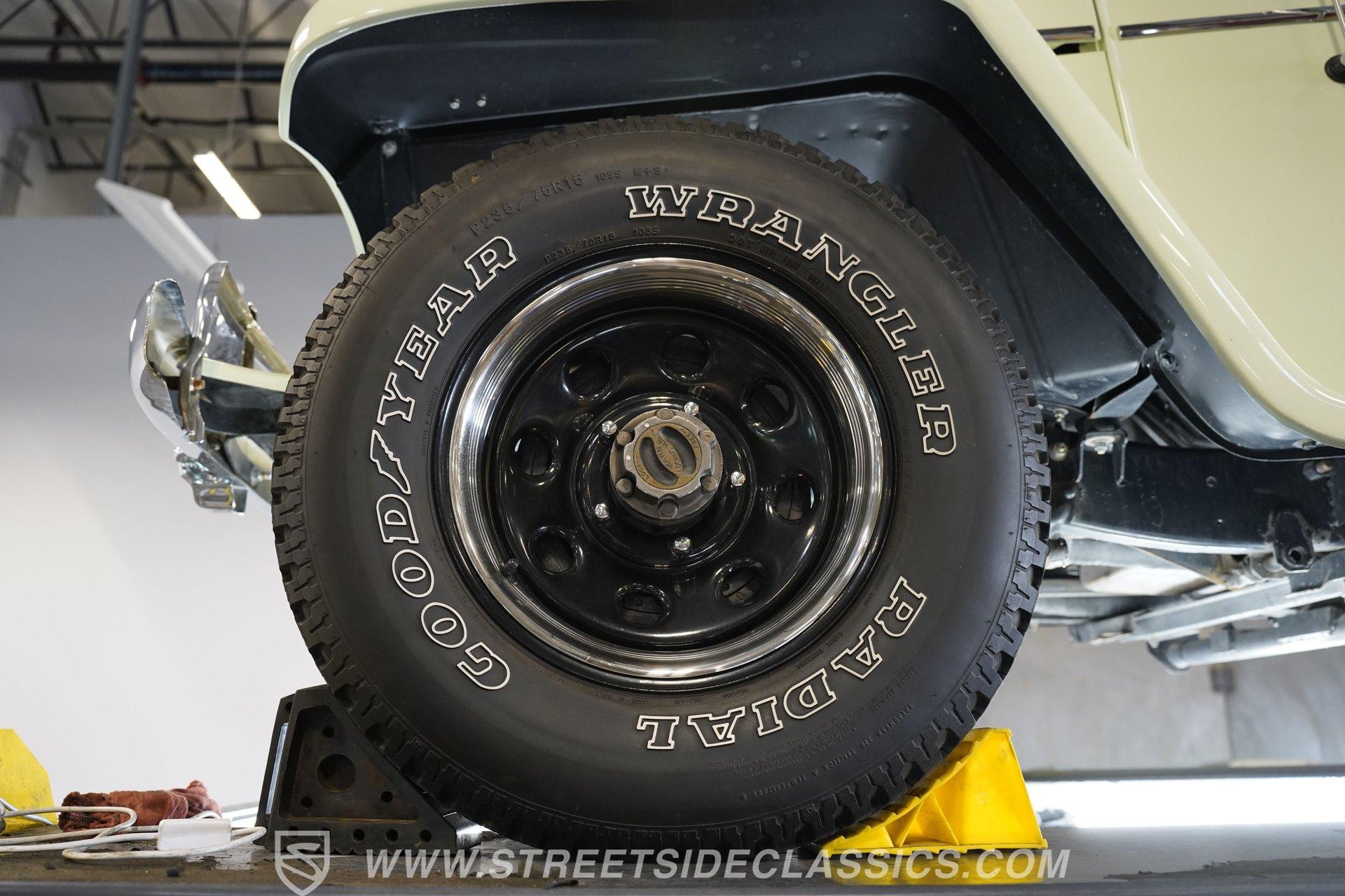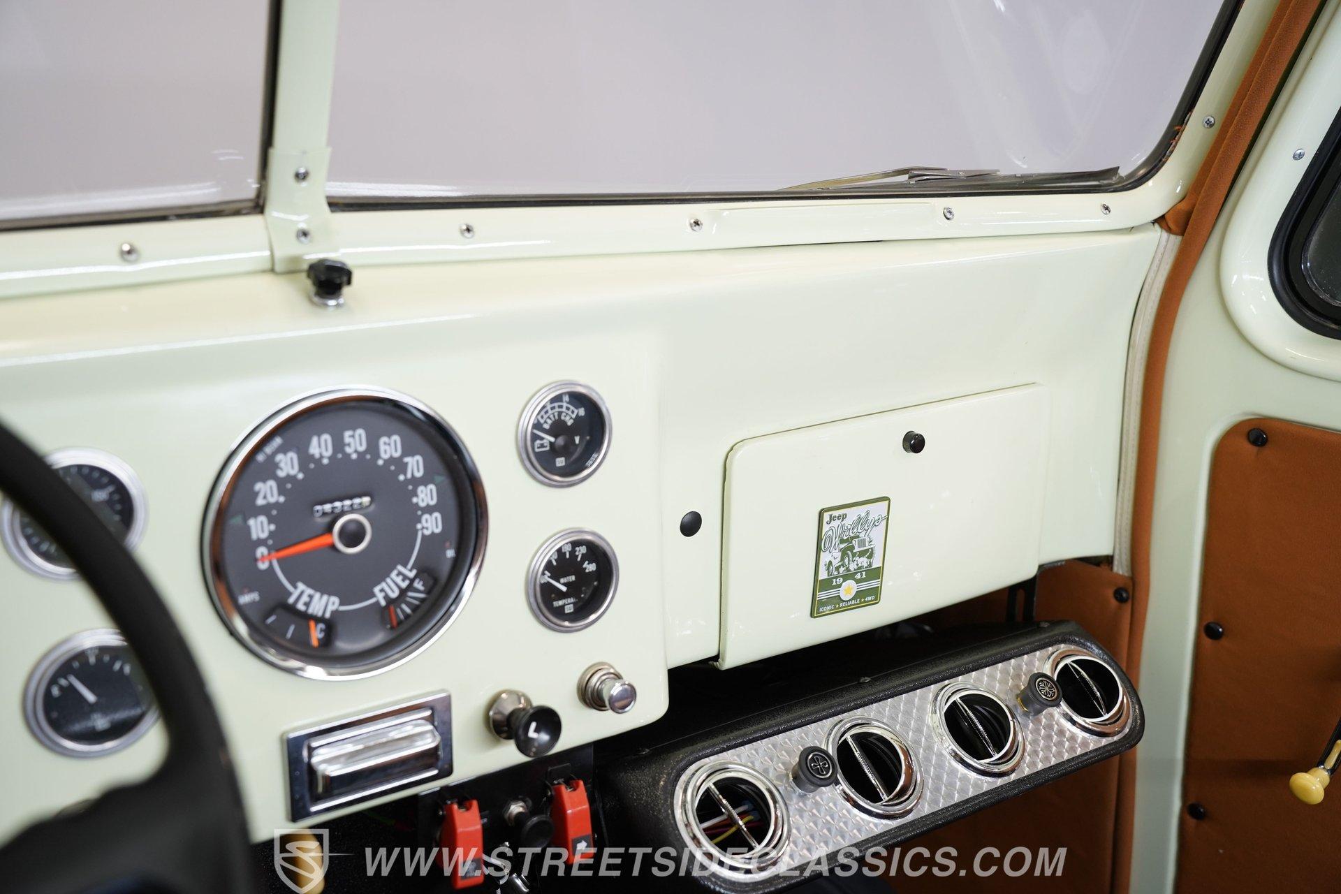 Step back in time with a classic piece of American automotive history that captures the spirit of rugged adventure and timeless style. This 1957 Willys Jeep Wagon embodies the essence of exploration and freedom, a vehicle that tells stories of open roads and endless possibilities. Its iconic design and presence make it a statement on wheels, perfect for those who appreciate heritage and character. Whether parked at a weekend show or cruising through country trails, this Willys Jeep Wagon invites you to own not just a vehicle, but a legacy of classic four-wheel-drive performance. Inside, the Willys ofvfers a blend of vintage charm and thoughtful custom touches. The interior features custom canvas upholstered seats with matching door panels, creating a comfortable yet authentic atmosphere. A vinyl headliner complements the stock-style dash, which includes air conditioning to keep you cool on those sunny drives. The custom floor console and Lokar shifter add a modern touch to the classic setup, while the twin stick transfer case emphasizes its true 4x4 capability. Under the hood, this Willys is powered by a robust 350 Chevy small block engine, complemented by a 3-speed automatic transmission that shifts smoothly through all gears. The drivetrain upgrades include front and rear Dana 44 axles, 4-corner leaf springs, and power drum brakes, delivering reliable performance and control. Additional enhancements like a chromed water pump, aluminum radiator, and electric fan ensure efficient cooling. Equipped with a Spicer transfer case and R134a air conditioning, this Jeep Wagon is ready for both rugged terrain and comfortable cruising. Highlights 1957 Willys Jeep Wagon 4X4 Mileage Since Built: 4,321 350 Chevy Small Block Engine 3-Speed Automatic Transmission Front and Rear Dana 44 Axles 4 Corner Leaf Springs Suspension Power Drum Brakes Front and Rear R134a Air Conditioning System Chromed Water Pump and Aluminum Radiator Electric Cooling Fan Custom Canvas Upholstered Seats Vinyl Headliner and Stock Style Dash Lokar Shifter and Custom Floor Console Black Steel Wheels with Chrome Beauty Rings Goodyear Wrangler Tires 235/75R15 Financing Available Vehicle Protection Plans Available Worldwide Shipping This 1957 Willys Jeep Wagon offers a rare opportunity to own a beautifully restored classic that combines vintage style with modern upgrades. Its solid build and tasteful enhancements make it a standout choice for collectors and enthusiasts alike. Don't miss your chance to experience this iconic 4x4 firsthand. Call, email, or come visit our showroom today!