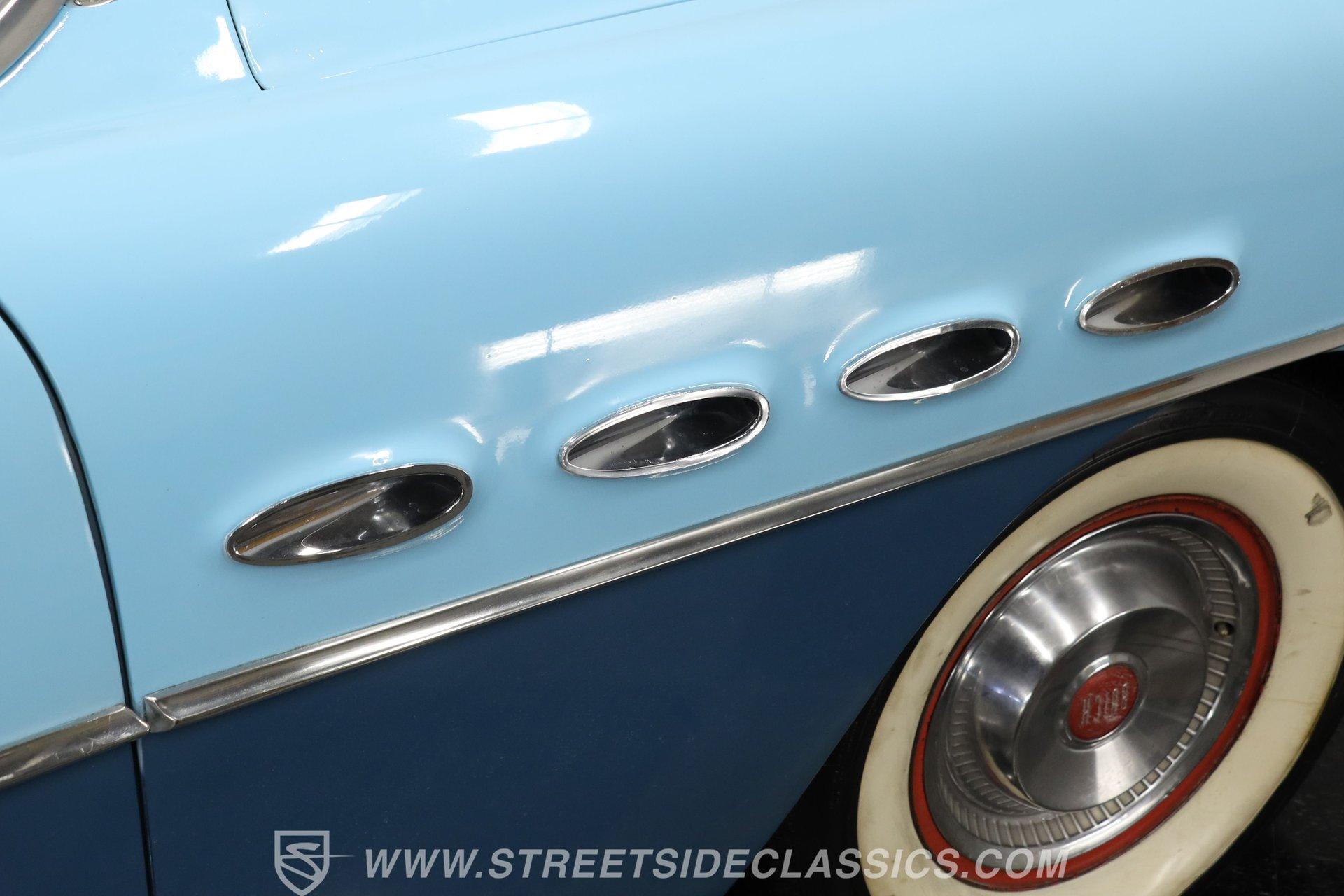 Step back in time with a true icon of American automotive history, a car that embodies the spirit of the 1950s with its classic design and timeless appeal. This 1956 Buick Century Riviera is more than just a vehicle; it's a rolling piece of nostalgia that captures the elegance and innovation of its era. Imagine cruising down the boulevard, turning heads with its distinctive tri-color paint and shining chrome accents, while enjoying the smooth and powerful ride that only a Buick Nailhead V8 can deliver. This hardtop coupe invites you to make memories and own a piece of the past that still shines today. Step inside to experience the factory-correct tri-color interior, a harmonious blend of cloth and vinyl that speaks to the craftsmanship of the time. The cabin maintains its original charm with a clean dash pad, working AM radio, and tasteful chrome detailing that carries a gentle patina, enhancing its vintage authenticity. The headliner and sun visors appear refreshed, complementing the overall well-preserved condition, while the dome light adds a warm glow to your classic driving experience. Under the hood, the period-correct 322 Nailhead V8 engine roars to life, paired with a smooth 2-speed Dynaflow automatic transmission that delivers effortless power. The engine bay presents well for its age, featuring factory-correct belts, hoses, and wires, as well as dual exhausts that hint at the car's performance capabilities. Original factory options like air conditioning and power steering add to the driving comfort, while drum brakes and factory-style suspension ensure a ride that is both reliable and true to its heritage. Highlights 1956 Buick Century Riviera Hardtop Period-Correct 322 Nailhead V8 Engine 2-Speed Dynaflow Automatic Transmission Factory Air Conditioning (Non-Functional) Factory Power Steering Dual Exhaust System Original Tri-Color Cloth & Vinyl Interior Factory AM Radio (Operational) Chrome Bumpers, Grill & Trim 15" Coker Classic WWW Tires Drum Brakes Front and Rear Original Warranty Card & Title Documentation Owner's Manual Financing Available Vehicle Protection Plans Available Worldwide Shipping This 1956 Buick Century Riviera offers a wonderful blend of classic style, solid mechanicals, and authentic details that make it a standout choice for collectors and enthusiasts alike. Don't miss the chance to own this beautifully preserved piece of automotive history. Call, email, or come visit our showroom today! We can assist you with getting an Extended Vehicle Service Plan from Freedom Warranty, which provides comprehensive coverage that can save thousands of dollars on unexpected repairs. Inquire for more details and pricing!
