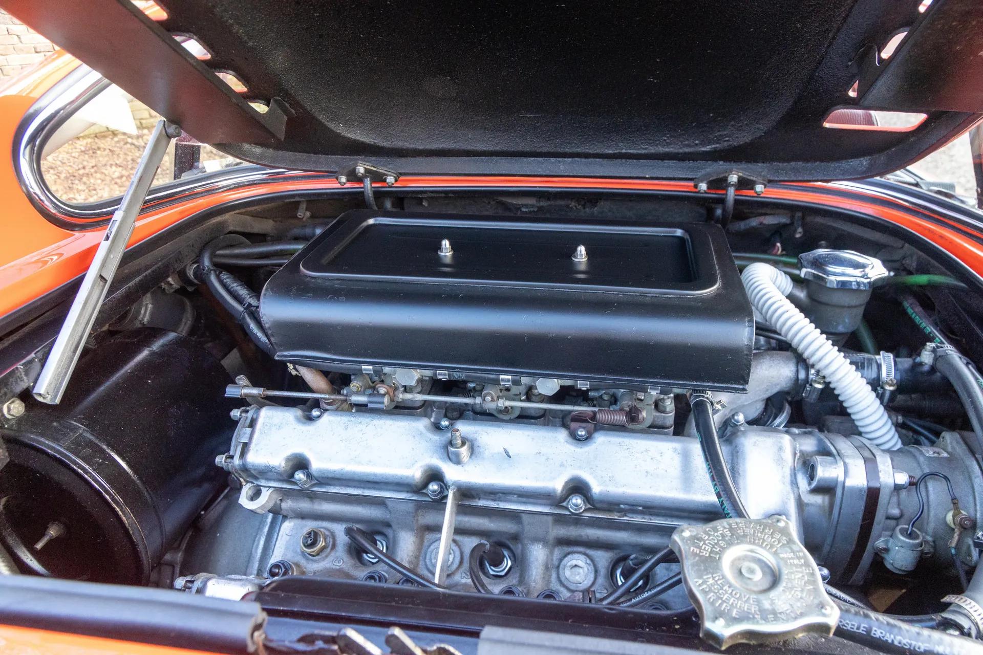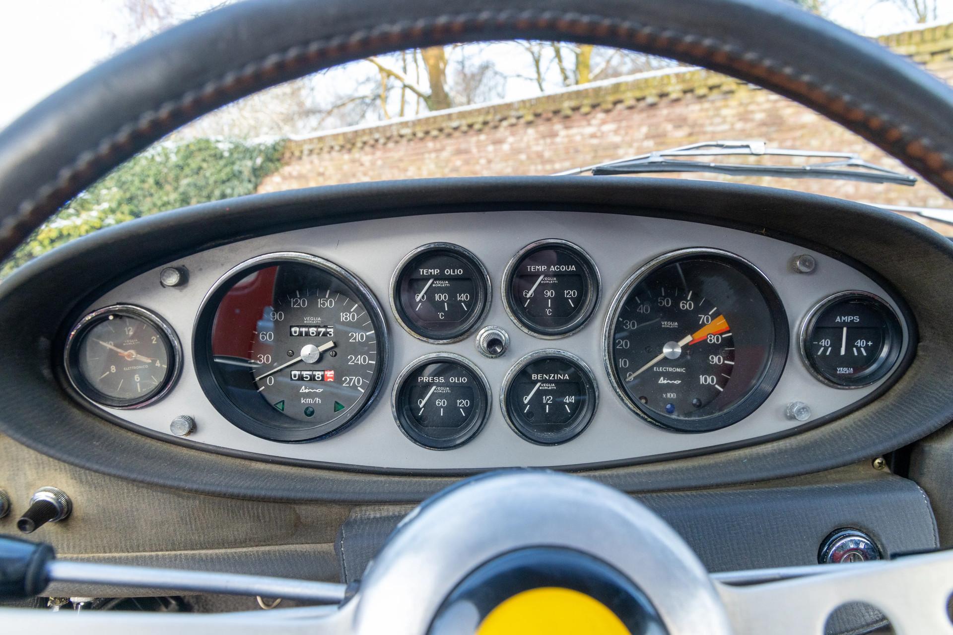 Of the approximately 3,761 Dinos ultimately produced, only 357 were built in this L Series specification. And most of those no longer retain their original color combination and original engine. This example does. Matching numbers and matching colors in Rosso Dino over Nero with optional red leather inserts. Exactly as shown in the 1969 brochure. Even Tony Curtis drove this color combination in The Persuaders.