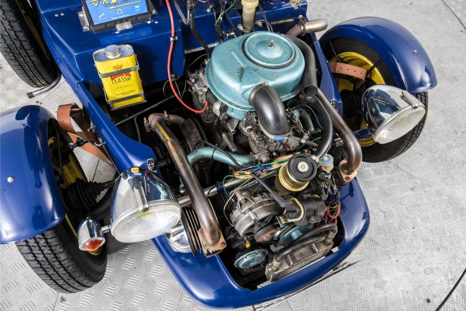 The Lomax is a kit-car based on a 2CV. This makes it a sporty car with simple and familiar technology. The original design of the Kitcar comes from England. This particular car features the 2cv wheels, which hint at its origins. The exhaust along the car, the small windows, and the protruding headlights give it a classic look. It almost looks like a pre-war sports car! The glass front windows can be tilted as desired. The luggage rack offers extra luggage space! The interior is finished with a classic wooden steering wheel, a nice complete dashboard and leather-upholstered seats.After a smooth boarding manoeuvre, you put the key in the ignition, and with a little choke, the car starts right after touching the start button! Then you drive off in this car, as you are used to in a 2CV, with the umbrella shift! It is in very good condition both optically and technically . If you look at the pictures from under the bonnet, you will see how much attention has been paid to getting this Lomax in top technical condition. The beautiful dark blue paintwork totally matches the classic looks of the Lomax and combines very nicely with the chrome accessories.