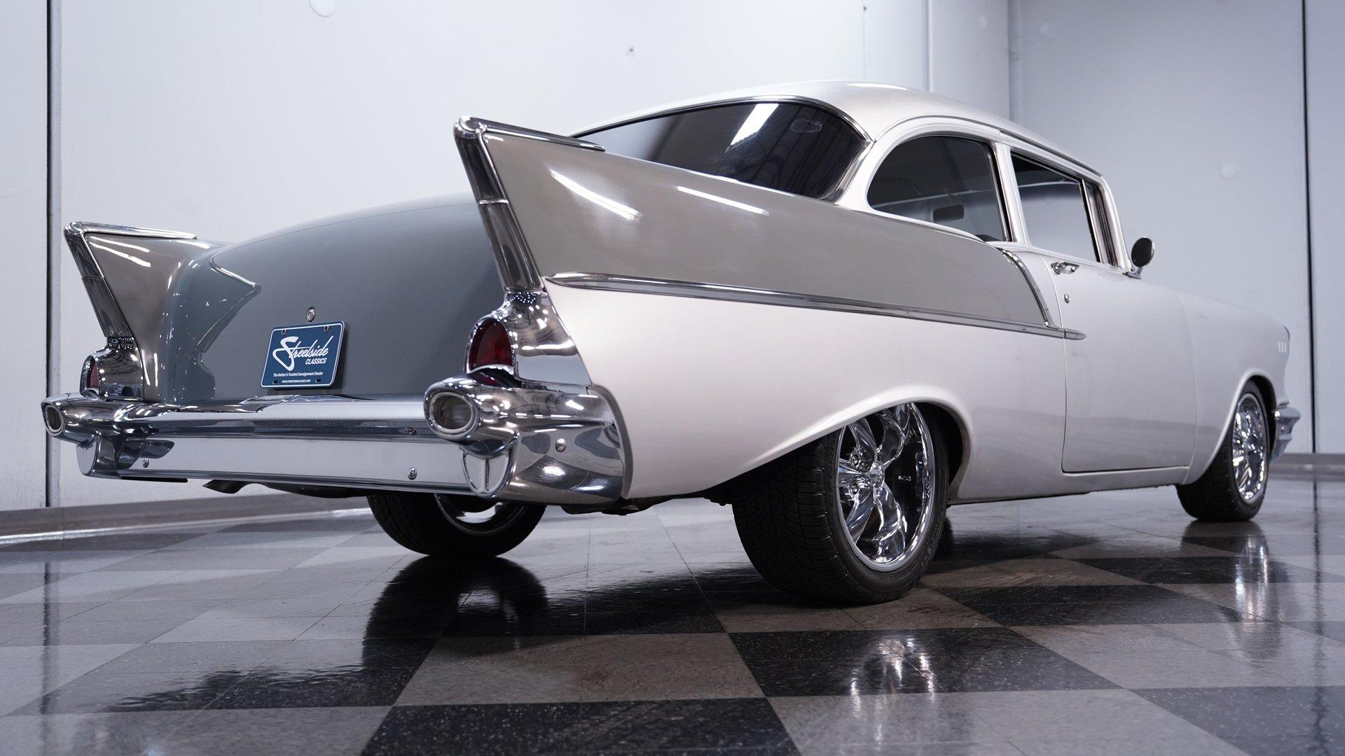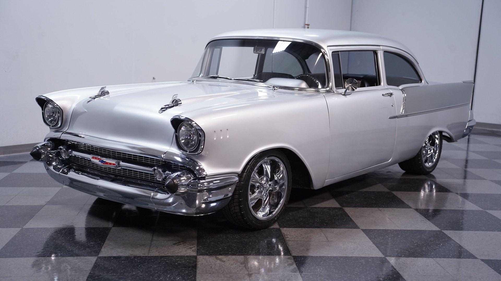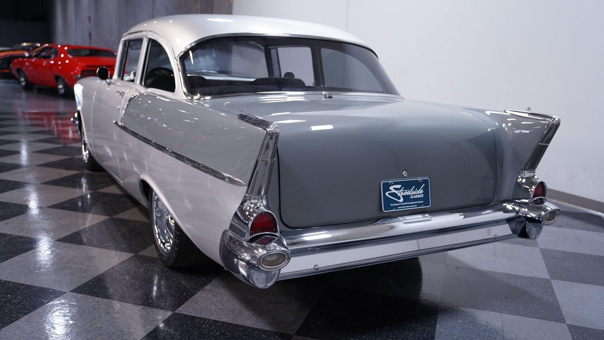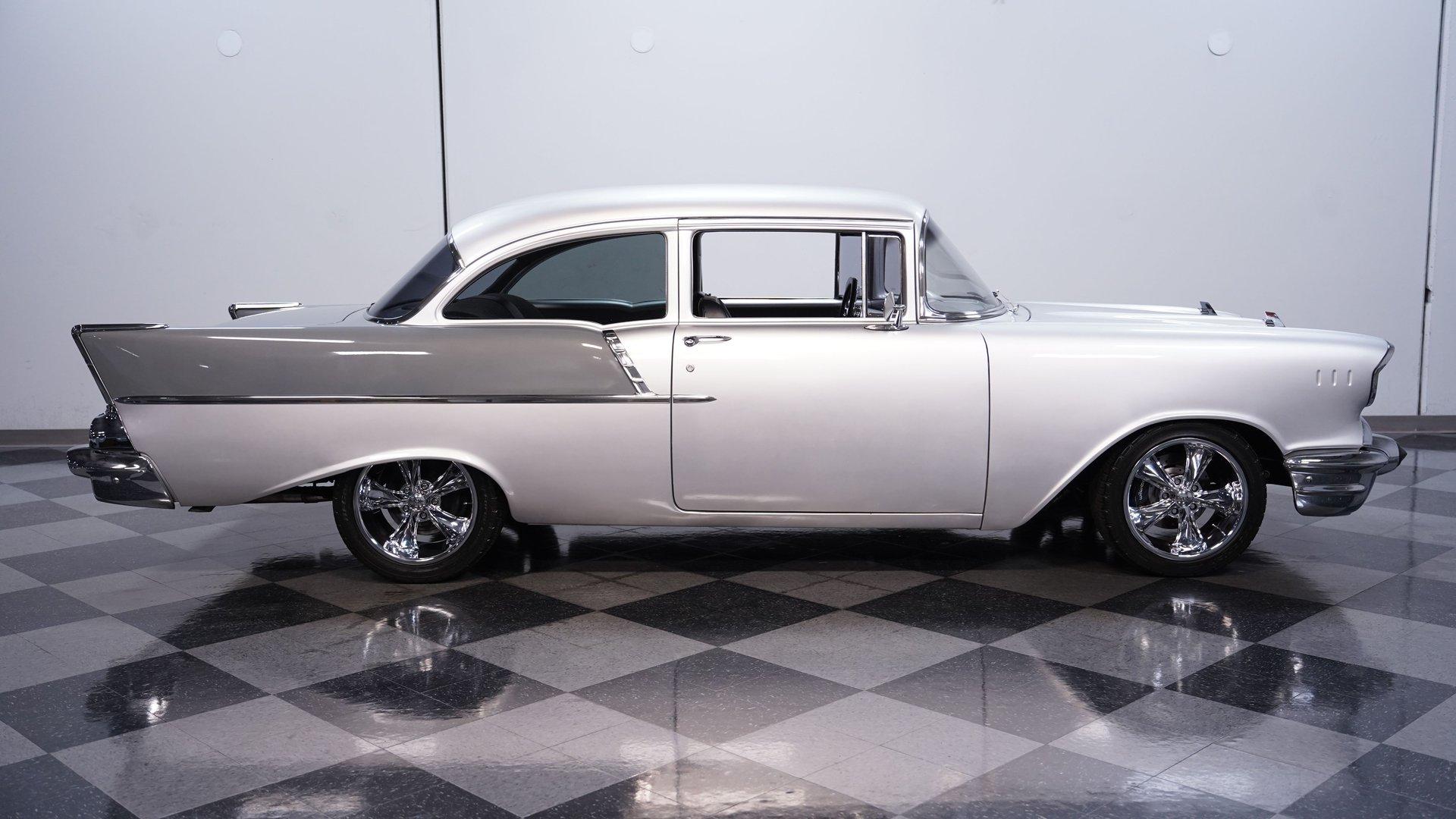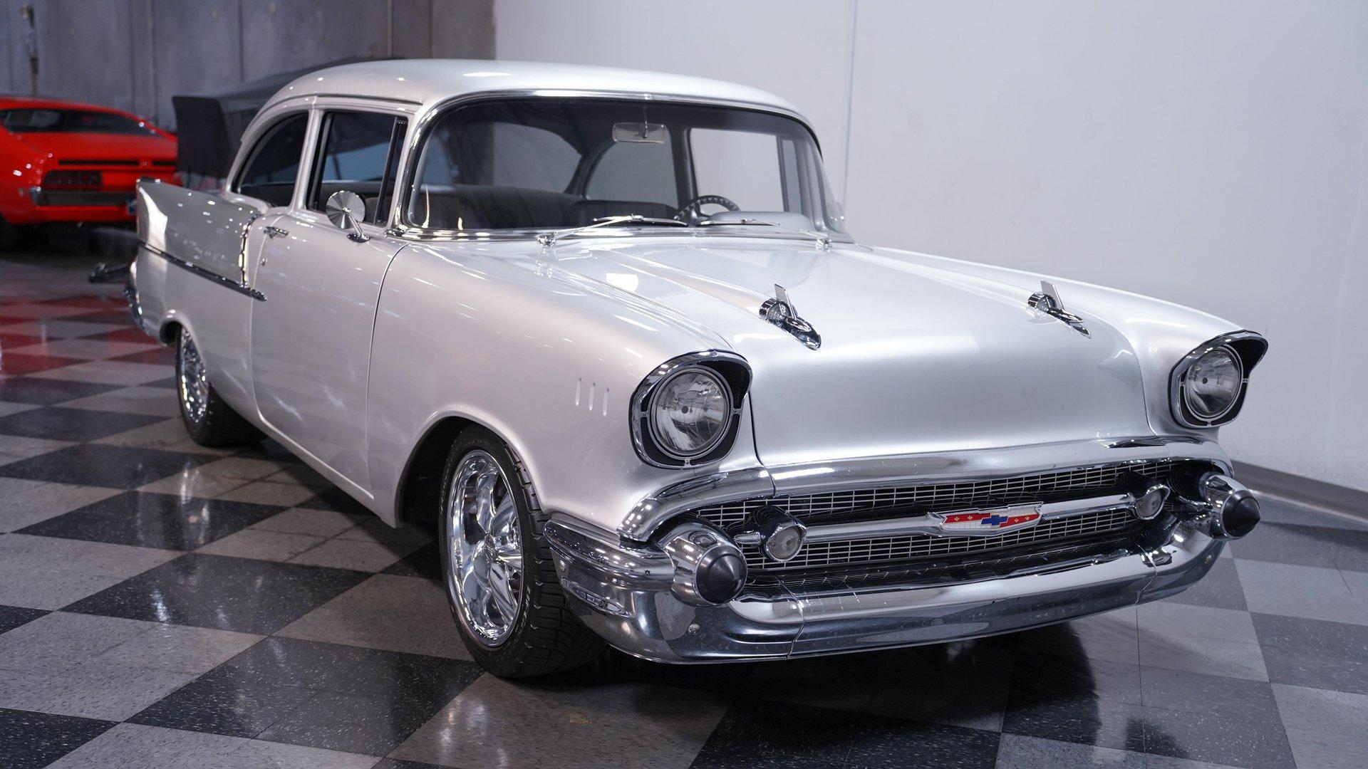 Owning a classic car is more than just transportation; it's a journey back to an era when style and personality ruled the road. Imagine cruising down the street in a car that turns heads and sparks nostalgia wherever it goes. This 1957 Chevrolet Bel Air Restomod captures that spirit perfectly, blending timeless design with modern enhancements to create a truly unique driving experience. Whether you're a seasoned collector or a passionate enthusiast, this Bel Air offers an opportunity to own a piece of automotive history reimagined for today's roads. Step inside to find a comfortable and thoughtfully upgraded interior that respects the classic vibe while offering modern conveniences. The upholstery is in excellent condition, showing no rips or tears, complemented by a well-maintained headliner and door panels. The dash displays nicely and the gauges provide clear readings for easy monitoring. Features like air conditioning, heat, a tilt steering wheel, and an AM/FM radio with auxiliary input ensure comfort and entertainment on every drive. Under the hood, this Bel Air is powered by a robust 350 cubic inch Small Block V8 Goodwrench crate engine, equipped with Edelbrock aluminum heads and a Holley EFI system for impressive performance. The engine is paired with a 5-speed Tremec 3550 manual transmission that shifts smoothly, delivering an engaging driving experience. Enhanced by front disc brakes with Wilwood calipers and drilled, slotted rotors, power steering, and a lowered suspension with tubular upper QA1 control arms, this restomod is built for responsive handling and confident stopping power. Highlights 350 CI Small Block V8 Goodwrench Crate Engine Edelbrock Aluminum Heads Holley EFI system 5-Speed Tremec 3550 Manual Transmission Front Disc Brakes With Wilwood Calipers Power Steering And Power Brakes Air Conditioning And Heat Functional Tilt Steering Wheel AM/FM Radio With Aux Input Cloth And Vinyl Interior 17" Foose Wheels With Performance Tires Lowered Factory Style Suspension Financing Available Vehicle Protection Plans Available Worldwide Shipping This 1957 Chevrolet Bel Air Restomod is a fantastic choice for anyone looking to combine classic style with modern reliability and performance. It's ready to impress at shows or provide memorable weekend cruises. Don't miss your chance to own this beautifully restored and upgraded classic. Call, email, or come visit our showroom today!