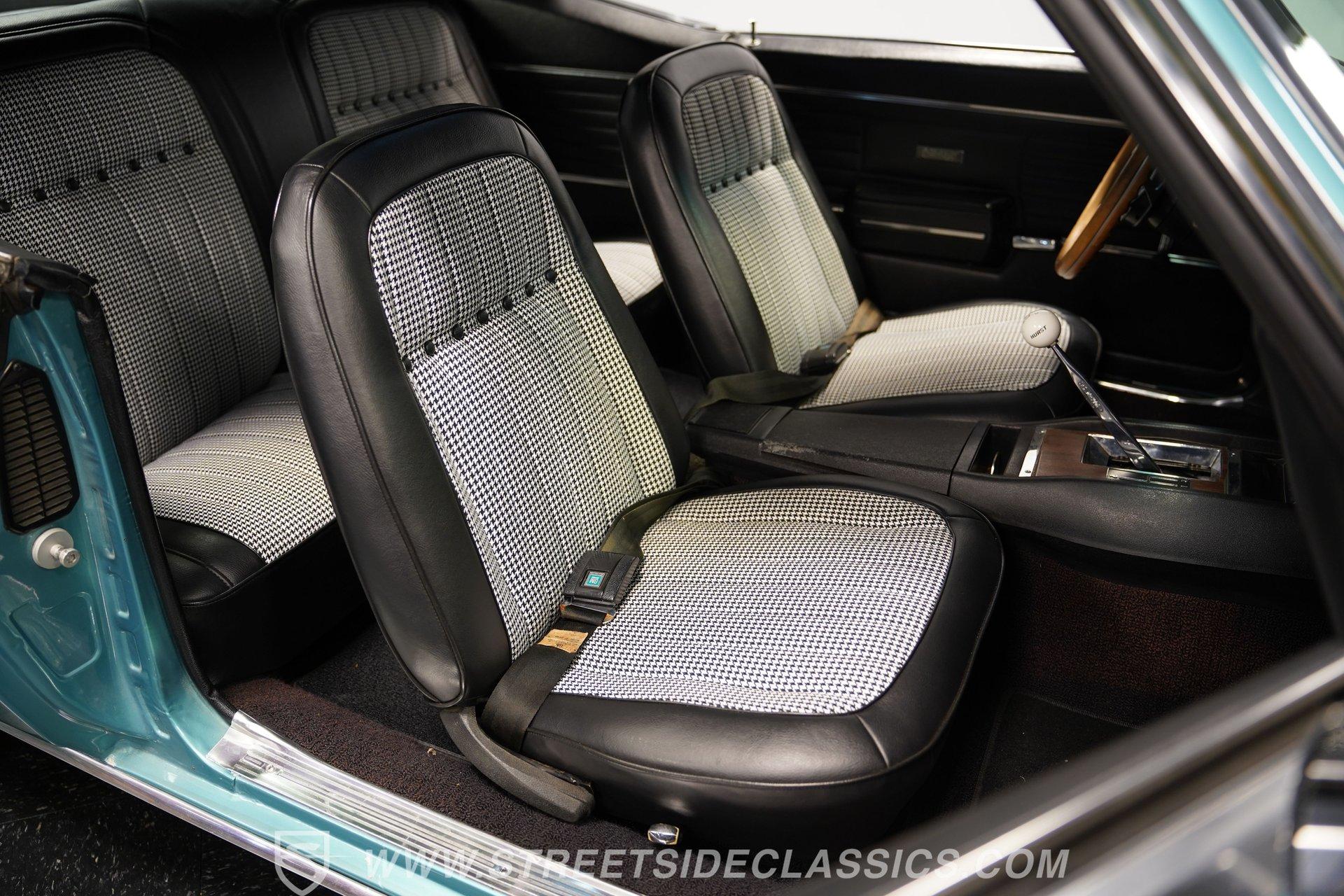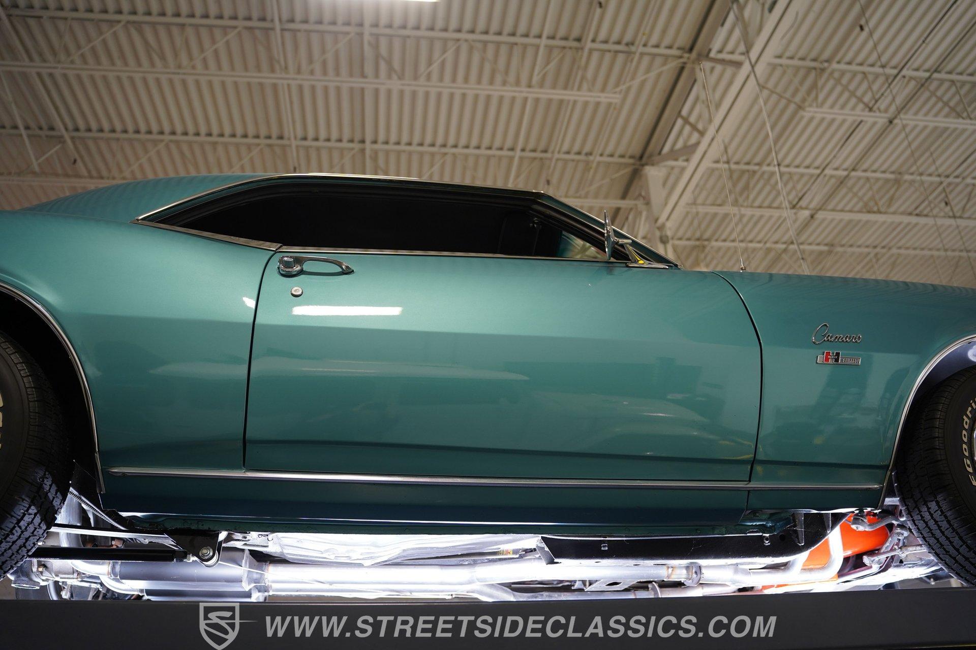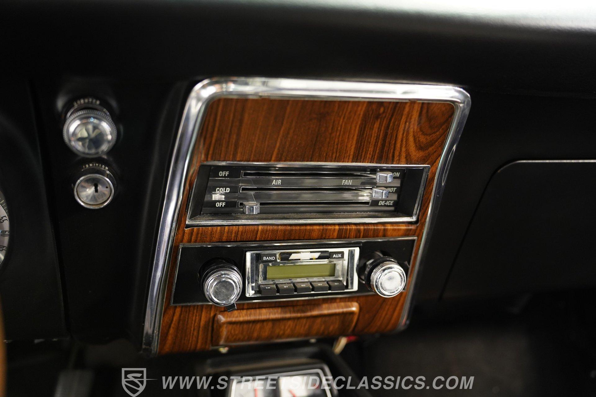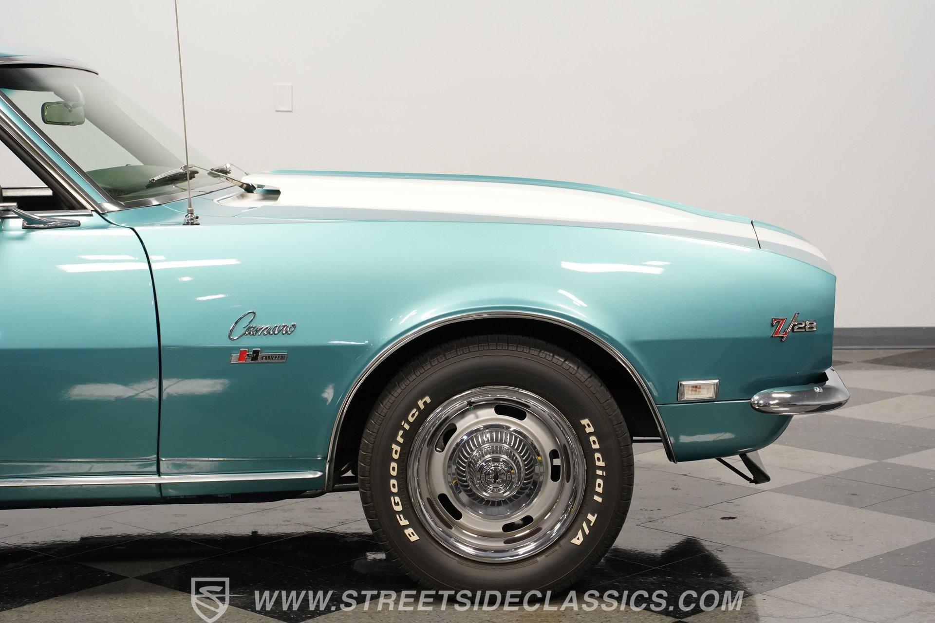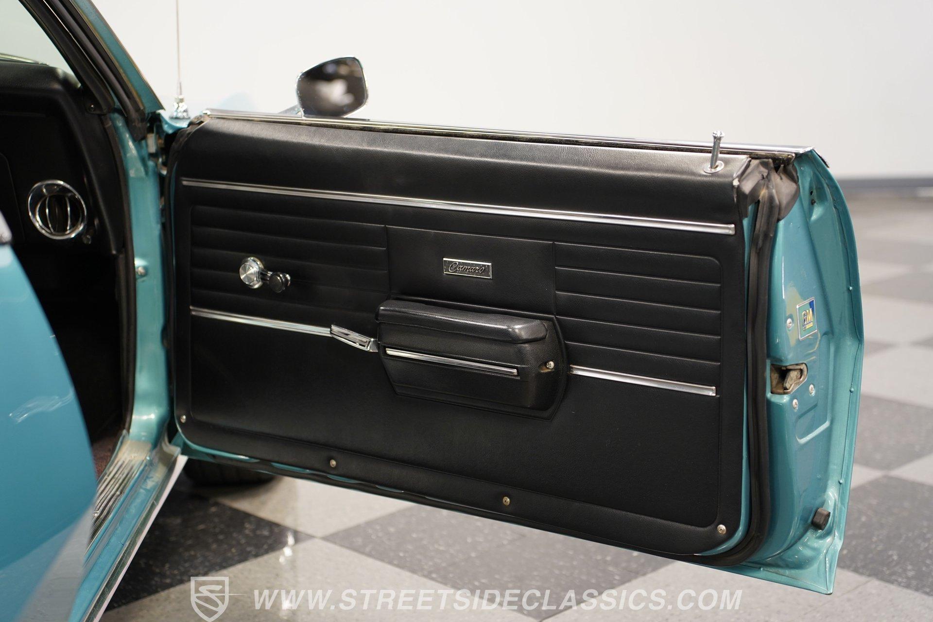 This 1968 Chevrolet Camaro Z/28 Tribute wears Island Teal paint accented by white striping running down its iconic cowl hood. Classic 15-inch rally wheels are wrapped in 225/60R15 and 245/60R15 BF Goodrich Radial T/A rubber for the perfect muscle car stance. Clean glass flows across all windows, while a rear spoiler caps off the back end. Black vinyl bucket seats with deluxe houndstooth inserts anchor the cockpit, separated by a center console housing factory-style gauges and Hurst floor-mounted shifter. The steering column accepts a custom wood-rimmed wheel, while a retro-styled AM/FM radio provides sound. Factory-style door panels and headliner maintain the first-generation aesthetic. An Edelbrock Victor Jr intake and Holley Brawler carburetor feed the healthy 327 small-block, backed by a Munice 4-speed manual transmission that sends power back to a 9-inch Ford rear end. Long-tube headers lead to dual exhaust and rumbling FlowMaster mufflers. Power steering and front power disc brakes handle control. Moroso chrome valve covers and a chrome open-element air cleaner dress the clean engine bay, while rear Traction bars strengthen the chassis. HIGHLIGHTS: 327 V8 Engine 4-Speed Manual Transmission Edelbrock Intake Holley Brawler Carburetor 9-Inch Ford Rear End Long Tube Headers Dual Exhaust FlowMaster Mufflers Front Power Disc Brakes Traction Bars Island Teal Paint With White Stripes 15-Inch Rally Wheels 225/60R15 Front, 245/60R15 Rear BF Goodrich Radial T/A Tires Black Vinyl Interior With Bucket Seats Center Console with Factory Style Gauges Cowl Induction Hood Custom Wood Rimmed Steering Wheel Power Steering AM/FM Radio Rear Spoiler and Chin Spoiler With classic muscle car looks, quality upgrades and thrilling performance, this 1968 Chevrolet Camaro Z/28 Tribute is ready to impress its next owner. Call today!