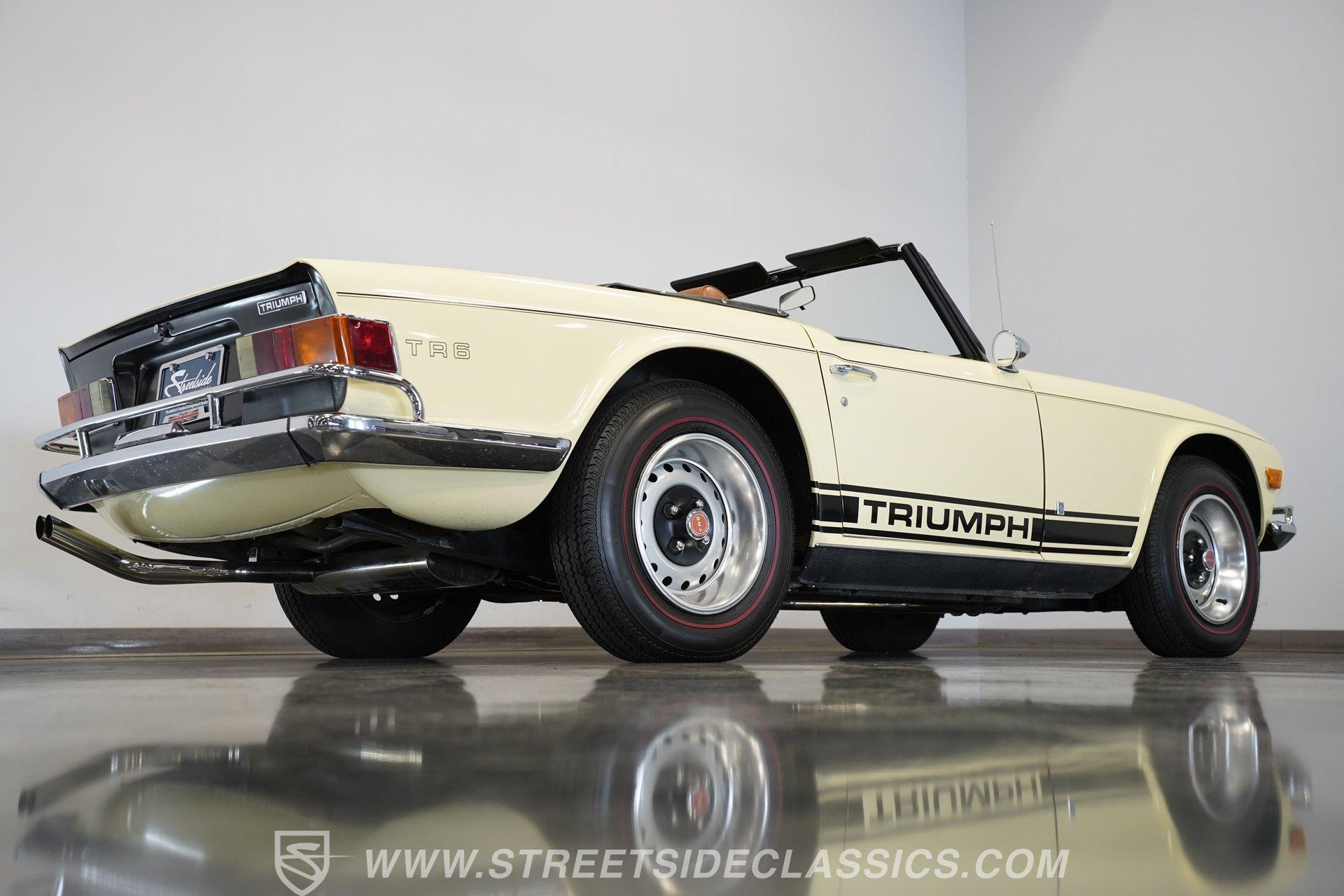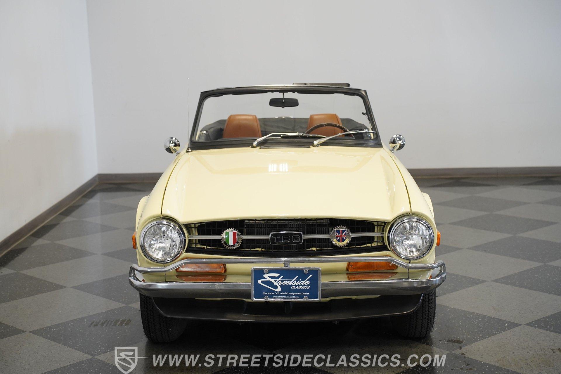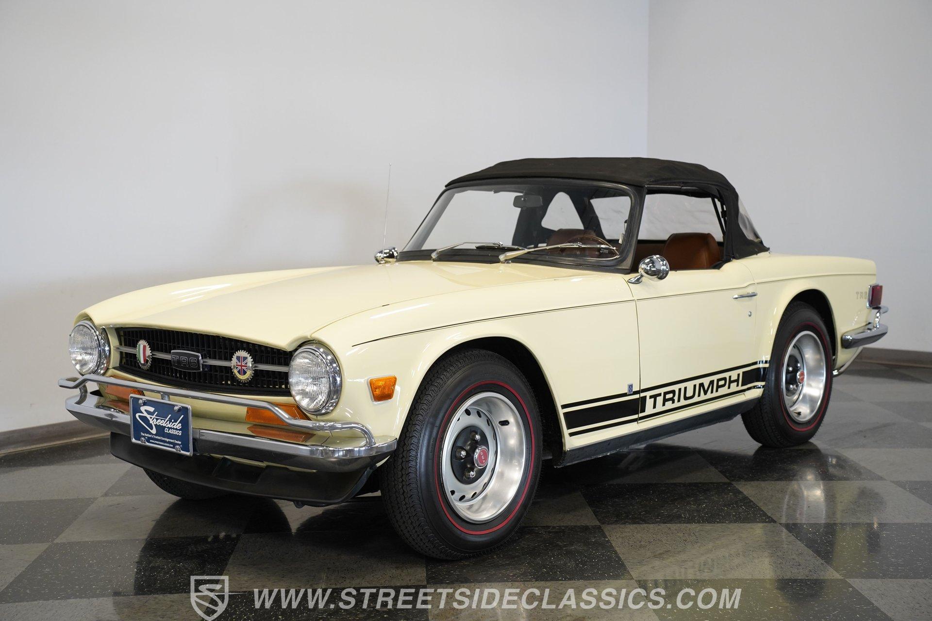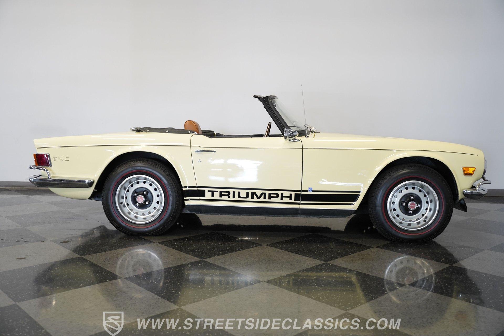 Owning a classic car is more than just a hobby; it's a lifestyle, a statement, and a journey into automotive history. Imagine cruising down open roads, the wind in your hair, and a timeless design turning heads at every corner. This 1972 Triumph TR6 is a shining example of British sports car heritage, blending classic charm with unique modern touches. Whether you're a seasoned collector or a passionate enthusiast, this TR6 invites you to experience driving in its purest form. Its distinctive character and engaging personality make it a must-have for anyone who appreciates the art of driving. Step inside the cabin and discover a thoughtfully redone interior that balances classic style with modern upgrades. The bucket seats, door panels, carpet, and dashboard are all in very good condition, creating a comfortable and inviting space. Unique details such as the white-faced Smiths gauges and a darker stained wood dash add a bespoke touch. The Moto-Lita steering wheel enhances the driving experience with a vintage feel. For entertainment, a JVC AM/FM/CD/Bluetooth stereo deck paired with a Pioneer sound system keeps your favorite music crystal clear on every journey. Under the hood, this TR6 features a rebuilt 2500cc engine equipped with dual single barrel carburetors, offering a spirited and responsive drive. Paired with a smooth-shifting 4-speed manual transmission, the drivetrain delivers an engaging connection between driver and machine. The car rides on factory-style painted steel wheels wrapped in redline tires, supported by a coil-over suspension and front disc brakes for improved handling and stopping power. A newer aluminum radiator helps maintain optimal engine temperature, ensuring reliability on every drive. Highlights 1972 Triumph TR6 Model Year Rebuilt 2500cc Engine With Carburetors 4-Speed Manual Transmission Dual Single Barrel Carburetors Full Repaint With High-Gloss Finish Unique Interior With White Face Gauges Moto-Lita Steering Wheel JVC AM/FM/CD/Bluetooth Stereo Deck Pioneer Sound System Coil-Over Suspension Front Disc Brakes, Power Brakes Painted Steel Wheels With Beauty Rings Redline Tires Manual Convertible Top Financing Available Vehicle Protection Plans Available Worldwide Shipping This 1972 Triumph TR6 is a fantastic blend of classic style and modern functionality, ready to provide an exhilarating driving experience. Its unique interior upgrades and mechanical enhancements make it a standout choice for anyone looking to own a piece of automotive history. Don't miss your chance to make this iconic British roadster yours. Call, email, or come visit our showroom today!