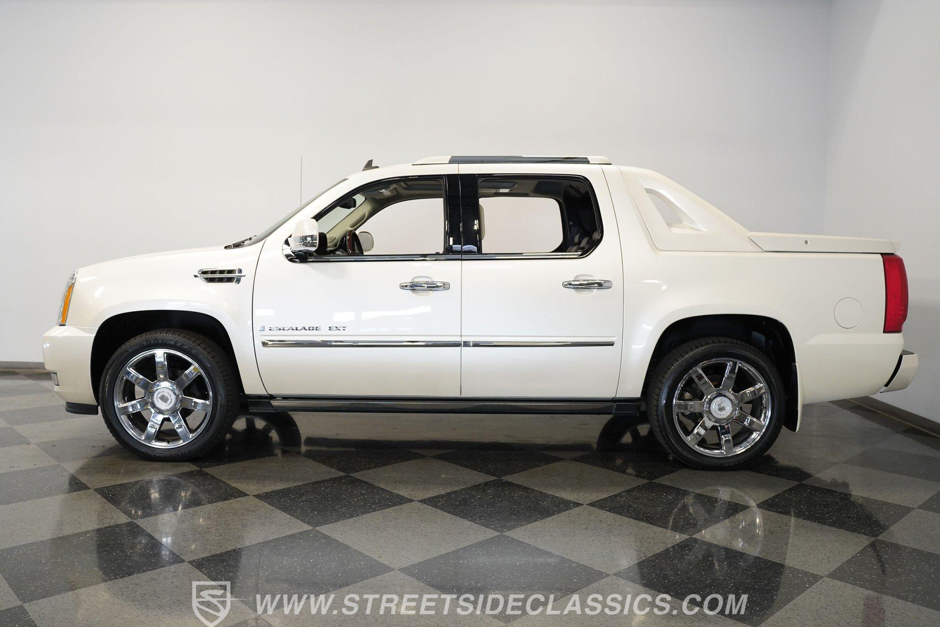 Step into a world where luxury meets rugged capability with this 2009 Cadillac Escalade EXT. More than just a vehicle, it represents a lifestyle of sophistication blended with power, perfect for those who desire both comfort and utility. Every journey taken in this Escalade is an invitation to experience the prestige of Cadillac craftsmanship combined with the versatility of a premium pickup. Its timeless pearl white finish and commanding presence make a bold statement on the road. If you've been searching for a truck that delivers on every level, this 2009 Cadillac Escalade EXT is the one to explore. Inside, you will find an interior that exudes comfort and style. The cabin is equipped with leather seats that are both heated and ventilated, ensuring a pleasant ride no matter the weather. Power-adjustable seats and pedals allow for a personalized driving position, while the heated steering wheel adds a touch of luxury on colder days. The rear bench offers ample space, and the overall interior condition reflects careful maintenance and thoughtful use. Under the hood lies a robust 6.2-liter V8 engine paired with a 6-speed automatic transmission, designed to deliver smooth and responsive performance. This powertrain is complemented by a sophisticated all-wheel-drive system, ensuring confident handling in various driving conditions. The electronic fuel injection system enhances efficiency and throttle response, while the suspension and power brakes contribute to a balanced and controlled ride. This Escalade EXT is built to combine strength with refinement, making it a capable and enjoyable vehicle to drive. Highlights 6.2 Liter V8 Engine 6-Speed Automatic Transmission All-Wheel Drive System Factory High-Gloss Pearl White Paint 74,820 Actual Mileage Leather Interior With Heated Seats Ventilated Front Seats Heated Steering Wheel Power-Adjustable Pedals Power Locks, Mirrors, and Windows Air Conditioning With R-134A Refrigerant Four Wheel Disc Brakes Coil-Over Suspension Back-Up Camera Financing Available Vehicle Protection Plans Available Worldwide Shipping This 2009 Cadillac Escalade EXT is a superb choice for anyone looking to combine luxury and utility in one impressive package. Its well-maintained condition and comprehensive feature set make it a standout in its class. Don't miss the opportunity to own a vehicle that offers both prestige and practicality. Call, email, or come visit our showroom today!