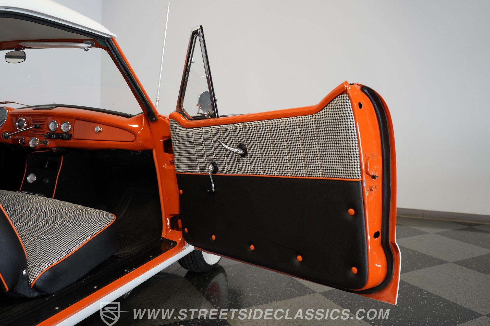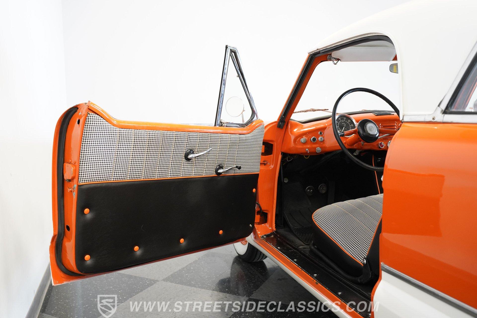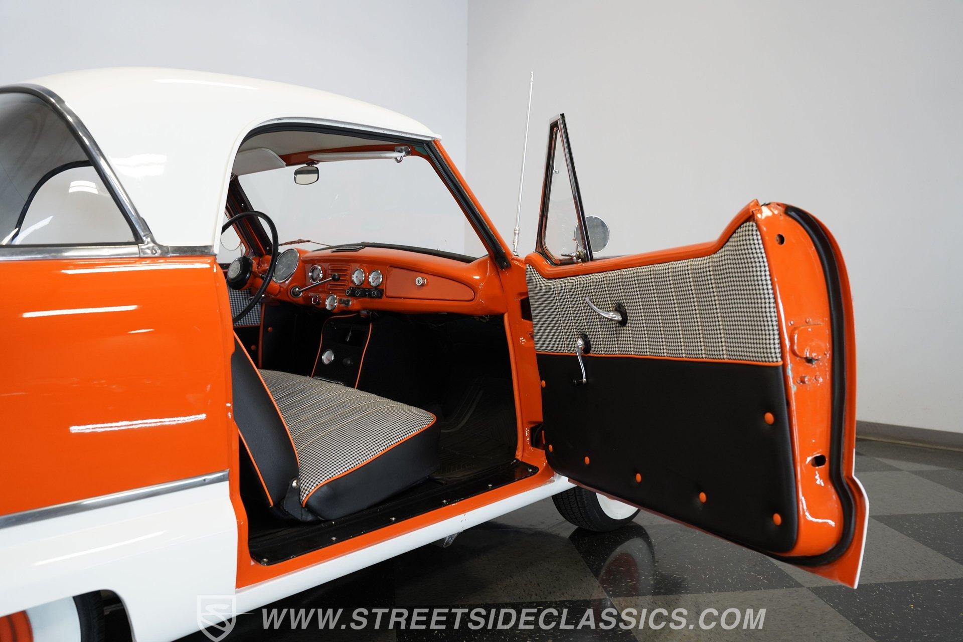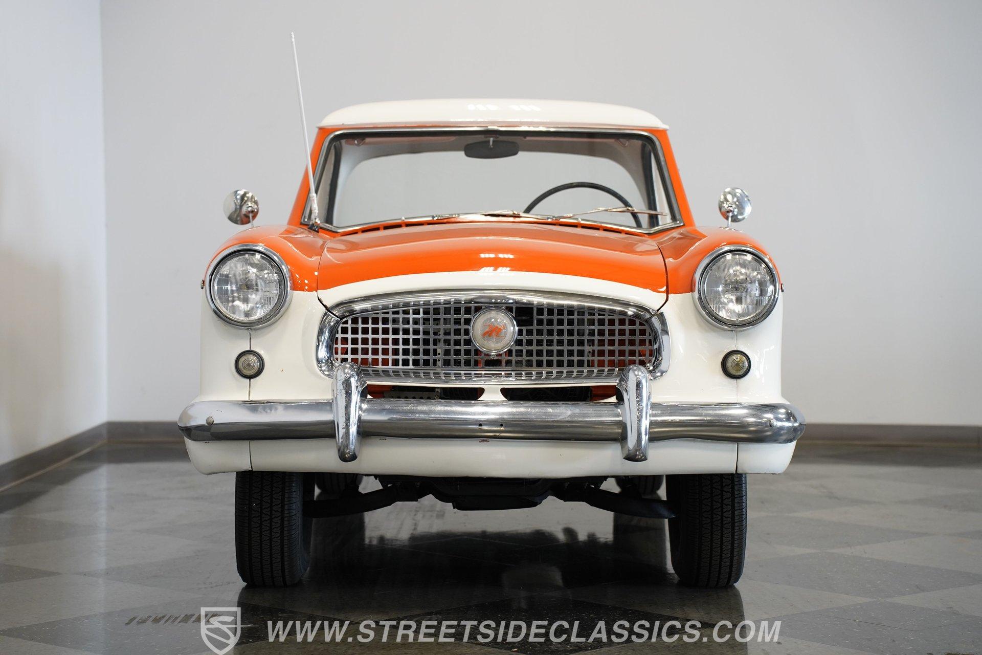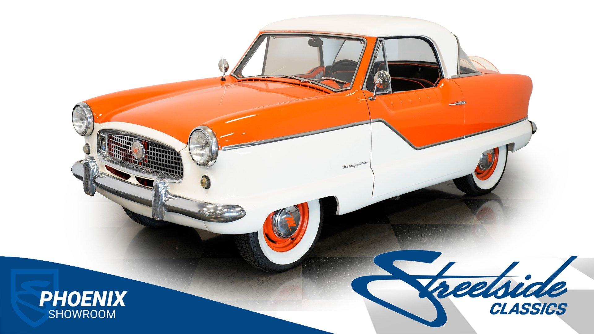 Step back in time and embrace the charm of a bygone era with this 1959 Nash Metropolitan, a true icon of compact elegance and American ingenuity. This Series IV model, the most sought-after in its line, carries the spirit of a simpler time when cars were crafted with character and personality. Owning this classic is not just about transportation but about making a statement, evoking nostalgia, and creating memories on every drive. Its distinctive two-tone paint and bright personality invite you to stand out from the crowd. If you're ready to own a piece of automotive history, this Nash Metropolitan is waiting to be your next adventure. Step inside to discover a thoughtfully restored interior that combines vintage style with comfort. The seats and door panels are custom upholstered in a striking houndstooth pattern accented with orange piping, lending a unique flair to the cabin. The interior shows minimal signs of use, reflecting careful maintenance and pride of ownership. Modern touches include aftermarket air conditioning controls and a retro-style radio with Bluetooth capability, ensuring you enjoy your drives with comfort and entertainment. Under the hood, this Nash Metropolitan is powered by its original 1.5L inline 4 engine paired with a 3-speed manual transmission, delivering a driving experience that is both engaging and authentic. The engine features a single-barrel carburetor and has been rebuilt at an unknown date, maintaining its classic character. The vehicle is equipped with R134a air conditioning components stored in the trunk, ready for installation or upgrade. Its factory-style suspension, drum brakes, and 13-inch steel wheels with whitewall tires ensure a smooth ride that respects the car's heritage. Highlights: 1959 Nash Metropolitan Series IV Model 1.5L Inline 4 Engine 3-Speed Manual Transmission Original Or Older Restoration Two Tone Paint With Whitewall Tires Custom Houndstooth Interior With Orange Piping Aftermarket Air Conditioning Controls Retro Style Radio With Bluetooth Mic R134a Air Conditioning Components In Trunk Factory Style Suspension And Drum Brakes 13-Inch Steel Wheels With Chrome "M" Hub Caps Rear Mounted Spare With Leather Cover Chrome Dual Side Mirrors And Antenna Brightwork And Glass In Good Condition Financing Available Vehicle Protection Plans Available Worldwide Shipping This 1959 Nash Metropolitan is an excellent opportunity to own a distinctive and well-maintained classic that offers both style and an enjoyable driving experience. Don't miss your chance to add this bright and fun vehicle to your collection or daily drive. Call, email, or come visit our showroom today!