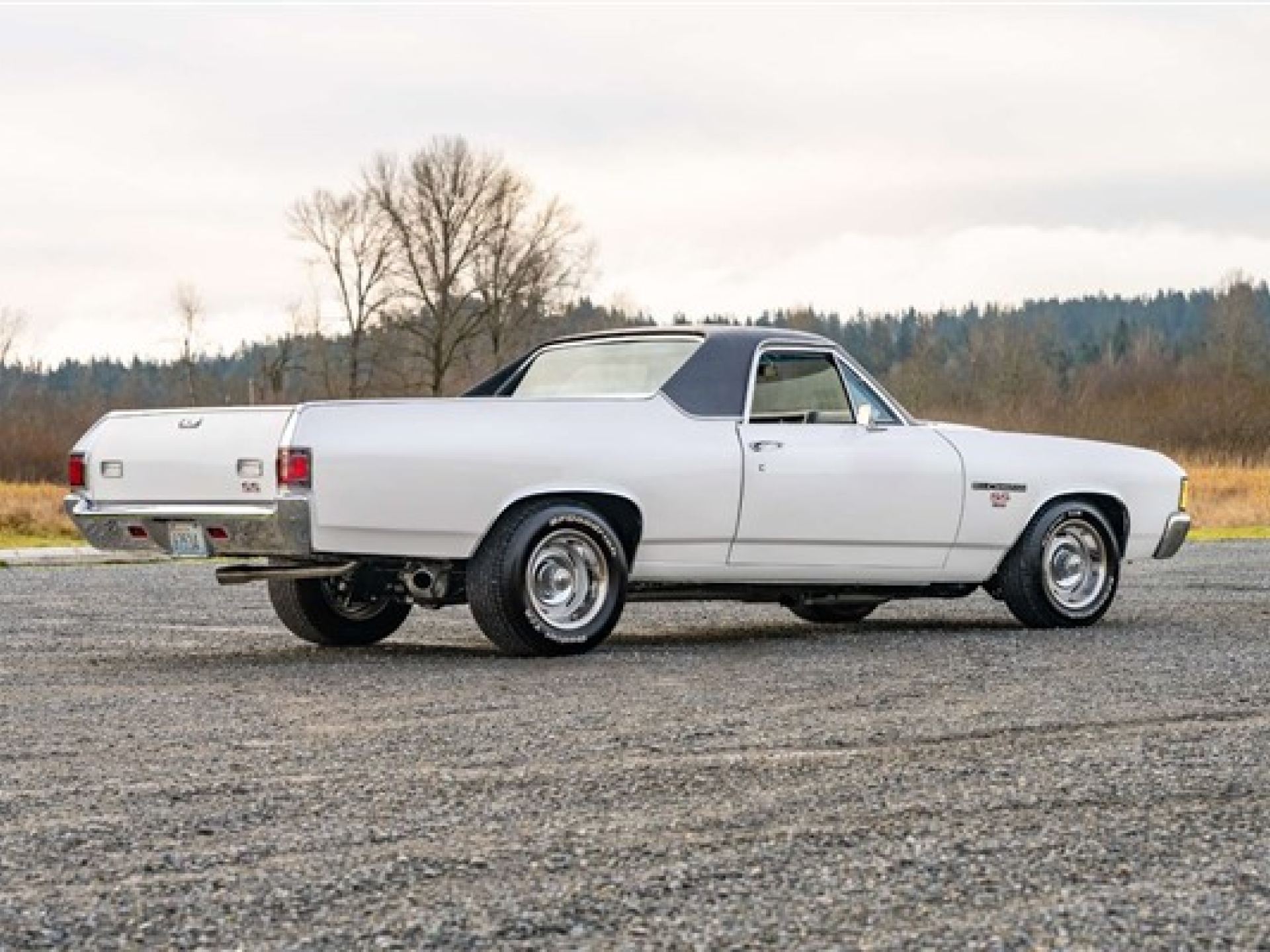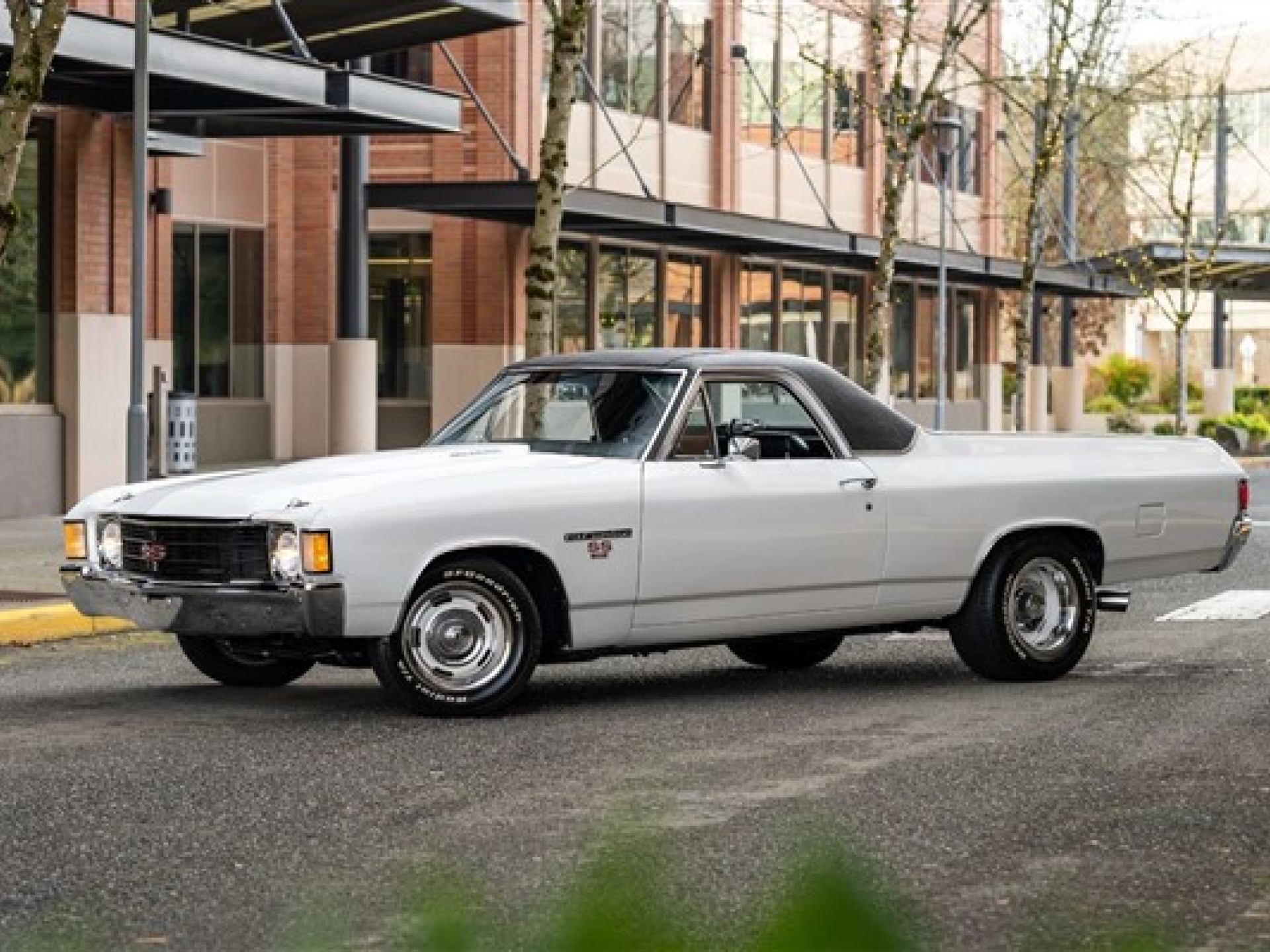 This 1972 model year El Camino has been a labor of love for its current owner and received a 10 year, frame-off, restoration with over 4000 man hours invested to create a one-of-a-kind custom, resto-mod show car. To begin with the car was disassembled and the frame was prepped and powder coated, the body was painted in a beautiful pearl white metallic and all chrome's replaced to show quality and the brightwork was replaced and polished as needed. The interior is all new with a rally pack gauge cluster, AC prepped dash, black loop carpeting, black headliner, modern retro looking stereo, custom kick panel speakers, and a Corvette style 3-spoke comfort grip steering wheel with tilt column.