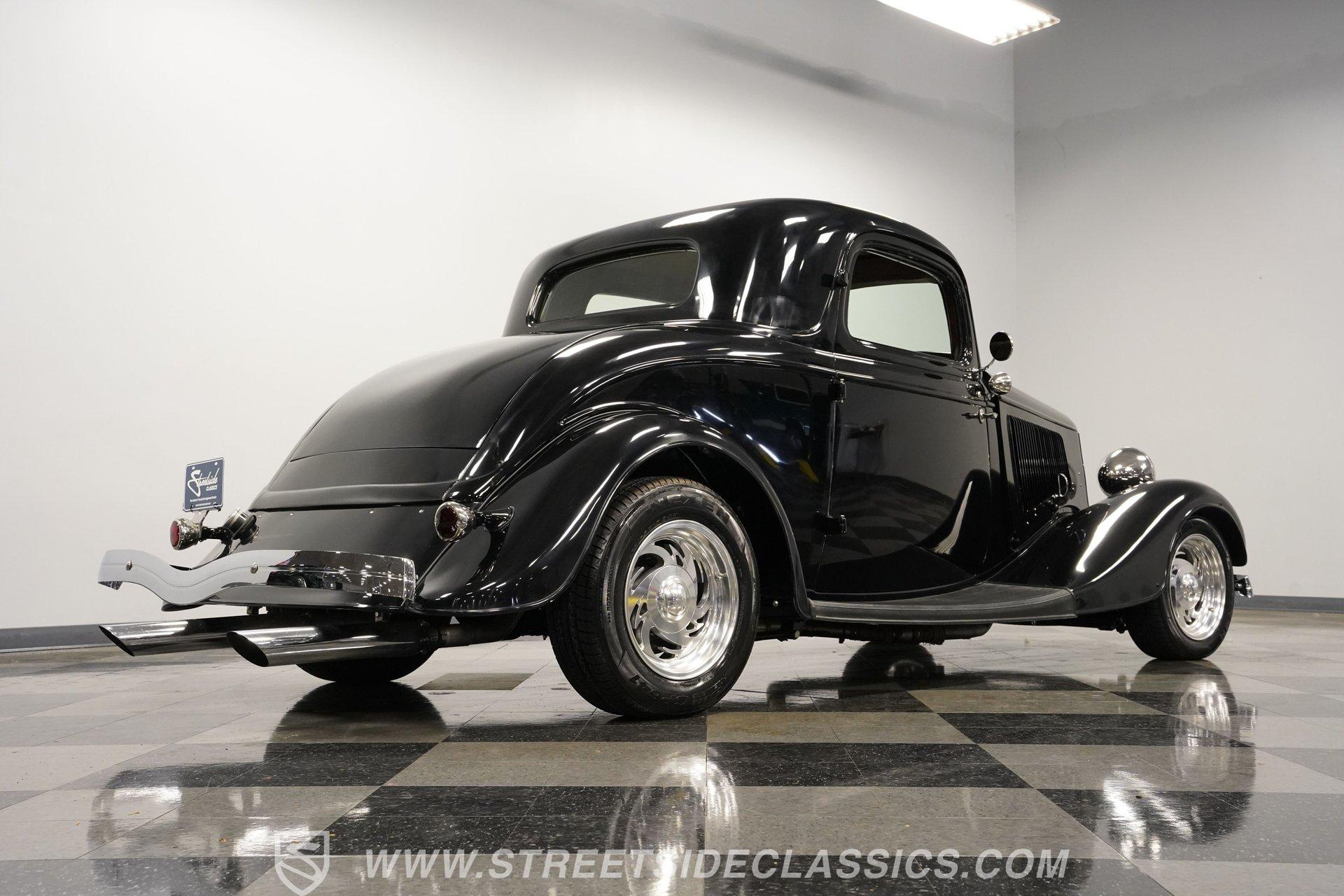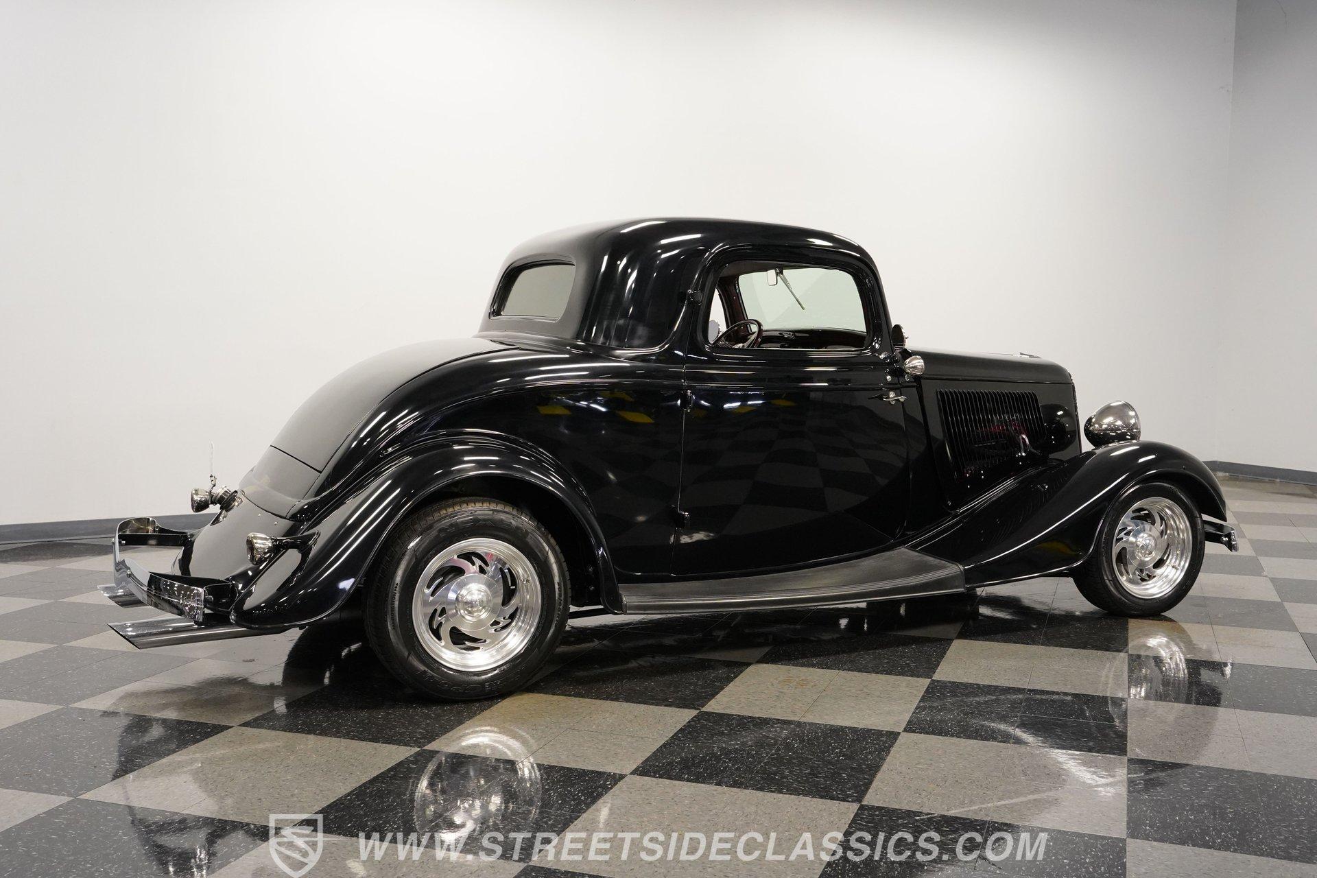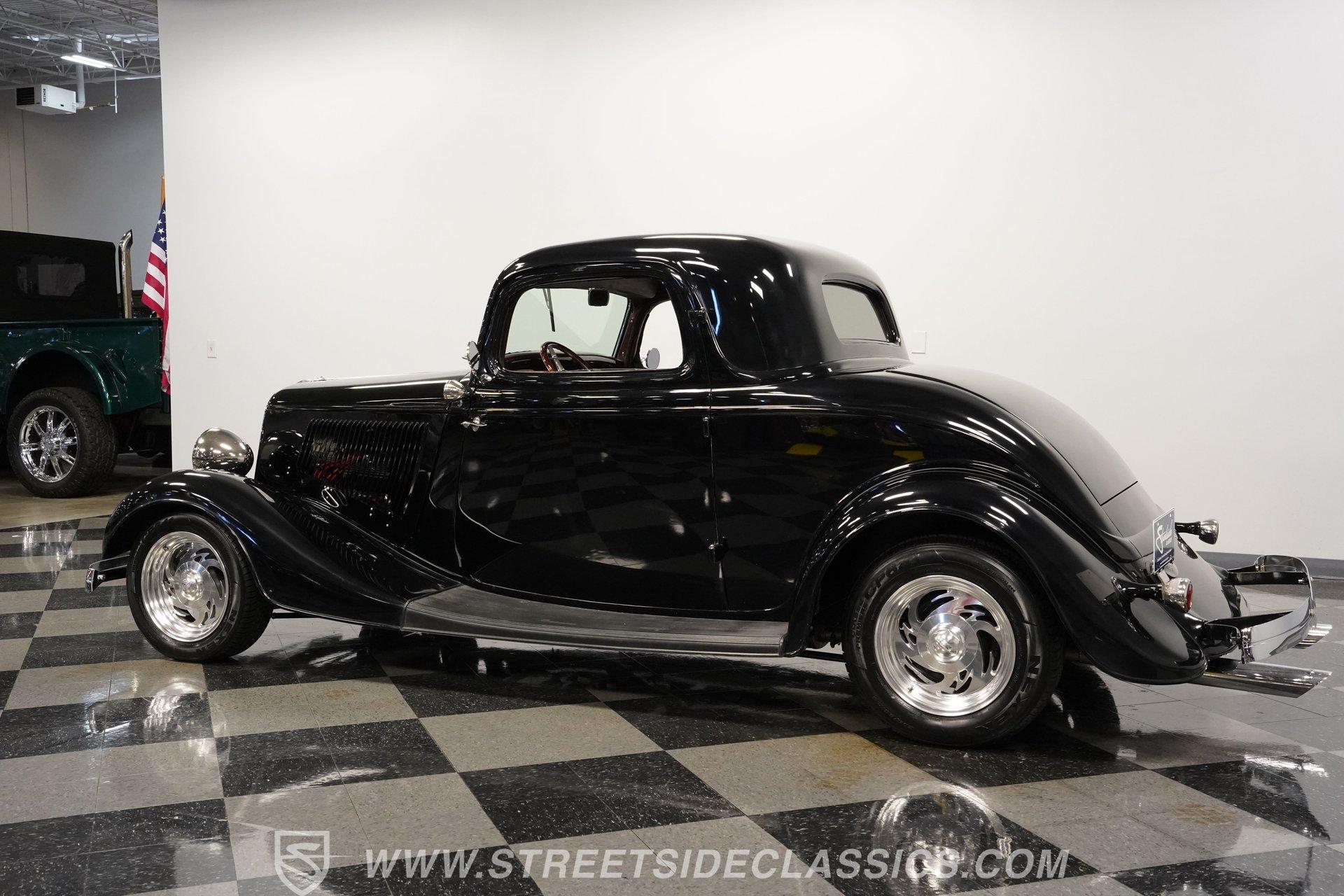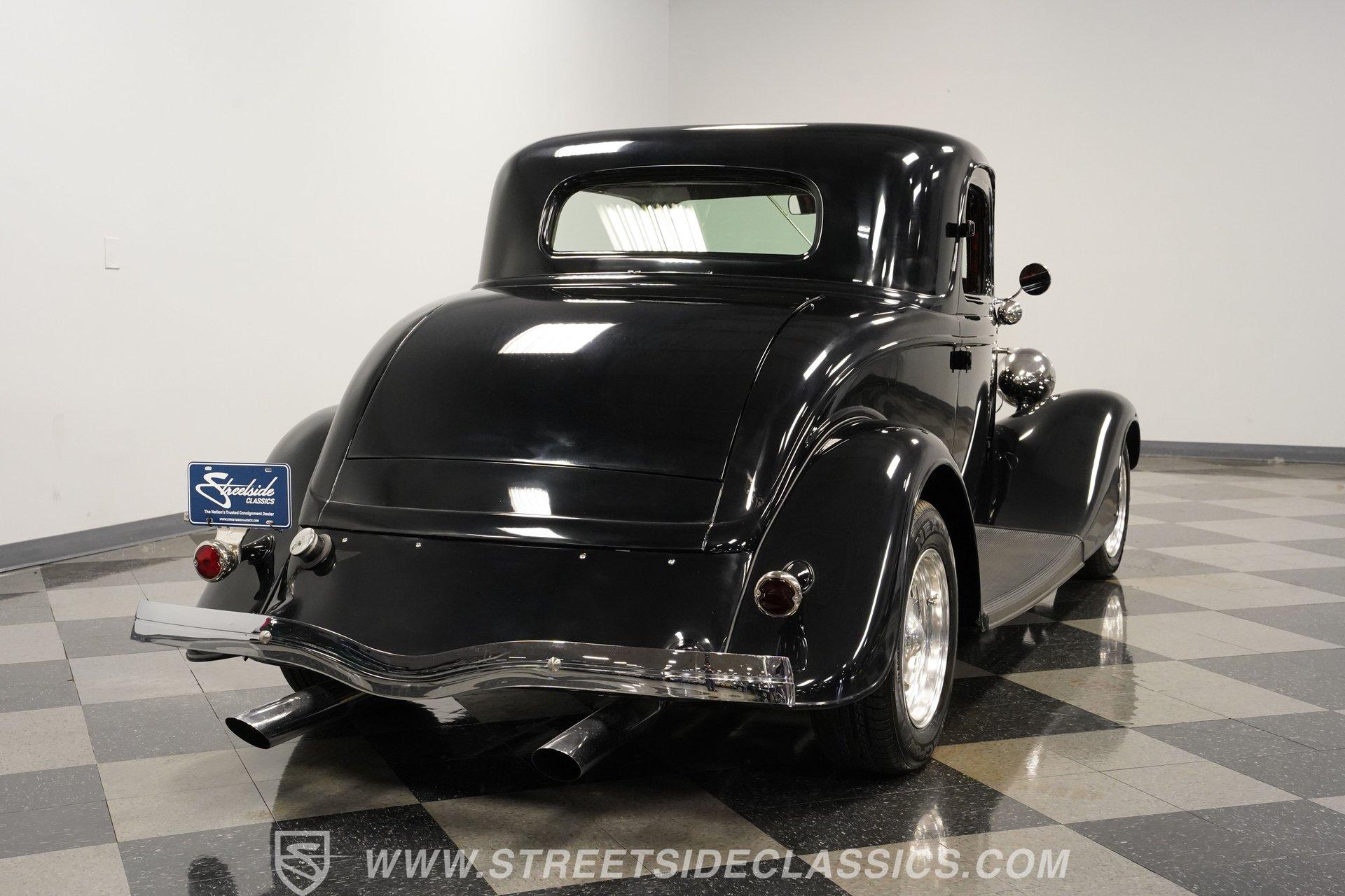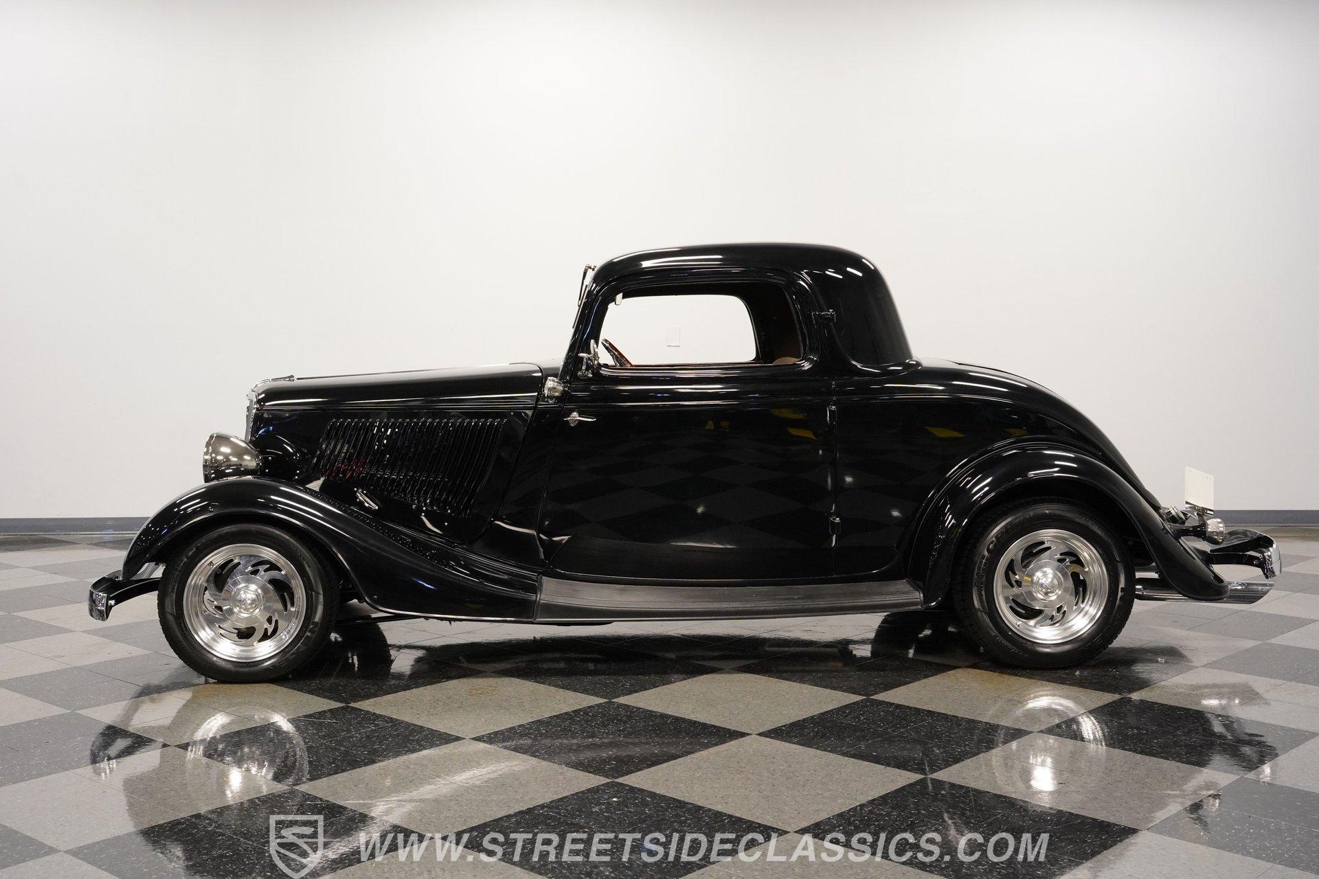 Most car enthusiasts have probably thought about scoring a sweet old-school hot rod at some point. The thing that usually holds people back is the time and effort it takes, along with all the trial-and-error that comes with it. It can definitely feel like a lot to handle, which is why when a car like this 1934 Ford 3-Window Coupe comes along, it's worth taking some time to see how much effort and time have been invested in it for you, no work required. With just two miles on its odometer since its ten-year full frame-off restoration was completed, this midnight black coupe is sure to turn heads wherever it goes. Inside those suicide doors, we find a beautifully appointed and fully custom tan interior. A beautiful woodgrain banjo-style custom steering wheel sits in front of a matching (and equally beautiful) woodgrain dashboard featuring a set of white-faced AutoMeter gauges. Power window switches, seatbelts, and an air conditioner that could use a recharge make this cockpit far superior to its original form. Out back, we find a rumble seat setup that only needs the seat itself to provide passengers with a ride unlike any other. Prop open that steel hood, and you're treated to a clean and full engine bay featuring a 302 cubic-inch naturally aspirated V-8 engine. With its Cobra valve covers, single four-barrel Brawler carburetor, shorty headers, and MagnaFlow dual exhaust, this small block sounds every bit the hot rod it is meant to be. That power is routed through a Ford C6 three-speed automatic transmission before being sent out to the nine-inch rear end, which transfers those ponies to the pavement via a set of 15-inch Billet Specialties chrome wheels. HIGHLIGHTS: Ten Year Frame Off Restoration Two Miles Since Completed Rumble Seat Ready 302 CID V8 Brawler Four BBL Carb Shorty Headers Dual Exhaust MagnaFlow Mufflers C6 Three Speed Auto Aftermarket Suspension Coilovers Power Brakes Front Disc Brakes Power Steering Custom Interior Custom Wheel Woodgrain Dash AutoMeter Gauges Power Windows AC Setup AM/FM Stereo Receipts Restoration Photos This 1934 Ford 3-Window Coupe rides on an aftermarket-laden suspension, power brakes featuring front discs make it easy to rein in speed whenever necessary, and instill a sense of confidence that this car is ready to go, no matter where the road may take you. So, if you've always wanted a true old-school hot rod, but don't have the time or patience to put one together piece by piece, then this beautifully put-together street rod is exactly what you've been waiting for. Don't wait, call today!