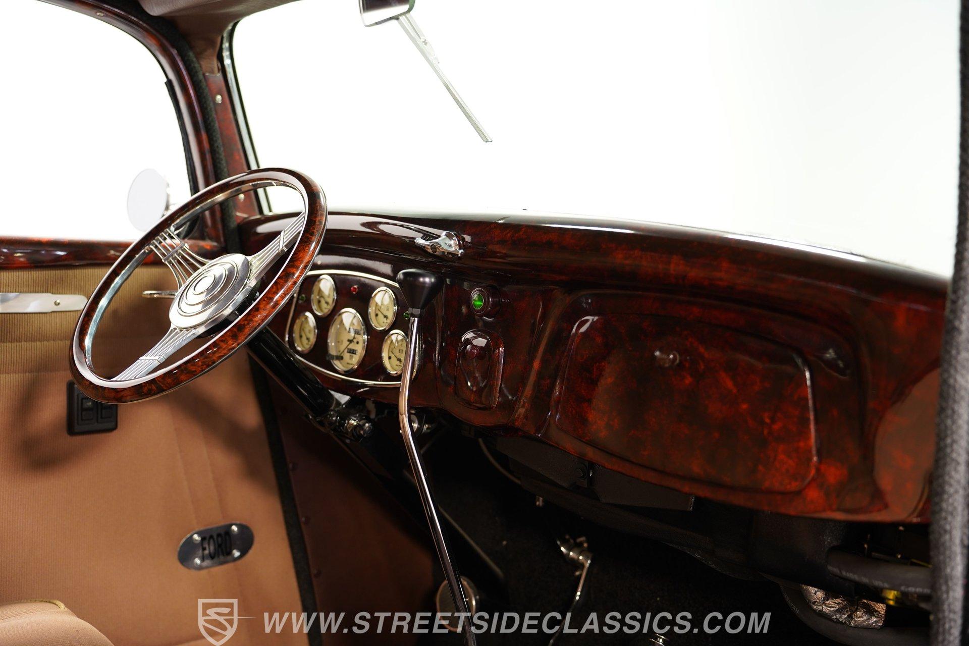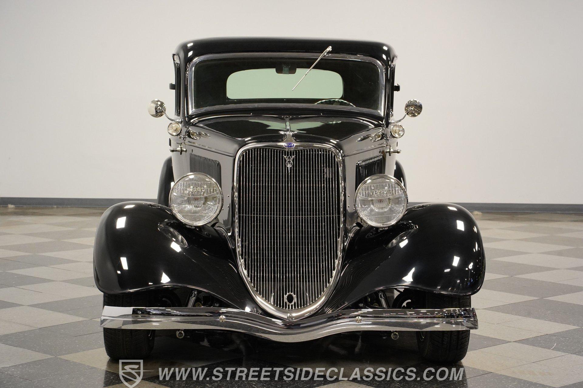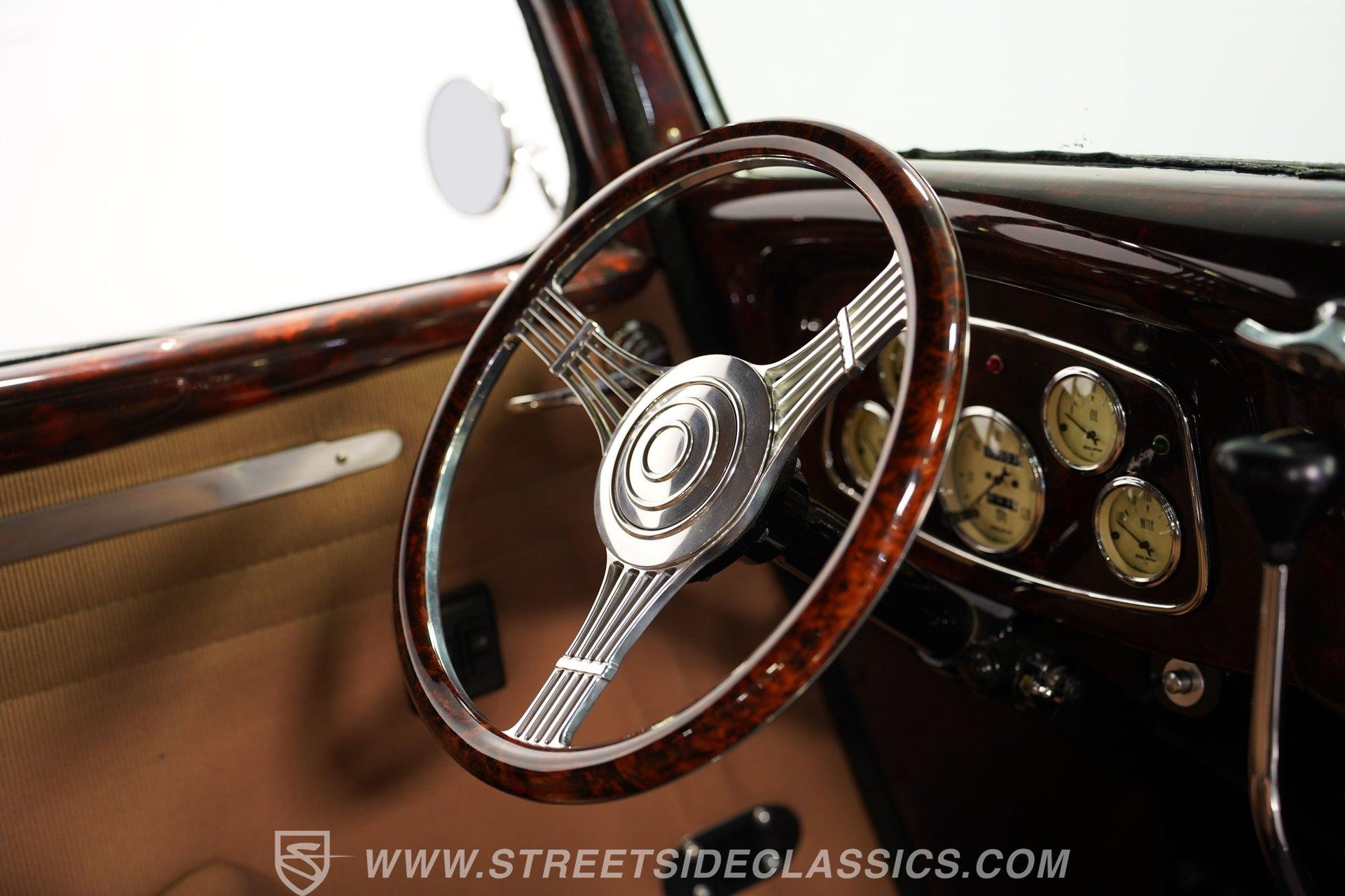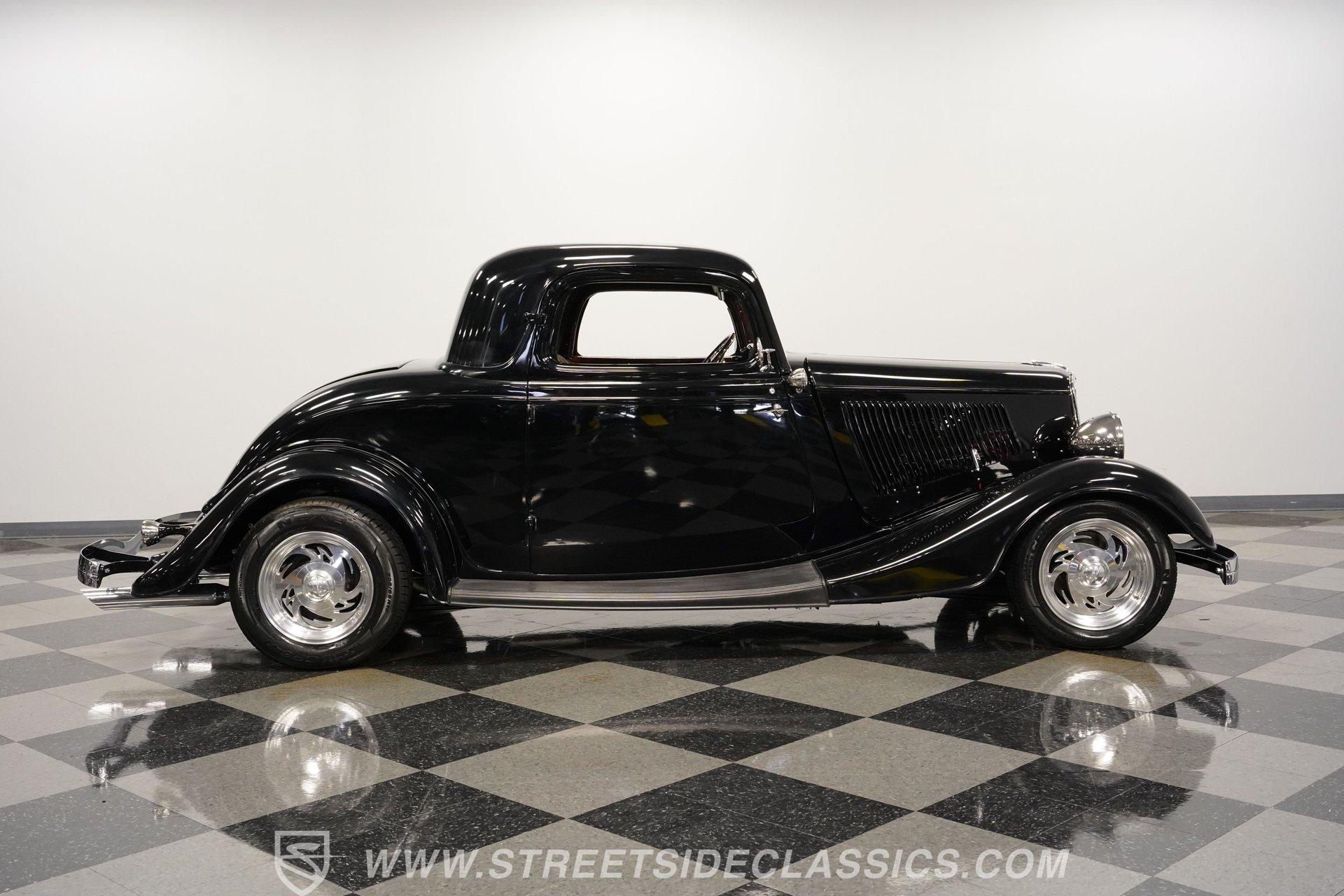 Most car enthusiasts have probably thought about scoring a sweet old-school hot rod at some point. The thing that usually holds people back is the time and effort it takes, along with all the trial-and-error that comes with it. It can definitely feel like a lot to handle, which is why when a car like this 1934 Ford 3-Window Coupe comes along, it's worth taking some time to see how much effort and time have been invested in it for you, no work required. With just two miles on its odometer since its ten-year full frame-off restoration was completed, this midnight black coupe is sure to turn heads wherever it goes. Inside those suicide doors, we find a beautifully appointed and fully custom tan interior. A beautiful woodgrain banjo-style custom steering wheel sits in front of a matching (and equally beautiful) woodgrain dashboard featuring a set of white-faced AutoMeter gauges. Power window switches, seatbelts, and an air conditioner that could use a recharge make this cockpit far superior to its original form. Out back, we find a rumble seat setup that only needs the seat itself to provide passengers with a ride unlike any other. Prop open that steel hood, and you're treated to a clean and full engine bay featuring a 302 cubic-inch naturally aspirated V-8 engine. With its Cobra valve covers, single four-barrel Brawler carburetor, shorty headers, and MagnaFlow dual exhaust, this small block sounds every bit the hot rod it is meant to be. That power is routed through a Ford C6 three-speed automatic transmission before being sent out to the nine-inch rear end, which transfers those ponies to the pavement via a set of 15-inch Billet Specialties chrome wheels. HIGHLIGHTS: Ten Year Frame Off Restoration Two Miles Since Completed Rumble Seat Ready 302 CID V8 Brawler Four BBL Carb Shorty Headers Dual Exhaust MagnaFlow Mufflers C6 Three Speed Auto Aftermarket Suspension Coilovers Power Brakes Front Disc Brakes Power Steering Custom Interior Custom Wheel Woodgrain Dash AutoMeter Gauges Power Windows AC Setup AM/FM Stereo Receipts Restoration Photos This 1934 Ford 3-Window Coupe rides on an aftermarket-laden suspension, power brakes featuring front discs make it easy to rein in speed whenever necessary, and instill a sense of confidence that this car is ready to go, no matter where the road may take you. So, if you've always wanted a true old-school hot rod, but don't have the time or patience to put one together piece by piece, then this beautifully put-together street rod is exactly what you've been waiting for. Don't wait, call today!