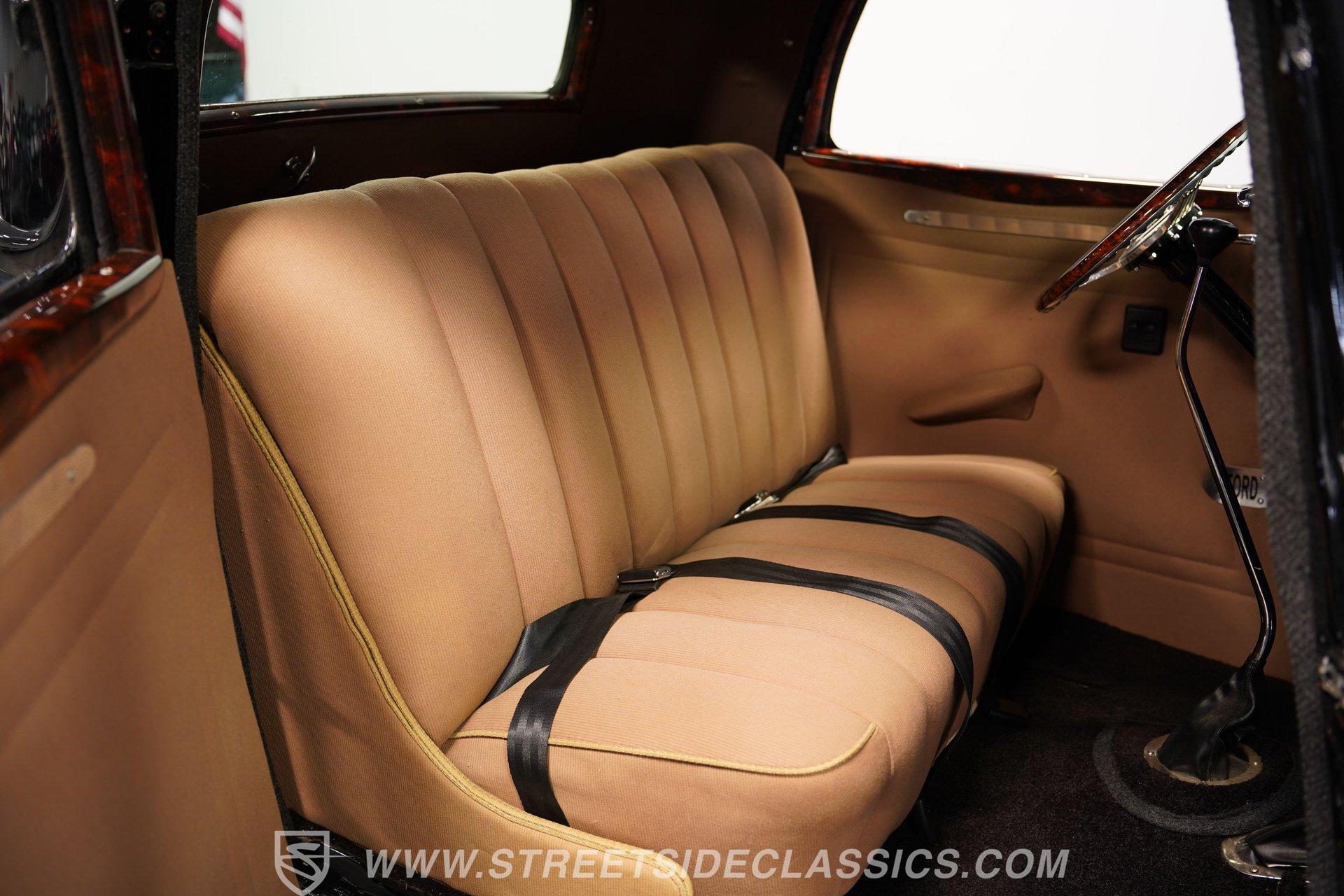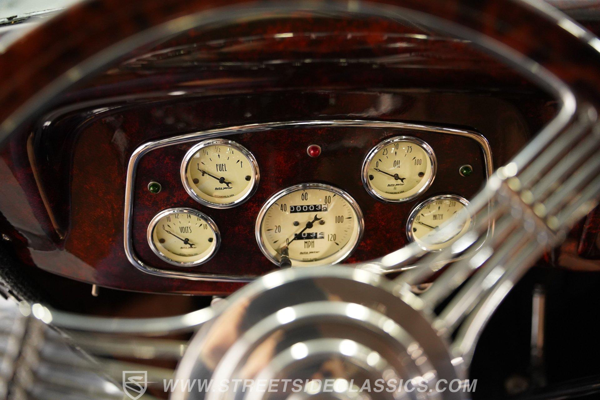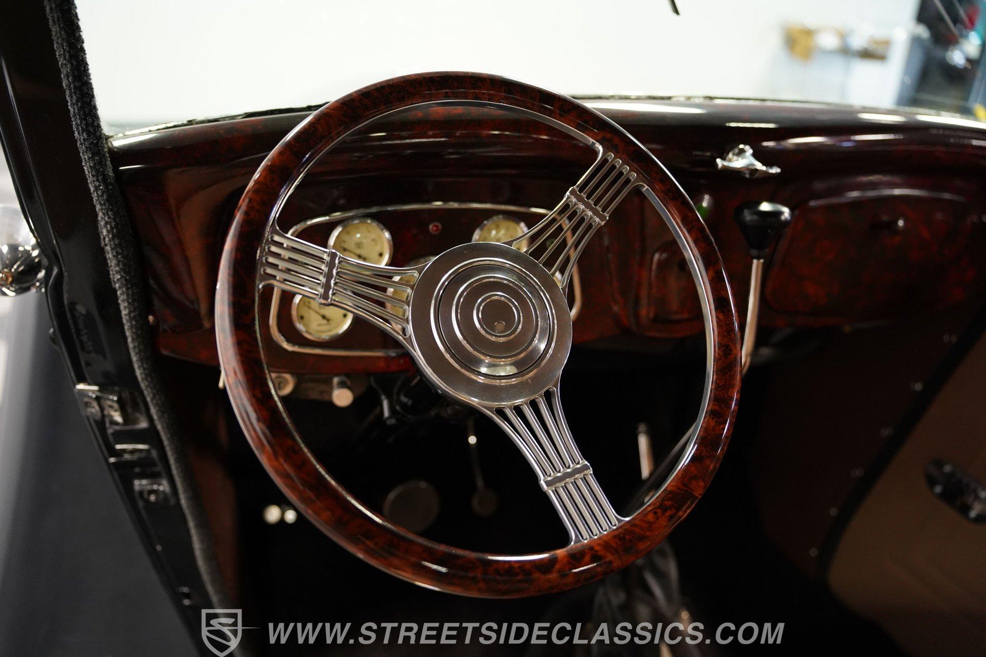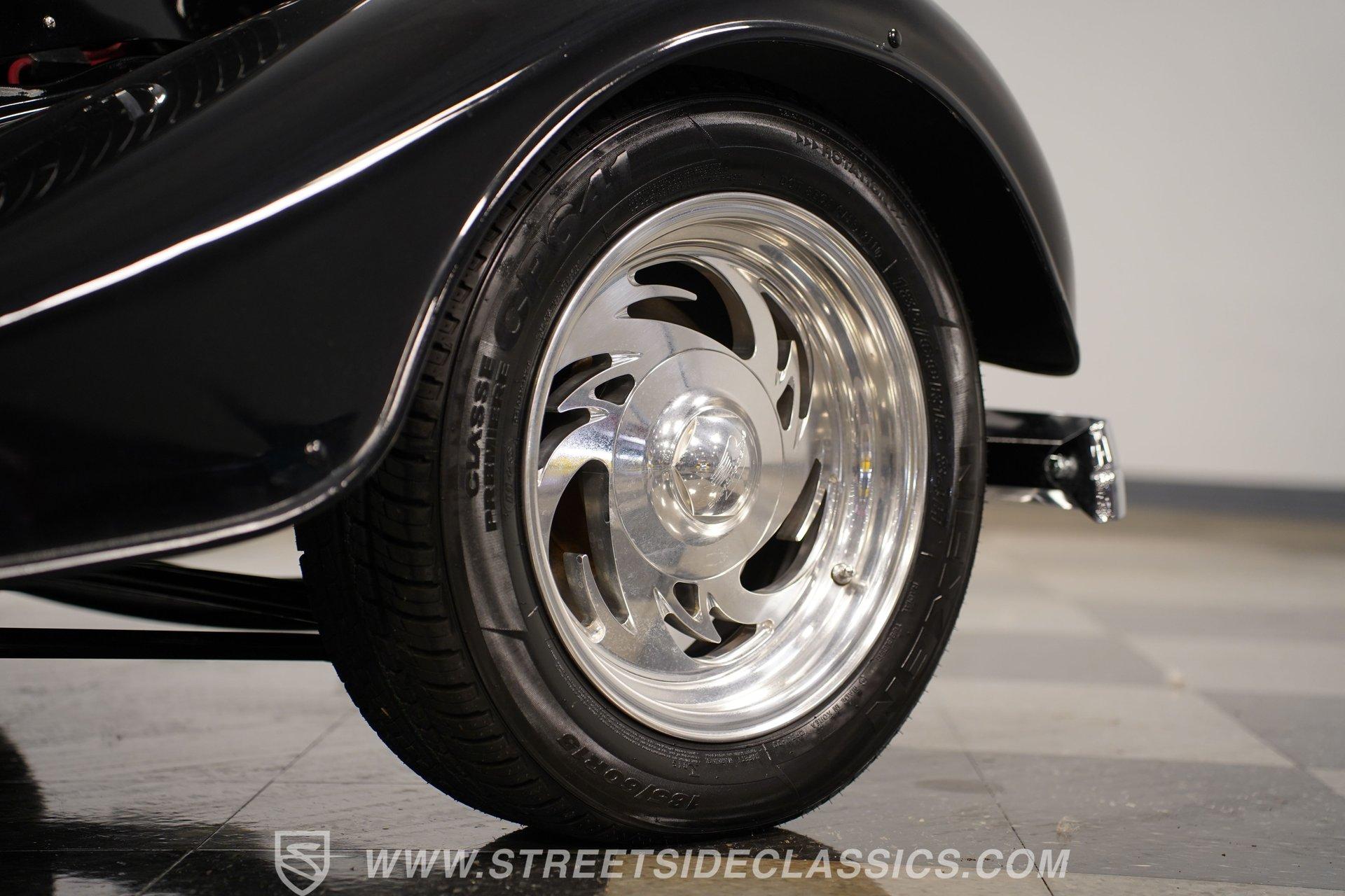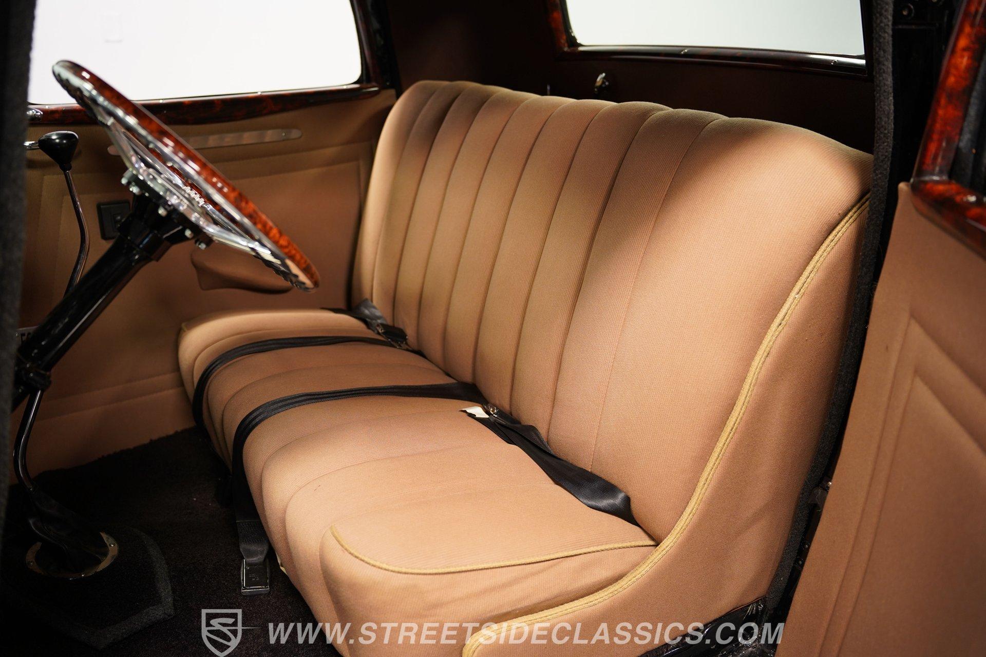 Most car enthusiasts have probably thought about scoring a sweet old-school hot rod at some point. The thing that usually holds people back is the time and effort it takes, along with all the trial-and-error that comes with it. It can definitely feel like a lot to handle, which is why when a car like this 1934 Ford 3-Window Coupe comes along, it's worth taking some time to see how much effort and time have been invested in it for you, no work required. With just two miles on its odometer since its ten-year full frame-off restoration was completed, this midnight black coupe is sure to turn heads wherever it goes. Inside those suicide doors, we find a beautifully appointed and fully custom tan interior. A beautiful woodgrain banjo-style custom steering wheel sits in front of a matching (and equally beautiful) woodgrain dashboard featuring a set of white-faced AutoMeter gauges. Power window switches, seatbelts, and an air conditioner that could use a recharge make this cockpit far superior to its original form. Out back, we find a rumble seat setup that only needs the seat itself to provide passengers with a ride unlike any other. Prop open that steel hood, and you're treated to a clean and full engine bay featuring a 302 cubic-inch naturally aspirated V-8 engine. With its Cobra valve covers, single four-barrel Brawler carburetor, shorty headers, and MagnaFlow dual exhaust, this small block sounds every bit the hot rod it is meant to be. That power is routed through a Ford C6 three-speed automatic transmission before being sent out to the nine-inch rear end, which transfers those ponies to the pavement via a set of 15-inch Billet Specialties chrome wheels. HIGHLIGHTS: Ten Year Frame Off Restoration Two Miles Since Completed Rumble Seat Ready 302 CID V8 Brawler Four BBL Carb Shorty Headers Dual Exhaust MagnaFlow Mufflers C6 Three Speed Auto Aftermarket Suspension Coilovers Power Brakes Front Disc Brakes Power Steering Custom Interior Custom Wheel Woodgrain Dash AutoMeter Gauges Power Windows AC Setup AM/FM Stereo Receipts Restoration Photos This 1934 Ford 3-Window Coupe rides on an aftermarket-laden suspension, power brakes featuring front discs make it easy to rein in speed whenever necessary, and instill a sense of confidence that this car is ready to go, no matter where the road may take you. So, if you've always wanted a true old-school hot rod, but don't have the time or patience to put one together piece by piece, then this beautifully put-together street rod is exactly what you've been waiting for. Don't wait, call today!