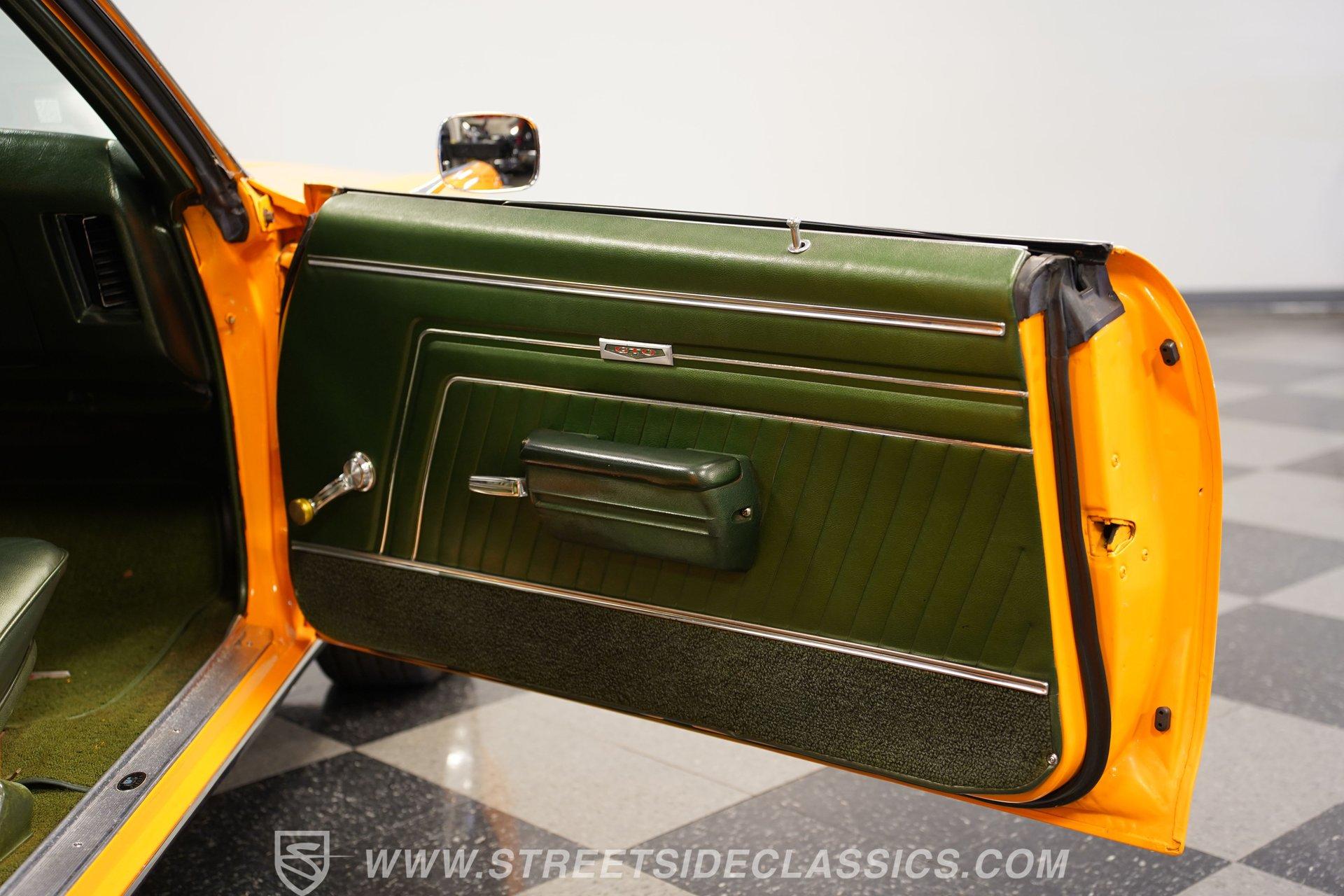 Experience the thrill of American muscle with this 1970 Pontiac GTO Judge Tribute, a car that embodies power, style, and nostalgia. This tribute to the iconic Judge model captures the essence of the era, offering a blend of classic looks and modern upgrades that make it a standout on any street or show field. It's more than just a car; it's a statement of passion and performance. With a well-maintained 400 V8 engine and a full repaint, this GTO Judge Tribute is ready to turn heads and ignite memories. If you've ever dreamed of owning a piece of muscle car history, this 1970 Pontiac GTO Judge Tribute is the perfect choice. Step inside to find an interior that balances original charm with comfort. The vinyl seats are in very good shape, complementing the nicely preserved door cards and center console. The dashboard features a classic gauge cluster with a Sun Super Tach mounted, while the Kenwood cassette stereo adds a touch of vintage audio enjoyment. The headliner remains tight and clean, and the HVAC controls maintain their original look, ensuring a driving experience that feels authentic yet inviting. Under the hood, this GTO houses a robust 400 V8 engine enhanced with a Holley Sniper fuel injection system for easy starting and improved performance. The 3-speed automatic transmission shifts smoothly through all gears, paired with power steering and power brakes for a confident drive. Notable upgrades include a newer AC compressor, a Champion radiator, and tidy wiring that keeps the engine bay looking clean and original. The suspension and brakes have been well sorted, contributing to a driving experience that is both powerful and controlled. Highlights: 1970 Pontiac GTO Judge Tribute 400 V8 Engine With Fuel Injection 3 Speed Automatic Transmission Holley Sniper Fuel Injection System Newer AC Compressor Installed Newer Champion Radiator Included Power Steering And Power Brakes Front Power Disc Brakes Vinyl Interior With Original Style Kenwood Cassette Stereo Full Repaint With Glossy Finish 14" Factory Style Wheels And Tires Rear Air Shocks Suspension Service Manuals Included Financing Available Vehicle Protection Plans Available Worldwide Shipping This 1970 Pontiac GTO Judge Tribute is an excellent choice for those seeking a classic muscle car with thoughtful upgrades and a strong presence. Whether for cruising or showing, it offers a rewarding ownership experience. Don't miss your chance to own this powerful and stylish piece of automotive history. Call, email, or come visit our showroom today!