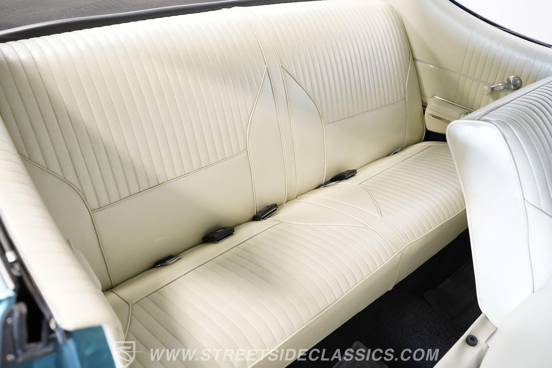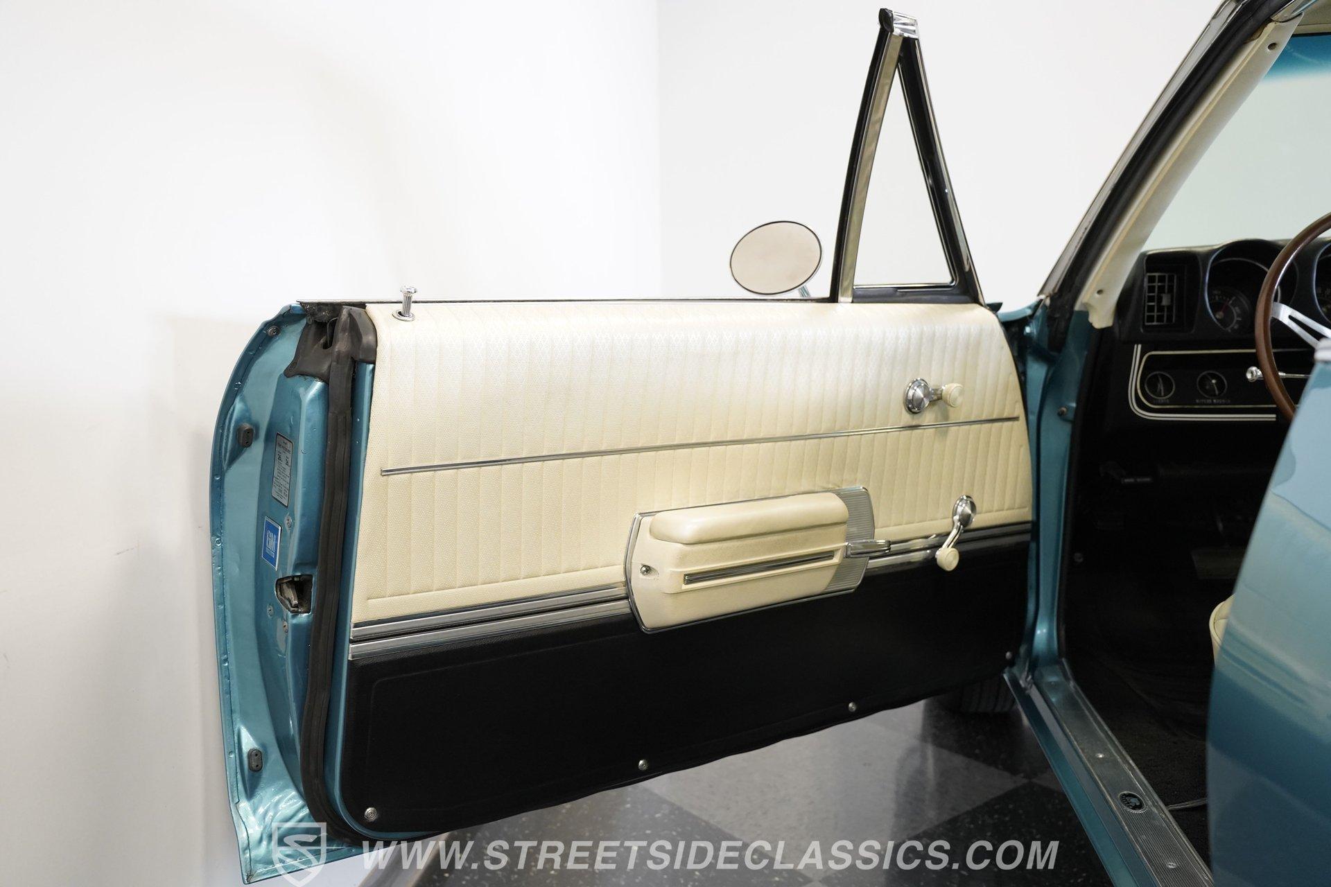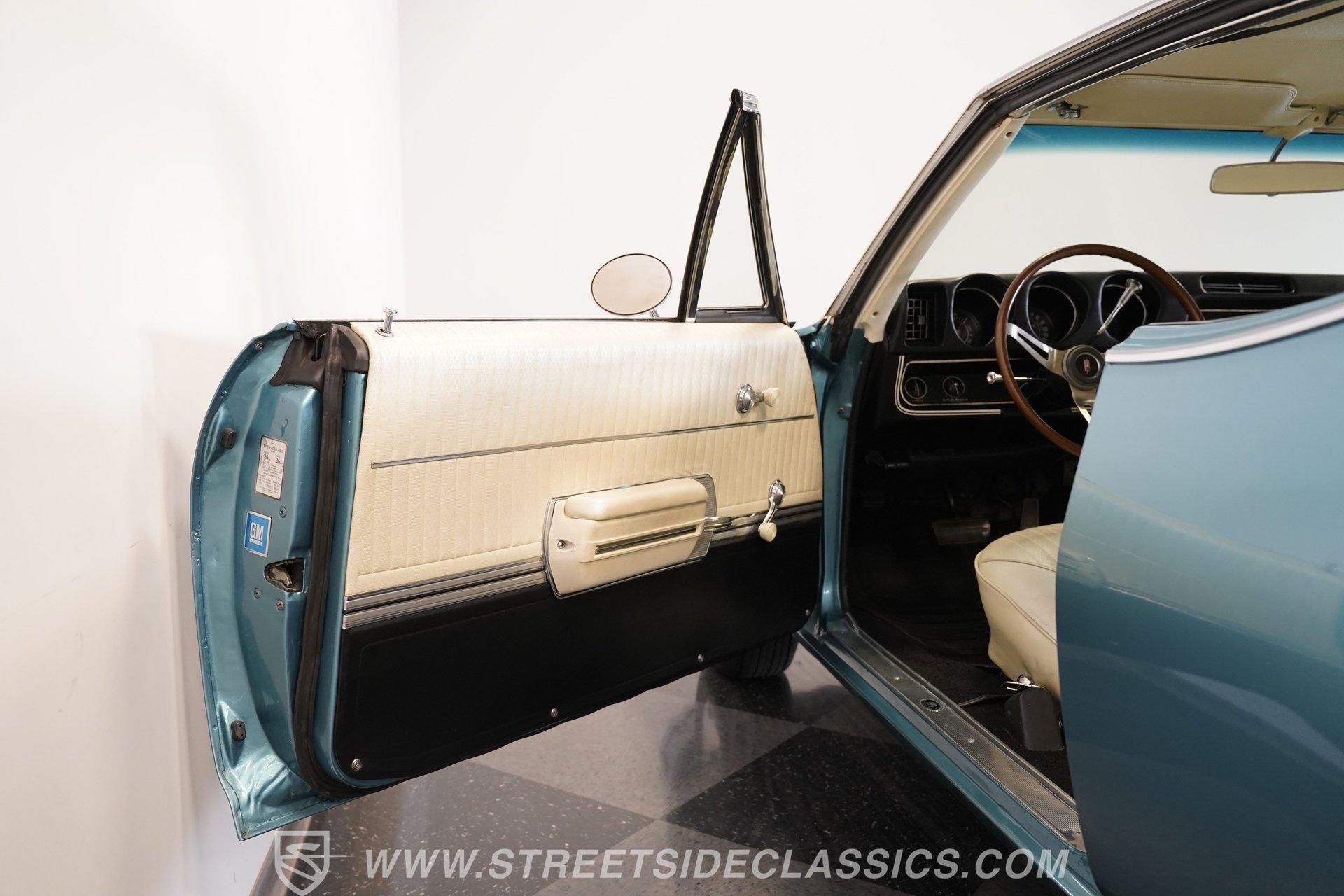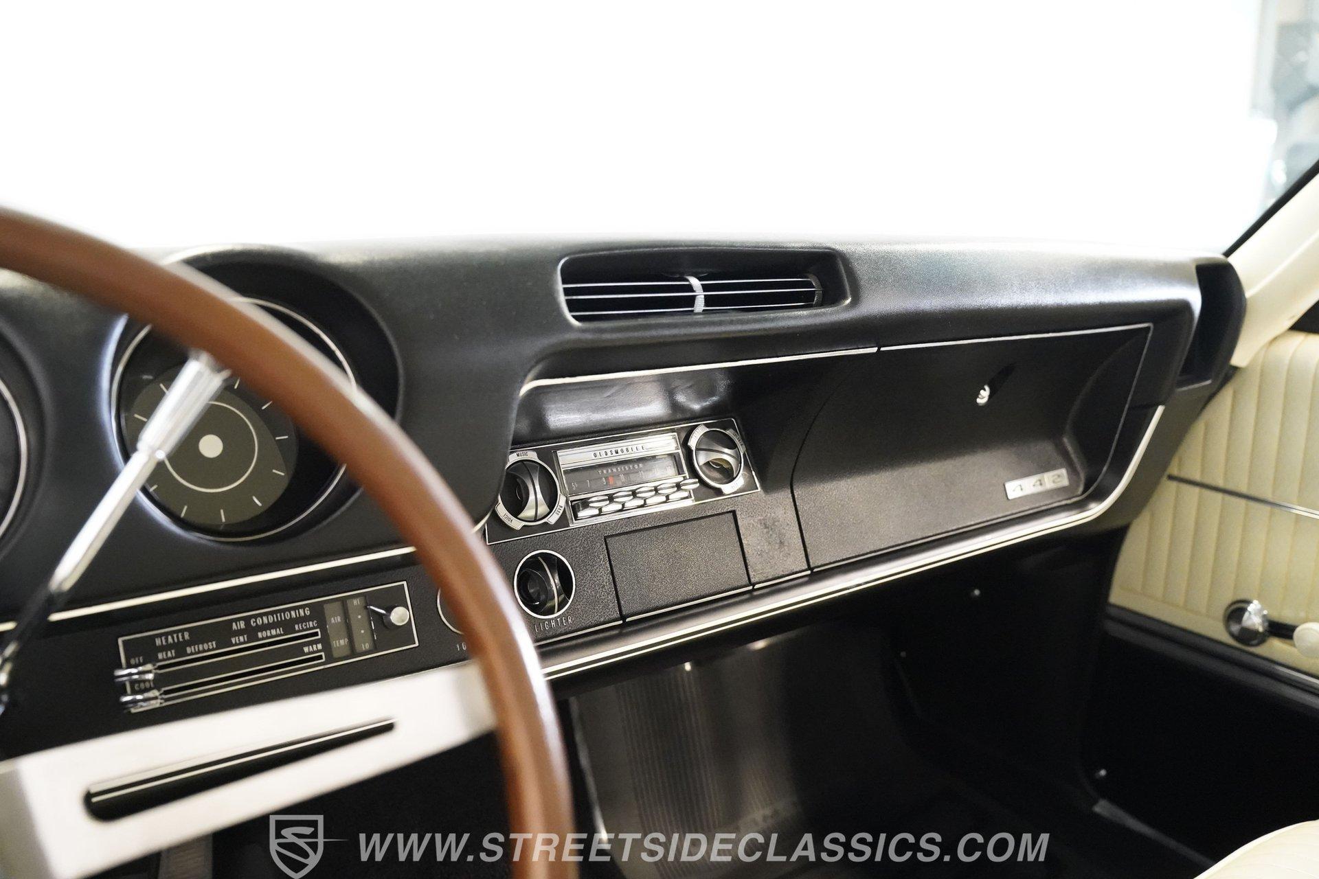 This 1968 Oldsmobile 442 hardtop has one of the most dominating widebody stances ever, and under the hood is its numbers-matching 400 V8 to back up its looks. And with a cool color combo, a great driving attitude, and factory correct restoration, it makes for an irresistible total package. 1968 was the debut of the second generation 442. No longer just an offshoot of the Cutlass, the muscle car celebrated its independence with one of the most intimidating designs of the 60s. Sure, it still carried much of the same overall appearance as its Olds A-body siblings, but the flared fenders, rounded rear, and long pillarless Holiday hardtop silhouette all look so much better in muscle car form. Plus, when you have that dark grille with the bold 442 badging in the middle of the wide dual headlight housings, it just makes for a truly sinister machine. As a true Oldsmobile, this never loses its premium touches. For example, there's a trim line that starts at the headlights and highlights the curves of the profile all the way through the door line. Finished correctly in Ocean Turquoise Metallic, this car has the proper 442 side stripes, but they are painted on and cleared over for a smooth permanence. The stripes work well with the correct Provincial White roof that looks like a vinyl top, but it's really painted for a glossy and easily maintained style. It makes for a full package that's thoughtfully detailed, right down to the shine of the form-hugging bumpers. All the white accents of the exterior get you ready for the full white interior. The clean look of the correct pleated vinyl on the seats and door panels looks great. The interior features factory air conditioning and is all done to factory specifications, right down to the working stock AM radio. An upgraded wood-rimmed sports steering wheel gives you a clear view of the sporty round gauge package. Under the hood is a numbers-matching V8 in this American muscle icon. Part of the fun of owning a '68 is getting to tell the story about how the 400 cubic-inch motor was the maximum GM would allow in its production intermediates at the time. This one looks terrific with the full cooper-colored engine and distinctive 442 air red cleaner, and an overall clean and correct setup that signals this has been given proper care. The mighty V8 inhales deeply with a four-barrel carburetor, and it exhales with a sweet sound out of the rumbling dual exhaust. As a true Oldsmobile, this is built to balance power and comfort. A stout TH400 three-speed automatic transmission, power steering, power brakes, a limited-slip rear, and sway bars front & rear add to the pleasurable driving experience. HIGHLIGHTS: Matching Number 400 Cubic Inch Engine TH400 Automatic Transmission 12-Bolt Limited-Slip Rear End Dual Exhaust Correct 14-Inch Super Stock Wheels F70-14 Firestone Super Sport Redline Tires Restored to a High Standard and to Original Specifications Original Working AM Radio Optional Fender Stripes Correct Ocean Turquoise Metallic Paint with Provincial White Painted Roof Power Brakes Power Steering Air Conditioning This classic 1968 Oldsmobile 442 hardtop has been restored to a high standard of quality and authenticity. If you appreciate these rarely found qualities in a classic muscle car, don't let this one slip away. Call today!