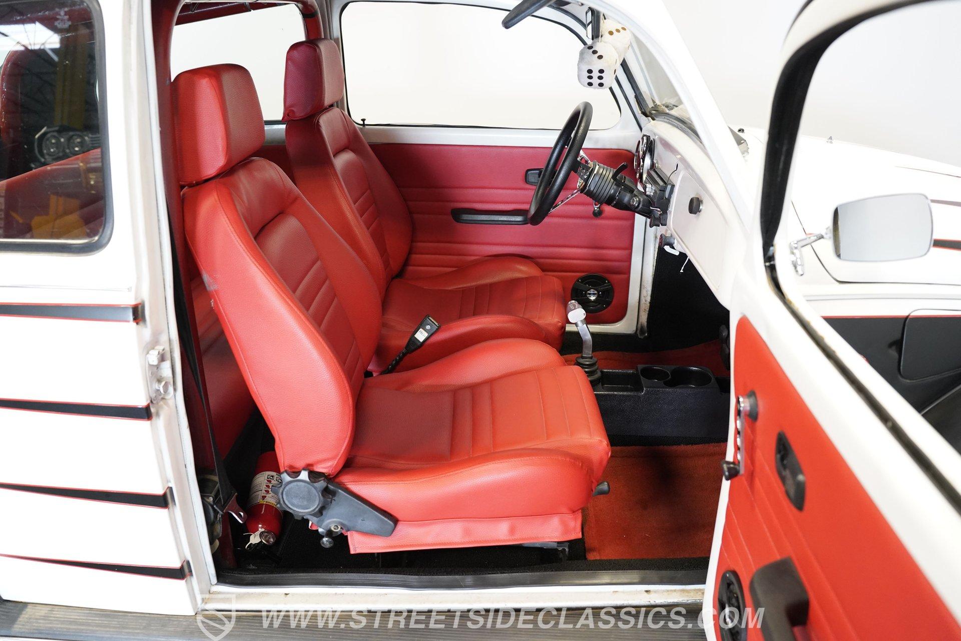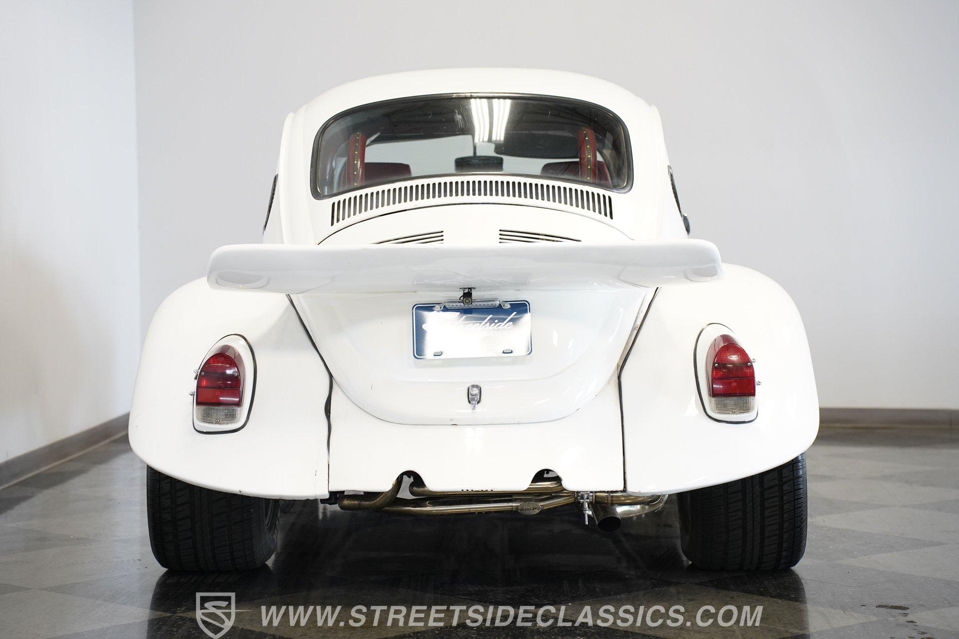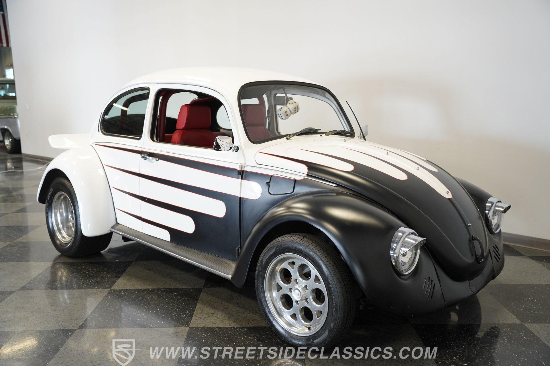 Here's a fun little car with a cool paint scheme that pairs nicely with the red interior. This 1973 Volkswagen Beetle has a unique look with its staggered wheels, rear spoiler, interior roll bar, and custom front fenders with integrated headlights. This Volkswagen Beetle is a great way to join a culture that some say you can never leave. With VW events held all over the world, you'll never run out of things to do. The interior is mostly red trimmed in white, and matches well with the exterior color scheme. The door cards, front bucket seats, and rear bench seats are in decent shape. Both the carpet and the headliner are clean and don't show any major issues. There's a black center console with cupholders and a short-throw VW EMPI T-shifter. The gauges-tachometer, oil, and temp are also EMPI, and the speedometer appears to be original. In the center of the dashboard, there is an aftermarket radio with AM/FM/CD/Aux and Bluetooth. In the back, there is a 1600cc 4-cylinder engine with electronic fuel injection that looks extremely clean. It's paired with a 4-speed manual transmission connected to a VW transaxle. The front suspension is a straight axle with a pair of shocks, while the rear is equipped with trailing arms and a pair of adjustable coilovers connected to a swing axle. Fifteen-inch wheels sit at all four corners. The front tires are 135R15 Nanking CX-668s, and the rears are 295/50R15 Hankook Ventus H101s. There are disc brakes all the way around. For the exhaust, long-tube headers feed into a single pipe and an aftermarket muffler. Highlights: 1600cc 4-Cylinder Engine 4-Speed Manual Transmission VW Transaxle Front Straight Axle With A Pair Of Shocks Rear Trailing Arms And A Pair Of Adjustable Coil-Overs Connected To A Swing Axle 15-Inch Staggered Wheels Front 135R15 Nanking CX-668 Tires DOT 2015 Rear 295/50R15 Hankook Ventus H101 DOT 2019 Four-Wheel Disc Brakes Long Tube Headers/Aftermarket Muffler New Floor Pans Short-Throw VW EMPI T-Shifter VW EMPI Gauges AM/FM/CD/Aux With Bluetooth Radio Aftermarket Speaker Rust Free This 1973 Volkswagen Beetle is a fun car to drive. Being a small car with a small engine, it offers good gas mileage and easy maneuverability in traffic and tight parking spots. If you're looking to join the VW Beetle crowd, or just want another one, this is a great opportunity. Call today!