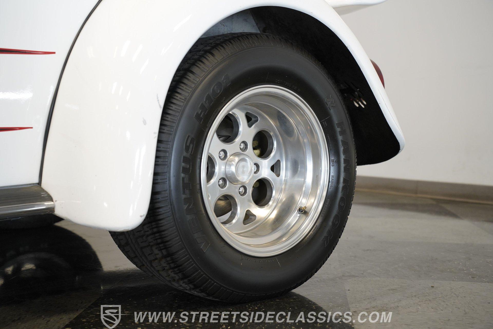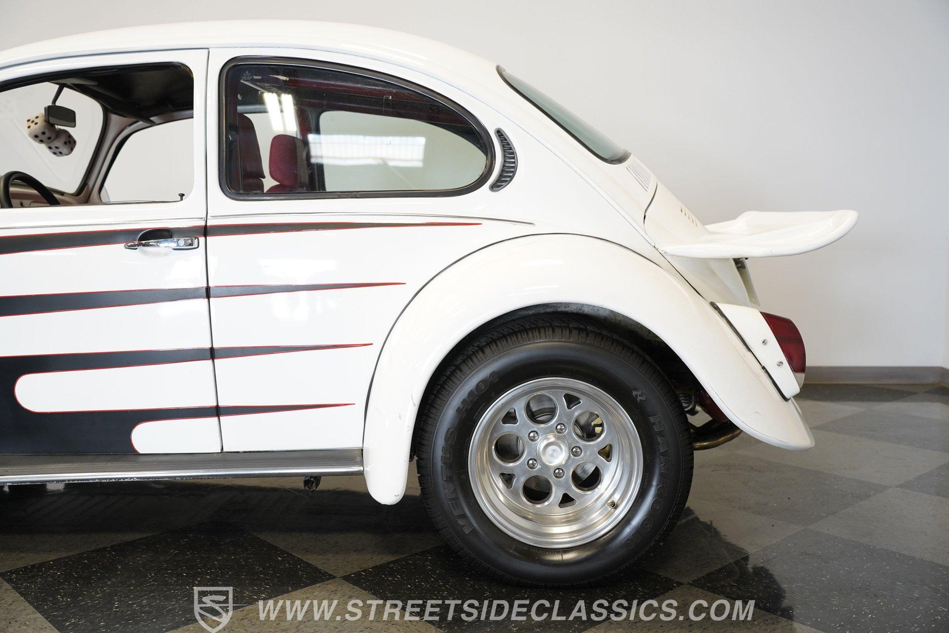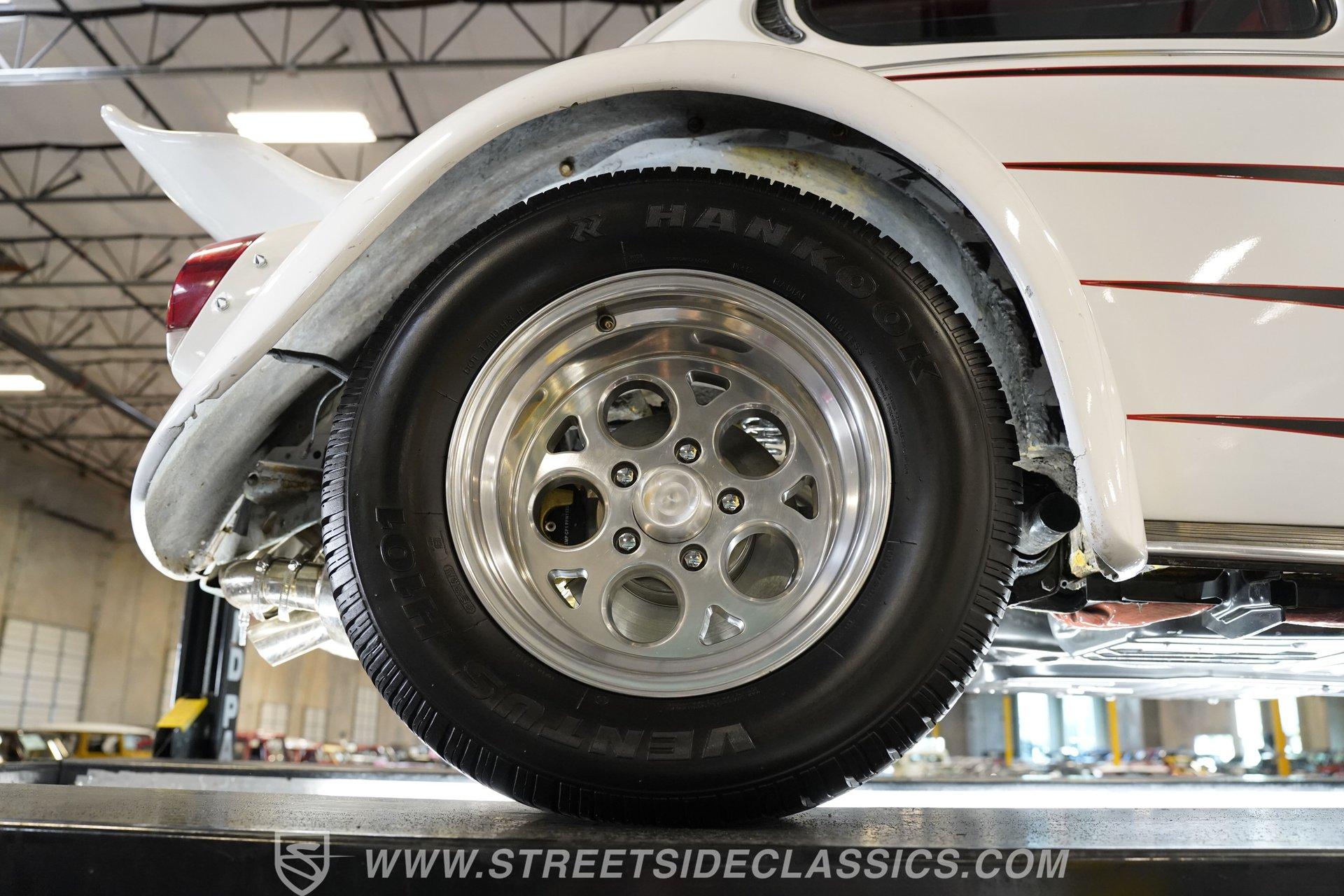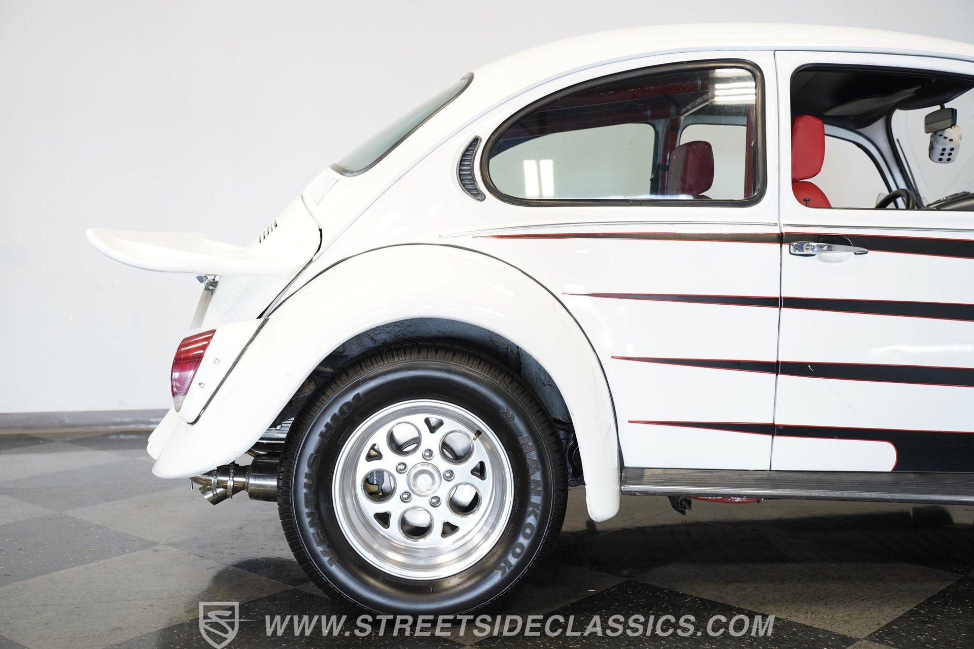 Here's a fun little car with a cool paint scheme that pairs nicely with the red interior. This 1973 Volkswagen Beetle has a unique look with its staggered wheels, rear spoiler, interior roll bar, and custom front fenders with integrated headlights. This Volkswagen Beetle is a great way to join a culture that some say you can never leave. With VW events held all over the world, you'll never run out of things to do. The interior is mostly red trimmed in white, and matches well with the exterior color scheme. The door cards, front bucket seats, and rear bench seats are in decent shape. Both the carpet and the headliner are clean and don't show any major issues. There's a black center console with cupholders and a short-throw VW EMPI T-shifter. The gauges-tachometer, oil, and temp are also EMPI, and the speedometer appears to be original. In the center of the dashboard, there is an aftermarket radio with AM/FM/CD/Aux and Bluetooth. In the back, there is a 1600cc 4-cylinder engine with electronic fuel injection that looks extremely clean. It's paired with a 4-speed manual transmission connected to a VW transaxle. The front suspension is a straight axle with a pair of shocks, while the rear is equipped with trailing arms and a pair of adjustable coilovers connected to a swing axle. Fifteen-inch wheels sit at all four corners. The front tires are 135R15 Nanking CX-668s, and the rears are 295/50R15 Hankook Ventus H101s. There are disc brakes all the way around. For the exhaust, long-tube headers feed into a single pipe and an aftermarket muffler. Highlights: 1600cc 4-Cylinder Engine 4-Speed Manual Transmission VW Transaxle Front Straight Axle With A Pair Of Shocks Rear Trailing Arms And A Pair Of Adjustable Coil-Overs Connected To A Swing Axle 15-Inch Staggered Wheels Front 135R15 Nanking CX-668 Tires DOT 2015 Rear 295/50R15 Hankook Ventus H101 DOT 2019 Four-Wheel Disc Brakes Long Tube Headers/Aftermarket Muffler New Floor Pans Short-Throw VW EMPI T-Shifter VW EMPI Gauges AM/FM/CD/Aux With Bluetooth Radio Aftermarket Speaker Rust Free This 1973 Volkswagen Beetle is a fun car to drive. Being a small car with a small engine, it offers good gas mileage and easy maneuverability in traffic and tight parking spots. If you're looking to join the VW Beetle crowd, or just want another one, this is a great opportunity. Call today!