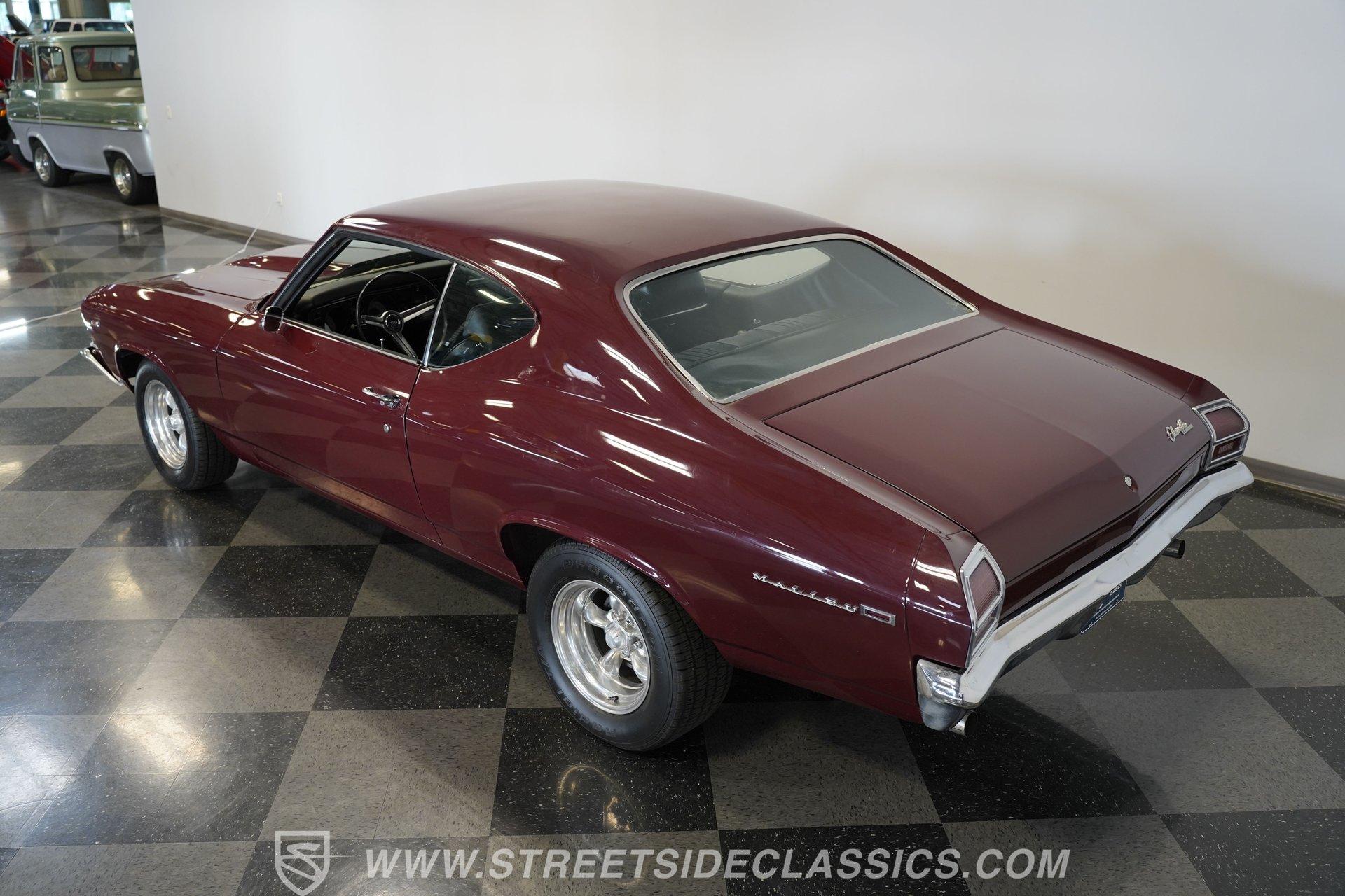 Step back into a golden era of muscle cars with a vehicle that perfectly blends classic style and modern performance. This 1969 Chevrolet Chevelle Malibu is more than just a car - it's a statement of passion and power, evoking the spirit of American muscle with a fresh twist. Imagine the thrill of cruising in a car that turns heads while delivering contemporary reliability. Whether you're a seasoned collector or a muscle car enthusiast, this Chevelle Malibu offers an irresistible blend of nostalgia and innovation, making it a must-have for your garage. Inside, the Chevelle Malibu welcomes you with a clean, newer black interior that contrasts beautifully with its burgundy exterior. The front bucket seats and rear bench seat are in good condition, offering a comfortable ride. The dashboard features modern Dakota digital gauges, while the vinyl interior adds a touch of vintage authenticity. Though it comes without a radio, the center console remains stylish and functional, keeping the cabin simple yet inviting for any drive. Under the hood, this Chevelle houses a powerful 6.2-liter LS3 GMPP crate engine delivering an impressive 480 horsepower. Paired with a smooth-shifting 4L70E 4-speed automatic transmission, it promises a dynamic driving experience. The electronic fuel injection system optimizes performance, while the rear 12-bolt axle with a 3.73 Eaton Tru-Trac limited-slip differential ensures confident traction. Power steering and front disc brakes contribute to precise handling and control, making this restomod a true driver's car. Highlights 1969 Chevrolet Chevelle Malibu 6.2L LS3 GMPP Crate Engine, 480 HP 4L70E 4-Speed Automatic Transmission Electronic Fuel Injection System Rear 12-Bolt 3.73 Eaton Tru-Trac Posi American Racing 15" Torq Thrust Wheels BFGoodrich Radial T/A Tires (215/65R15 Front) Power Steering and Front Disc Brakes Vinyl Interior with Dakota Digital Gauges Air Conditioning and Heat Defrost System Clean Newer Black Interior Full Repaint with High-Gloss Burgundy Finish Service Manuals Included Financing Available Vehicle Protection Plans Available Worldwide Shipping This 1969 Chevrolet Chevelle Malibu LS3 restomod offers a perfect blend of classic aesthetics and modern muscle, making it an excellent choice for any enthusiast. Its combination of power, style, and comfort provides a rewarding driving experience. Call, email, or come visit our showroom today!