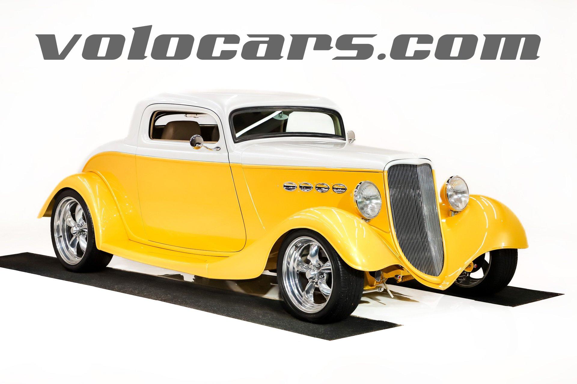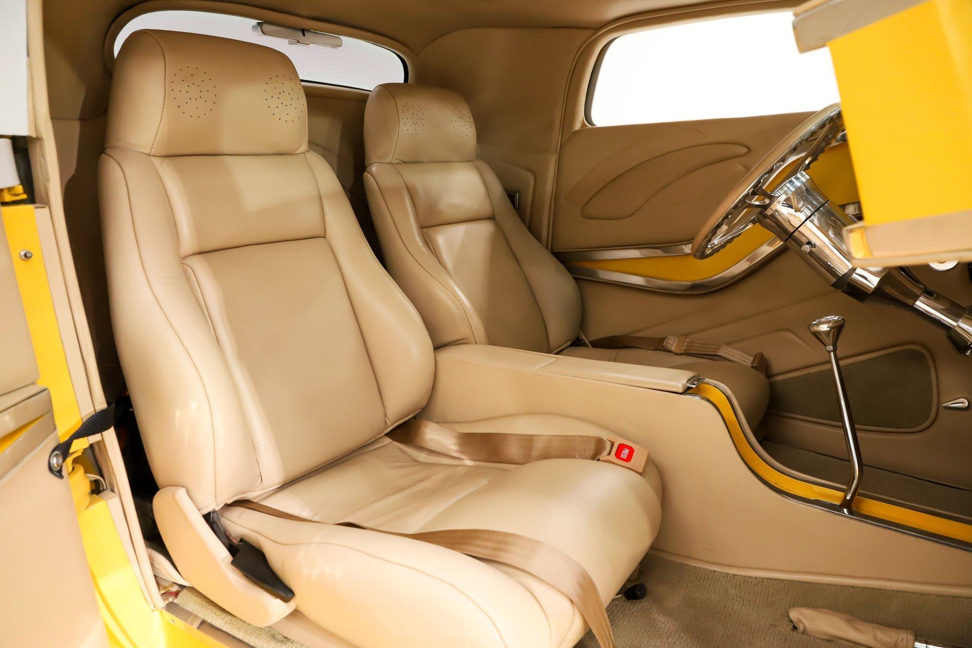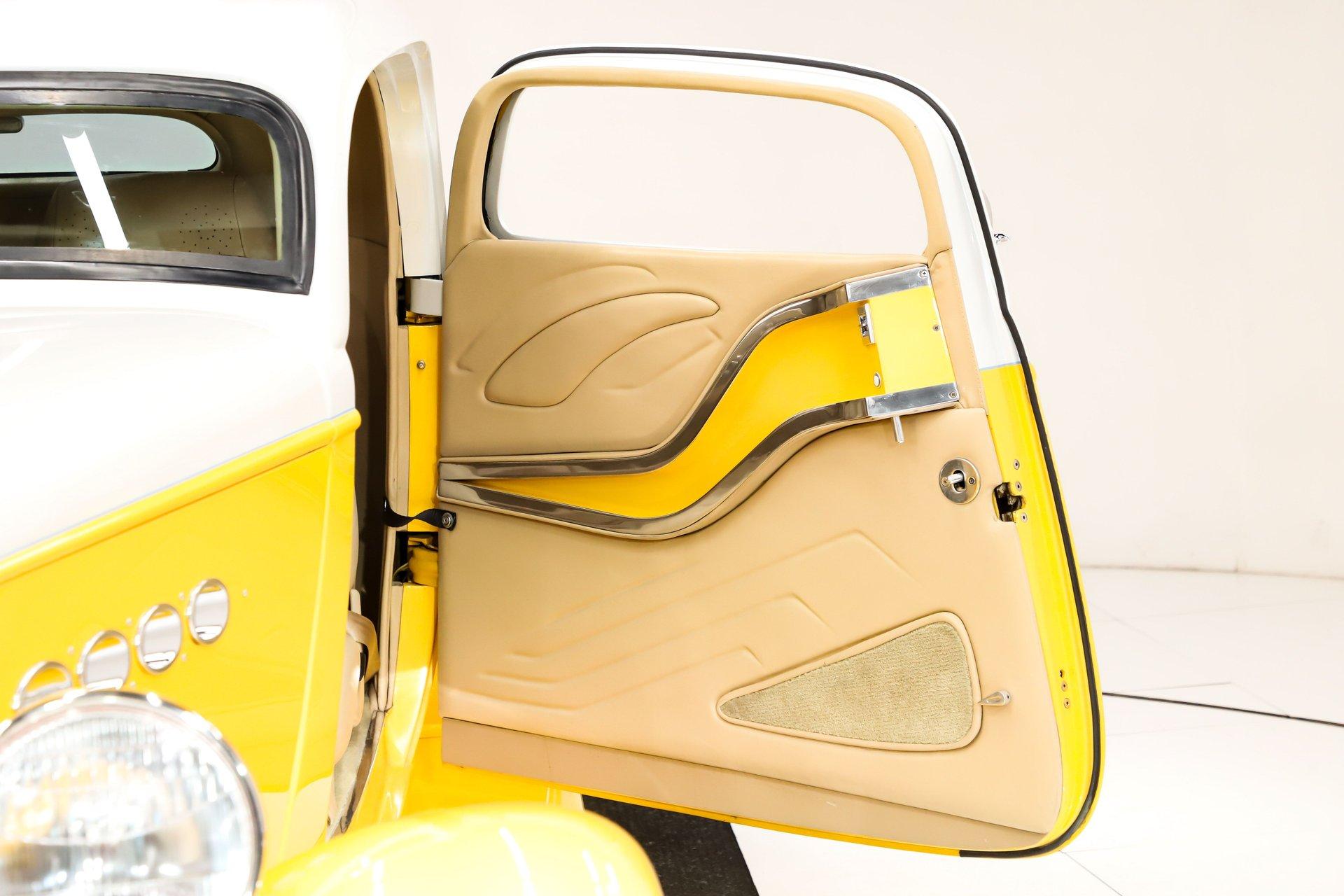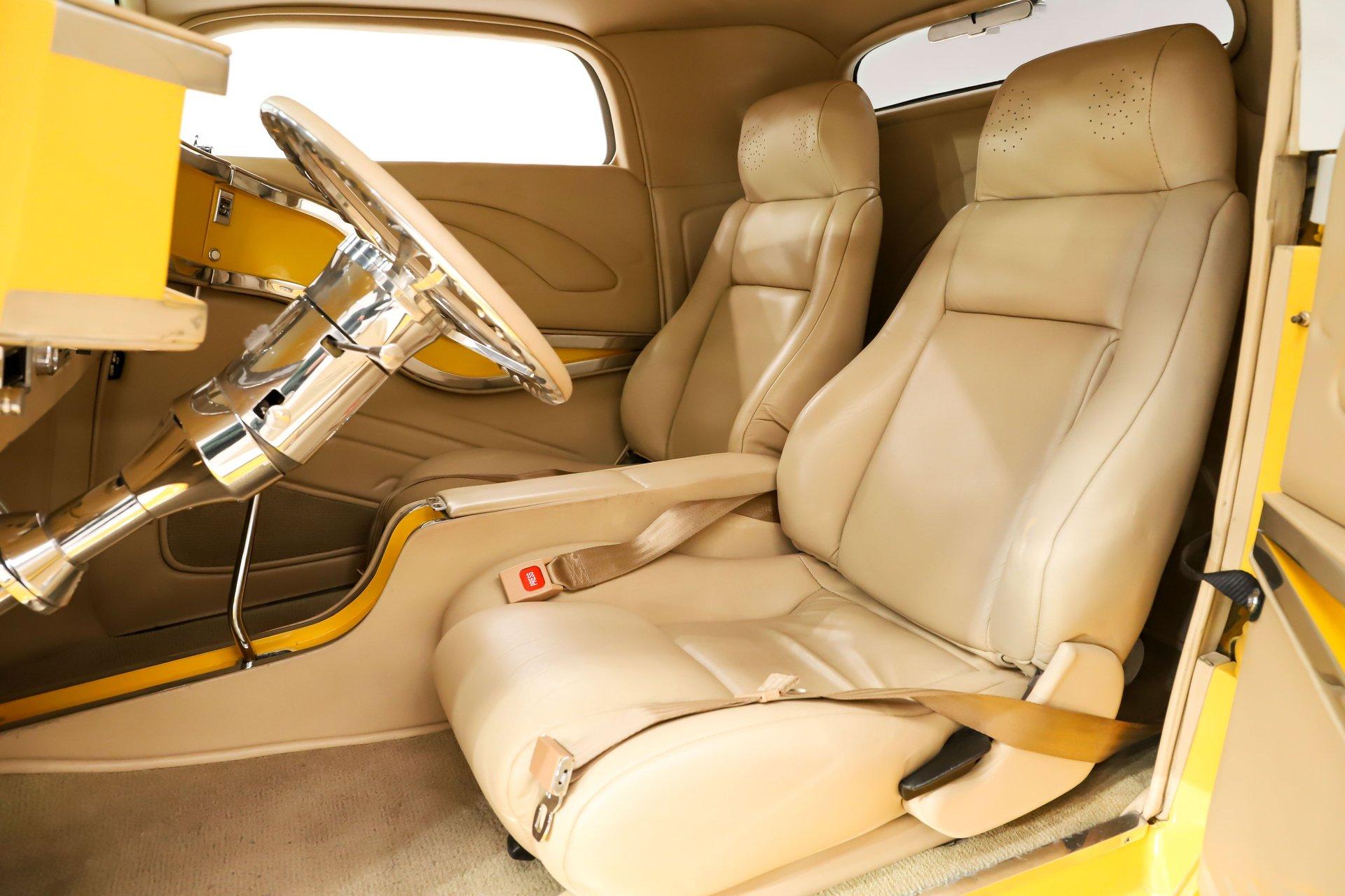 Celebrating our 65 year anniversary! This family owned and operated business was established in 1960, making us the oldest classic car dealership in America. Special thank you to all our customers for entrusting us to park the car of your dreams in your driveway while preserving automotive history for future generations to embrace and enjoy. -Grams family & Volo Museum staff INTRODUCTION: Even more spectacular in person, the pearl colors dance in the sunlight. This was professionally built in Las Vegas and featured as the cover car and center spread in Rods & Rides magazine. EXTERIOR: The timeless hot rod: a chopped 3 window coupe with suicide doors! This one is a full fendered Downs body that's all smooth, straight, solid and fits great. The doors open by a remote key fob. The paint is stunning in person because both colors are pearl. The white pearl and golden yellow pearl is broken up with a thin blue pinstripe. The paint is a beautiful, quality job that was laid out properly and polished smoothly. It has picked up just a few nicks/chips while being enjoyed. It has full size headlights with Ford script lenses and in back it has LED taillights and a 3rd brake light in the window. The glass has a light smoked tint, the windows are power. The rear splash pan has a recessed license plate and a flush mount fuel door. It's rolling on staggered size polished Torque Thrust wheels, 17s in front and 20s in back for that hot rod stance. They are wearing performance tires. INTERIOR: This interior has been taken to the next level with some very stylish custom features. The custom dash flows right onto the door panels and the console is designed to match. Everything that is soft is wrapped in genuine leather. The entire inside of the cab is sculpted and upholstered, the custom sport seats feel great. Down on the floor it has custom cut carpet with leather bound edges, along with seatbelts, a chrome e-brake lever and a polished Lokar shifter. It had a new set of AutoMeter gauges in a polished billet instrument panel. The Vintage Air controls and vents are very clean and simple. The tilt column is polished and has a Billet Specialties steering wheel. Overhead is a console that has interior lights, a stereo and a back up camera screen. ENGINE COMPARTMENT: A potent 383 stroker motor sits under this hood! It has a polished aluminum Edelbrock intake with a dual feed Holley carb, a billet distributor and a set of headers. It's dressed up with a matched set of polished aluminum air cleaner, valve covers and breathers. It runs cool with the big polished aluminum radiator. There's a number of other polished components as well and the engine bay is painted slick. TRUNK COMPARTMENT: It has a power lift trunk lid and once you look inside you'll see all the custom work. It's completely boxed and upholstered including under the trunk lid. The floor is carpeted. UNDERSIDE: This car is sitting on an Outlaw chassis. The frame is boxed and smoothed with tubular supports. Upfront it utilizes a Heidts independent suspension with polished tubular control arms, coilover adjustable gas shocks and rack & pinion steering. In back it has a 4 link system with polished tubular control arms and coilover adjustable gas shocks. The great sound comes from the exhaust with stainless pipes going into Dynamax mufflers and turndown tailpipes. It gets its stopping power from disc brakes at all 4 wheels with polished calipers, there is an e-brake system too. A composite fuel tank stores the petrol. There are remote battery terminals and a disconnect switch. Looking up at the motor it has a chrome high torque starter and flywheel cover. The trans is a 700R4 overdrive automatic with a remote oil cooler. The driveshaft leads back to a 9 inch rear. There is an abundance of glossy yellow paint under this car and it is still very clean. SERVICE: We take pride in our cars and reputation. Therefore, we built a 2 million dollar, 10,000 square ft service center, and hired a team of technicians to service the essentials on every car we sell. CONCLUSION: It was built to a show quality standard then it was shown, driven and enjoyed which is exactly what you should do! For nearly 30 years, I, Jay Grams, have personally written the highlights for almost every car in our collection. What I provide is my professional opinion based on my experience with these vehicles. However, opinions can vary, and I strongly recommend a personal inspection to form your own view. Our sales team is always available to answer any questions you may have. One great option is to request a personalized walk-around video, where we can showcase the car and share our team’s insights. **Our cars are displayed within a museum setting. If you are interested in a specific vehicle, please schedule an appointment with a salesperson to view it. Without an appointment, there is an admission fee to enter the showroom. If you decide to purchase a car, your admission will be refunded, and you'll receive a one-year museum membership. ☎️ 815 385 3644 9-5 central ? Sales@volocars.com Answered ASAP Air conditioning 4 wheel disc brakes Leather upholstery Power windows Stereo Tilt wheel Console Back up camera Remote doors Power lift trunk Torque Thrust wheels