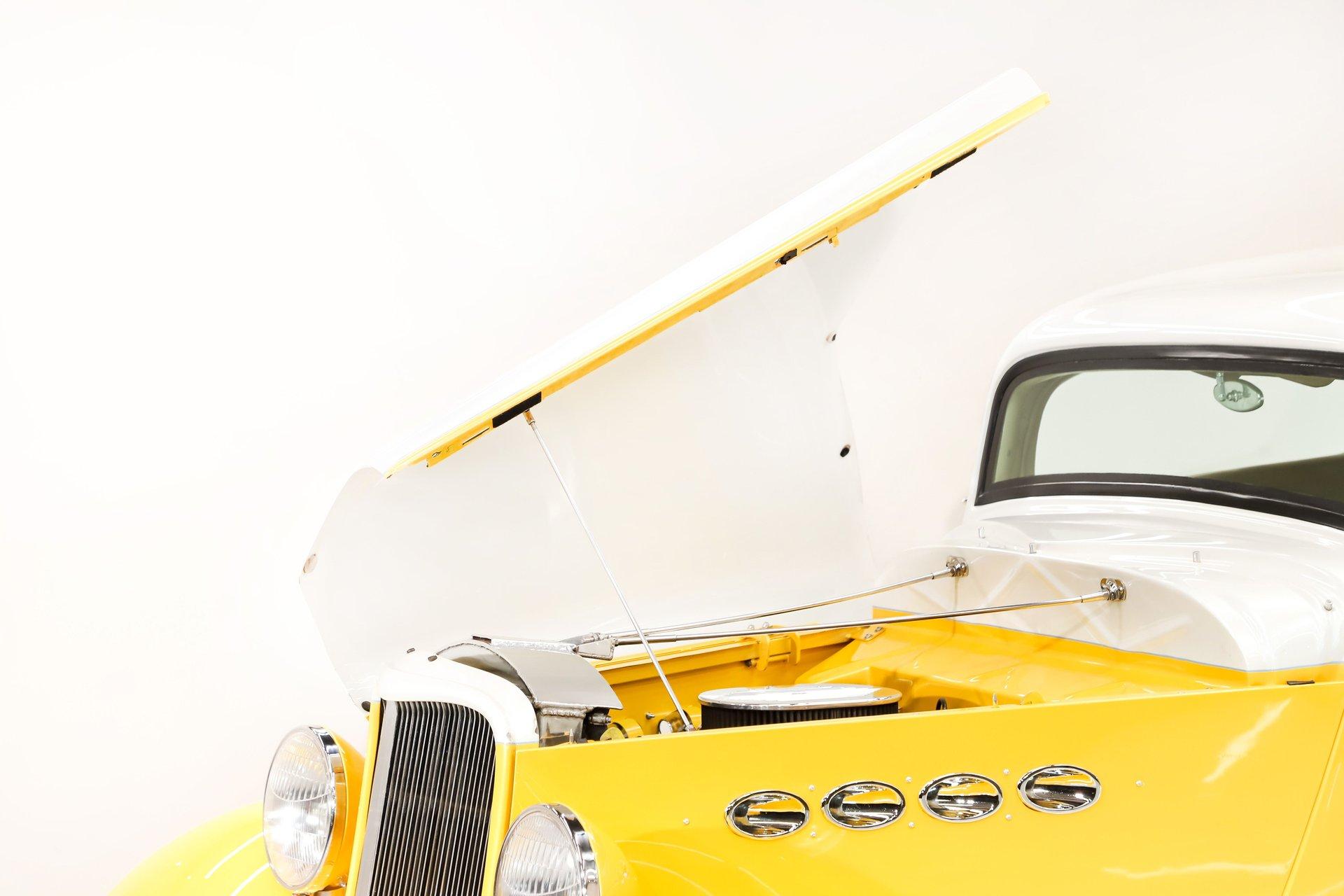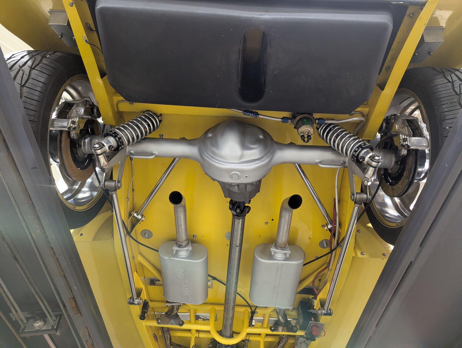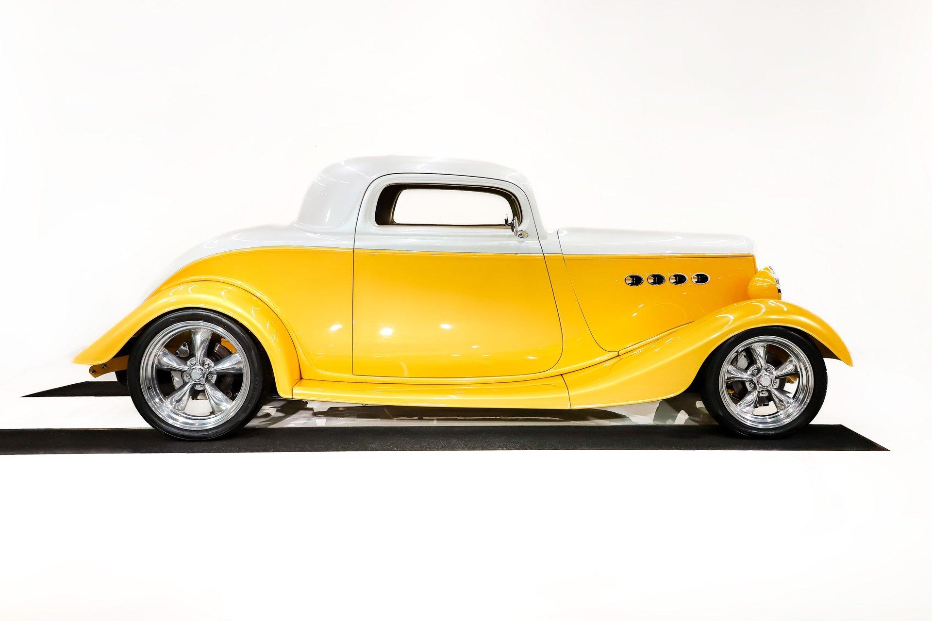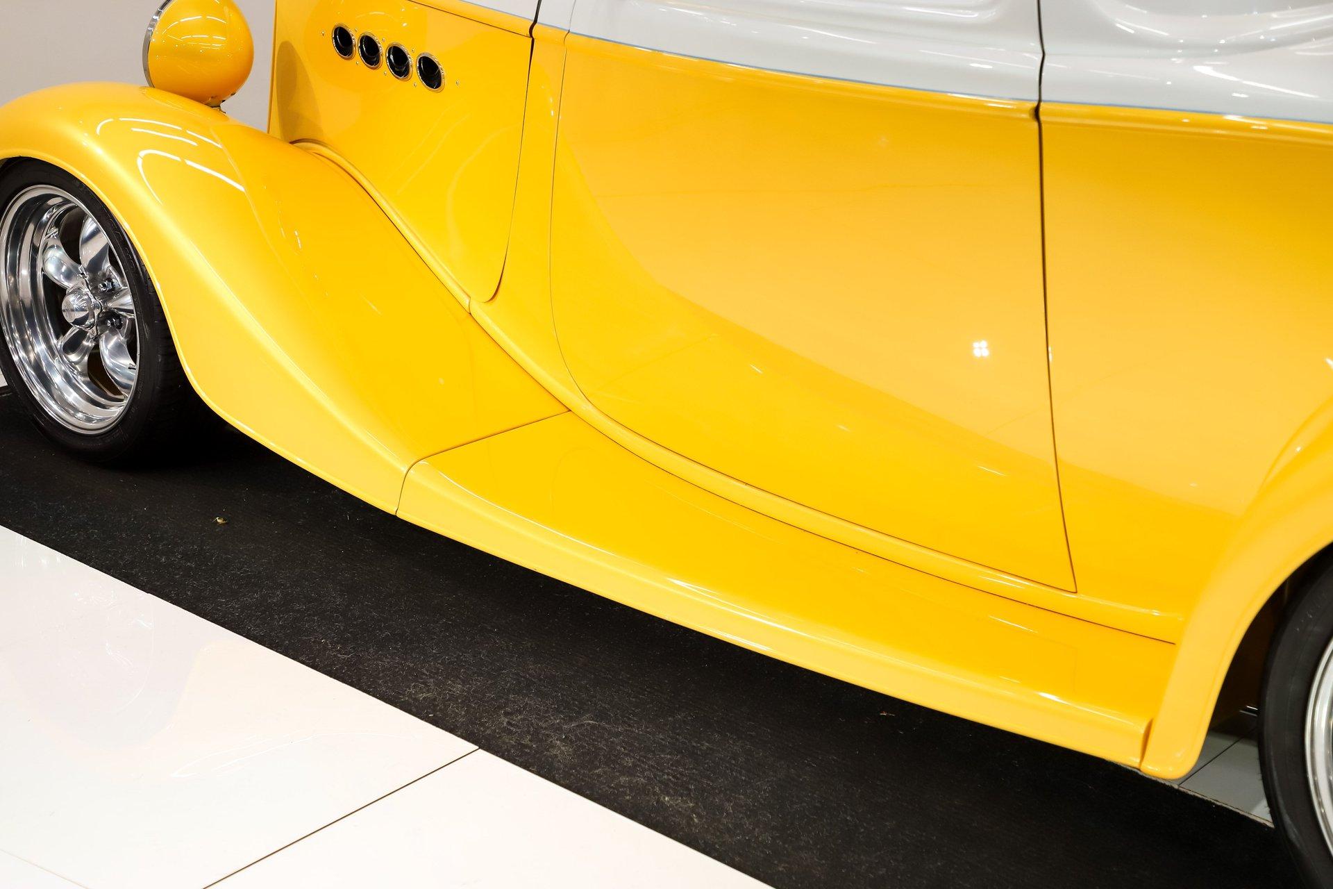 Celebrating our 65 year anniversary! This family owned and operated business was established in 1960, making us the oldest classic car dealership in America. Special thank you to all our customers for entrusting us to park the car of your dreams in your driveway while preserving automotive history for future generations to embrace and enjoy. -Grams family & Volo Museum staff INTRODUCTION: Even more spectacular in person, the pearl colors dance in the sunlight. This was professionally built in Las Vegas and featured as the cover car and center spread in Rods & Rides magazine. EXTERIOR: The timeless hot rod: a chopped 3 window coupe with suicide doors! This one is a full fendered Downs body that's all smooth, straight, solid and fits great. The doors open by a remote key fob. The paint is stunning in person because both colors are pearl. The white pearl and golden yellow pearl is broken up with a thin blue pinstripe. The paint is a beautiful, quality job that was laid out properly and polished smoothly. It has picked up just a few nicks/chips while being enjoyed. It has full size headlights with Ford script lenses and in back it has LED taillights and a 3rd brake light in the window. The glass has a light smoked tint, the windows are power. The rear splash pan has a recessed license plate and a flush mount fuel door. It's rolling on staggered size polished Torque Thrust wheels, 17s in front and 20s in back for that hot rod stance. They are wearing performance tires. INTERIOR: This interior has been taken to the next level with some very stylish custom features. The custom dash flows right onto the door panels and the console is designed to match. Everything that is soft is wrapped in genuine leather. The entire inside of the cab is sculpted and upholstered, the custom sport seats feel great. Down on the floor it has custom cut carpet with leather bound edges, along with seatbelts, a chrome e-brake lever and a polished Lokar shifter. It had a new set of AutoMeter gauges in a polished billet instrument panel. The Vintage Air controls and vents are very clean and simple. The tilt column is polished and has a Billet Specialties steering wheel. Overhead is a console that has interior lights, a stereo and a back up camera screen. ENGINE COMPARTMENT: A potent 383 stroker motor sits under this hood! It has a polished aluminum Edelbrock intake with a dual feed Holley carb, a billet distributor and a set of headers. It's dressed up with a matched set of polished aluminum air cleaner, valve covers and breathers. It runs cool with the big polished aluminum radiator. There's a number of other polished components as well and the engine bay is painted slick. TRUNK COMPARTMENT: It has a power lift trunk lid and once you look inside you'll see all the custom work. It's completely boxed and upholstered including under the trunk lid. The floor is carpeted. UNDERSIDE: This car is sitting on an Outlaw chassis. The frame is boxed and smoothed with tubular supports. Upfront it utilizes a Heidts independent suspension with polished tubular control arms, coilover adjustable gas shocks and rack & pinion steering. In back it has a 4 link system with polished tubular control arms and coilover adjustable gas shocks. The great sound comes from the exhaust with stainless pipes going into Dynamax mufflers and turndown tailpipes. It gets its stopping power from disc brakes at all 4 wheels with polished calipers, there is an e-brake system too. A composite fuel tank stores the petrol. There are remote battery terminals and a disconnect switch. Looking up at the motor it has a chrome high torque starter and flywheel cover. The trans is a 700R4 overdrive automatic with a remote oil cooler. The driveshaft leads back to a 9 inch rear. There is an abundance of glossy yellow paint under this car and it is still very clean. SERVICE: We take pride in our cars and reputation. Therefore, we built a 2 million dollar, 10,000 square ft service center, and hired a team of technicians to service the essentials on every car we sell. CONCLUSION: It was built to a show quality standard then it was shown, driven and enjoyed which is exactly what you should do! For nearly 30 years, I, Jay Grams, have personally written the highlights for almost every car in our collection. What I provide is my professional opinion based on my experience with these vehicles. However, opinions can vary, and I strongly recommend a personal inspection to form your own view. Our sales team is always available to answer any questions you may have. One great option is to request a personalized walk-around video, where we can showcase the car and share our team’s insights. **Our cars are displayed within a museum setting. If you are interested in a specific vehicle, please schedule an appointment with a salesperson to view it. Without an appointment, there is an admission fee to enter the showroom. If you decide to purchase a car, your admission will be refunded, and you'll receive a one-year museum membership. ☎️ 815 385 3644 9-5 central ? Sales@volocars.com Answered ASAP Air conditioning 4 wheel disc brakes Leather upholstery Power windows Stereo Tilt wheel Console Back up camera Remote doors Power lift trunk Torque Thrust wheels