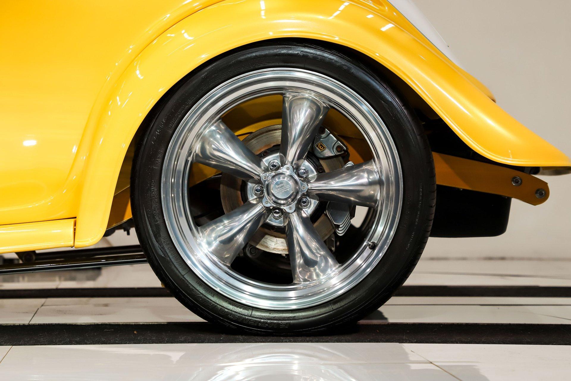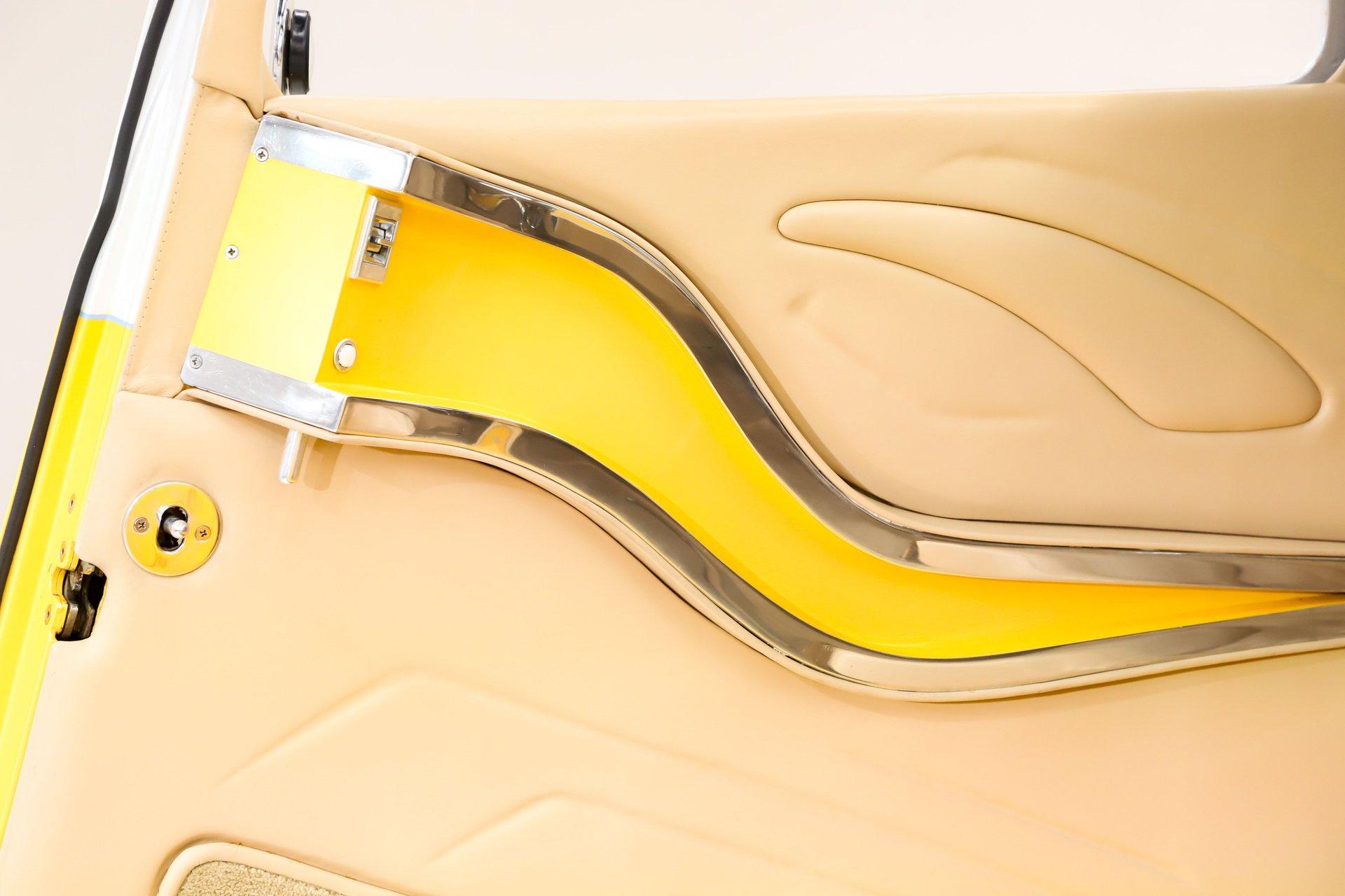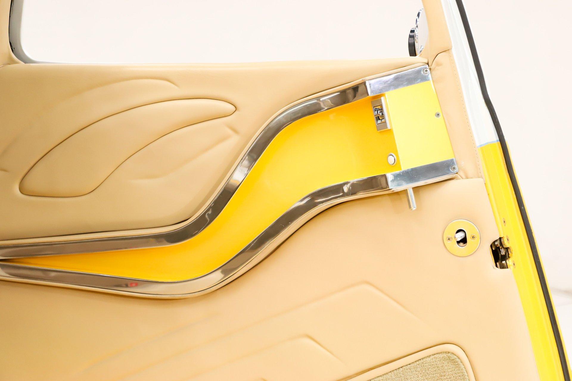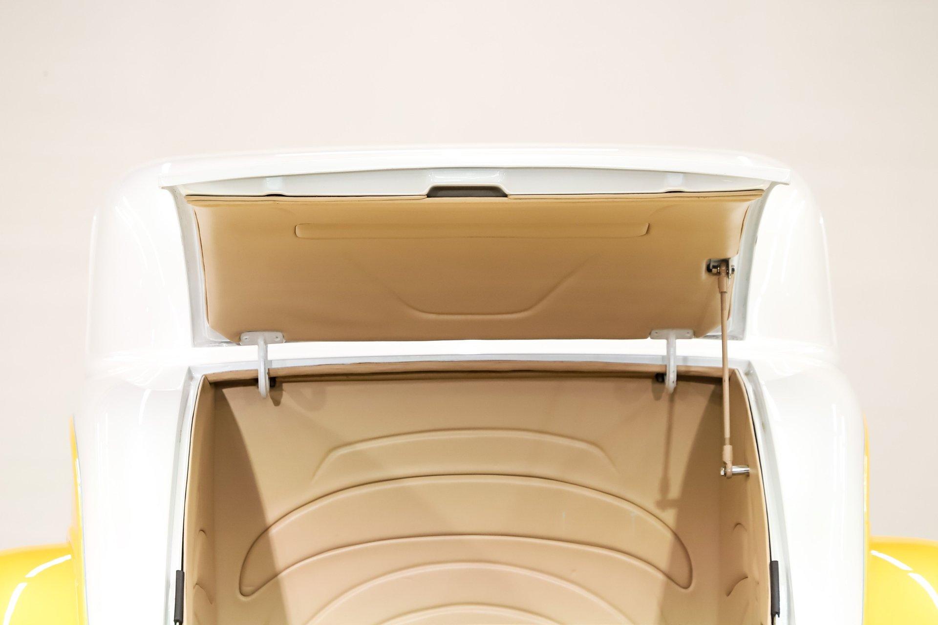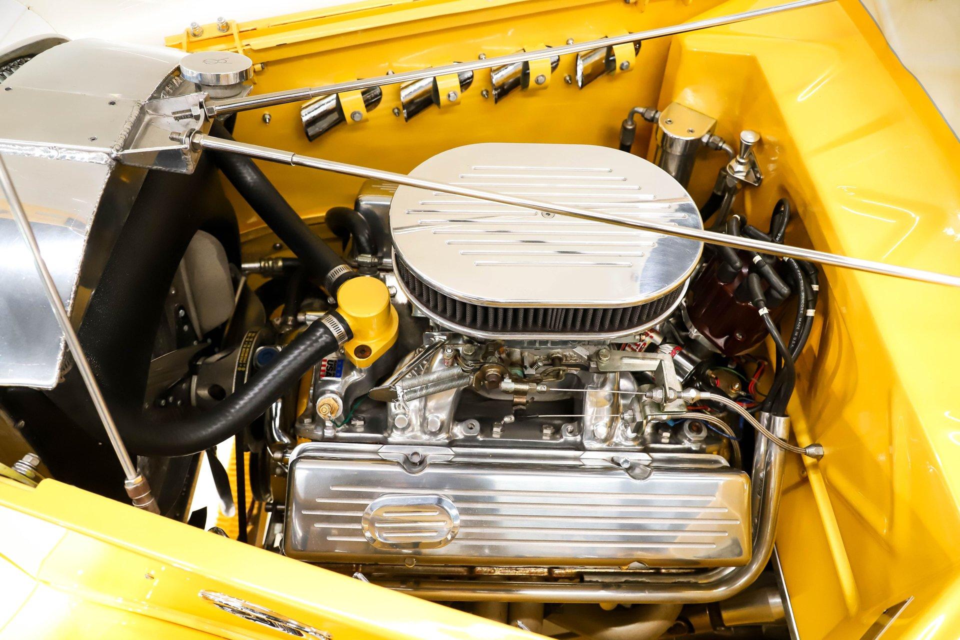 Celebrating our 65 year anniversary! This family owned and operated business was established in 1960, making us the oldest classic car dealership in America. Special thank you to all our customers for entrusting us to park the car of your dreams in your driveway while preserving automotive history for future generations to embrace and enjoy. -Grams family & Volo Museum staff INTRODUCTION: Even more spectacular in person, the pearl colors dance in the sunlight. This was professionally built in Las Vegas and featured as the cover car and center spread in Rods & Rides magazine. EXTERIOR: The timeless hot rod: a chopped 3 window coupe with suicide doors! This one is a full fendered Downs body that's all smooth, straight, solid and fits great. The doors open by a remote key fob. The paint is stunning in person because both colors are pearl. The white pearl and golden yellow pearl is broken up with a thin blue pinstripe. The paint is a beautiful, quality job that was laid out properly and polished smoothly. It has picked up just a few nicks/chips while being enjoyed. It has full size headlights with Ford script lenses and in back it has LED taillights and a 3rd brake light in the window. The glass has a light smoked tint, the windows are power. The rear splash pan has a recessed license plate and a flush mount fuel door. It's rolling on staggered size polished Torque Thrust wheels, 17s in front and 20s in back for that hot rod stance. They are wearing performance tires. INTERIOR: This interior has been taken to the next level with some very stylish custom features. The custom dash flows right onto the door panels and the console is designed to match. Everything that is soft is wrapped in genuine leather. The entire inside of the cab is sculpted and upholstered, the custom sport seats feel great. Down on the floor it has custom cut carpet with leather bound edges, along with seatbelts, a chrome e-brake lever and a polished Lokar shifter. It had a new set of AutoMeter gauges in a polished billet instrument panel. The Vintage Air controls and vents are very clean and simple. The tilt column is polished and has a Billet Specialties steering wheel. Overhead is a console that has interior lights, a stereo and a back up camera screen. ENGINE COMPARTMENT: A potent 383 stroker motor sits under this hood! It has a polished aluminum Edelbrock intake with a dual feed Holley carb, a billet distributor and a set of headers. It's dressed up with a matched set of polished aluminum air cleaner, valve covers and breathers. It runs cool with the big polished aluminum radiator. There's a number of other polished components as well and the engine bay is painted slick. TRUNK COMPARTMENT: It has a power lift trunk lid and once you look inside you'll see all the custom work. It's completely boxed and upholstered including under the trunk lid. The floor is carpeted. UNDERSIDE: This car is sitting on an Outlaw chassis. The frame is boxed and smoothed with tubular supports. Upfront it utilizes a Heidts independent suspension with polished tubular control arms, coilover adjustable gas shocks and rack & pinion steering. In back it has a 4 link system with polished tubular control arms and coilover adjustable gas shocks. The great sound comes from the exhaust with stainless pipes going into Dynamax mufflers and turndown tailpipes. It gets its stopping power from disc brakes at all 4 wheels with polished calipers, there is an e-brake system too. A composite fuel tank stores the petrol. There are remote battery terminals and a disconnect switch. Looking up at the motor it has a chrome high torque starter and flywheel cover. The trans is a 700R4 overdrive automatic with a remote oil cooler. The driveshaft leads back to a 9 inch rear. There is an abundance of glossy yellow paint under this car and it is still very clean. SERVICE: We take pride in our cars and reputation. Therefore, we built a 2 million dollar, 10,000 square ft service center, and hired a team of technicians to service the essentials on every car we sell. CONCLUSION: It was built to a show quality standard then it was shown, driven and enjoyed which is exactly what you should do! For nearly 30 years, I, Jay Grams, have personally written the highlights for almost every car in our collection. What I provide is my professional opinion based on my experience with these vehicles. However, opinions can vary, and I strongly recommend a personal inspection to form your own view. Our sales team is always available to answer any questions you may have. One great option is to request a personalized walk-around video, where we can showcase the car and share our team’s insights. **Our cars are displayed within a museum setting. If you are interested in a specific vehicle, please schedule an appointment with a salesperson to view it. Without an appointment, there is an admission fee to enter the showroom. If you decide to purchase a car, your admission will be refunded, and you'll receive a one-year museum membership. ☎️ 815 385 3644 9-5 central ? Sales@volocars.com Answered ASAP Air conditioning 4 wheel disc brakes Leather upholstery Power windows Stereo Tilt wheel Console Back up camera Remote doors Power lift trunk Torque Thrust wheels