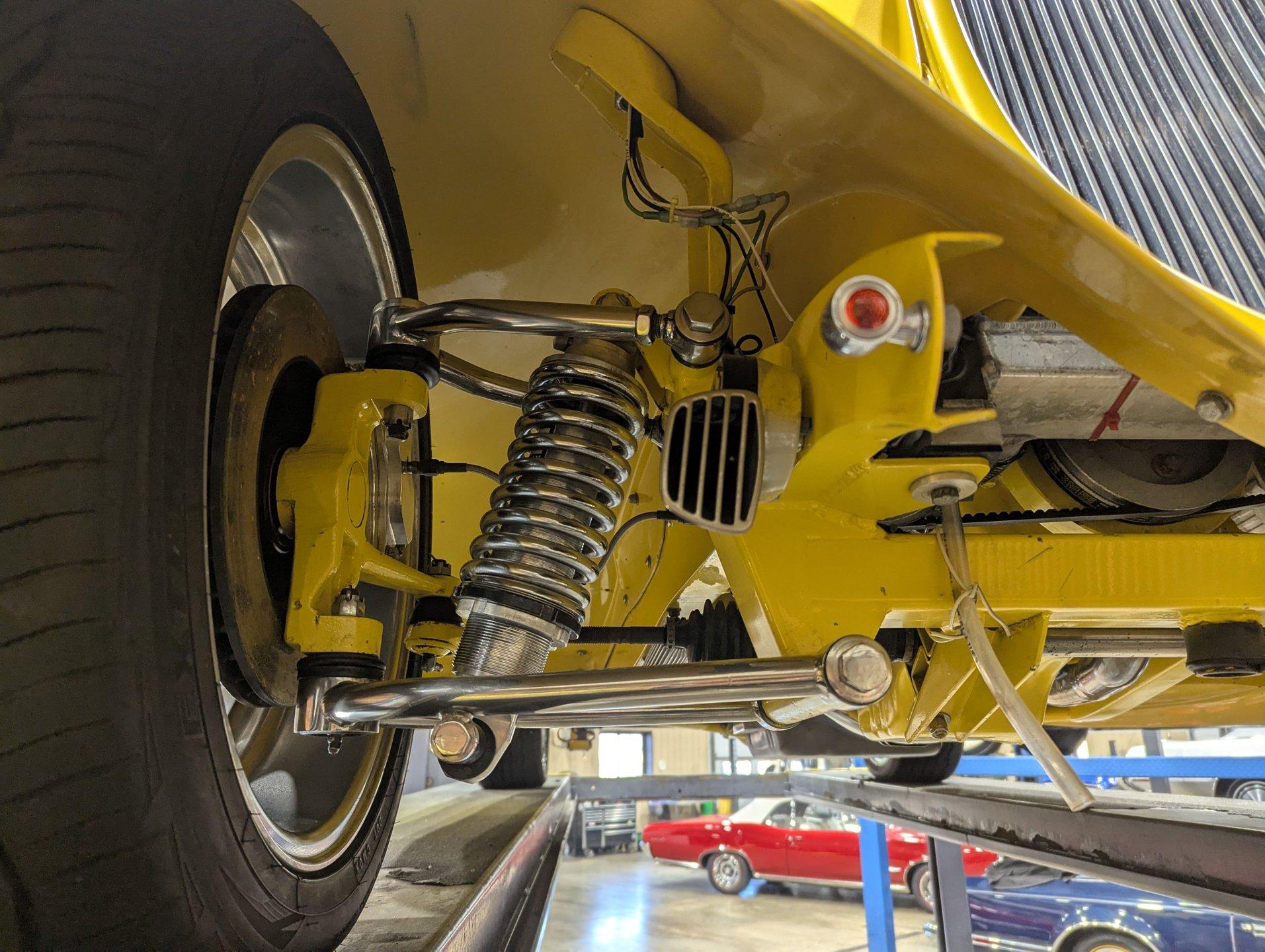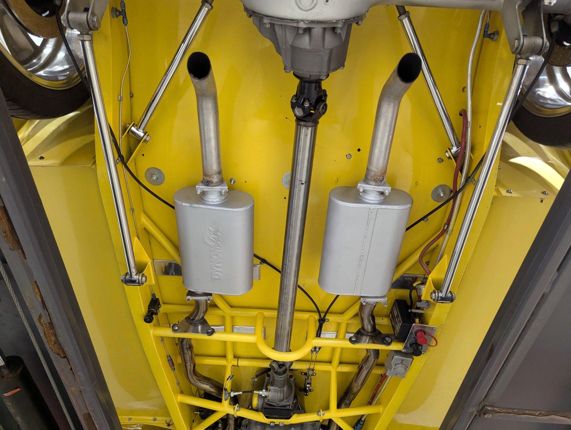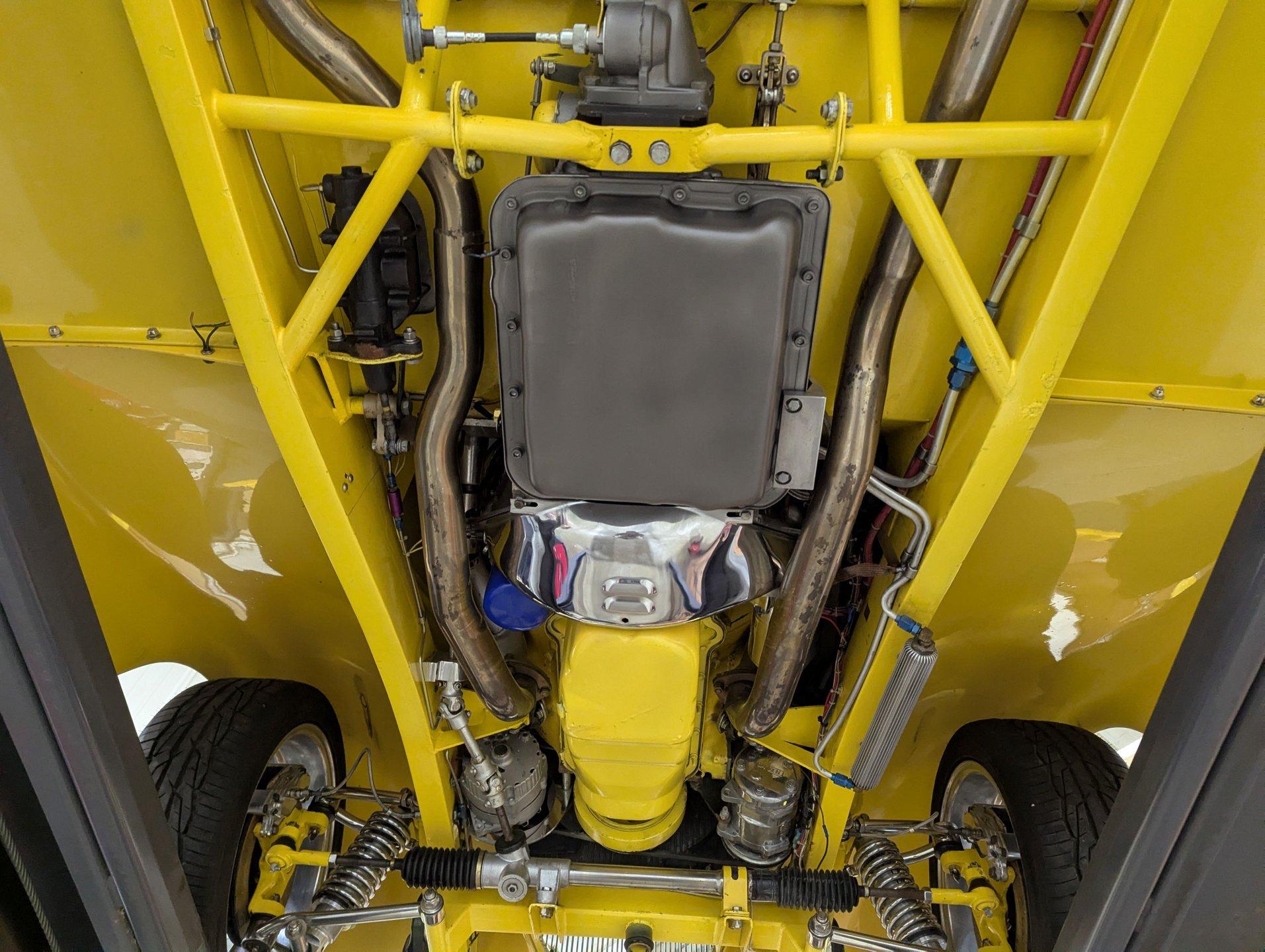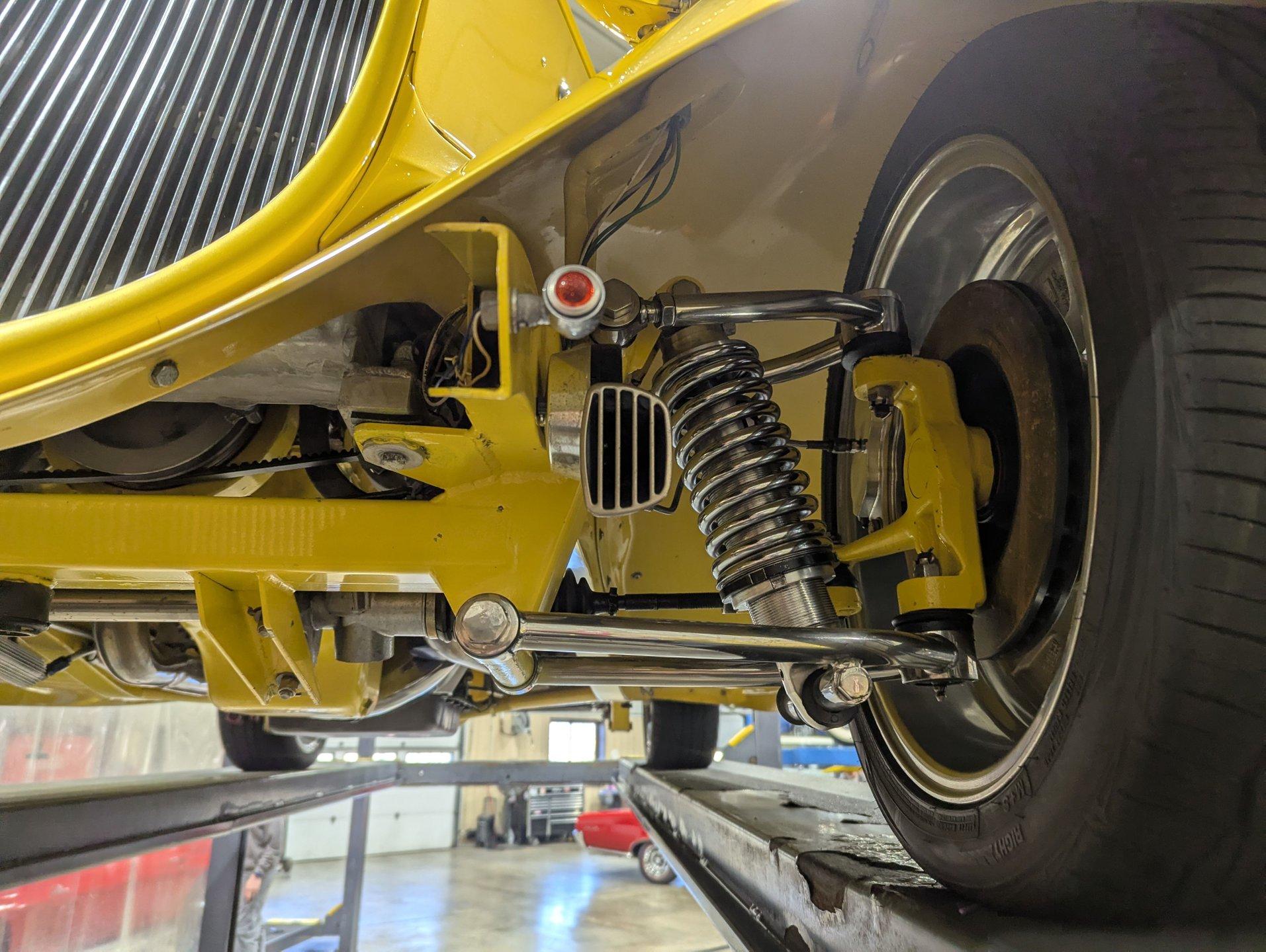 Celebrating our 65 year anniversary! This family owned and operated business was established in 1960, making us the oldest classic car dealership in America. Special thank you to all our customers for entrusting us to park the car of your dreams in your driveway while preserving automotive history for future generations to embrace and enjoy. -Grams family & Volo Museum staff INTRODUCTION: Even more spectacular in person, the pearl colors dance in the sunlight. This was professionally built in Las Vegas and featured as the cover car and center spread in Rods & Rides magazine. EXTERIOR: The timeless hot rod: a chopped 3 window coupe with suicide doors! This one is a full fendered Downs body that's all smooth, straight, solid and fits great. The doors open by a remote key fob. The paint is stunning in person because both colors are pearl. The white pearl and golden yellow pearl is broken up with a thin blue pinstripe. The paint is a beautiful, quality job that was laid out properly and polished smoothly. It has picked up just a few nicks/chips while being enjoyed. It has full size headlights with Ford script lenses and in back it has LED taillights and a 3rd brake light in the window. The glass has a light smoked tint, the windows are power. The rear splash pan has a recessed license plate and a flush mount fuel door. It's rolling on staggered size polished Torque Thrust wheels, 17s in front and 20s in back for that hot rod stance. They are wearing performance tires. INTERIOR: This interior has been taken to the next level with some very stylish custom features. The custom dash flows right onto the door panels and the console is designed to match. Everything that is soft is wrapped in genuine leather. The entire inside of the cab is sculpted and upholstered, the custom sport seats feel great. Down on the floor it has custom cut carpet with leather bound edges, along with seatbelts, a chrome e-brake lever and a polished Lokar shifter. It had a new set of AutoMeter gauges in a polished billet instrument panel. The Vintage Air controls and vents are very clean and simple. The tilt column is polished and has a Billet Specialties steering wheel. Overhead is a console that has interior lights, a stereo and a back up camera screen. ENGINE COMPARTMENT: A potent 383 stroker motor sits under this hood! It has a polished aluminum Edelbrock intake with a dual feed Holley carb, a billet distributor and a set of headers. It's dressed up with a matched set of polished aluminum air cleaner, valve covers and breathers. It runs cool with the big polished aluminum radiator. There's a number of other polished components as well and the engine bay is painted slick. TRUNK COMPARTMENT: It has a power lift trunk lid and once you look inside you'll see all the custom work. It's completely boxed and upholstered including under the trunk lid. The floor is carpeted. UNDERSIDE: This car is sitting on an Outlaw chassis. The frame is boxed and smoothed with tubular supports. Upfront it utilizes a Heidts independent suspension with polished tubular control arms, coilover adjustable gas shocks and rack & pinion steering. In back it has a 4 link system with polished tubular control arms and coilover adjustable gas shocks. The great sound comes from the exhaust with stainless pipes going into Dynamax mufflers and turndown tailpipes. It gets its stopping power from disc brakes at all 4 wheels with polished calipers, there is an e-brake system too. A composite fuel tank stores the petrol. There are remote battery terminals and a disconnect switch. Looking up at the motor it has a chrome high torque starter and flywheel cover. The trans is a 700R4 overdrive automatic with a remote oil cooler. The driveshaft leads back to a 9 inch rear. There is an abundance of glossy yellow paint under this car and it is still very clean. SERVICE: We take pride in our cars and reputation. Therefore, we built a 2 million dollar, 10,000 square ft service center, and hired a team of technicians to service the essentials on every car we sell. CONCLUSION: It was built to a show quality standard then it was shown, driven and enjoyed which is exactly what you should do! For nearly 30 years, I, Jay Grams, have personally written the highlights for almost every car in our collection. What I provide is my professional opinion based on my experience with these vehicles. However, opinions can vary, and I strongly recommend a personal inspection to form your own view. Our sales team is always available to answer any questions you may have. One great option is to request a personalized walk-around video, where we can showcase the car and share our team’s insights. **Our cars are displayed within a museum setting. If you are interested in a specific vehicle, please schedule an appointment with a salesperson to view it. Without an appointment, there is an admission fee to enter the showroom. If you decide to purchase a car, your admission will be refunded, and you'll receive a one-year museum membership. ☎️ 815 385 3644 9-5 central ? Sales@volocars.com Answered ASAP Air conditioning 4 wheel disc brakes Leather upholstery Power windows Stereo Tilt wheel Console Back up camera Remote doors Power lift trunk Torque Thrust wheels