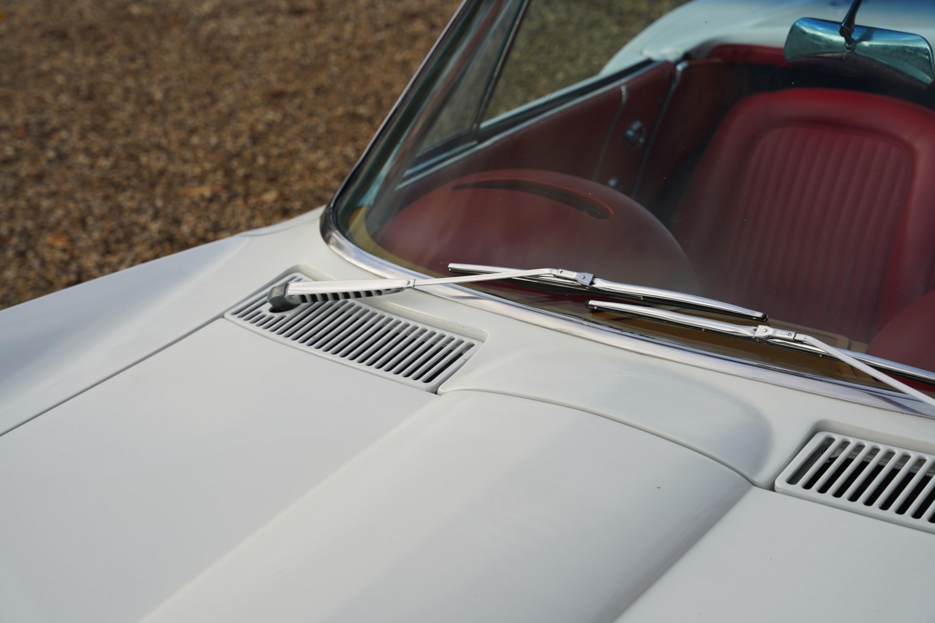 Corvette's come in a variety of colours: from posh metallic tints to typical 60's pastels the options are endless. This time we have a slightly different slant: this lovely Corvette C2 Convertible comes in Ermine White finish contrasting beautifully with its bright red interior. Those in the know may have clocked this Convertible has grills on the bonnet indicating this is an early 1963 model.