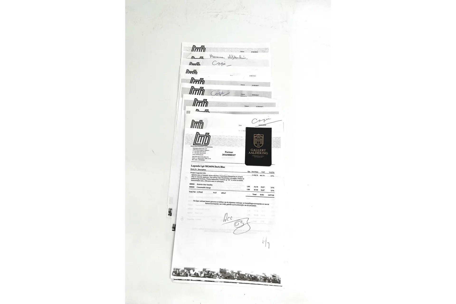 The documentation for this car is exceptionally complete. It comes with a treasure trove of period photographs and magazine articles featuring this very Lagonda. It even includes an original Lagonda sales brochure from the era. Additionally, a wealth of invoices and correspondence has been meticulously preserved—an unparalleled collection of historical records that makes this Lagonda even more extraordinary.