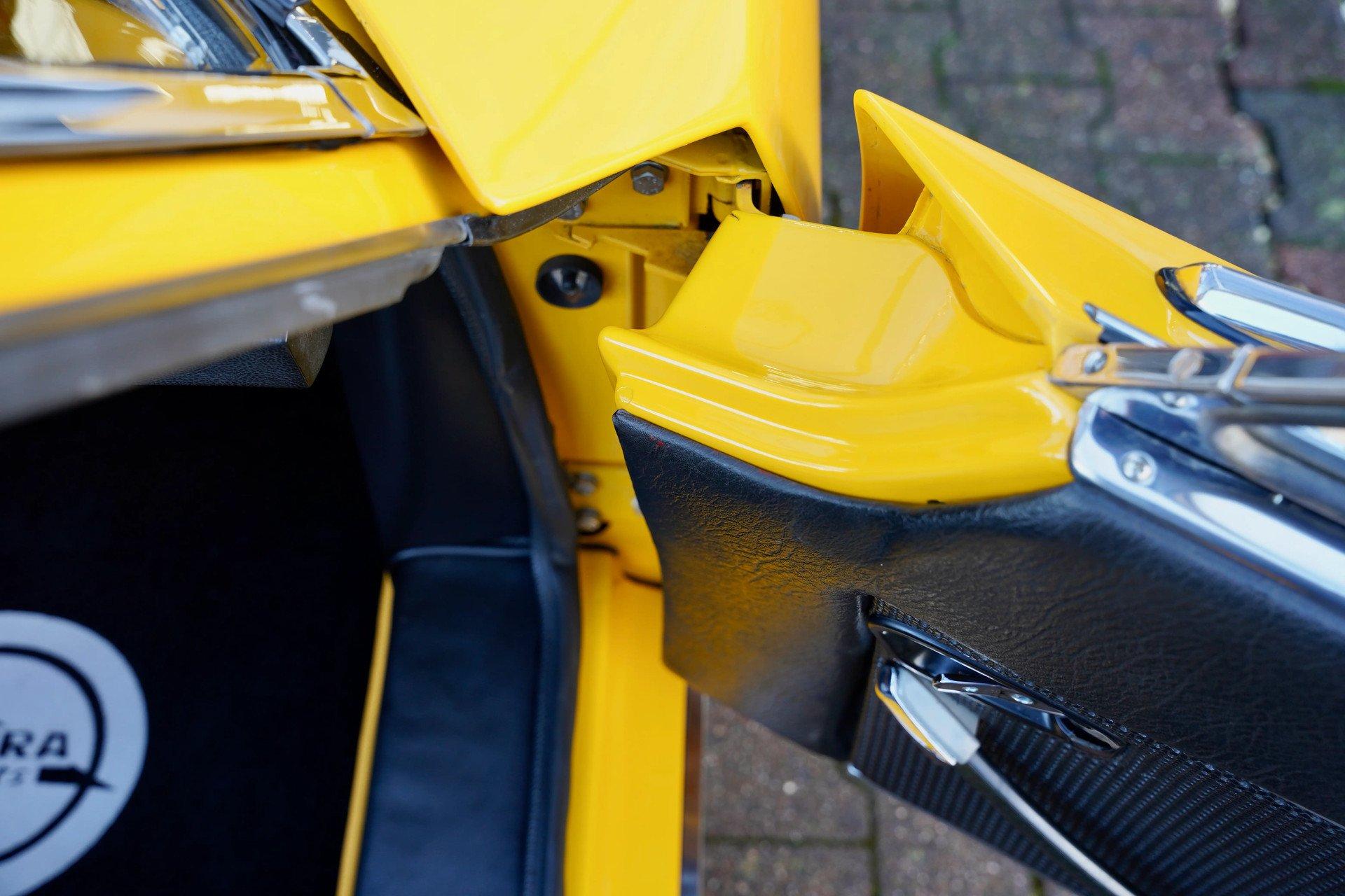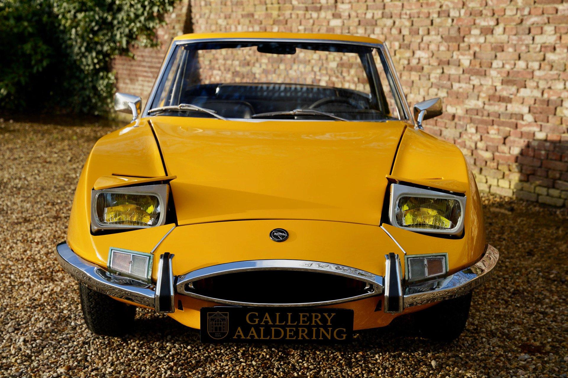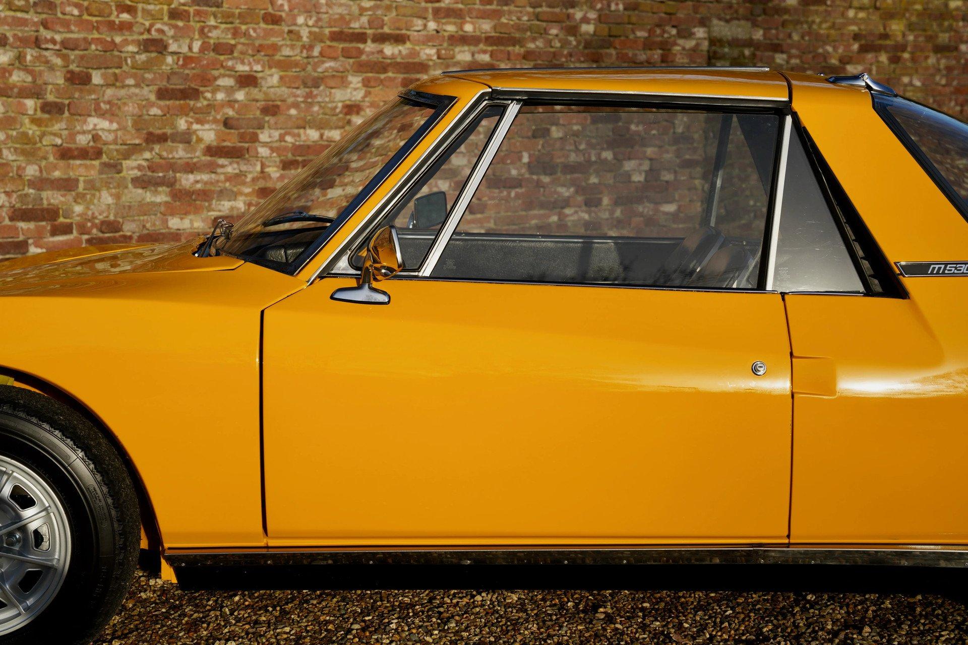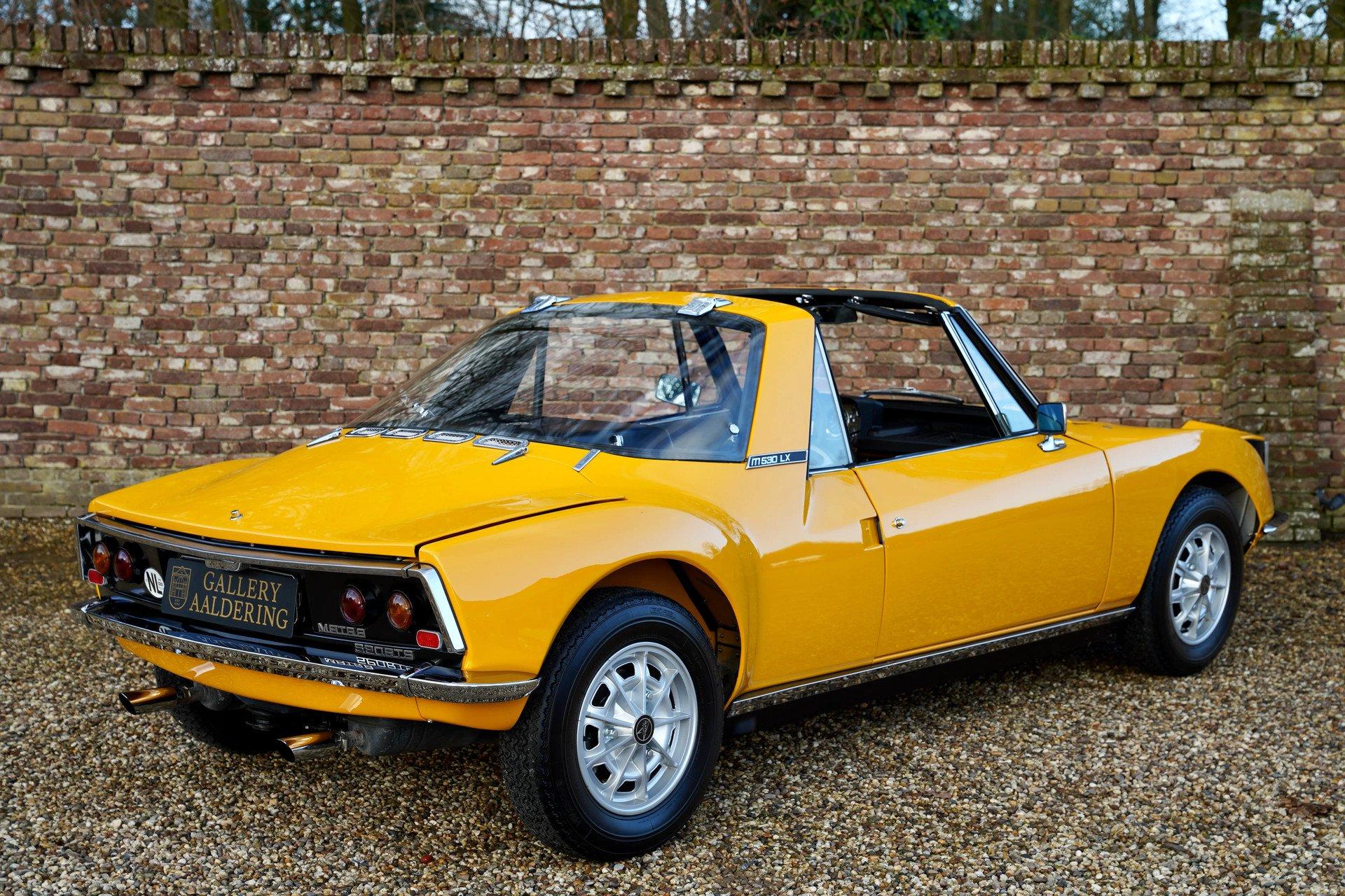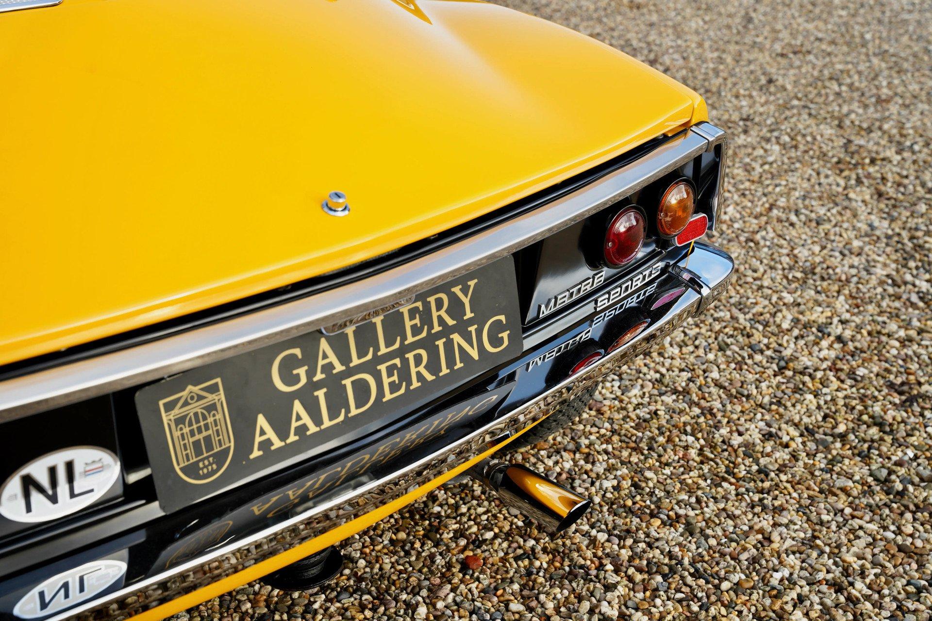 Do you know everything about this Matra, or nothing at all? That's what we often hear in our showroom. Some fans of this French gem have memorized every detail. Did you know, for instance, that this Matra was named after a rocket? Isn't it delightful? A French design featuring playful elements like pop-up headlights, a gently curved rear window, and a targa-style roof. Under the hood, however, things are a bit less “French,” as this Matra is powered by an engine derived from the Ford Taunus, here configured in a mid-engine layout. Have you taken a look at the photos on our website yet? You probably noticed right away how far apart the front and rear wheels are. Clearly, this Matra M530 LX is a unique car with fantastic details! In 1970, the Matra Sports M530 LX was showcased at the Geneva Motor Show.