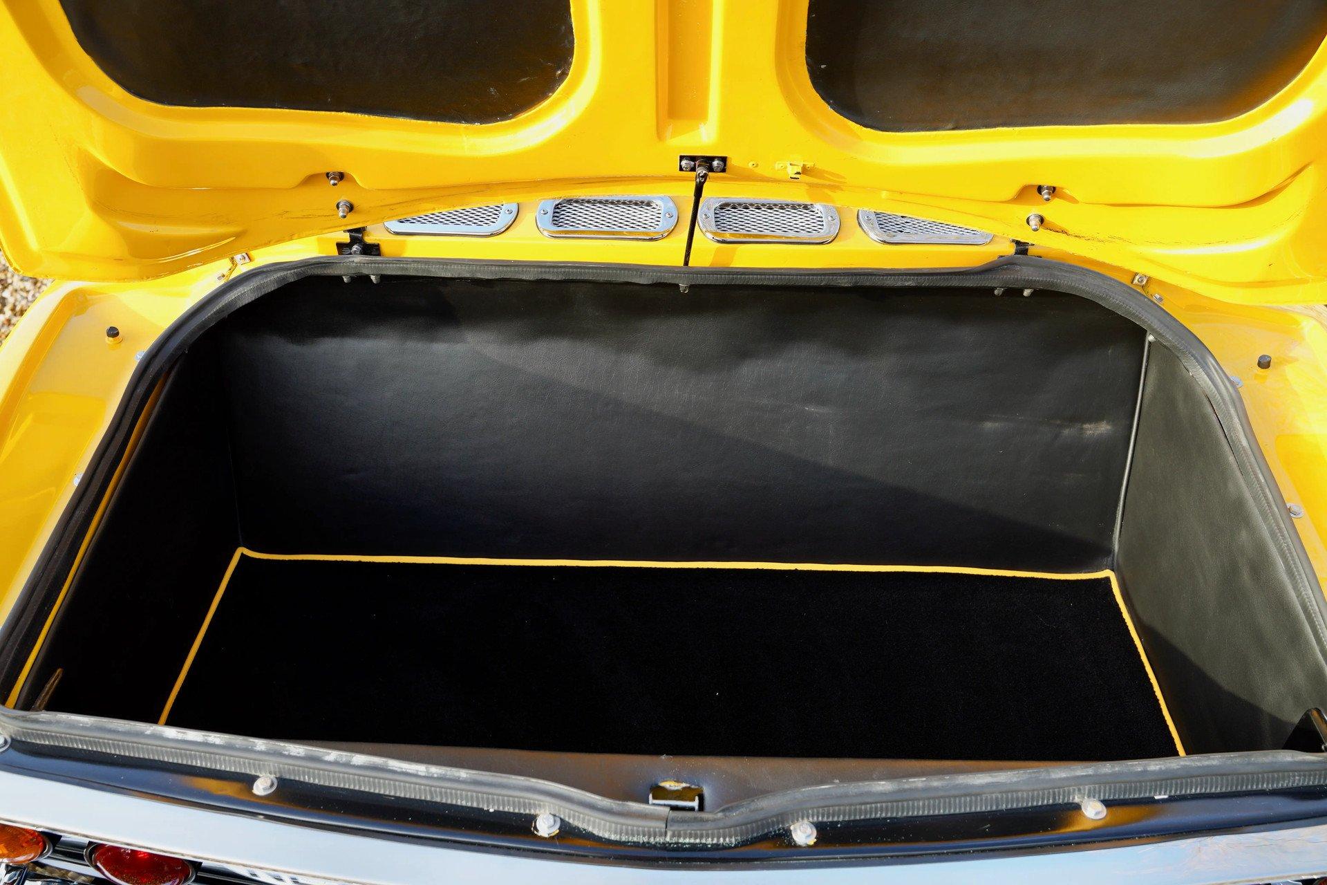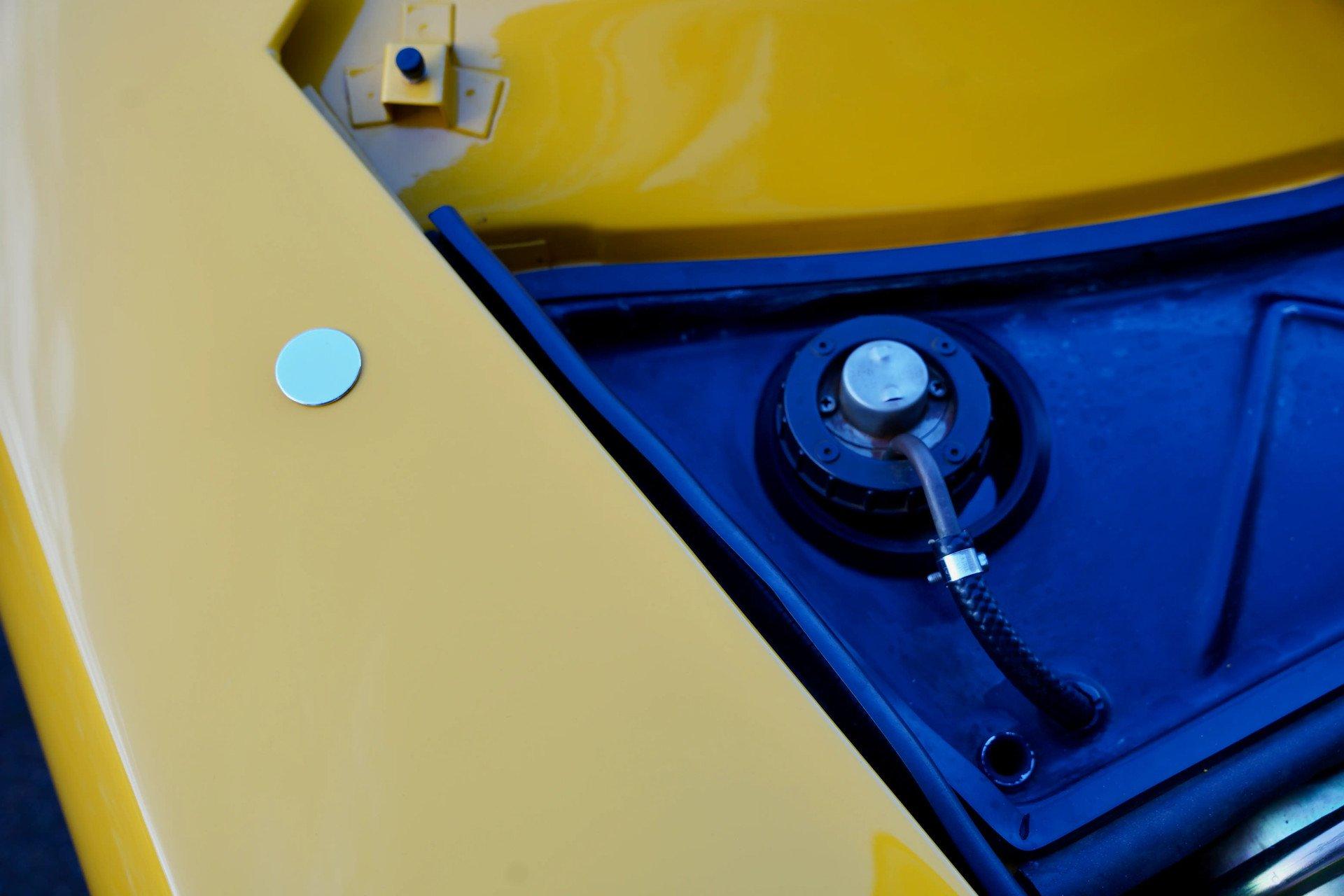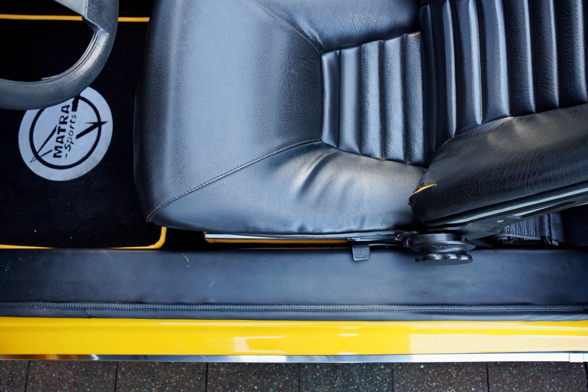 Our Matra is finished in that incredibly striking yellow hue, the same color featured in the original brochure included with this car. Speaking of which, it comes with a thick binder of documentation, ranging from original brochures to parts manuals. This example underwent restoration and overhaul work at a well-known classic car specialist, so it presents beautifully. The exterior boasts a tidy body with a lovely paint finish and an appealing gloss. The chrome bumpers look terrific, and the wheels appear fresh. Details such as the taillights and rubber components are all in neat condition. And if you've checked out the undercarriage photos on our website, you'll already have noticed that nothing was left untouched.